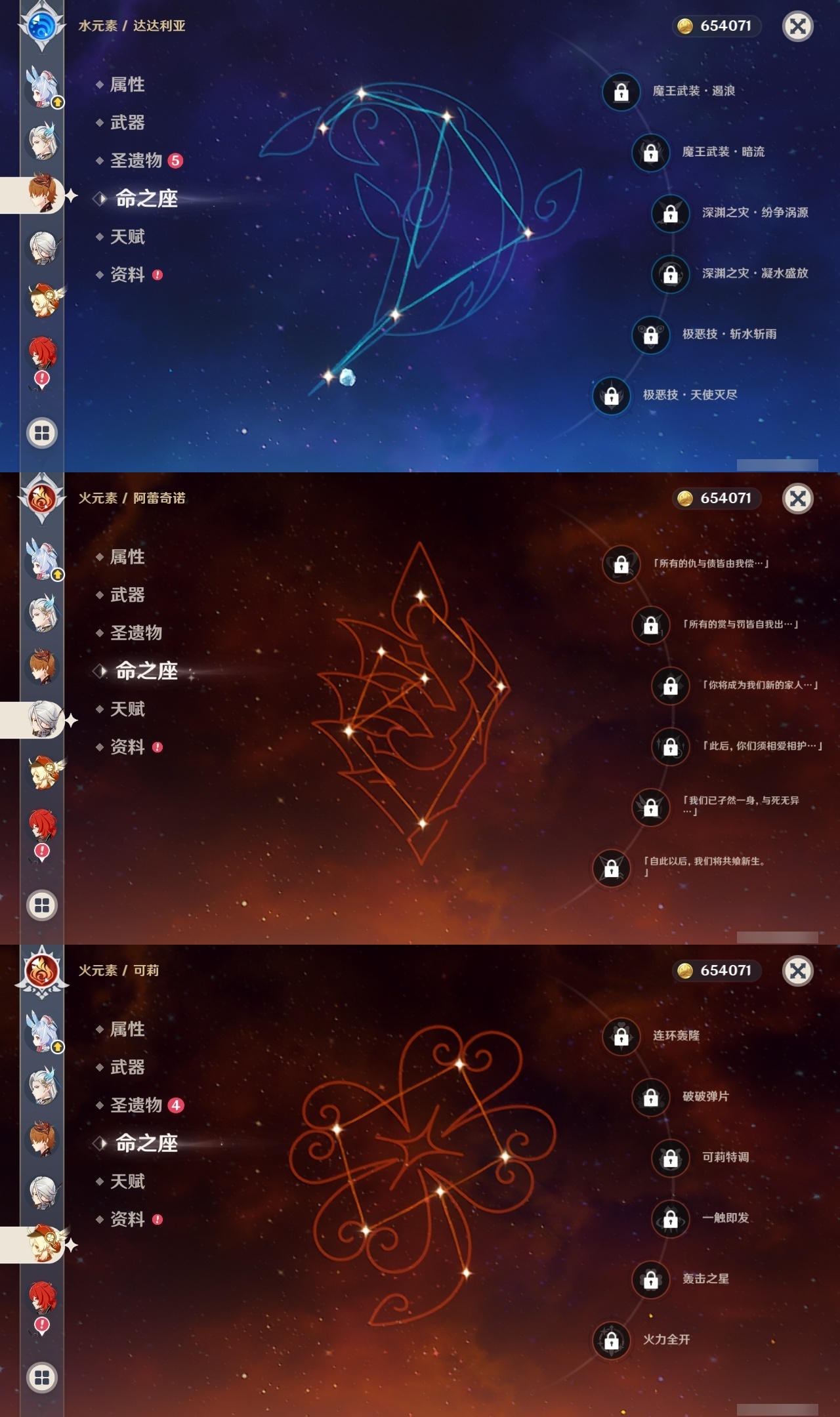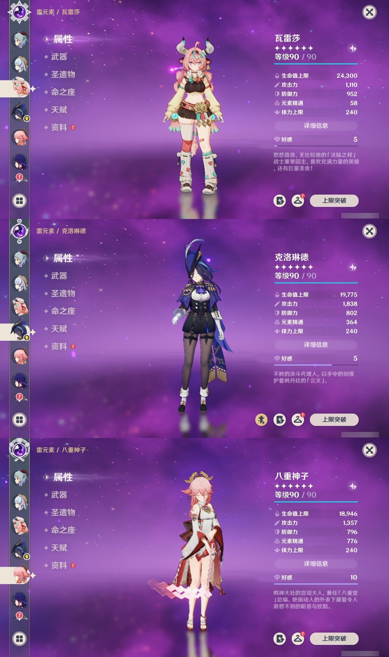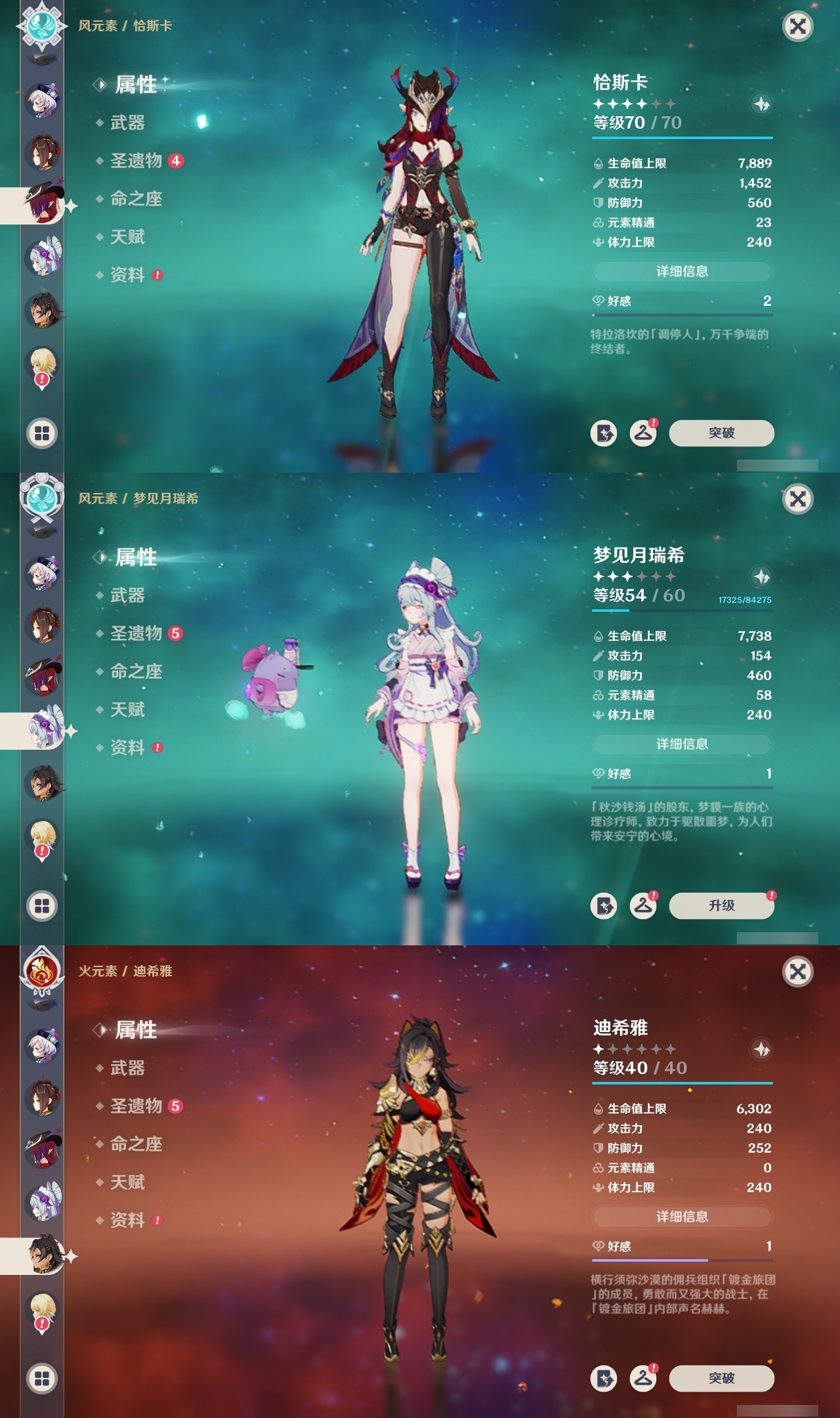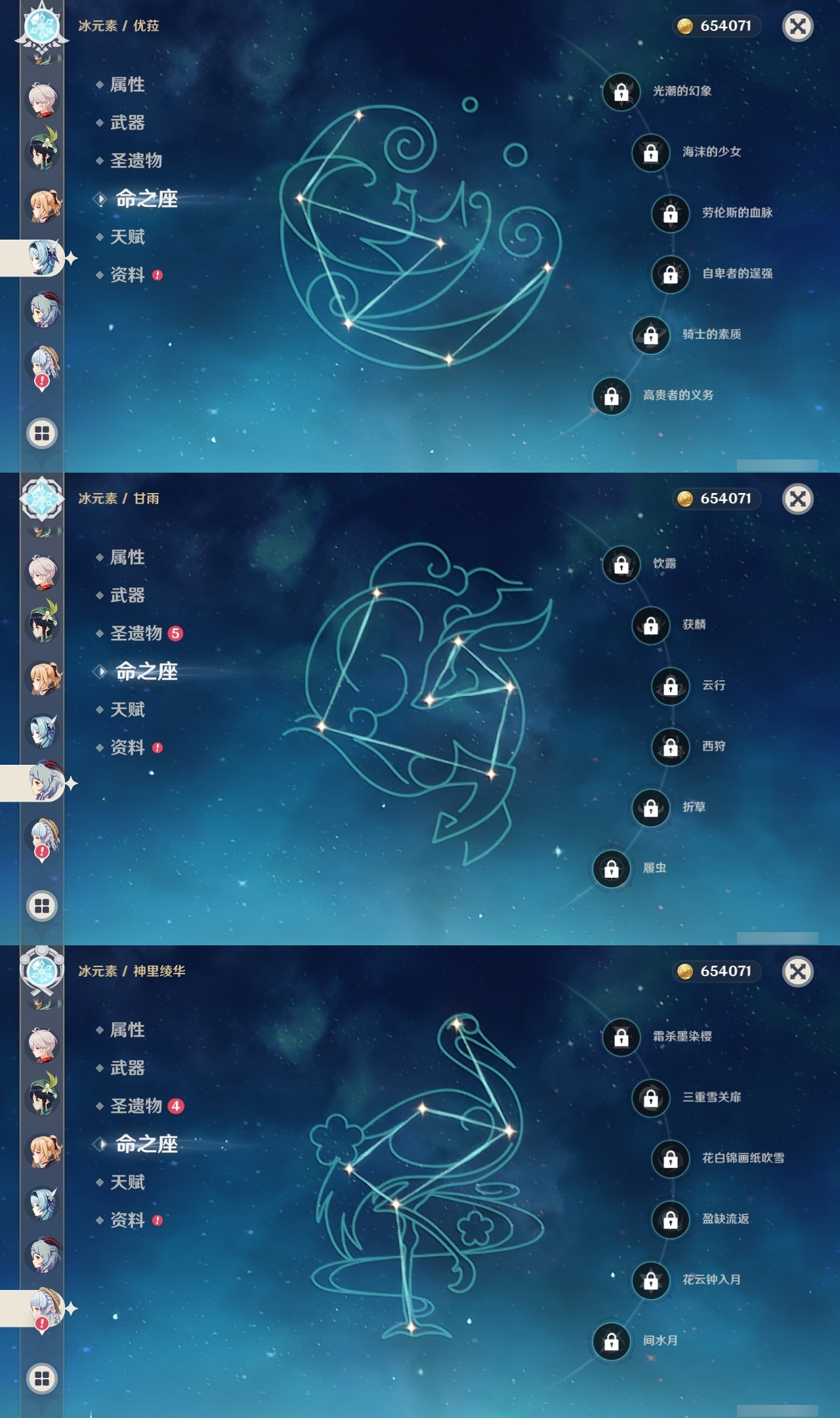 【原神】【lyys11175】冒险等级:60,五星数量:50,五星角色:刻晴 4命七七 3命迪卢克 2命琴 2命夜兰 2命莫娜 1命荒泷一斗 1命提纳里 1命玛拉妮希诺宁神里绫华温迪恰斯卡优菈迪希雅钟离达达利亚梦见月瑞希申鹤瓦雷莎八重神子那维莱特芙宁娜娜维娅闲云千织阿蕾奇诺丝柯克纳西妲菲林斯枫原万叶甘雨克洛琳德希格雯可莉雷电将军__五星武器:风鹰剑 3精万世流涌大典阿莫斯之弓飞雷之弦振护摩之杖天空之傲天空之翼无工之剑薙草之稻光赤角石溃杵波乱月白经津若水圣显之钥千夜浮梦__四星角色:班尼特 6命行秋 6命九条裟罗 6命香菱 6命珐露珊 6命迪奥娜 6命砂糖 6命坎蒂丝 6命多莉 6命柯莱 6命芭芭拉 6命早柚 6命托马 6命五郎 6命烟绯 6命辛焱 6命诺艾尔 6命罗莎莉亚 6命雷泽 6命菲谢尔 6命北斗 6命夏沃蕾 6命嘉明 6命久岐忍 5命瑶瑶 5命琳妮特 5命卡齐娜 4命凝光 4命米卡 4命云堇 4命爱诺 4命鹿野院平藏 3命莱依拉 3命卡维 3命赛索斯 3命绮良良 2命欧洛伦 2命蓝砚 2命重云 2命菲米尼 2命夏洛蒂 2命伊法伊安珊塔利雅