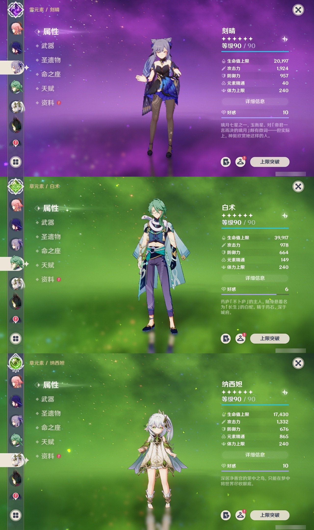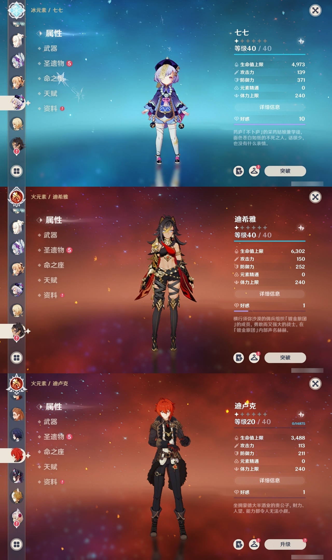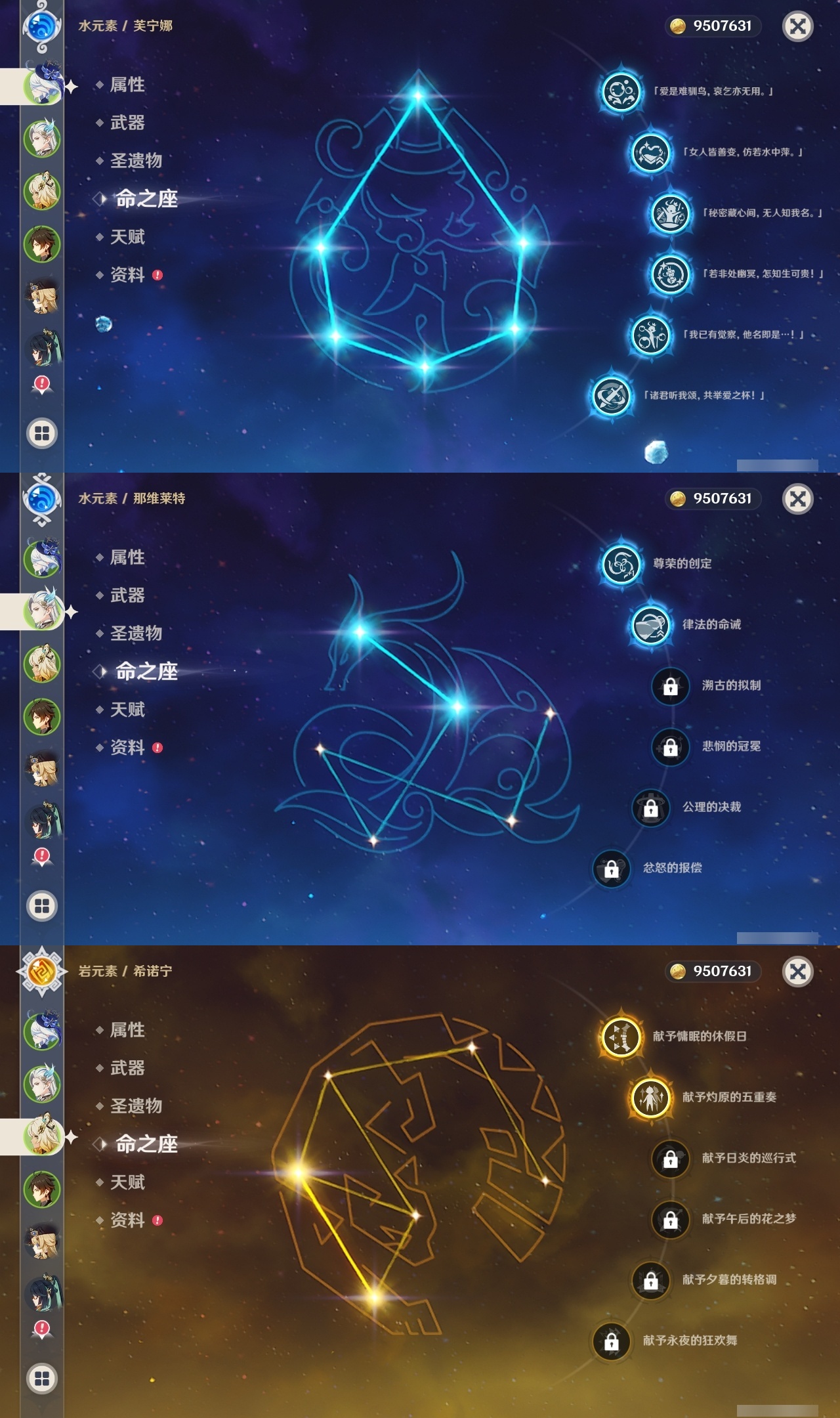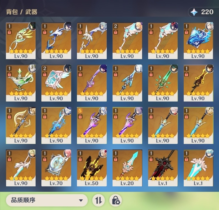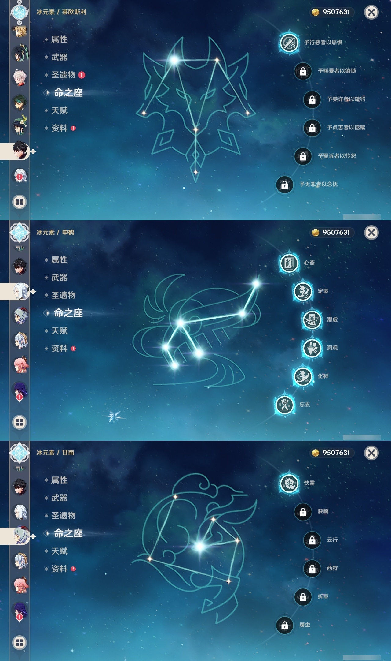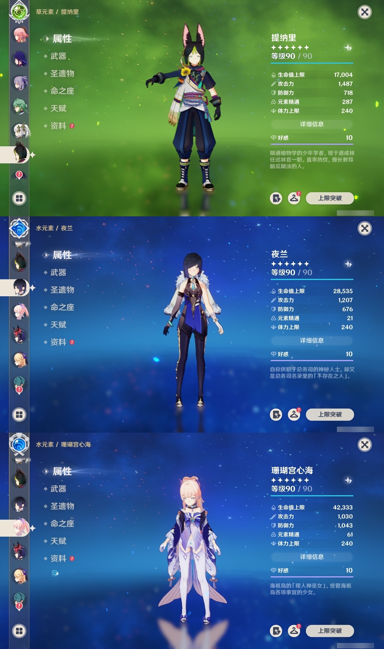 【原神】满命,冒险等级:60,五星数量:50,五星角色:芙宁娜 6命刻晴 6命莫娜 6命神里绫华 6命申鹤 6命提纳里 6命迪卢克 3命雷电将军 3命七七 3命琴 3命夜兰 3命纳西妲 3命希诺宁 2命那维莱特 2命娜维娅 2命迪希雅 1命莱欧斯利 1命甘雨 1命珊瑚宫心海白术温迪钟离梦见月瑞希八重神子闲云枫原万叶魈__五星武器:雾切之回光 5精天空之卷 2精天空之翼 2精万世流涌大典静水流涌之辉裁断阿莫斯之弓苍古自由之誓风鹰剑和璞鸢狼的末路四风原典天空之傲天空之脊无工之剑薙草之稻光息灾贯虹之槊若水猎人之径千夜浮梦__四星角色:班尼特 6命行秋 6命九条裟罗 6命久岐忍 6命鹿野院平藏 6命珐露珊 6命凝光 6命迪奥娜 6命砂糖 6命莱依拉 6命米卡 6命坎蒂丝 6命多莉 6命柯莱 6命芭芭拉 6命云堇 6命早柚 6命托马 6命烟绯 6命重云 6命诺艾尔 6命罗莎莉亚 6命雷泽 6命菲谢尔 6命北斗 6命夏洛蒂 6命嘉明 6命香菱 5命五郎 5命赛索斯 5命瑶瑶 4命辛焱 4命绮良良 3命伊安珊 3命菲米尼 2命夏沃蕾 2命埃洛伊奇偶·女性琳妮特伊法爱诺