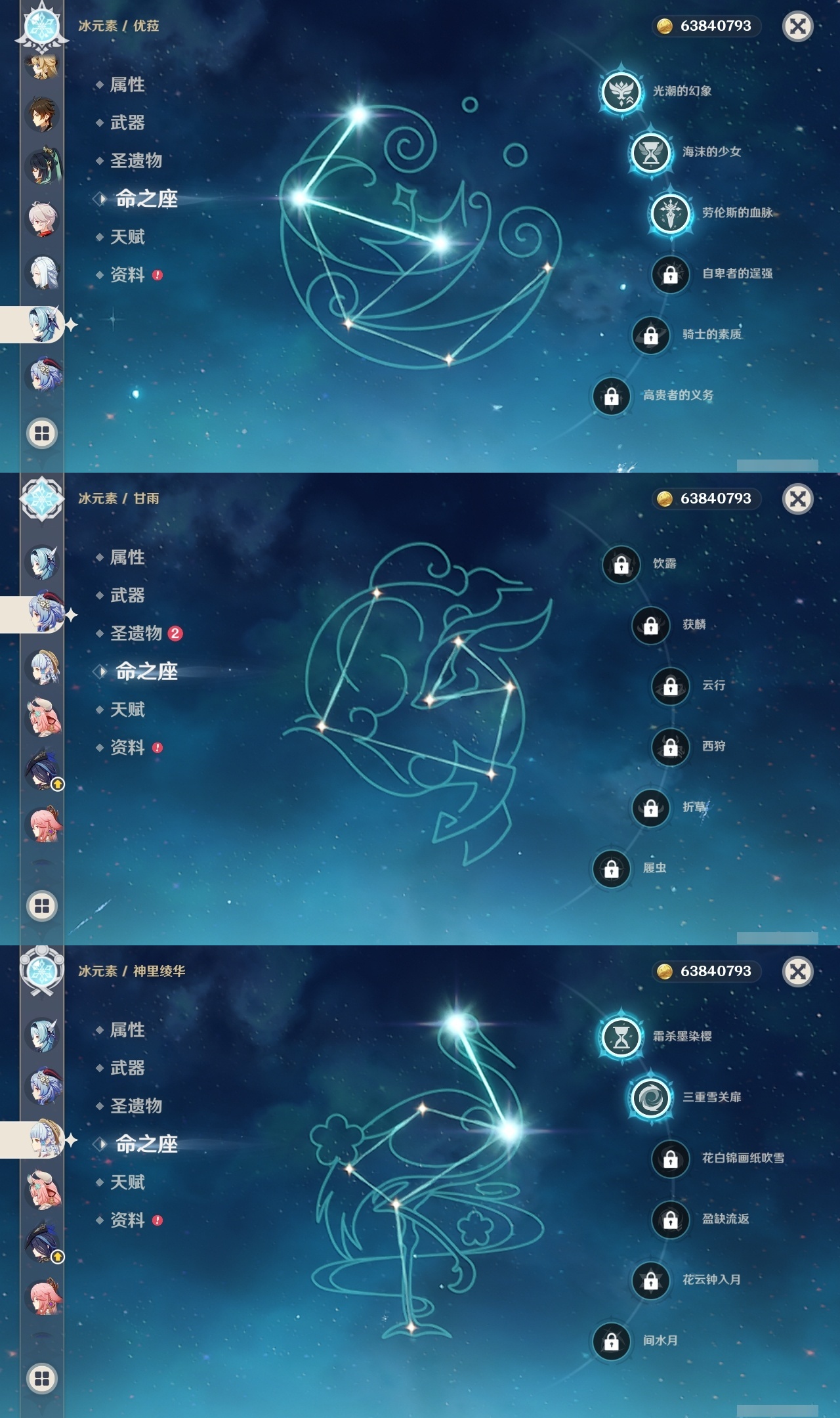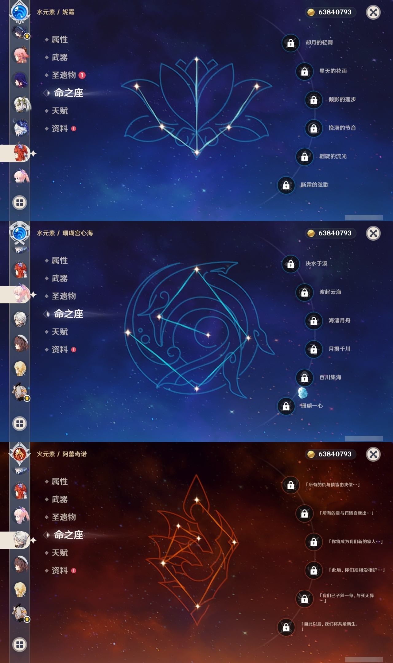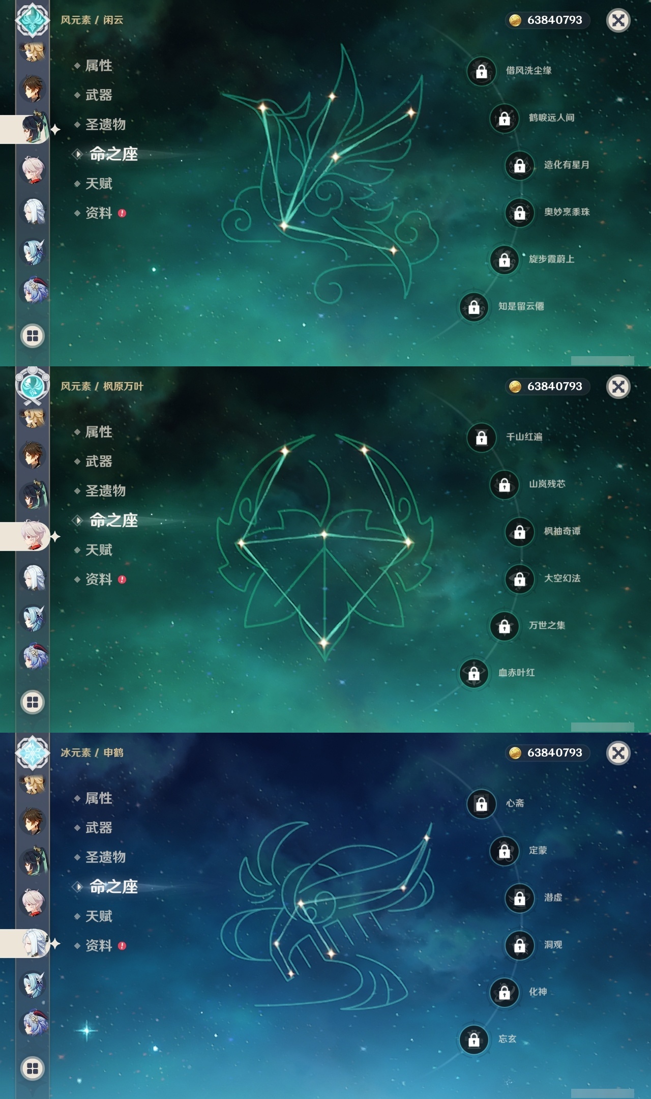 【原神】满命,冒险等级:60,五星数量:58,五星角色:芙宁娜 6命琴 6命夜兰 6命迪希雅 5命莫娜 5命七七 5命刻晴 4命胡桃 3命雷电将军 3命优菈 3命玛薇卡 2命神里绫华 2命纳西妲 2命迪卢克 1命八重神子 1命提纳里 1命玛拉妮珊瑚宫心海希诺宁温迪茜特菈莉钟离达达利亚申鹤瓦雷莎娜维娅闲云千织赛诺阿蕾奇诺妮露枫原万叶甘雨魈克洛琳德可莉__五星武器:天空之脊 5精狼的末路 3精和璞鸢 2精四风原典 2精终末嗟叹之诗 2精柔灯挽歌焚曜千阳静水流涌之辉裁断鹤鸣余音阿莫斯之弓苍古自由之誓护摩之杖松籁响起之时天空之傲天空之卷雾切之回光薙草之稻光波乱月白经津若水赤沙之杖__四星角色:班尼特 6命行秋 6命九条裟罗 6命香菱 6命久岐忍 6命鹿野院平藏 6命珐露珊 6命凝光 6命迪奥娜 6命砂糖 6命莱依拉 6命米卡 6命坎蒂丝 6命多莉 6命柯莱 6命芭芭拉 6命云堇 6命早柚 6命托马 6命烟绯 6命重云 6命辛焱 6命诺艾尔 6命罗莎莉亚 6命雷泽 6命菲谢尔 6命北斗 6命琳妮特 6命夏洛蒂 6命嘉明 6命赛索斯 6命瑶瑶 4命欧洛伦 4命五郎 4命卡齐娜 3命绮良良 3命菲米尼 3命夏沃蕾 3命伊安珊 3命伊法 2命卡维 1命埃洛伊蓝砚