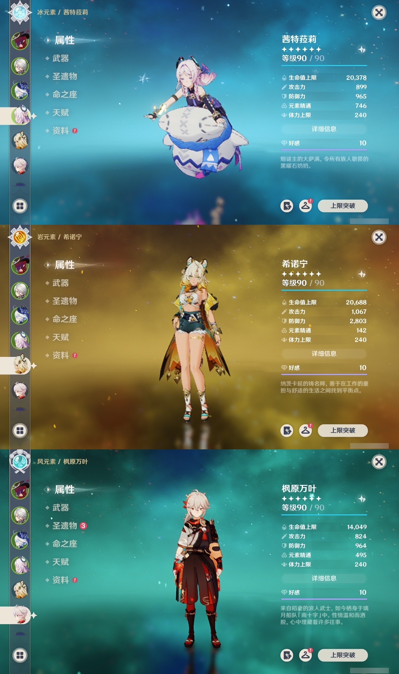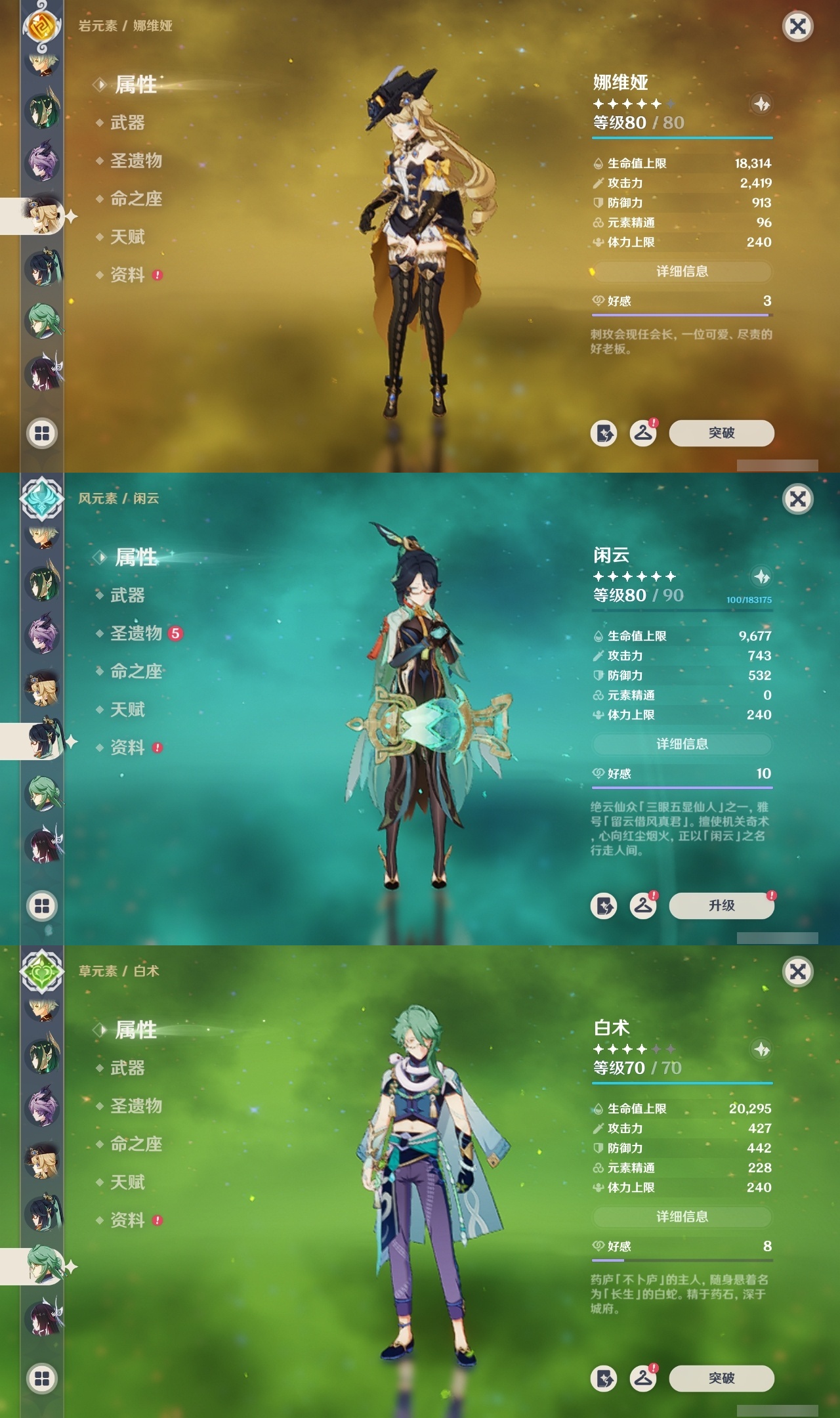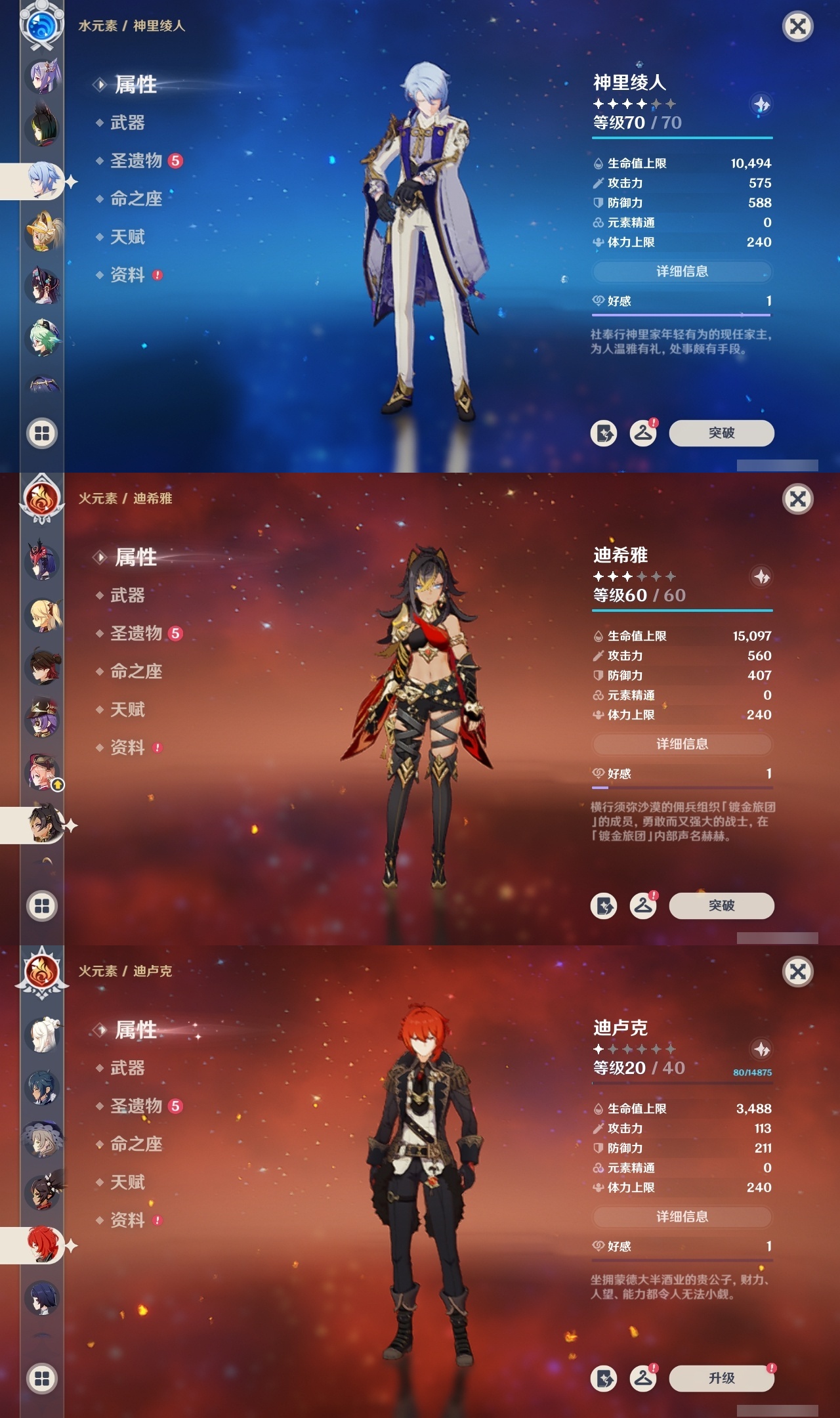 【原神】【lyys11226】冒险等级:59,五星数量:39,五星角色:芙宁娜 6命阿蕾奇诺 6命迪希雅 3命提纳里 3命迪卢克 2命雷电将军 2命莫娜 2命奈芙尔 1命刻晴 1命七七琴希诺宁白术神里绫华恰斯卡茜特菈莉神里绫人夜兰娜维娅闲云赛诺纳西妲杜林哥伦比娅枫原万叶甘雨胡桃__五星武器:静水流涌之辉 2精赤月之形 2精狼的末路 2精最初的大魔术裁断支离轮光风鹰剑和璞鸢天空之脊天空之翼__四星角色:卡齐娜 6命班尼特 6命行秋 6命九条裟罗 6命香菱 6命珐露珊 6命迪奥娜 6命多莉 6命柯莱 6命欧洛伦 6命诺艾尔 6命罗莎莉亚 6命菲谢尔 6命菲米尼 6命琳妮特 6命嘉明 6命久岐忍 5命米卡 5命坎蒂丝 5命云堇 5命绮良良 4命北斗 4命夏洛蒂 4命鹿野院平藏 3命凝光 3命砂糖 3命瑶瑶 3命莱依拉 3命辛焱 3命夏沃蕾 3命赛索斯 3命芭芭拉 2命托马 2命五郎 2命烟绯 2命重云 2命雷泽 2命卡维 1命奇偶·女性奇偶·男性蓝砚早柚爱诺