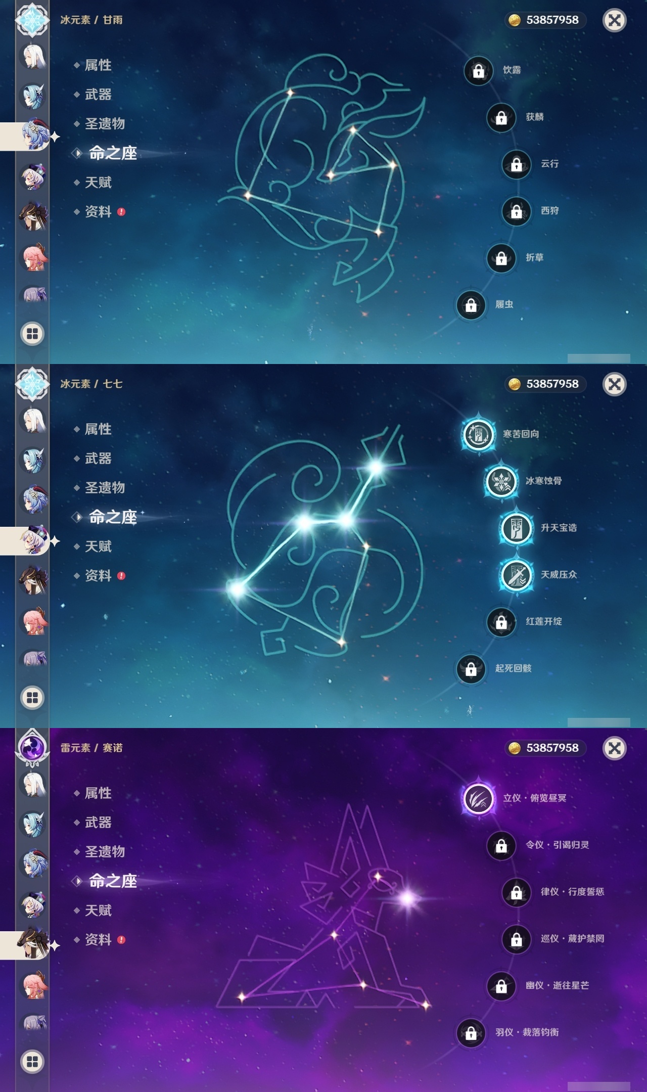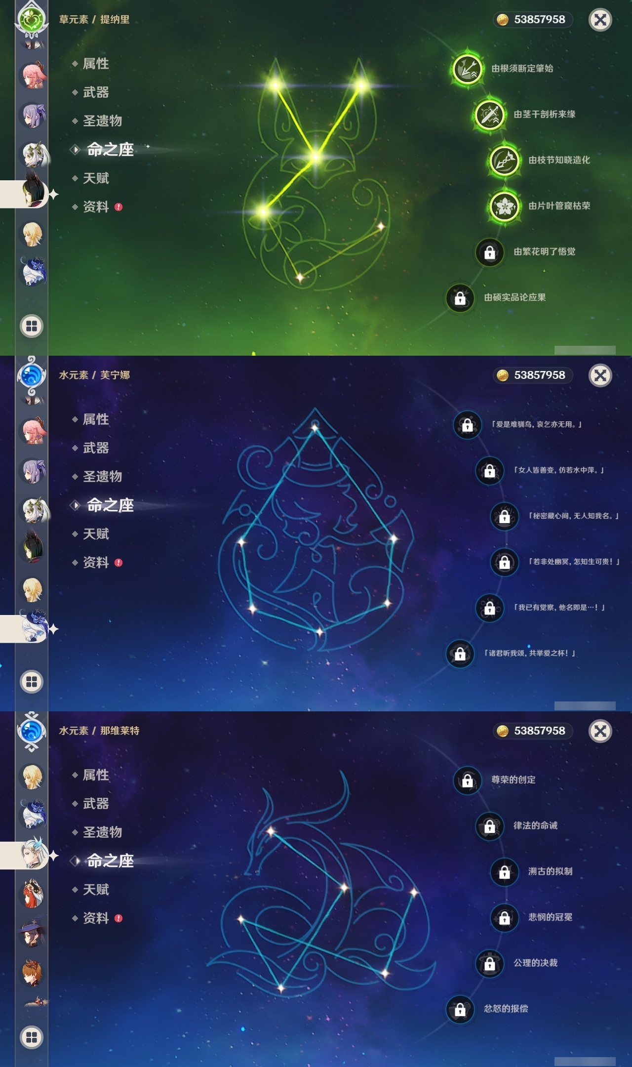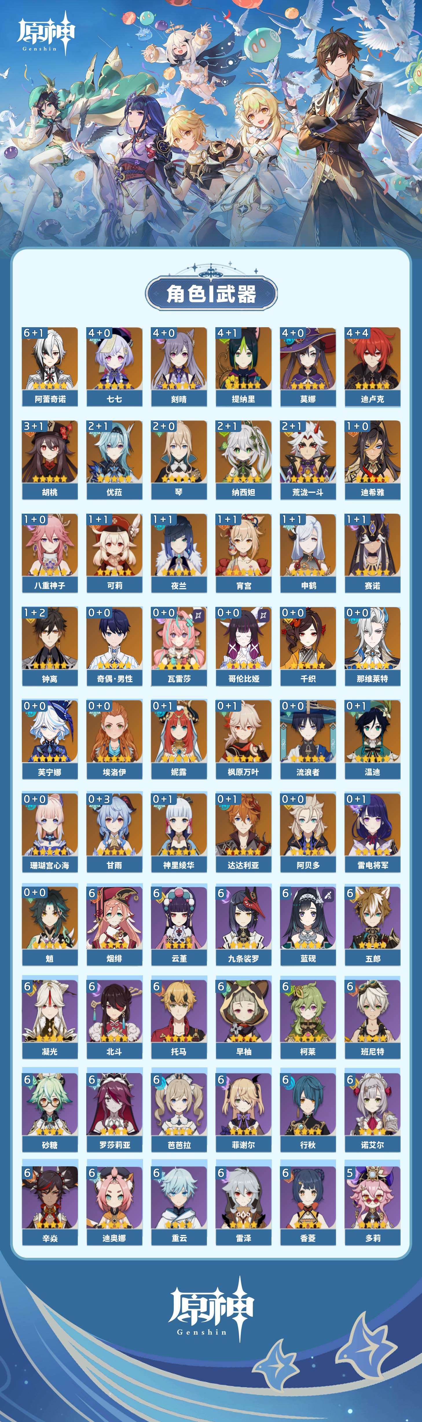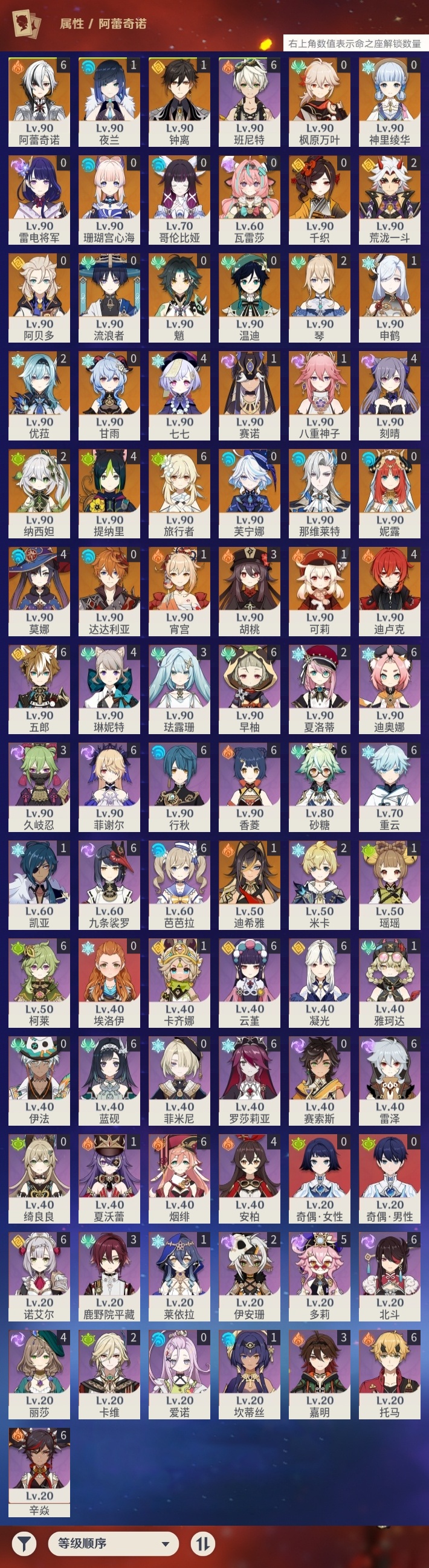 【原神】【lyys11225】冒险等级:60,五星数量:63,五星角色:阿蕾奇诺 6命迪卢克 4命刻晴 4命莫娜 4命七七 4命提纳里 4命胡桃 3命琴 2命优菈 2命荒泷一斗 2命纳西妲 2命迪希雅 1命可莉 1命宵宫 1命钟离 1命申鹤 1命八重神子 1命夜兰 1命赛诺 1命珊瑚宫心海神里绫华温迪达达利亚瓦雷莎阿贝多那维莱特芙宁娜千织妮露流浪者哥伦比娅枫原万叶甘雨魈雷电将军__五星武器:天空之傲 5精天空之刃 5精狼的末路 4精阿莫斯之弓 3精贯虹之槊 2精赤月之形苍古自由之誓飞雷之弦振风鹰剑护摩之杖四风原典松籁响起之时天空之脊无工之剑雾切之回光薙草之稻光终末嗟叹之诗赤角石溃杵冬极白星息灾若水猎人之径赤沙之杖圣显之钥千夜浮梦__四星角色:班尼特 6命行秋 6命九条裟罗 6命香菱 6命凝光 6命迪奥娜 6命砂糖 6命柯莱 6命芭芭拉 6命云堇 6命蓝砚 6命早柚 6命托马 6命五郎 6命烟绯 6命重云 6命辛焱 6命诺艾尔 6命罗莎莉亚 6命雷泽 6命菲谢尔 6命北斗 6命多莉 5命琳妮特 4命久岐忍 3命鹿野院平藏 3命珐露珊 3命嘉明 3命米卡 2命卡维 2命夏洛蒂 2命伊安珊 2命卡齐娜 1命瑶瑶 1命莱依拉 1命坎蒂丝 1命夏沃蕾 1命埃洛伊奇偶·女性奇偶·男性绮良良菲米尼伊法爱诺赛索斯
