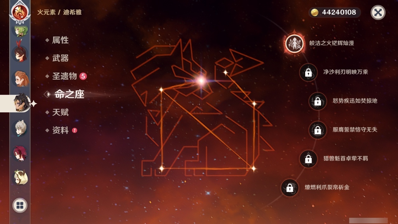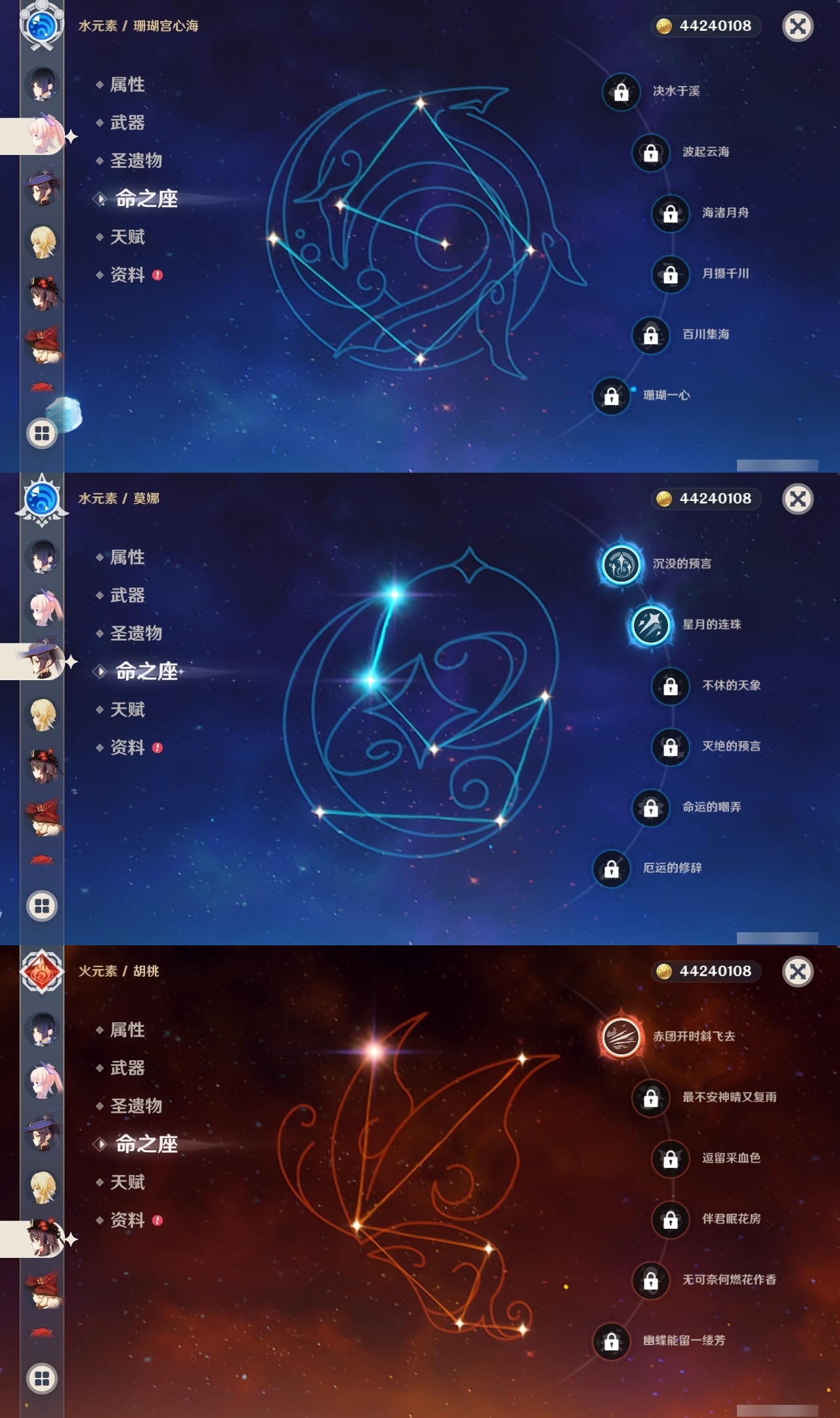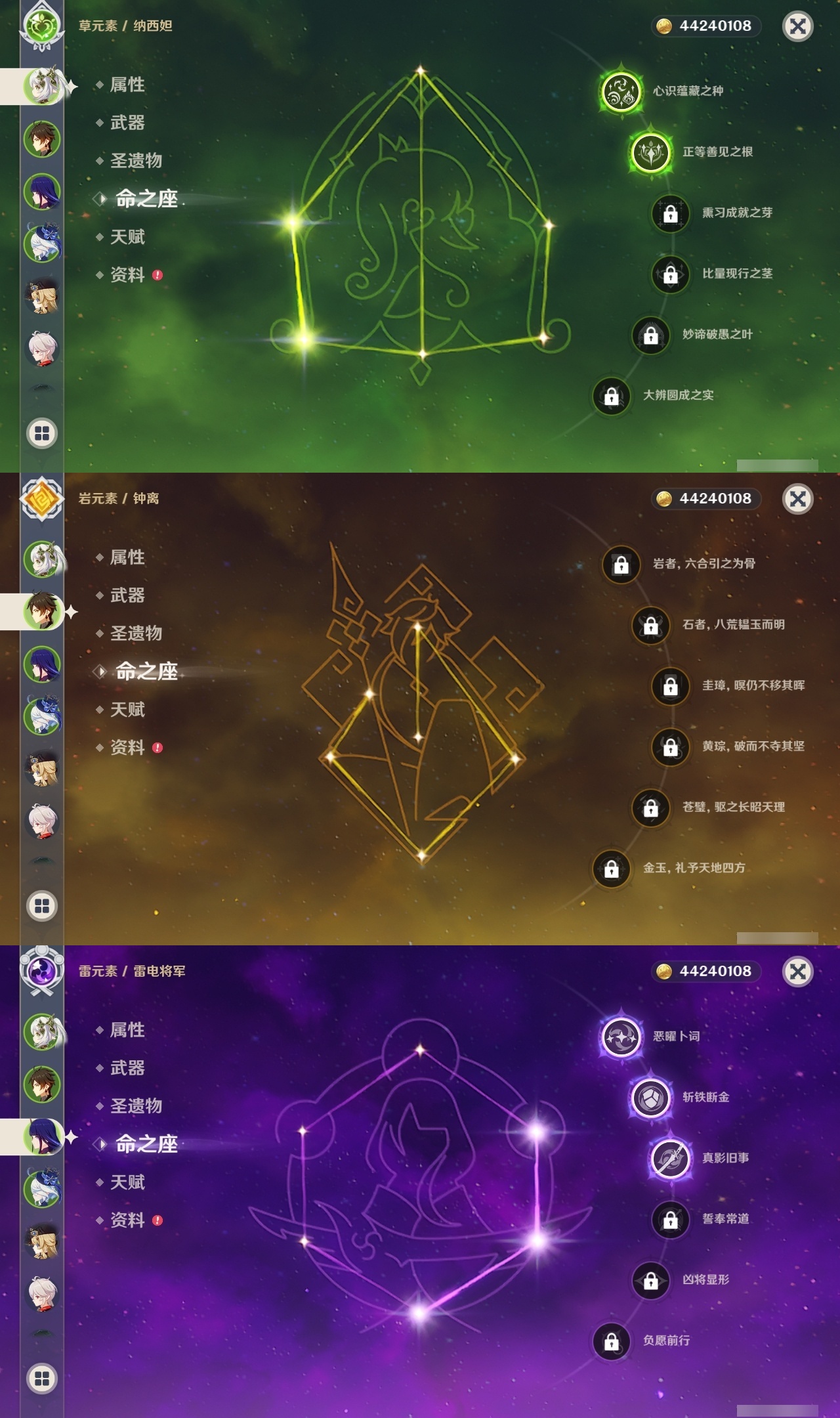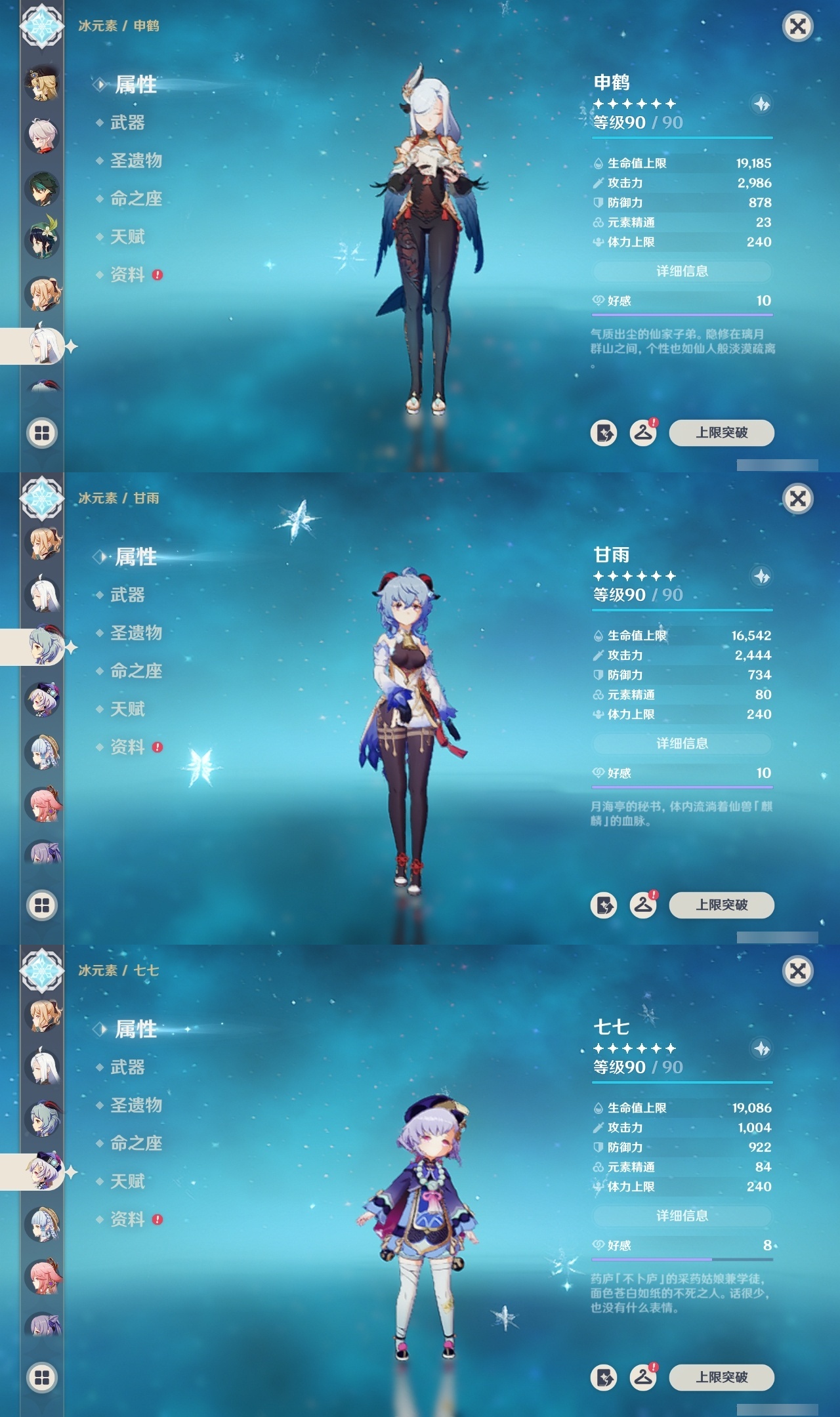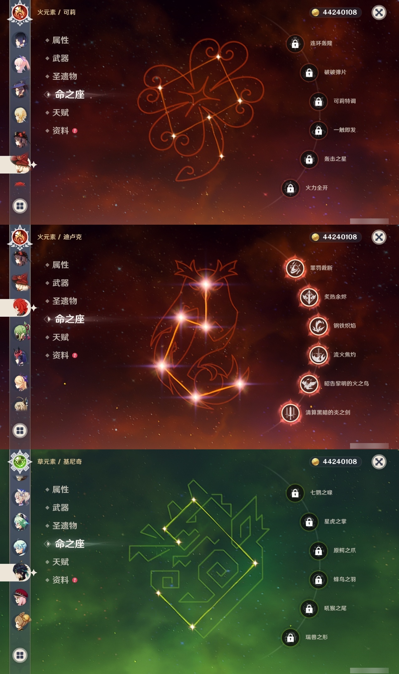 【原神】满命,冒险等级:60,五星数量:41,五星角色:芙宁娜 6命迪卢克 6命刻晴 6命雷电将军 3命七七 3命莫娜 2命申鹤 2命夜兰 2命纳西妲 2命迪希雅 1命胡桃 1命琴 1命基尼奇珊瑚宫心海神里绫华温迪钟离八重神子神里绫人娜维娅妮露枫原万叶甘雨魈可莉__五星武器:风鹰剑 2精和璞鸢 2精静水流涌之辉飞雷之弦振护摩之杖狼的末路磐岩结绿四风原典天空之傲天空之卷天空之刃雾切之回光薙草之稻光神乐之真意千夜浮梦__四星角色:班尼特 6命行秋 6命九条裟罗 6命香菱 6命凝光 6命迪奥娜 6命砂糖 6命莱依拉 6命柯莱 6命芭芭拉 6命云堇 6命早柚 6命托马 6命烟绯 6命重云 6命辛焱 6命诺艾尔 6命罗莎莉亚 6命雷泽 6命菲谢尔 6命北斗 6命夏洛蒂 6命久岐忍 4命坎蒂丝 4命绮良良 3命多莉 3命鹿野院平藏 2命珐露珊 1命欧洛伦 1命五郎 1命琳妮特 1命夏沃蕾 1命埃洛伊瑶瑶菲米尼