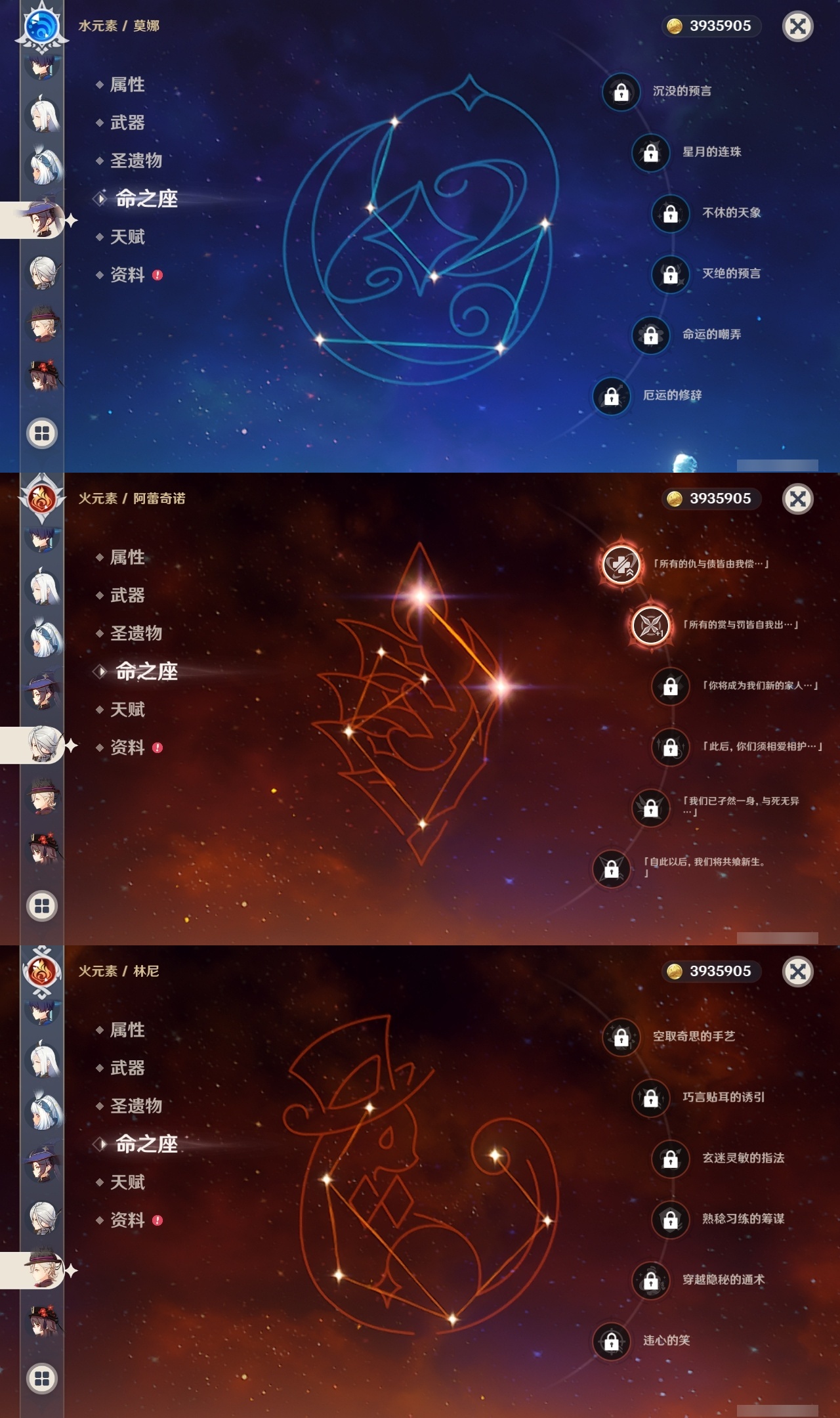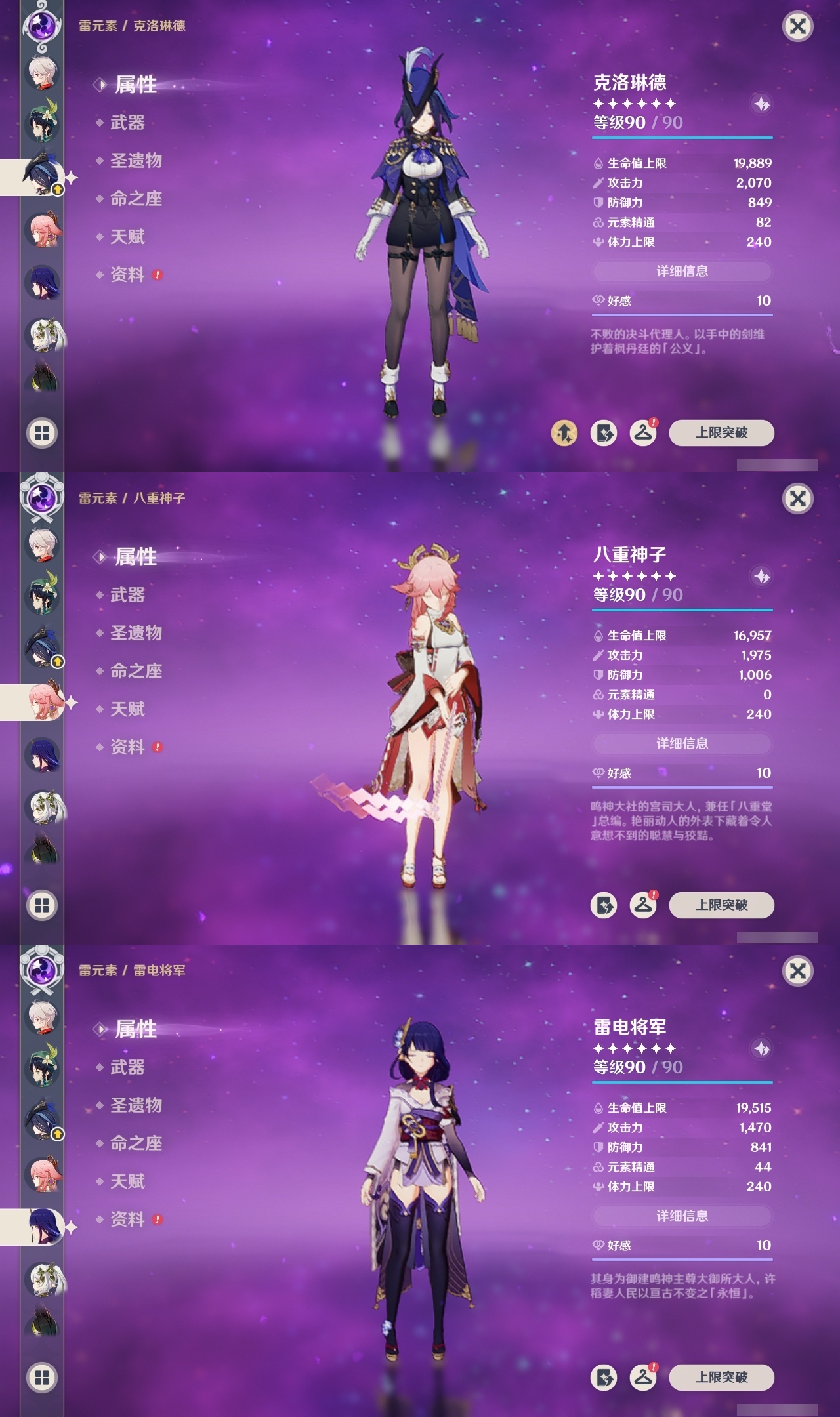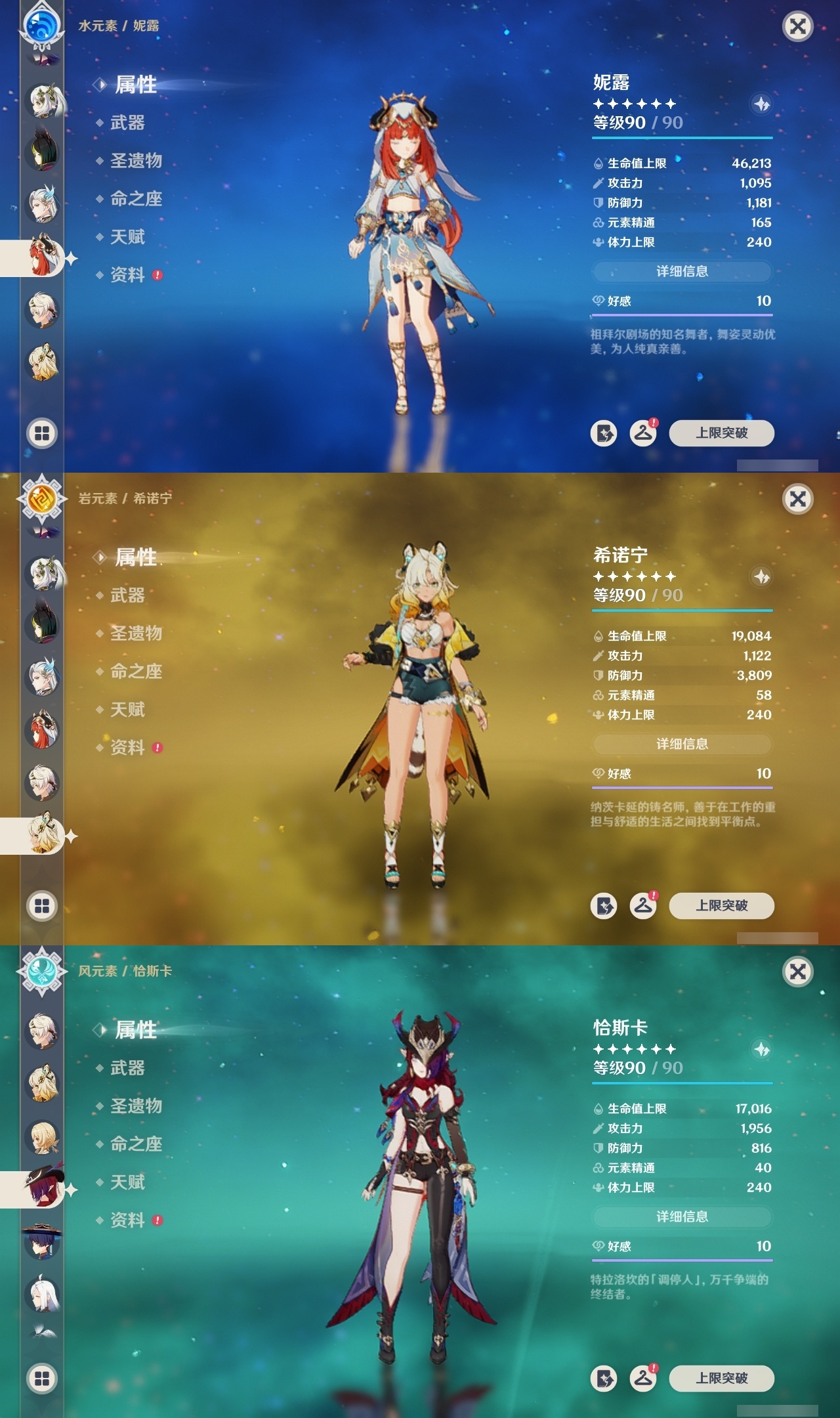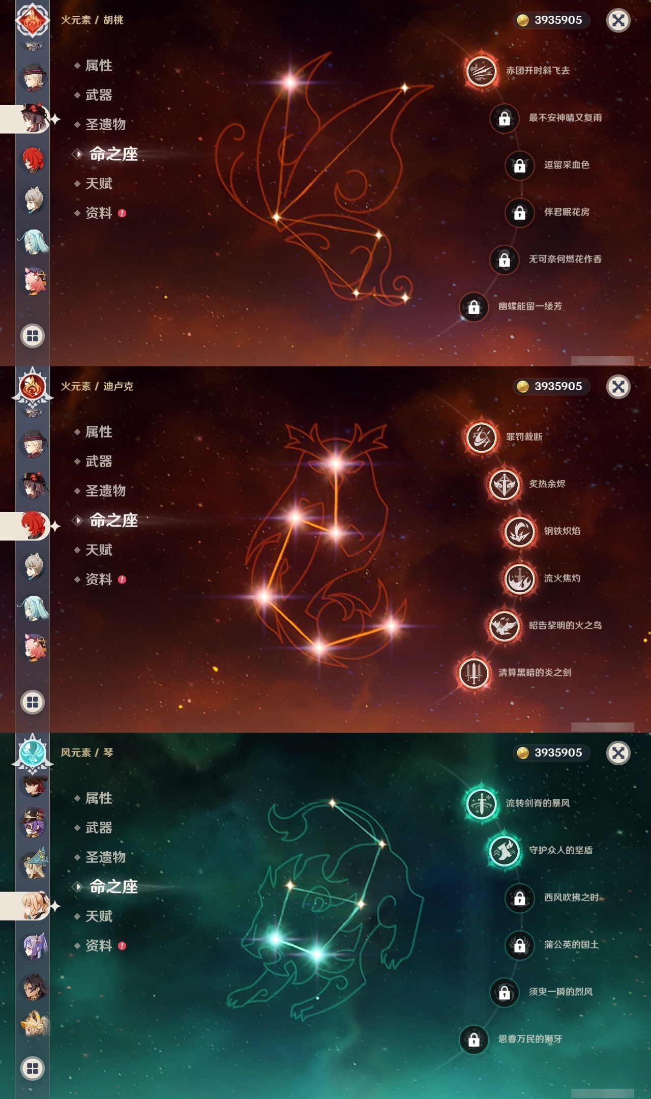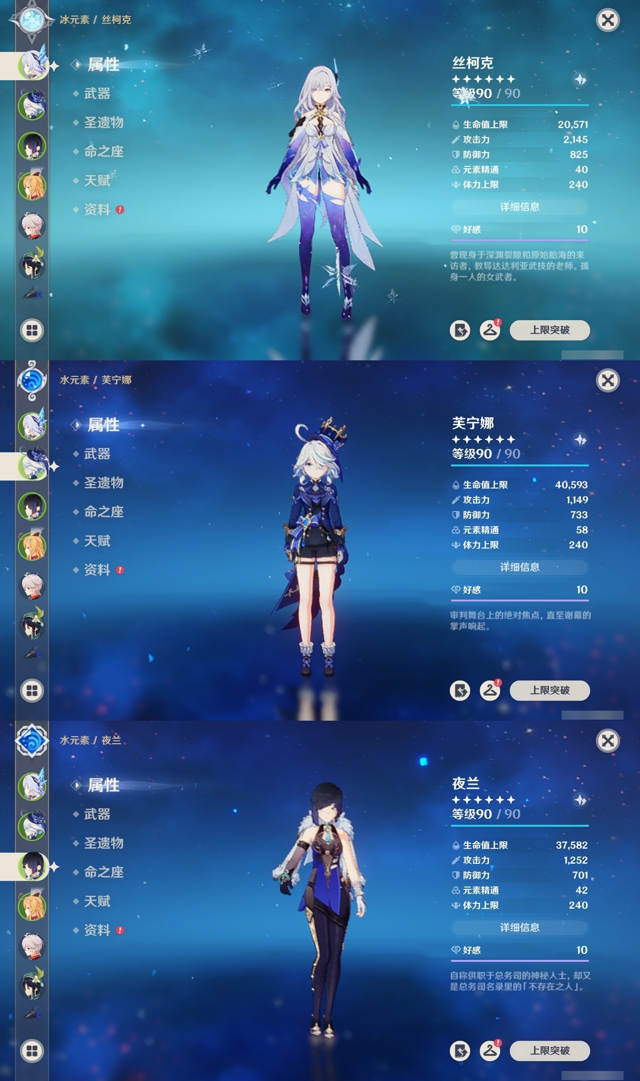 【原神】【lyys10881】冒险等级:60,五星数量:50,五星角色:迪卢克 6命希诺宁 4命芙宁娜 4命刻晴 4命雷电将军 3命七七 3命提纳里 3命阿蕾奇诺 2命琴 2命迪希雅 1命那维莱特 1命胡桃 1命夜兰 1命莫娜玛拉妮温迪恰斯卡梦见月瑞希申鹤八重神子林尼爱可菲丝柯克妮露纳西妲流浪者枫原万叶克洛琳德__五星武器:苍古自由之誓 2精四风原典 2精天空之翼 2精冲浪时光最初的大魔术静水流涌之辉苍耀图莱杜拉的回忆阿莫斯之弓飞雷之弦振风鹰剑和璞鸢护摩之杖狼的末路天空之脊薙草之稻光神乐之真意若水千夜浮梦赦罪__四星角色:班尼特 6命行秋 6命九条裟罗 6命香菱 6命久岐忍 6命珐露珊 6命凝光 6命迪奥娜 6命砂糖 6命瑶瑶 6命莱依拉 6命米卡 6命坎蒂丝 6命多莉 6命柯莱 6命芭芭拉 6命早柚 6命托马 6命五郎 6命烟绯 6命重云 6命辛焱 6命罗莎莉亚 6命菲谢尔 6命北斗 6命琳妮特 6命夏洛蒂 6命夏沃蕾 6命赛索斯 6命诺艾尔 5命欧洛伦 4命云堇 4命蓝砚 4命嘉明 4命绮良良 3命雷泽 3命卡齐娜 2命鹿野院平藏 2命伊法 2命伊安珊 2命菲米尼 1命爱诺 1命奇偶·女性奇偶·男性卡维塔利雅