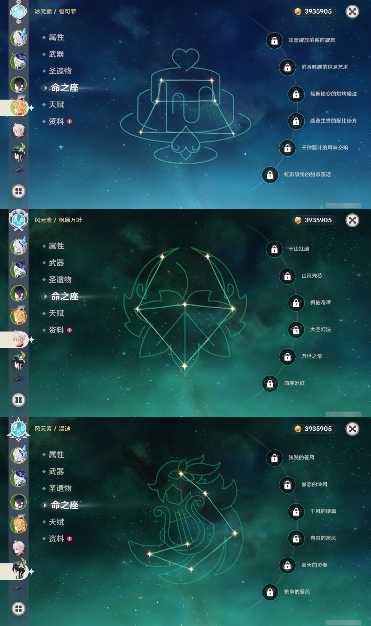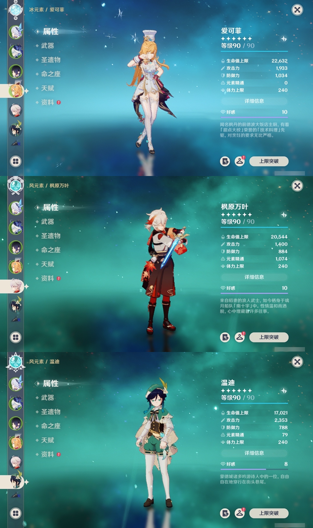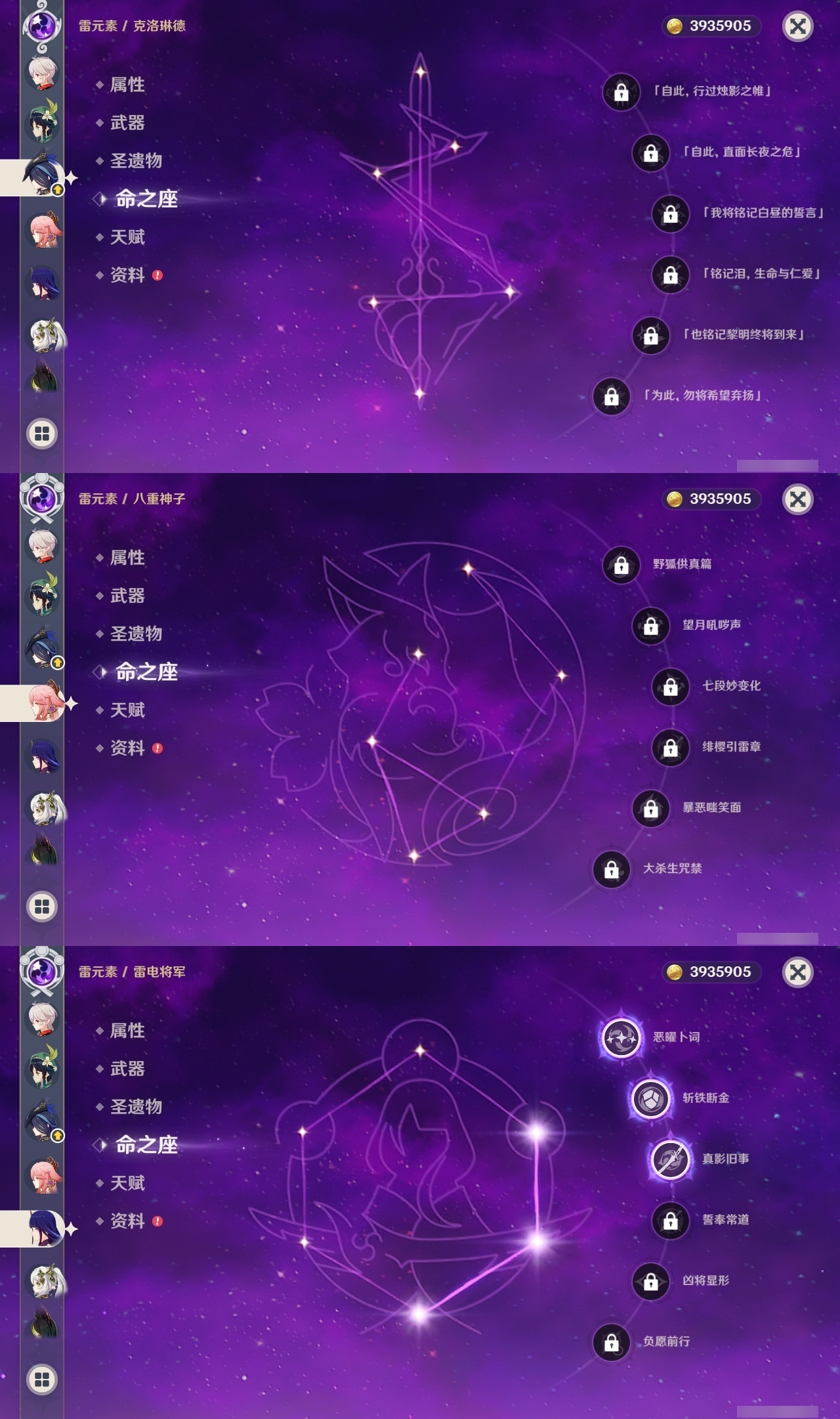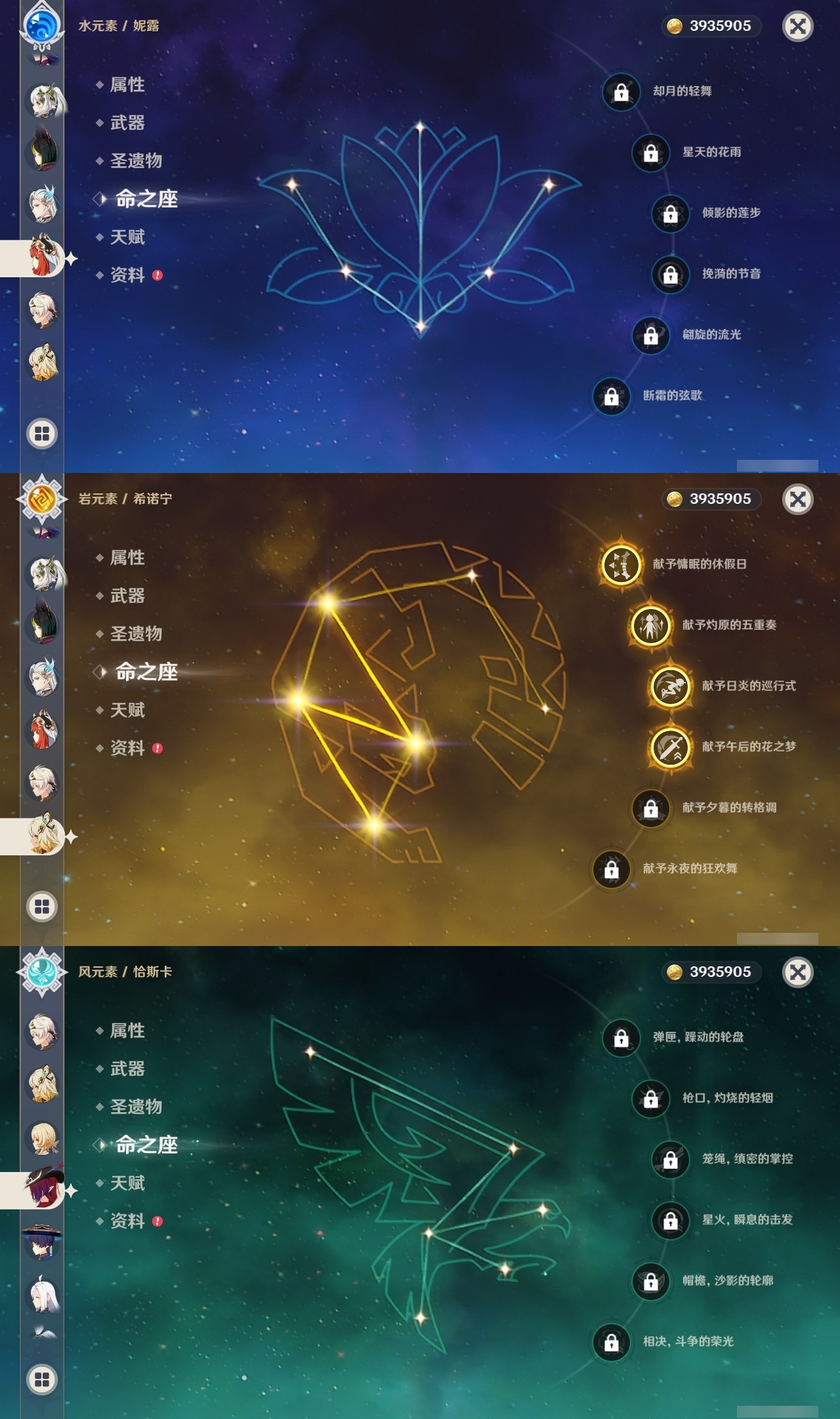 【原神】【lyys10881】冒险等级:60,五星数量:50,五星角色:迪卢克 6命希诺宁 4命芙宁娜 4命刻晴 4命雷电将军 3命七七 3命提纳里 3命阿蕾奇诺 2命琴 2命迪希雅 1命那维莱特 1命胡桃 1命夜兰 1命莫娜玛拉妮温迪恰斯卡梦见月瑞希申鹤八重神子林尼爱可菲丝柯克妮露纳西妲流浪者枫原万叶克洛琳德__五星武器:苍古自由之誓 2精四风原典 2精天空之翼 2精冲浪时光最初的大魔术静水流涌之辉苍耀图莱杜拉的回忆阿莫斯之弓飞雷之弦振风鹰剑和璞鸢护摩之杖狼的末路天空之脊薙草之稻光神乐之真意若水千夜浮梦赦罪__四星角色:班尼特 6命行秋 6命九条裟罗 6命香菱 6命久岐忍 6命珐露珊 6命凝光 6命迪奥娜 6命砂糖 6命瑶瑶 6命莱依拉 6命米卡 6命坎蒂丝 6命多莉 6命柯莱 6命芭芭拉 6命早柚 6命托马 6命五郎 6命烟绯 6命重云 6命辛焱 6命罗莎莉亚 6命菲谢尔 6命北斗 6命琳妮特 6命夏洛蒂 6命夏沃蕾 6命赛索斯 6命诺艾尔 5命欧洛伦 4命云堇 4命蓝砚 4命嘉明 4命绮良良 3命雷泽 3命卡齐娜 2命鹿野院平藏 2命伊法 2命伊安珊 2命菲米尼 1命爱诺 1命奇偶·女性奇偶·男性卡维塔利雅