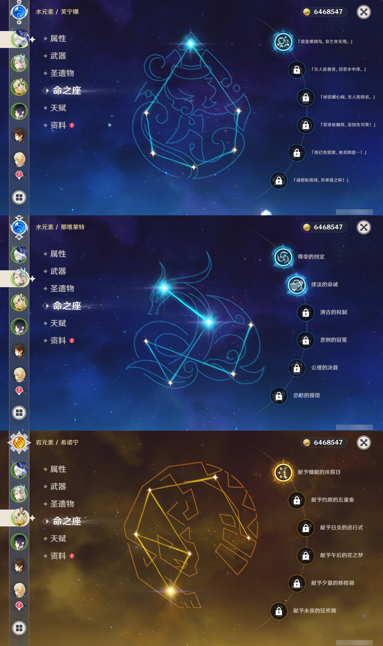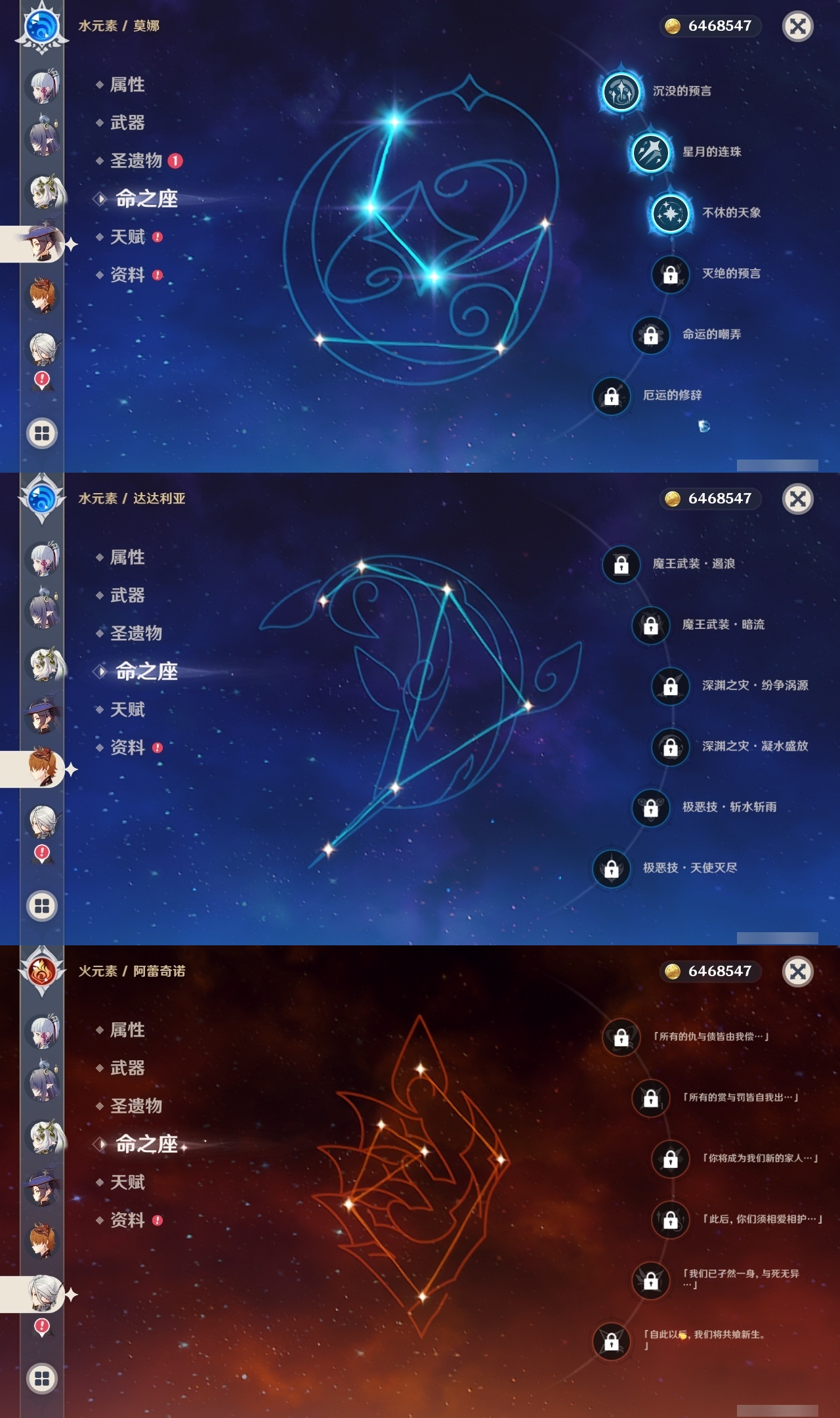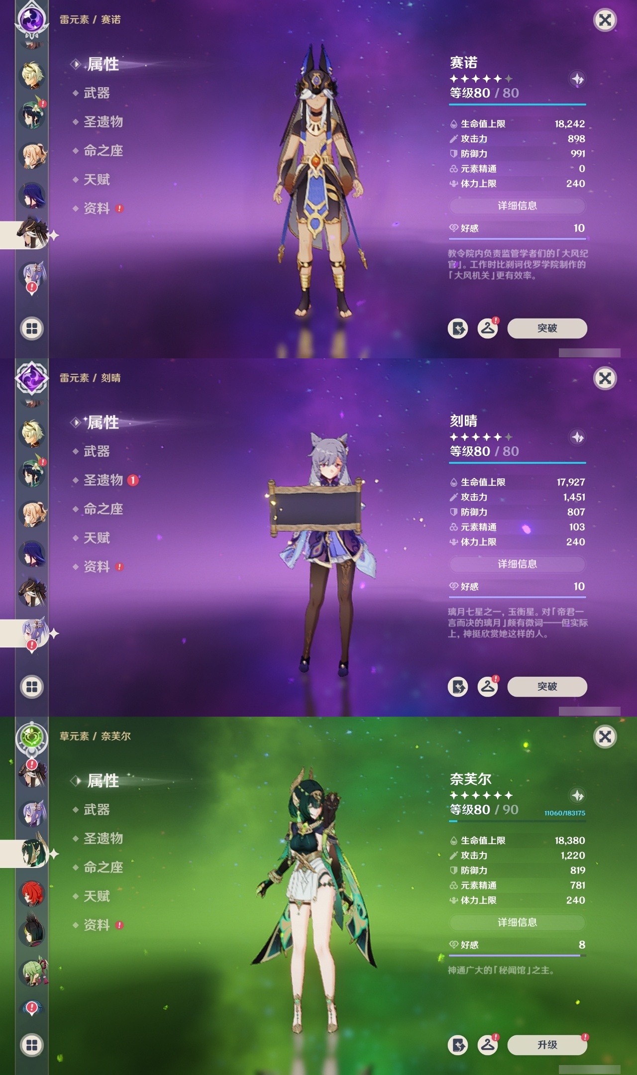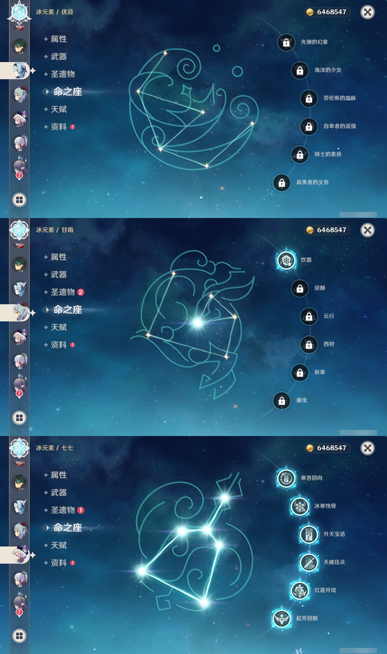 【原神】【lyys11242】冒险等级:60,五星数量:44,五星角色:七七 6命迪卢克 3命胡桃 3命莫娜 3命琴 3命那维莱特 2命刻晴 2命提纳里 2命赛诺 2命希诺宁 1命芙宁娜 1命奈芙尔 1命枫原万叶 1命甘雨 1命雷电将军 1命夜兰 1命神里绫华温迪宵宫优菈钟离达达利亚林尼闲云阿蕾奇诺纳西妲菈乌玛流浪者魈__五星武器:阿莫斯之弓 2精终末嗟叹之诗 2精岩峰巡歌真语秘匣苍古自由之誓飞雷之弦振风鹰剑和璞鸢护摩之杖四风原典天空之卷无工之剑__四星角色:班尼特 6命行秋 6命九条裟罗 6命香菱 6命鹿野院平藏 6命珐露珊 6命凝光 6命迪奥娜 6命砂糖 6命瑶瑶 6命柯莱 6命芭芭拉 6命早柚 6命托马 6命五郎 6命烟绯 6命重云 6命辛焱 6命诺艾尔 6命罗莎莉亚 6命菲谢尔 6命北斗 6命夏沃蕾 6命嘉明 6命坎蒂丝 5命米卡 4命云堇 4命琳妮特 4命赛索斯 4命多莉 3命夏洛蒂 3命伊法 3命卡齐娜 2命久岐忍 2命绮良良 2命莱依拉 2命卡维 2命雷泽 2命菲米尼 2命伊安珊 1命埃洛伊奇偶·女性奇偶·男性欧洛伦爱诺