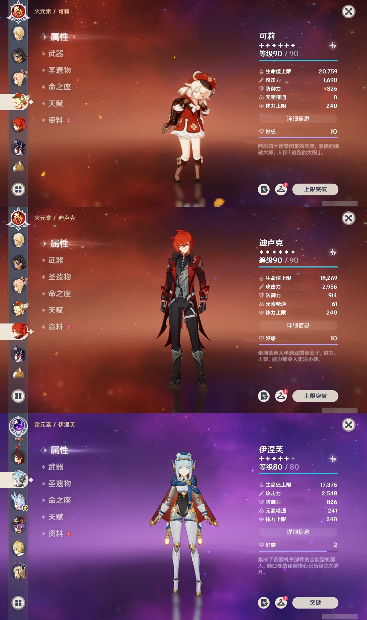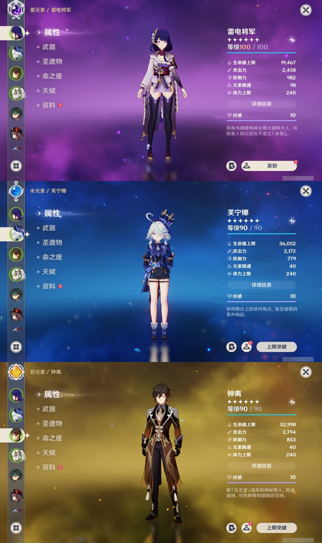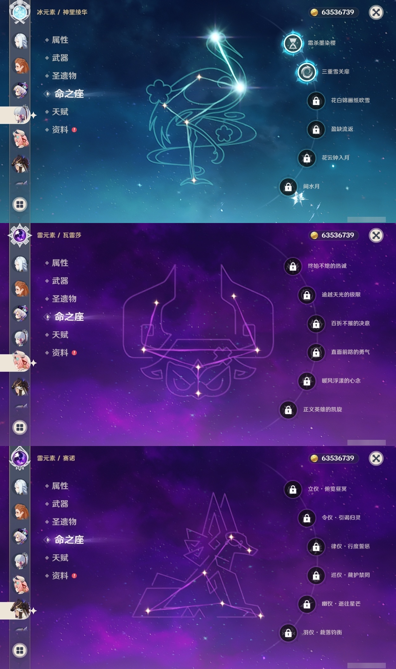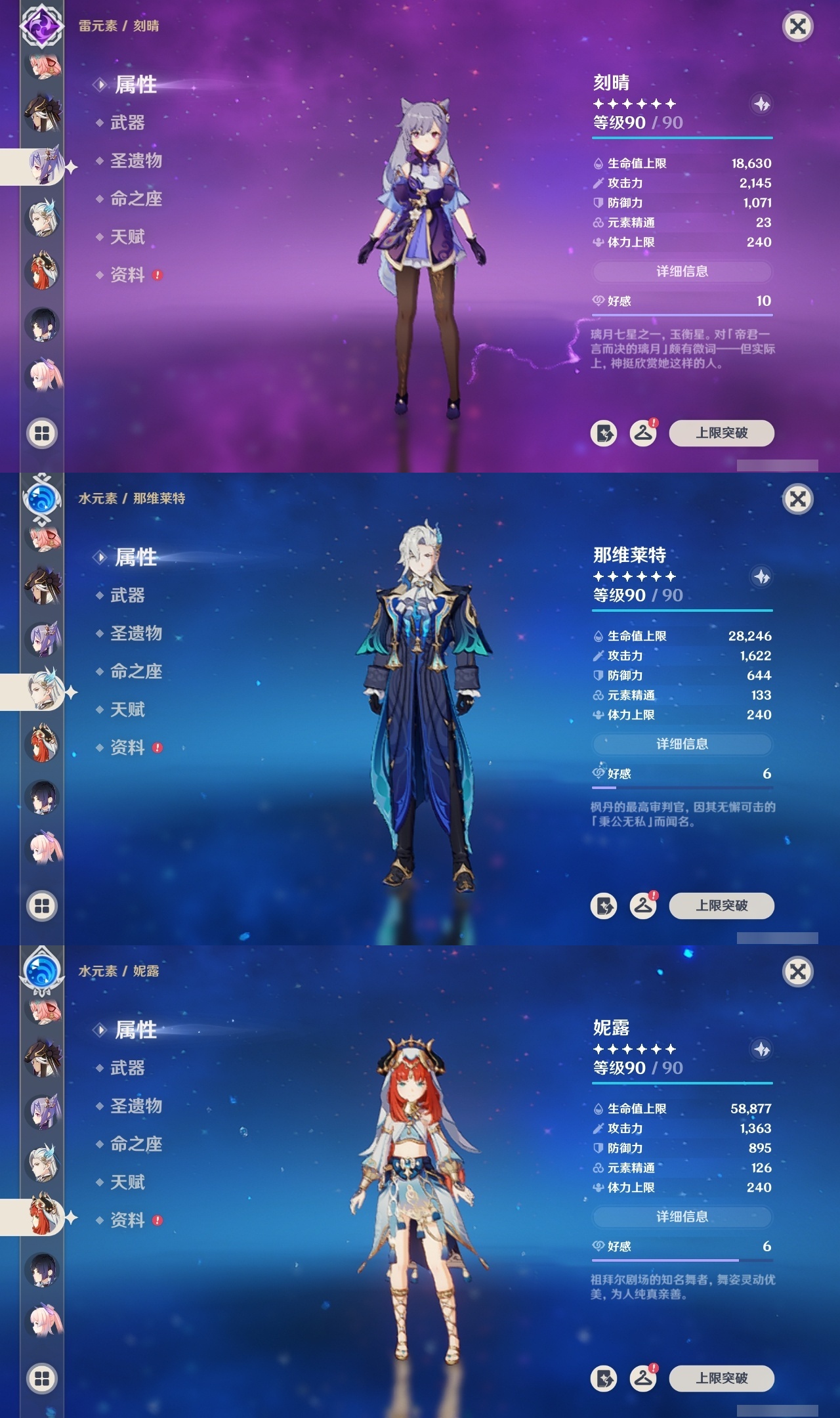 【原神】3满命,冒险等级:60,五星数量:54,五星角色:达达利亚 6命迪卢克 6命甘雨 6命魈 6命胡桃 6命可莉 6命刻晴 6命莫娜 6命七七 6命琴 6命温迪 6命钟离 6命纳西妲 6命雷电将军 3命枫原万叶 2命神里绫华 2命迪希雅 1命阿贝多 1命夜兰 1命珊瑚宫心海希诺宁宵宫申鹤瓦雷莎那维莱特芙宁娜娜维娅赛诺妮露伊涅芙希格雯__五星武器:阿莫斯之弓 5精和璞鸢 5精护摩之杖 5精磐岩结绿 5精天空之翼 5精天空之傲 4精狼的末路 3精四风原典 3精风鹰剑 2精天空之脊 2精波乱月白经津 2精鹤鸣余音裁叶萃光苍古自由之誓飞雷之弦振雾切之回光薙草之稻光息灾贯虹之槊千夜浮梦赦罪__四星角色:班尼特 6命行秋 6命九条裟罗 6命香菱 6命久岐忍 6命鹿野院平藏 6命珐露珊 6命凝光 6命迪奥娜 6命砂糖 6命米卡 6命坎蒂丝 6命多莉 6命芭芭拉 6命云堇 6命早柚 6命托马 6命烟绯 6命重云 6命辛焱 6命诺艾尔 6命罗莎莉亚 6命雷泽 6命菲谢尔 6命北斗 6命嘉明 6命卡维 5命瑶瑶 4命柯莱 4命五郎 4命夏沃蕾 4命莱依拉 3命琳妮特 3命伊安珊 3命夏洛蒂 2命赛索斯 2命欧洛伦 1命伊法 1命埃洛伊奇偶·男性卡齐娜绮良良菲米尼爱诺