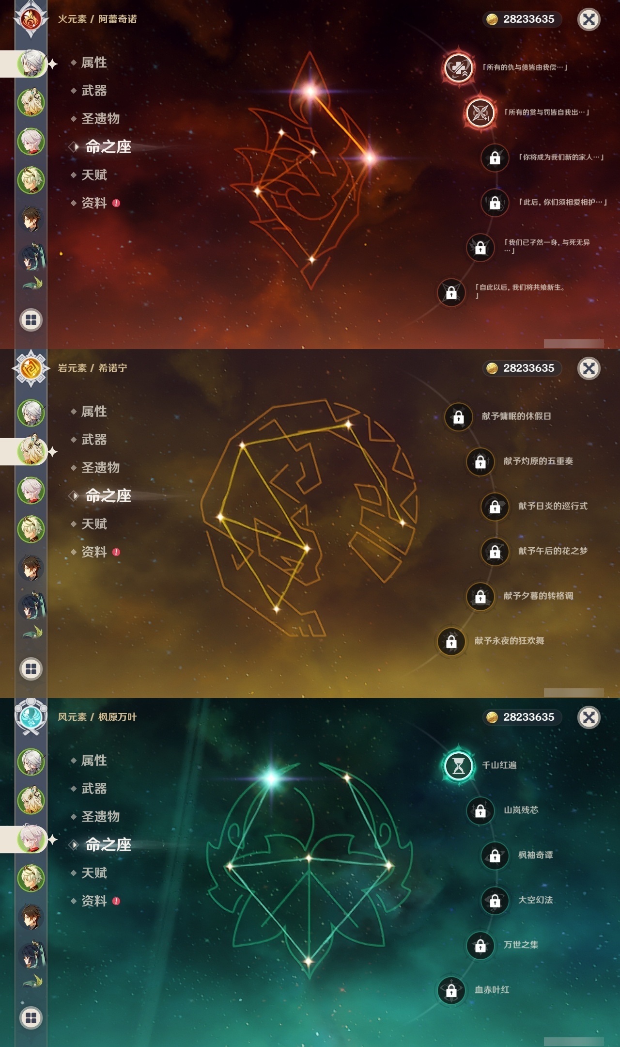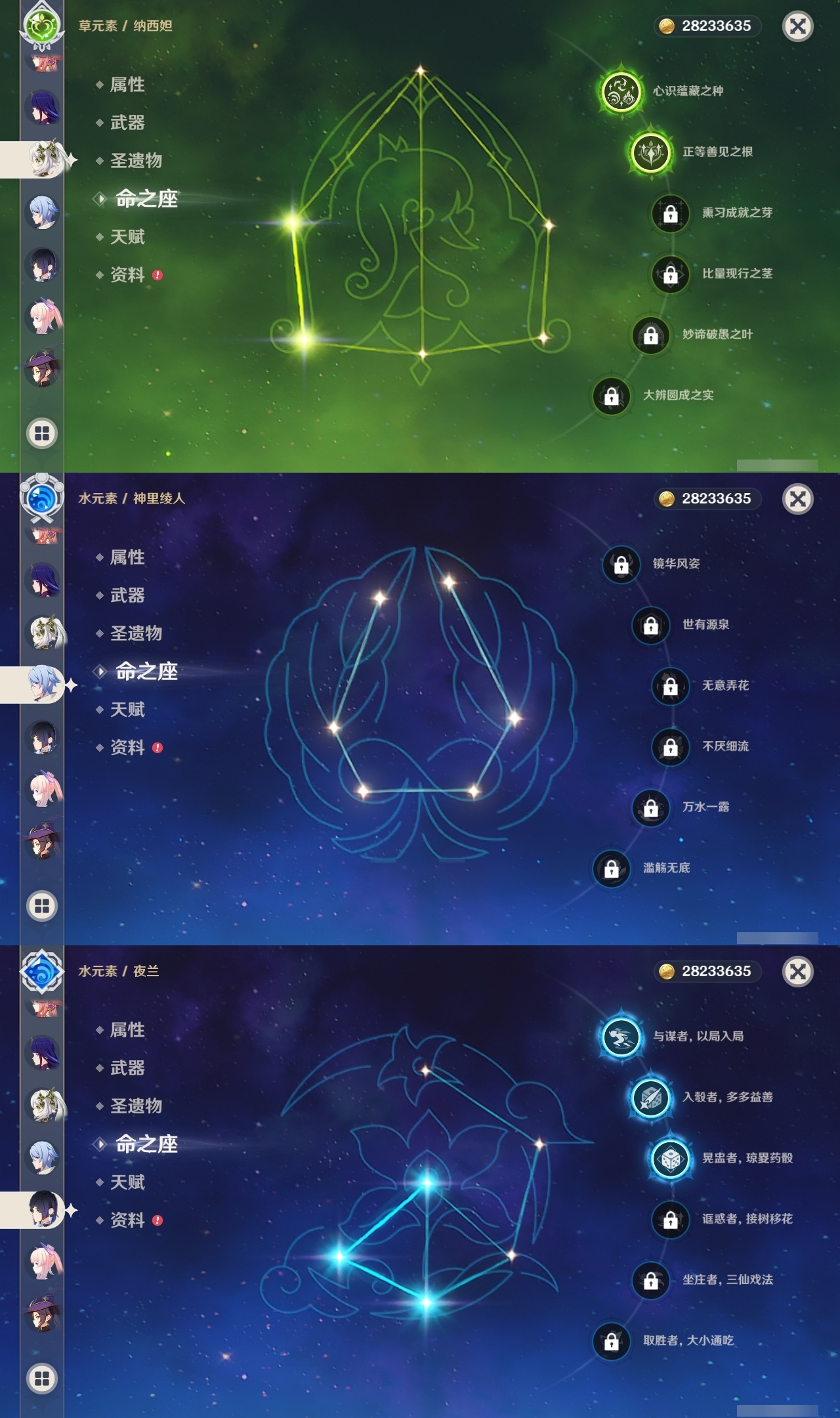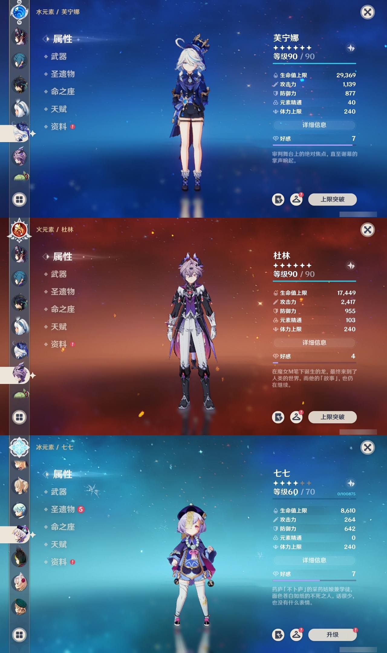 【原神】【lyys11254】冒险等级:60,五星数量:41,五星角色:莫娜 5命刻晴 3命夜兰 3命芙宁娜 2命阿蕾奇诺 2命雷电将军 2命纳西妲 2命枫原万叶 1命胡桃 1命七七 1命琴 1命提纳里 1命玛拉妮基尼奇珊瑚宫心海希诺宁神里绫华温迪迪希雅钟离八重神子神里绫人闲云杜林迪卢克可莉__五星武器:最初的大魔术 3精阿莫斯之弓 2精冲浪时光岩峰巡歌赤月之形苍古自由之誓护摩之杖四风原典天空之卷天空之刃天空之翼雾切之回光薙草之稻光若水__四星角色:班尼特 6命行秋 6命香菱 6命鹿野院平藏 6命珐露珊 6命凝光 6命迪奥娜 6命砂糖 6命瑶瑶 6命坎蒂丝 6命多莉 6命柯莱 6命芭芭拉 6命云堇 6命早柚 6命托马 6命烟绯 6命辛焱 6命诺艾尔 6命雷泽 6命菲谢尔 6命北斗 6命久岐忍 5命罗莎莉亚 5命嘉明 5命莱依拉 4命重云 4命夏沃蕾 4命九条裟罗 3命米卡 2命五郎 2命菲米尼 2命琳妮特 2命夏洛蒂 2命卡齐娜 1命蓝砚 1命伊安珊 1命爱诺 1命奇偶·女性绮良良欧洛伦伊法赛索斯