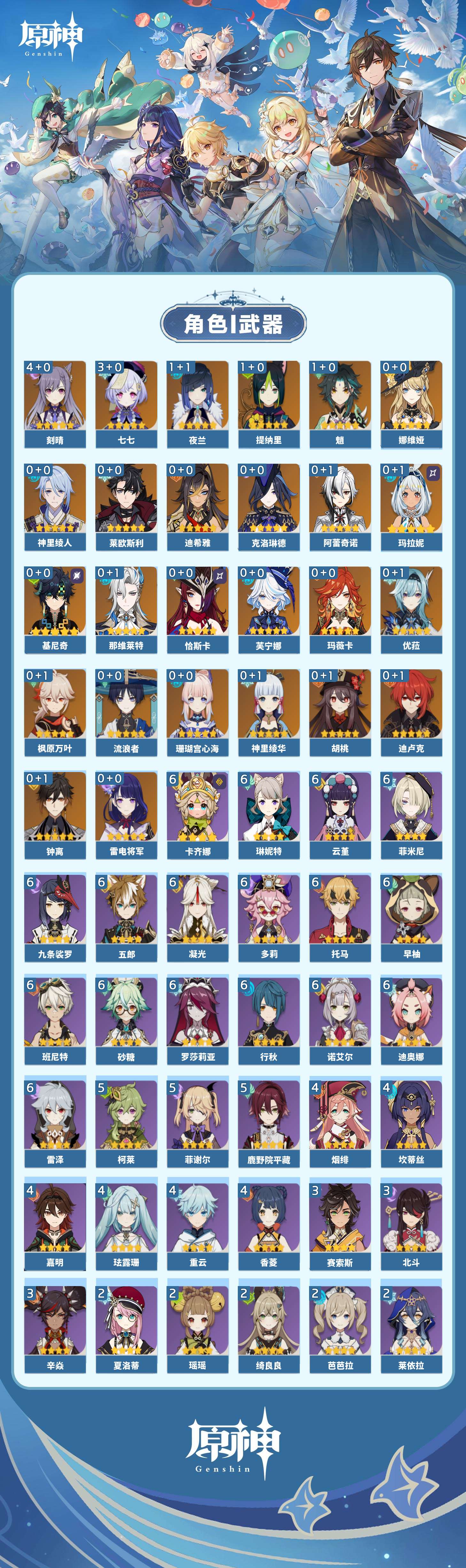 【原神】【lyys11247】冒险等级:60,五星数量:42,五星角色:刻晴 4命七七 3命魈 1命夜兰 1命提纳里 1命玛拉妮基尼奇珊瑚宫心海神里绫华恰斯卡玛薇卡优菈迪希雅钟离神里绫人那维莱特莱欧斯利芙宁娜娜维娅阿蕾奇诺流浪者迪卢克枫原万叶胡桃克洛琳德雷电将军__五星武器:冲浪时光万世流涌大典赤月之形苍古自由之誓飞雷之弦振护摩之杖狼的末路四风原典松籁响起之时天空之傲天空之卷天空之翼雾切之回光贯虹之槊若水白雨心弦__四星角色:卡齐娜 6命班尼特 6命行秋 6命九条裟罗 6命凝光 6命迪奥娜 6命砂糖 6命多莉 6命云堇 6命早柚 6命托马 6命五郎 6命诺艾尔 6命罗莎莉亚 6命雷泽 6命菲米尼 6命琳妮特 6命鹿野院平藏 5命柯莱 5命菲谢尔 5命香菱 4命珐露珊 4命坎蒂丝 4命烟绯 4命重云 4命嘉明 4命辛焱 3命北斗 3命赛索斯 3命绮良良 2命瑶瑶 2命莱依拉 2命芭芭拉 2命夏洛蒂 2命米卡 1命卡维 1命久岐忍蓝砚夏沃蕾