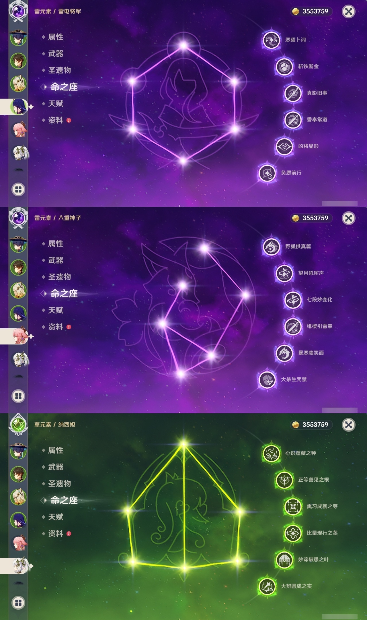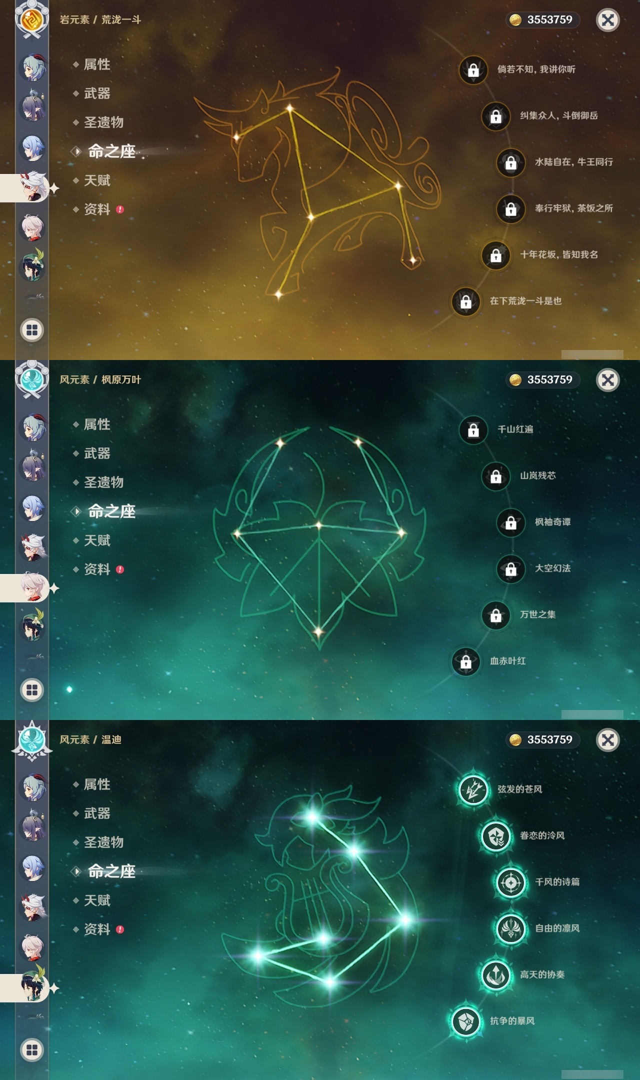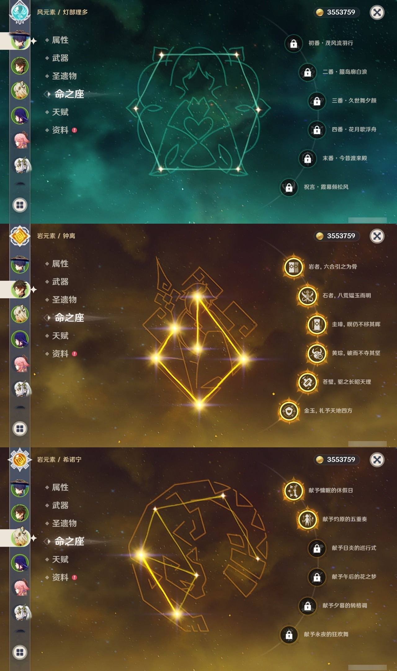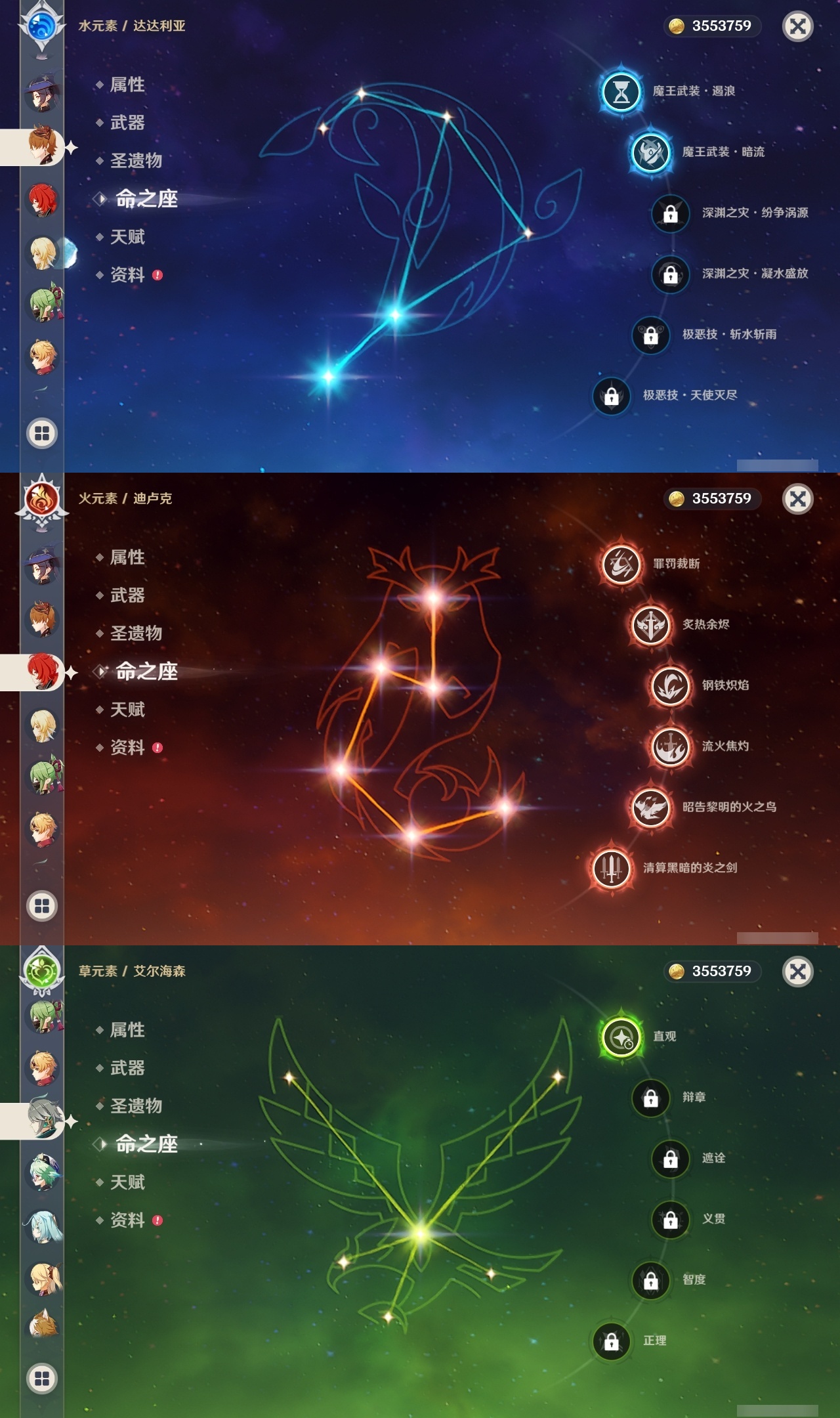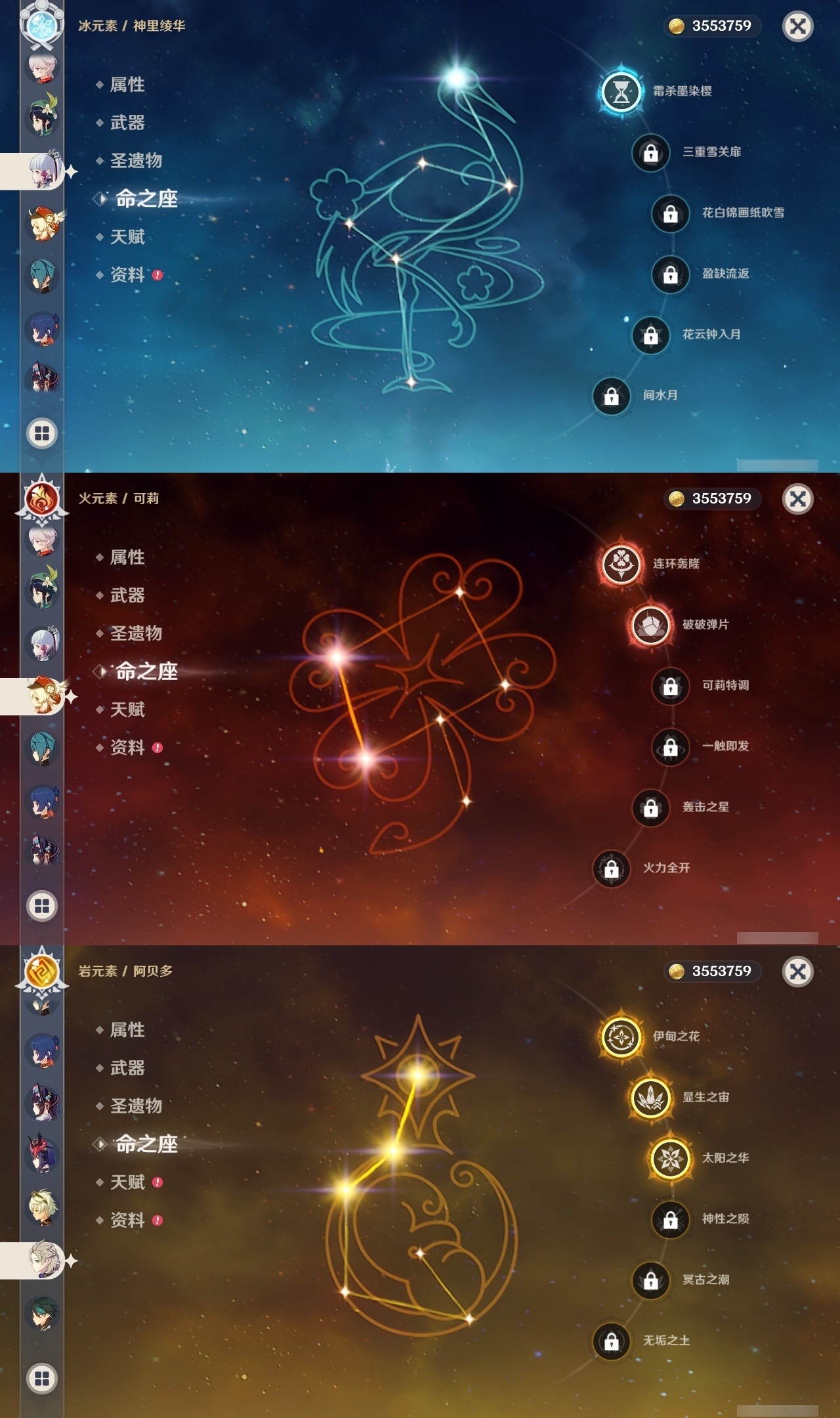 【原神】5满命,冒险等级:60,五星数量:61,五星角色:迪卢克 6命甘雨 6命胡桃 6命刻晴 6命雷电将军 6命莫娜 6命七七 6命琴 6命温迪 6命钟离 6命申鹤 6命八重神子 6命神里绫人 6命夜兰 6命纳西妲 6命阿贝多 3命希诺宁 2命达达利亚 2命可莉 2命魈 1命神里绫华 1命优菈 1命提纳里 1命艾尔海森 1命珊瑚宫心海荒泷一斗妮露菈乌玛奈芙尔流浪者枫原万叶__五星武器:阿莫斯之弓 3精四风原典 3精岩峰巡歌有乐御簾切黑蚀不灭月华苍古自由之誓尘世之锁风鹰剑和璞鸢护摩之杖狼的末路磐岩结绿天空之傲天空之脊天空之刃天空之翼无工之剑雾切之回光薙草之稻光终末嗟叹之诗赤角石溃杵息灾神乐之真意贯虹之槊波乱月白经津若水千夜浮梦__四星角色:班尼特 6命行秋 6命九条裟罗 6命香菱 6命凝光 6命迪奥娜 6命砂糖 6命坎蒂丝 6命多莉 6命柯莱 6命芭芭拉 6命云堇 6命早柚 6命托马 6命五郎 6命烟绯 6命重云 6命辛焱 6命诺艾尔 6命罗莎莉亚 6命雷泽 6命菲谢尔 6命北斗 6命瑶瑶 4命久岐忍 3命鹿野院平藏 3命珐露珊 2命卡维 2命莱依拉 1命伊法 1命爱诺 1命赛索斯 1命埃洛伊奇偶·女性卡齐娜绮良良菲米尼琳妮特塔利雅