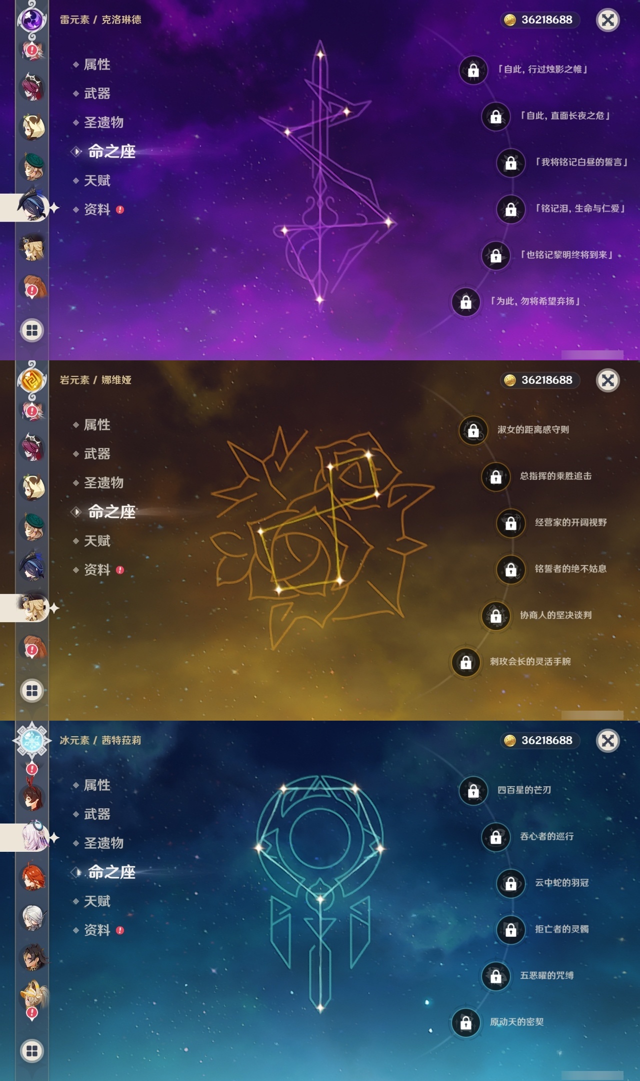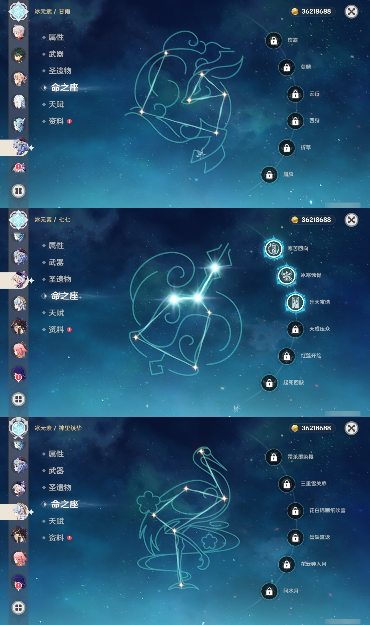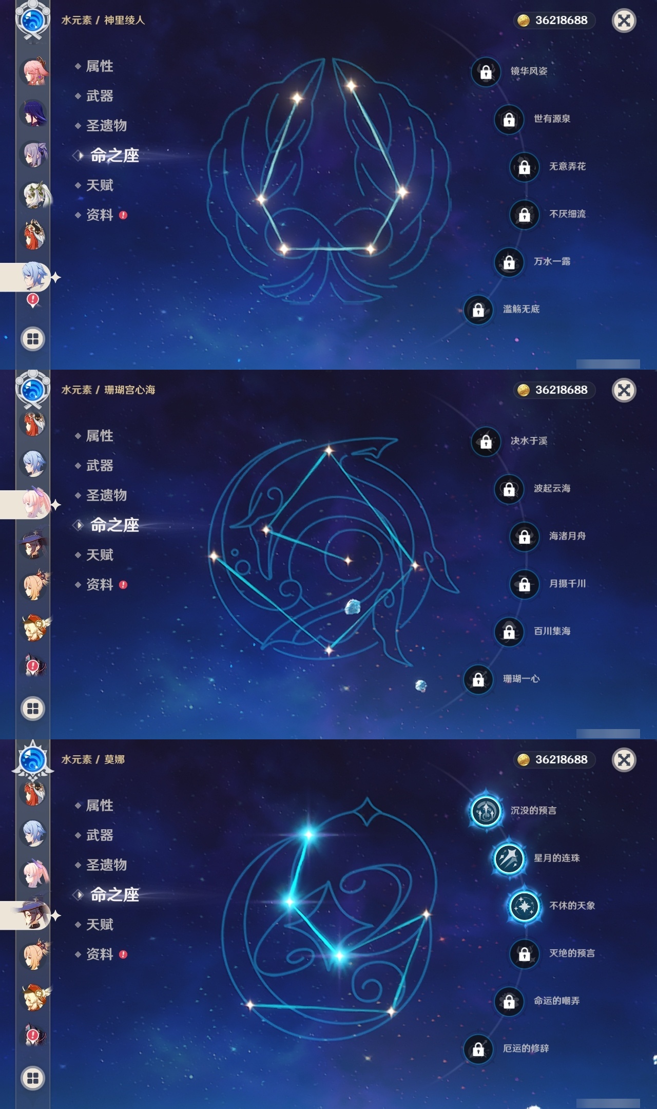 【原神】【lyys11285】冒险等级:60,五星数量:52,五星角色:刻晴 4命琴 4命莫娜 3命七七 3命芙宁娜 1命迪卢克 1命胡桃 1命珊瑚宫心海神里绫华玛薇卡茜特菈莉宵宫优菈迪希雅钟离申鹤八重神子神里绫人夜兰娜维娅提纳里赛诺阿蕾奇诺妮露纳西妲枫原万叶甘雨魈克洛琳德可莉雷电将军__五星武器:天空之翼 4精和璞鸢 2精狼的末路 2精碧落之珑焚曜千阳静水流涌之辉阿莫斯之弓飞雷之弦振风鹰剑护摩之杖四风原典天空之卷雾切之回光斫峰之刃息灾波乱月白经津若水圣显之钥赦罪__四星角色:卡齐娜 6命行秋 6命香菱 6命凝光 6命迪奥娜 6命砂糖 6命柯莱 6命芭芭拉 6命云堇 6命早柚 6命托马 6命烟绯 6命重云 6命辛焱 6命诺艾尔 6命雷泽 6命菲谢尔 6命北斗 6命班尼特 5命莱依拉 5命九条裟罗 4命久岐忍 4命珐露珊 4命夏洛蒂 3命赛索斯 3命鹿野院平藏 2命瑶瑶 2命坎蒂丝 2命多莉 2命罗莎莉亚 2命绮良良 1命卡维 1命五郎 1命夏沃蕾 1命嘉明 1命埃洛伊奇偶·女性米卡菲米尼琳妮特伊法伊安珊塔利雅
