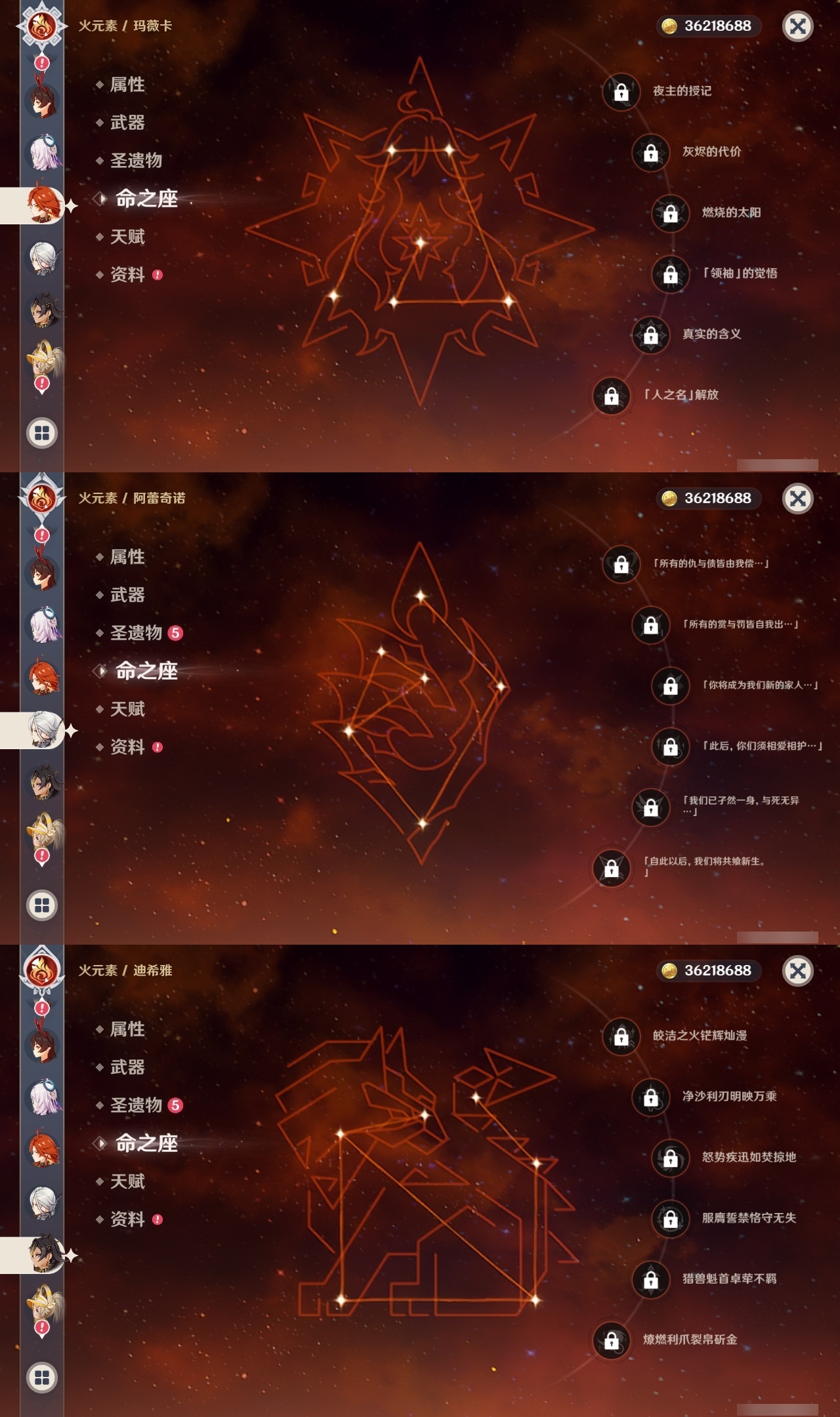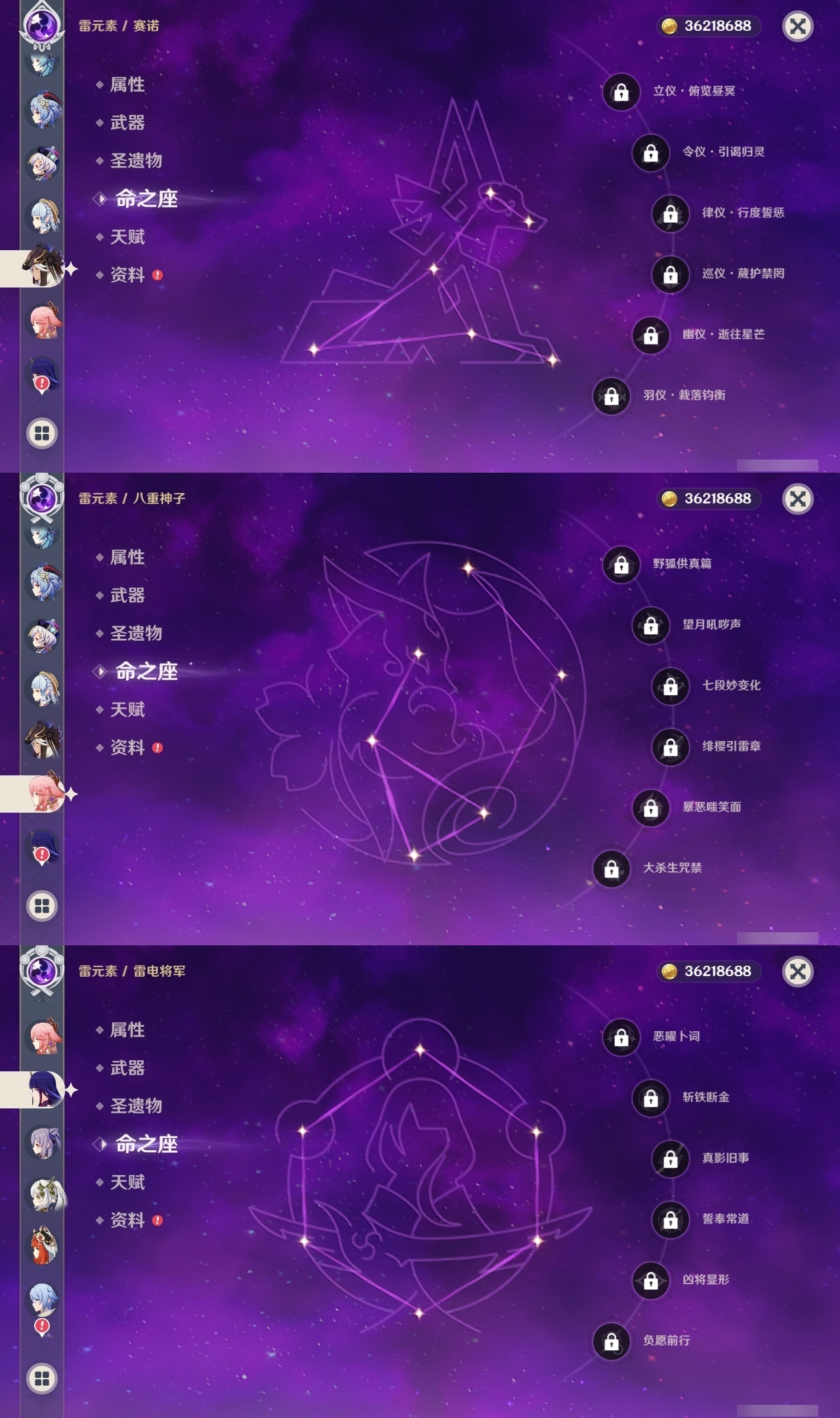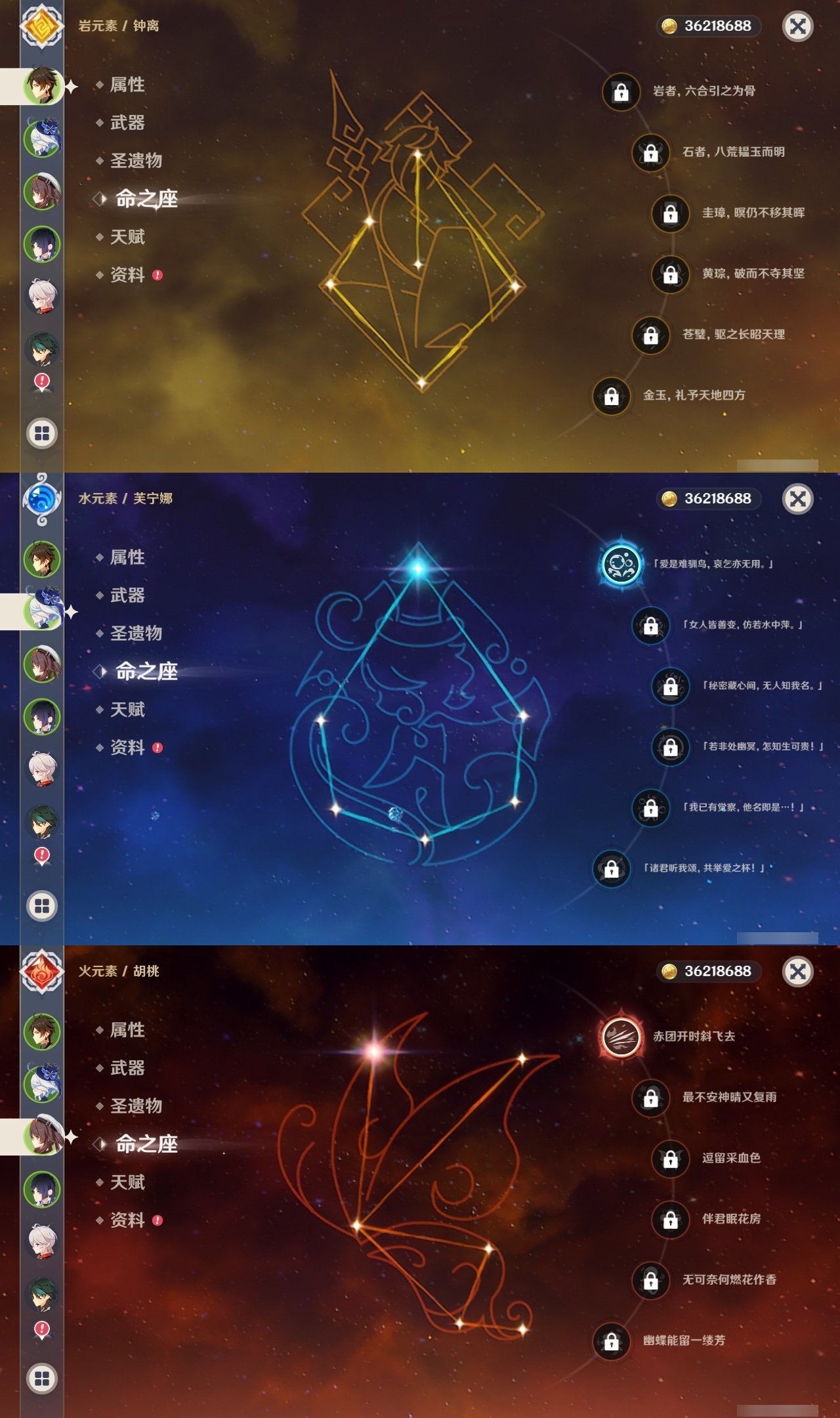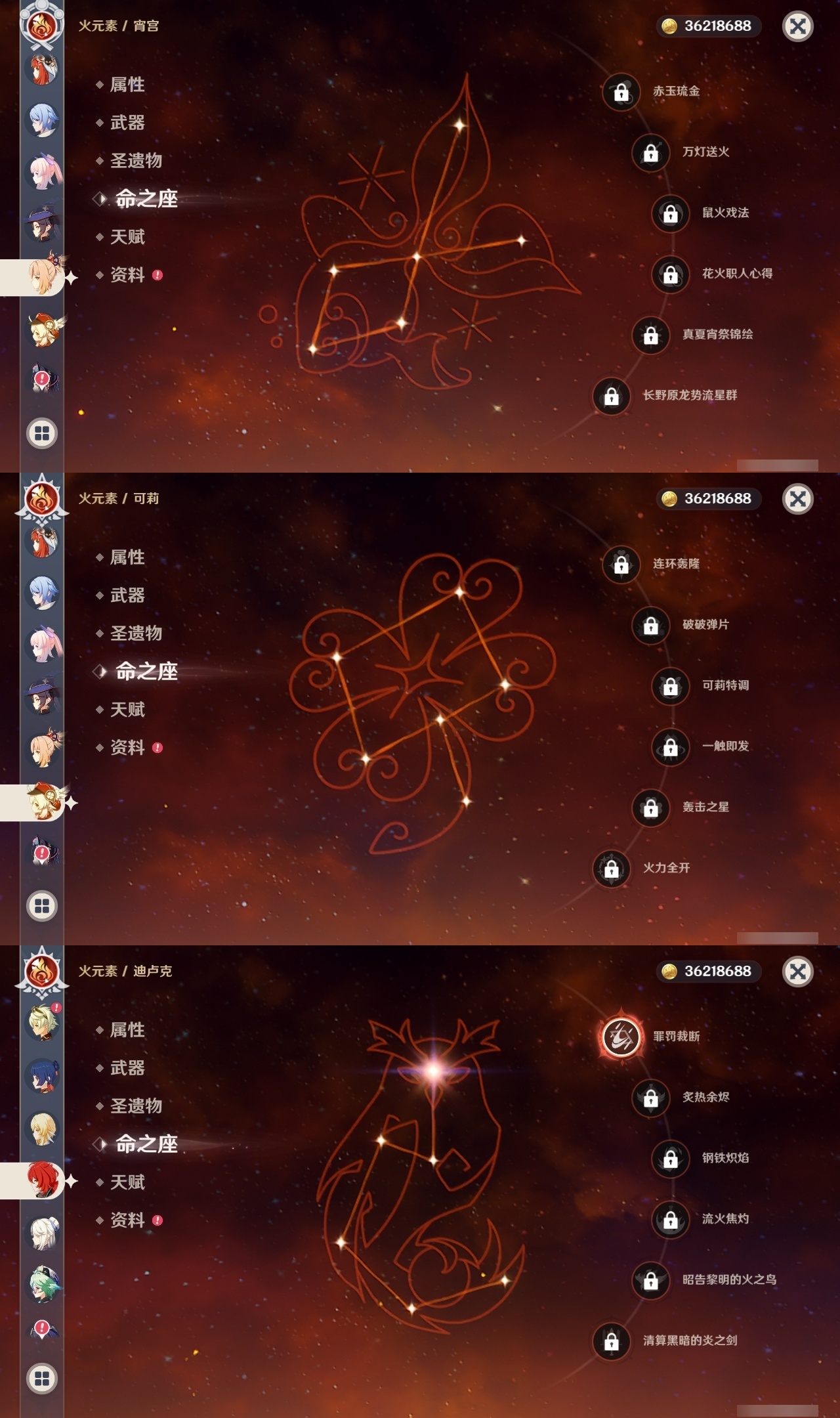 【原神】【lyys11285】冒险等级:60,五星数量:52,五星角色:刻晴 4命琴 4命莫娜 3命七七 3命芙宁娜 1命迪卢克 1命胡桃 1命珊瑚宫心海神里绫华玛薇卡茜特菈莉宵宫优菈迪希雅钟离申鹤八重神子神里绫人夜兰娜维娅提纳里赛诺阿蕾奇诺妮露纳西妲枫原万叶甘雨魈克洛琳德可莉雷电将军__五星武器:天空之翼 4精和璞鸢 2精狼的末路 2精碧落之珑焚曜千阳静水流涌之辉阿莫斯之弓飞雷之弦振风鹰剑护摩之杖四风原典天空之卷雾切之回光斫峰之刃息灾波乱月白经津若水圣显之钥赦罪__四星角色:卡齐娜 6命行秋 6命香菱 6命凝光 6命迪奥娜 6命砂糖 6命柯莱 6命芭芭拉 6命云堇 6命早柚 6命托马 6命烟绯 6命重云 6命辛焱 6命诺艾尔 6命雷泽 6命菲谢尔 6命北斗 6命班尼特 5命莱依拉 5命九条裟罗 4命久岐忍 4命珐露珊 4命夏洛蒂 3命赛索斯 3命鹿野院平藏 2命瑶瑶 2命坎蒂丝 2命多莉 2命罗莎莉亚 2命绮良良 1命卡维 1命五郎 1命夏沃蕾 1命嘉明 1命埃洛伊奇偶·女性米卡菲米尼琳妮特伊法伊安珊塔利雅