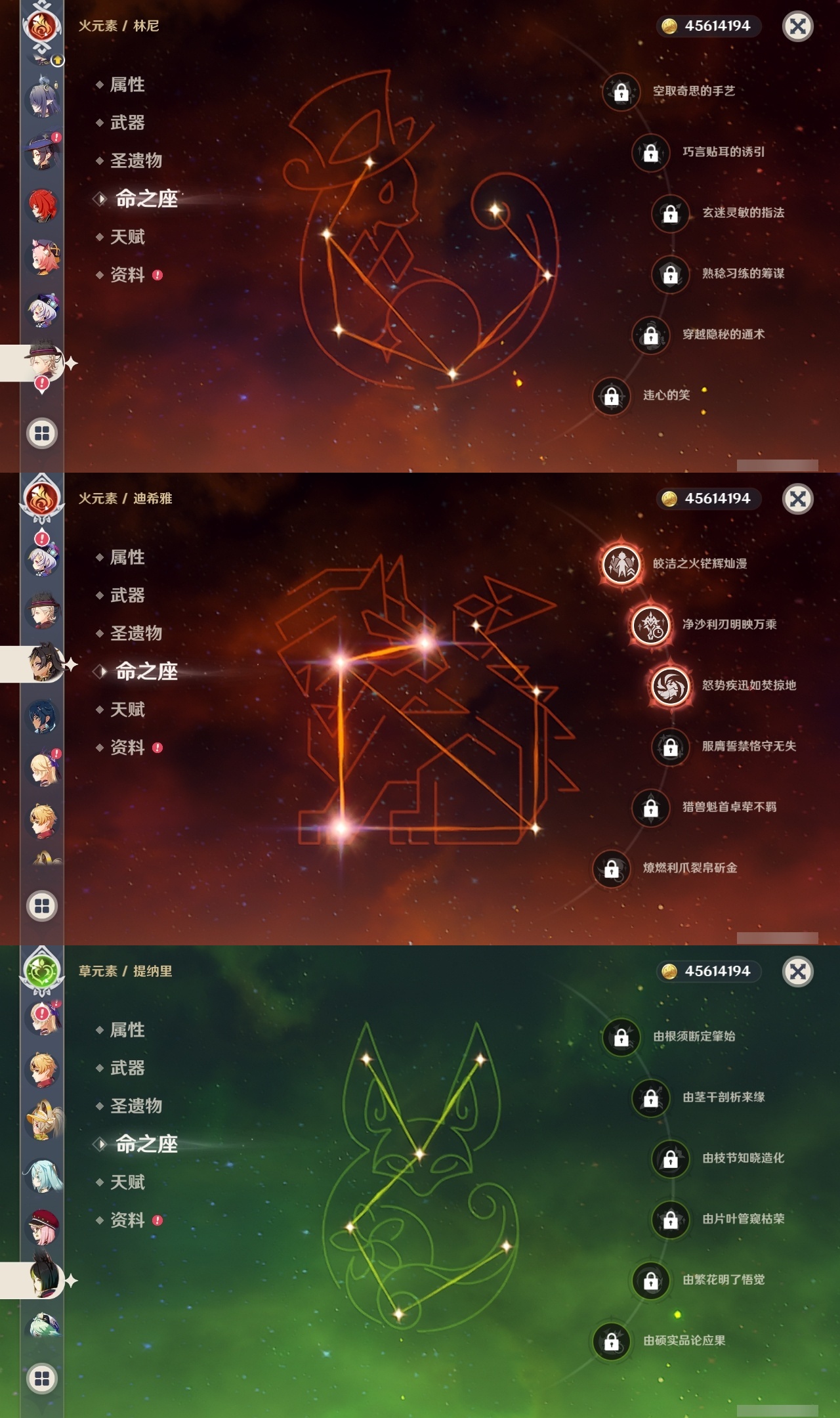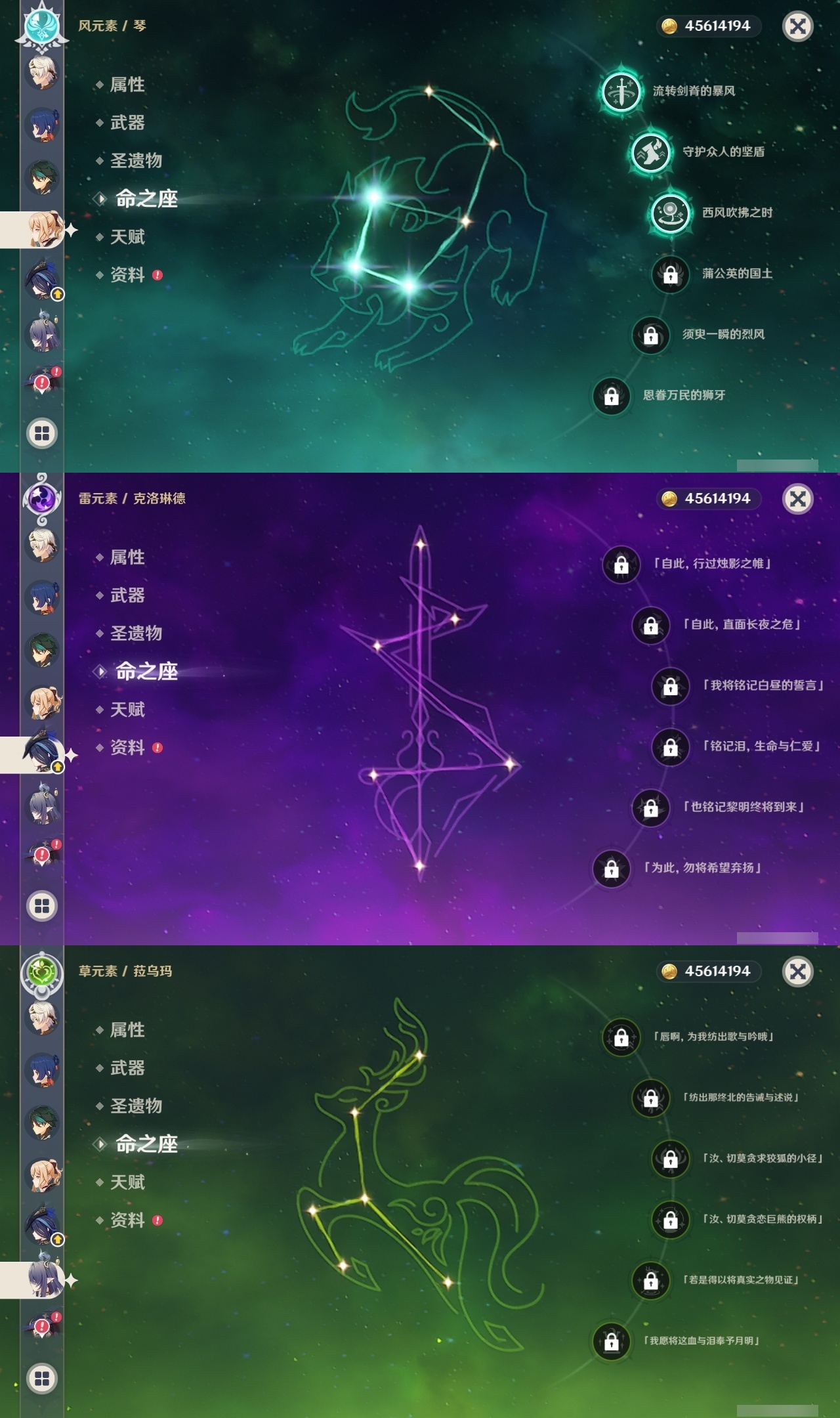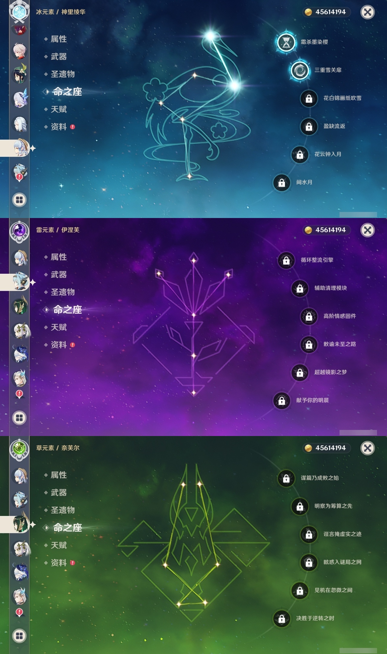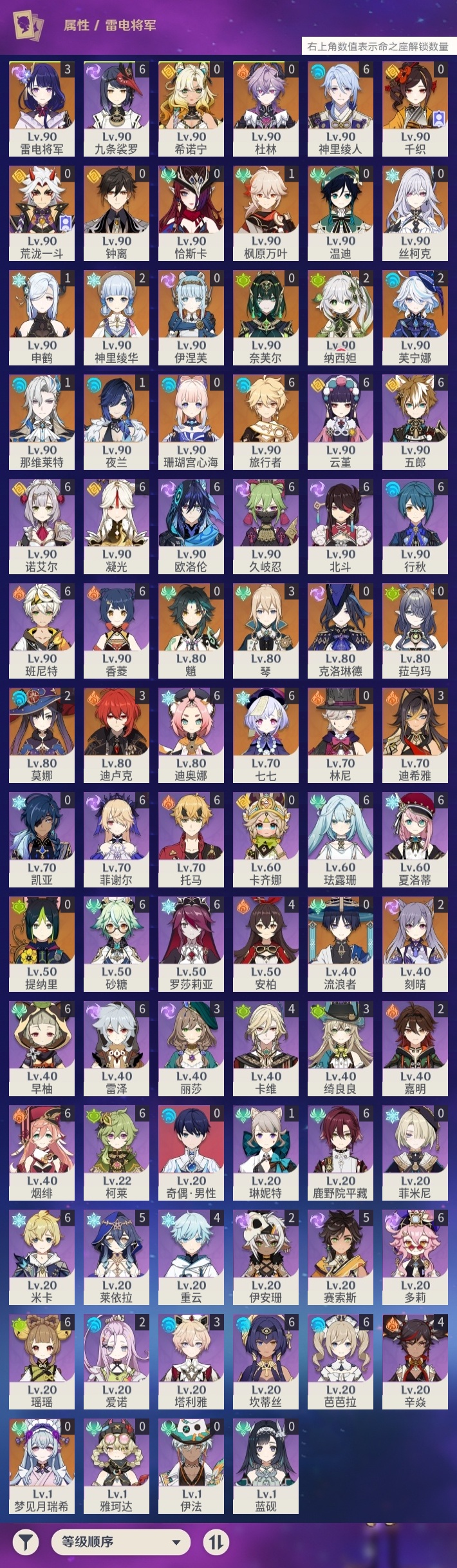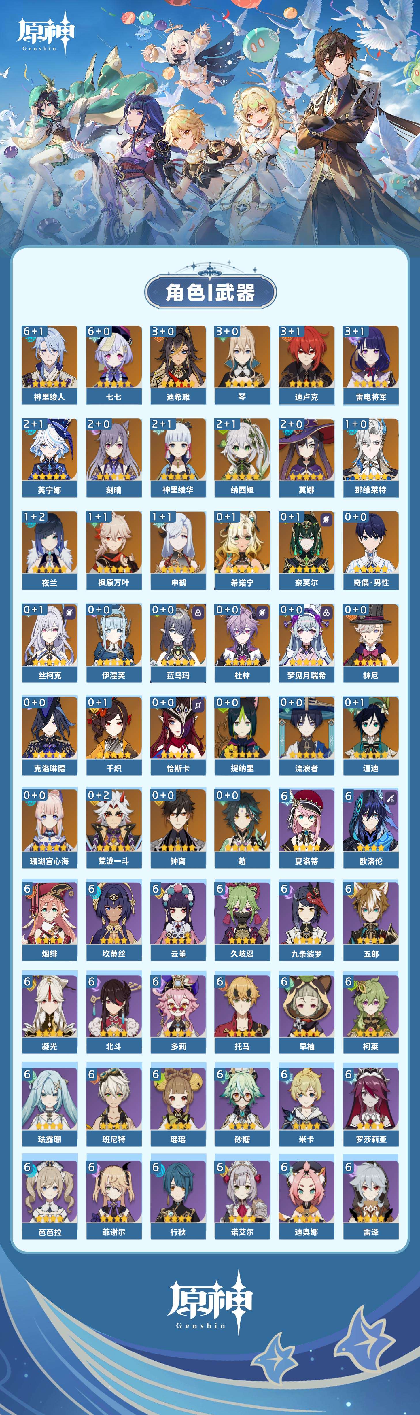 【原神】【lyys11296】冒险等级:60,五星数量:53,五星角色:七七 6命神里绫人 6命迪希雅 3命迪卢克 3命雷电将军 3命琴 3命芙宁娜 2命刻晴 2命莫娜 2命神里绫华 2命纳西妲 2命那维莱特 1命枫原万叶 1命申鹤 1命夜兰 1命珊瑚宫心海希诺宁温迪恰斯卡钟离荒泷一斗梦见月瑞希林尼提纳里千织丝柯克伊涅芙菈乌玛奈芙尔流浪者杜林魈克洛琳德__五星武器:阿莫斯之弓 2精赤角石溃杵 2精若水 2精岩峰巡歌静水流涌之辉有乐御簾切苍耀真语秘匣苍古自由之誓风鹰剑狼的末路天空之傲天空之卷雾切之回光薙草之稻光终末嗟叹之诗息灾波乱月白经津千夜浮梦__四星角色:班尼特 6命行秋 6命九条裟罗 6命香菱 6命久岐忍 6命鹿野院平藏 6命珐露珊 6命凝光 6命迪奥娜 6命砂糖 6命瑶瑶 6命米卡 6命坎蒂丝 6命多莉 6命柯莱 6命芭芭拉 6命欧洛伦 6命云堇 6命早柚 6命托马 6命五郎 6命烟绯 6命诺艾尔 6命罗莎莉亚 6命雷泽 6命菲谢尔 6命北斗 6命夏洛蒂 6命莱依拉 5命赛索斯 5命卡维 4命重云 4命辛焱 4命绮良良 3命塔利雅 3命嘉明 2命伊安珊 2命爱诺 2命琳妮特 1命奇偶·男性卡齐娜蓝砚菲米尼伊法