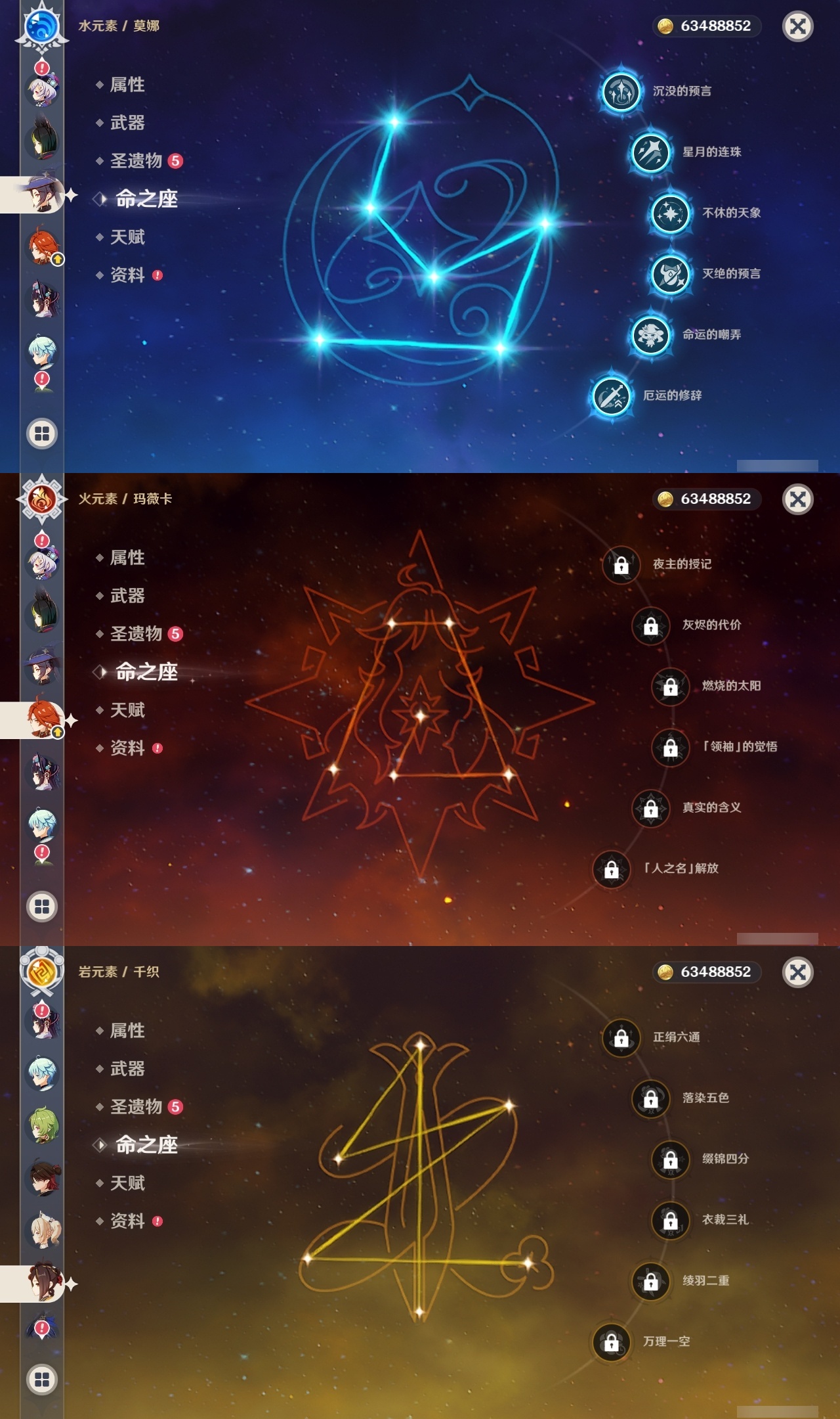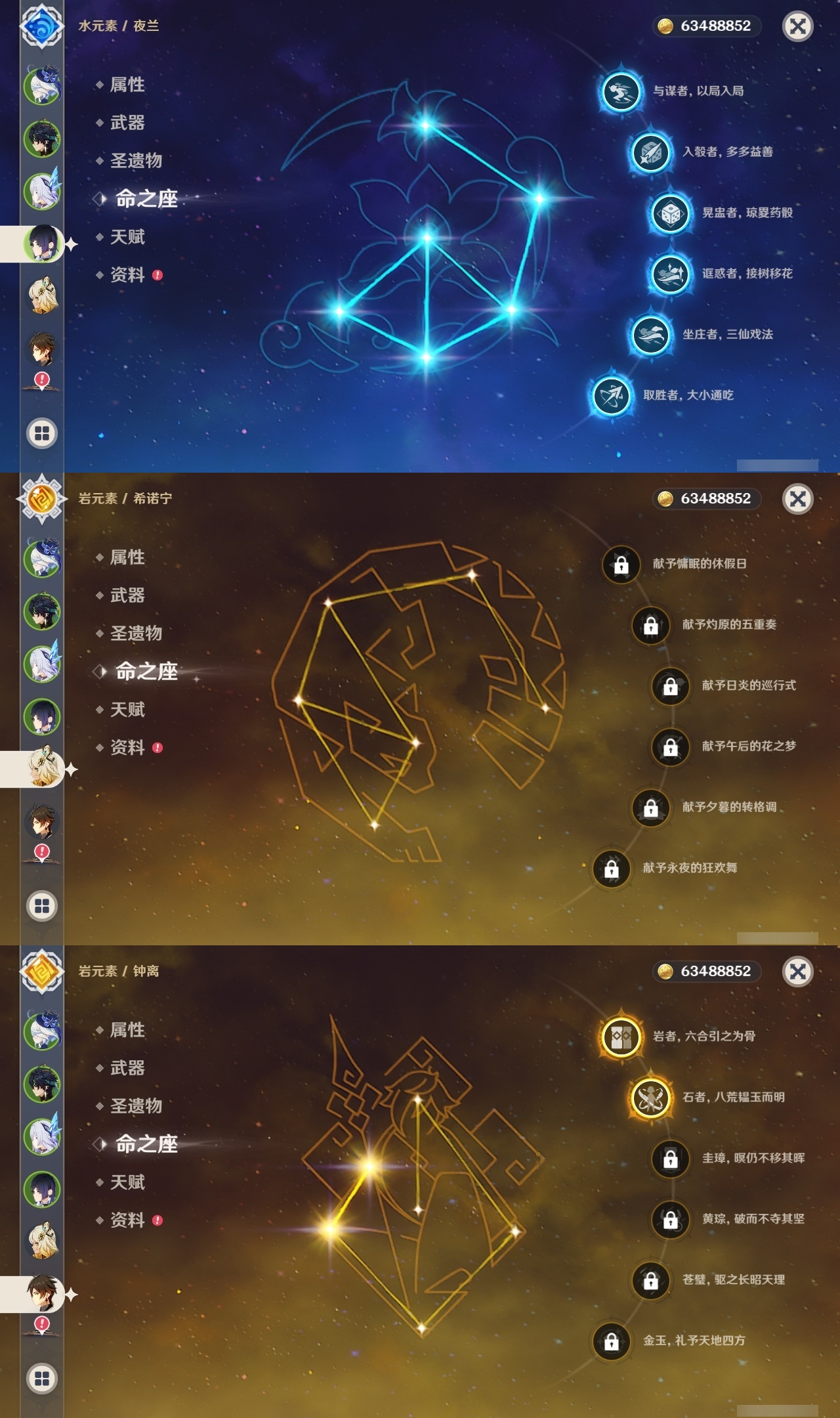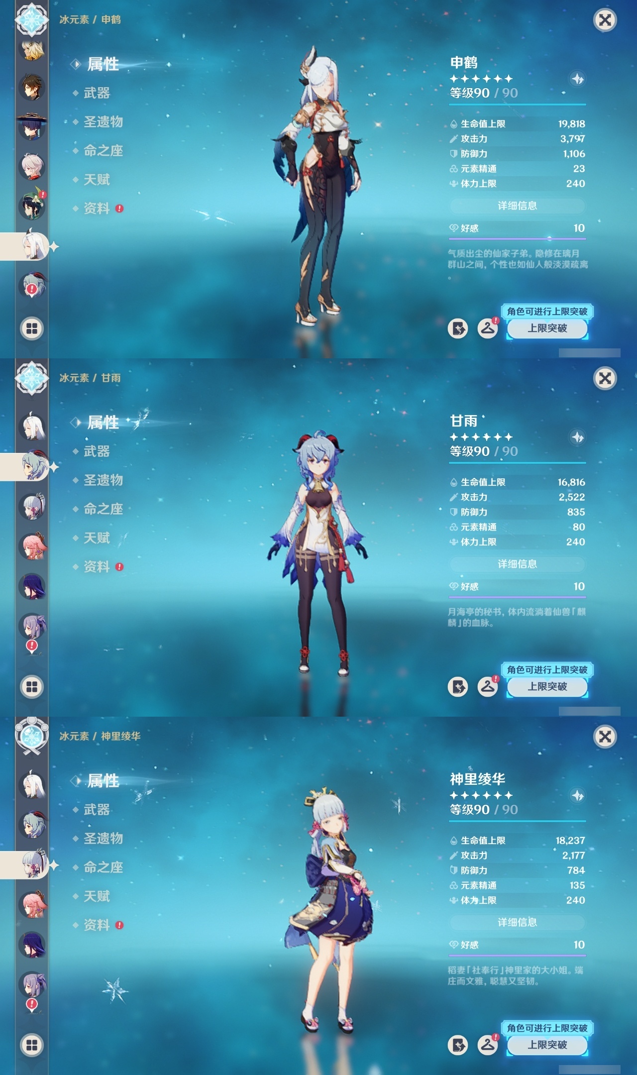 【原神】满命,冒险等级:60,五星数量:60,五星角色:迪卢克 6命莫娜 6命七七 6命夜兰 6命基尼奇 3命雷电将军 3命枫原万叶 2命琴 2命钟离 2命纳西妲 2命迪希雅 1命达达利亚 1命胡桃 1命刻晴 1命申鹤 1命珊瑚宫心海希诺宁神里绫华温迪玛薇卡宵宫优菈梦见月瑞希瓦雷莎八重神子神里绫人那维莱特芙宁娜提纳里闲云千织丝柯克妮露流浪者哥伦比娅甘雨克洛琳德__五星武器:若水 5精千夜浮梦 2精山王长牙岩峰巡歌苍耀阿莫斯之弓苍古自由之誓飞雷之弦振风鹰剑和璞鸢护摩之杖狼的末路四风原典天空之卷天空之刃天空之翼雾切之回光薙草之稻光贯虹之槊猎人之径圣显之钥__四星角色:班尼特 6命行秋 6命九条裟罗 6命香菱 6命鹿野院平藏 6命珐露珊 6命凝光 6命迪奥娜 6命砂糖 6命莱依拉 6命米卡 6命坎蒂丝 6命多莉 6命柯莱 6命芭芭拉 6命云堇 6命早柚 6命托马 6命烟绯 6命辛焱 6命诺艾尔 6命罗莎莉亚 6命雷泽 6命菲谢尔 6命北斗 6命琳妮特 6命久岐忍 5命卡维 5命五郎 5命菲米尼 5命重云 4命绮良良 3命瑶瑶 3命欧洛伦 2命夏沃蕾 2命嘉明 2命赛索斯 2命卡齐娜 1命夏洛蒂 1命伊法 1命埃洛伊奇偶·女性蓝砚伊安珊多个哥伦