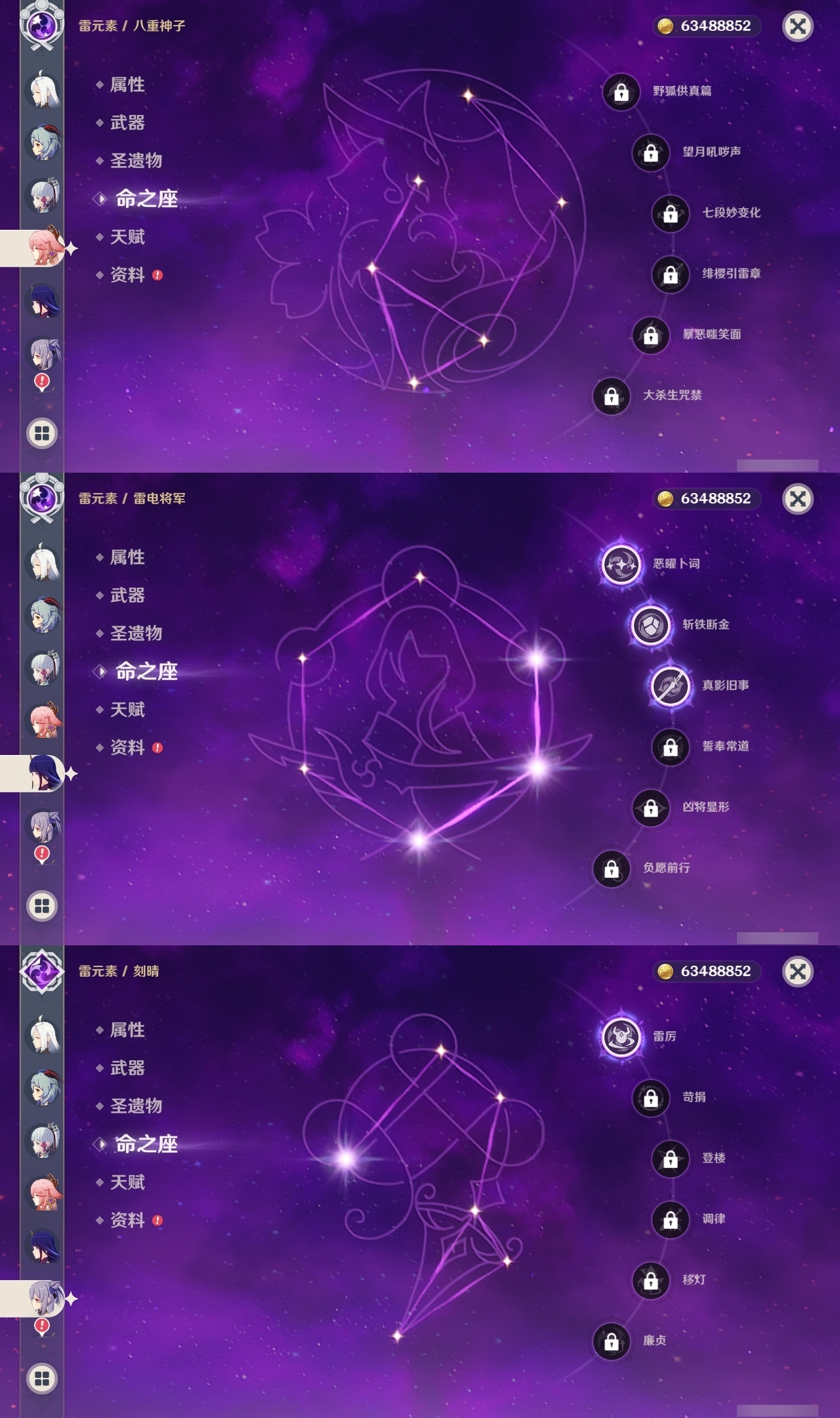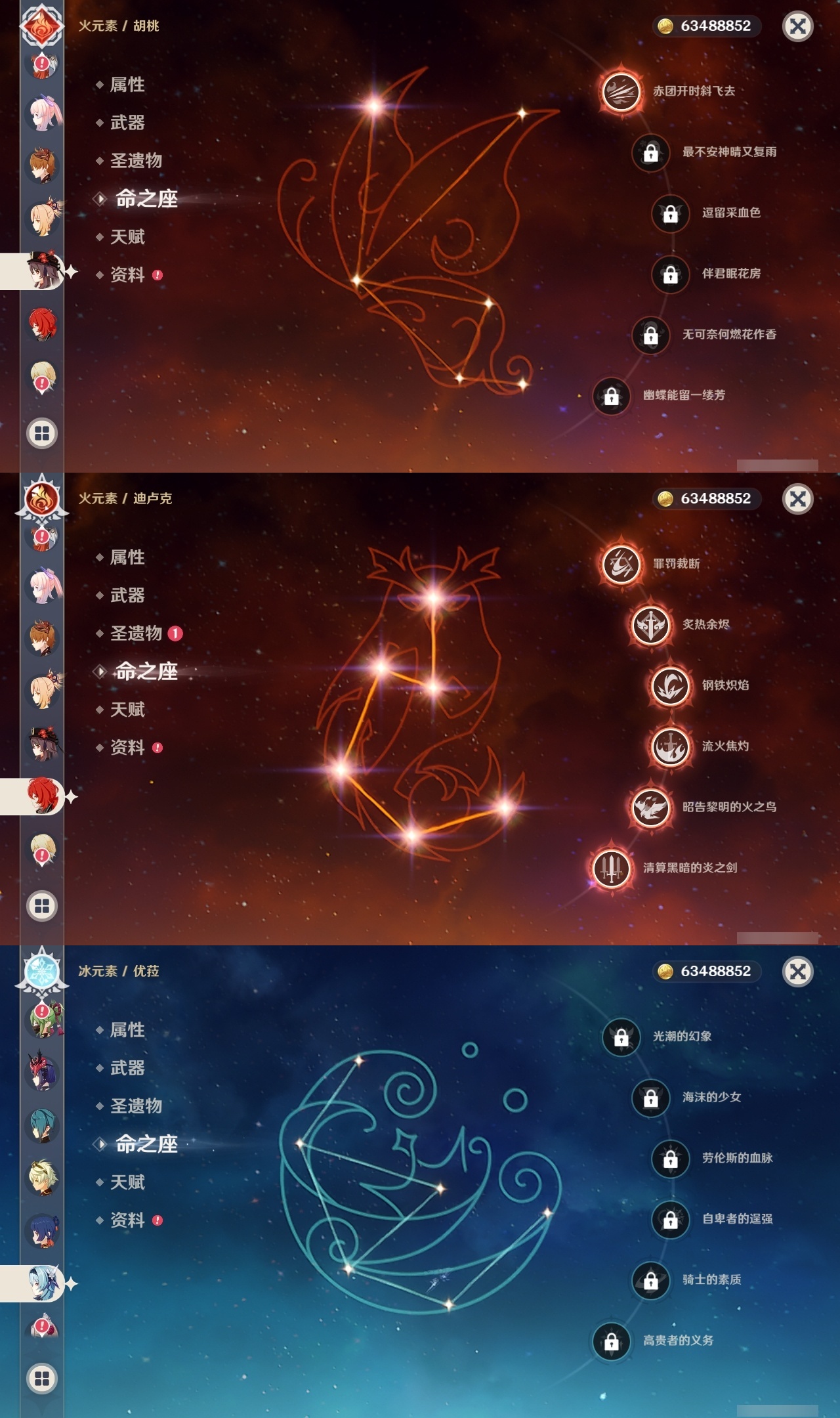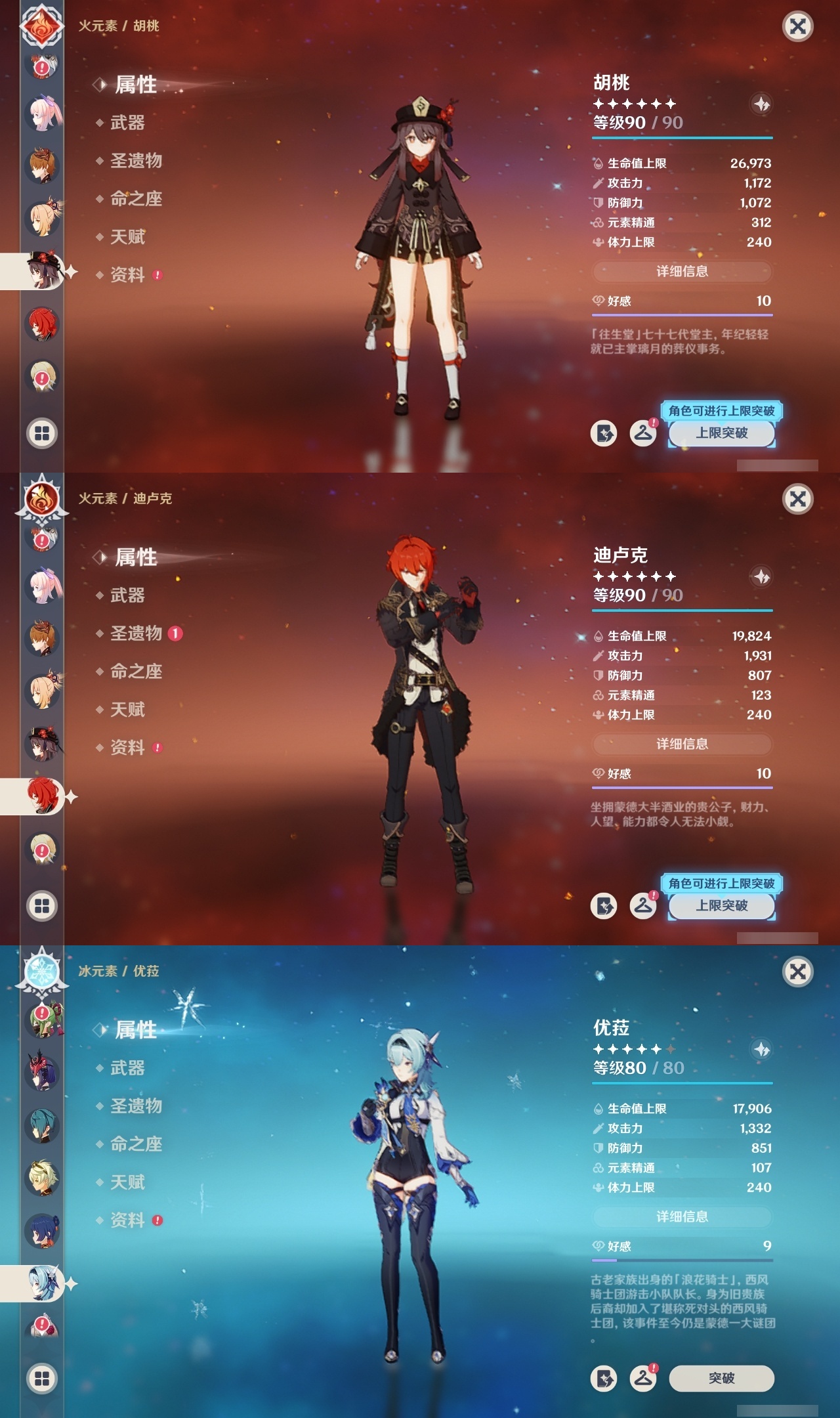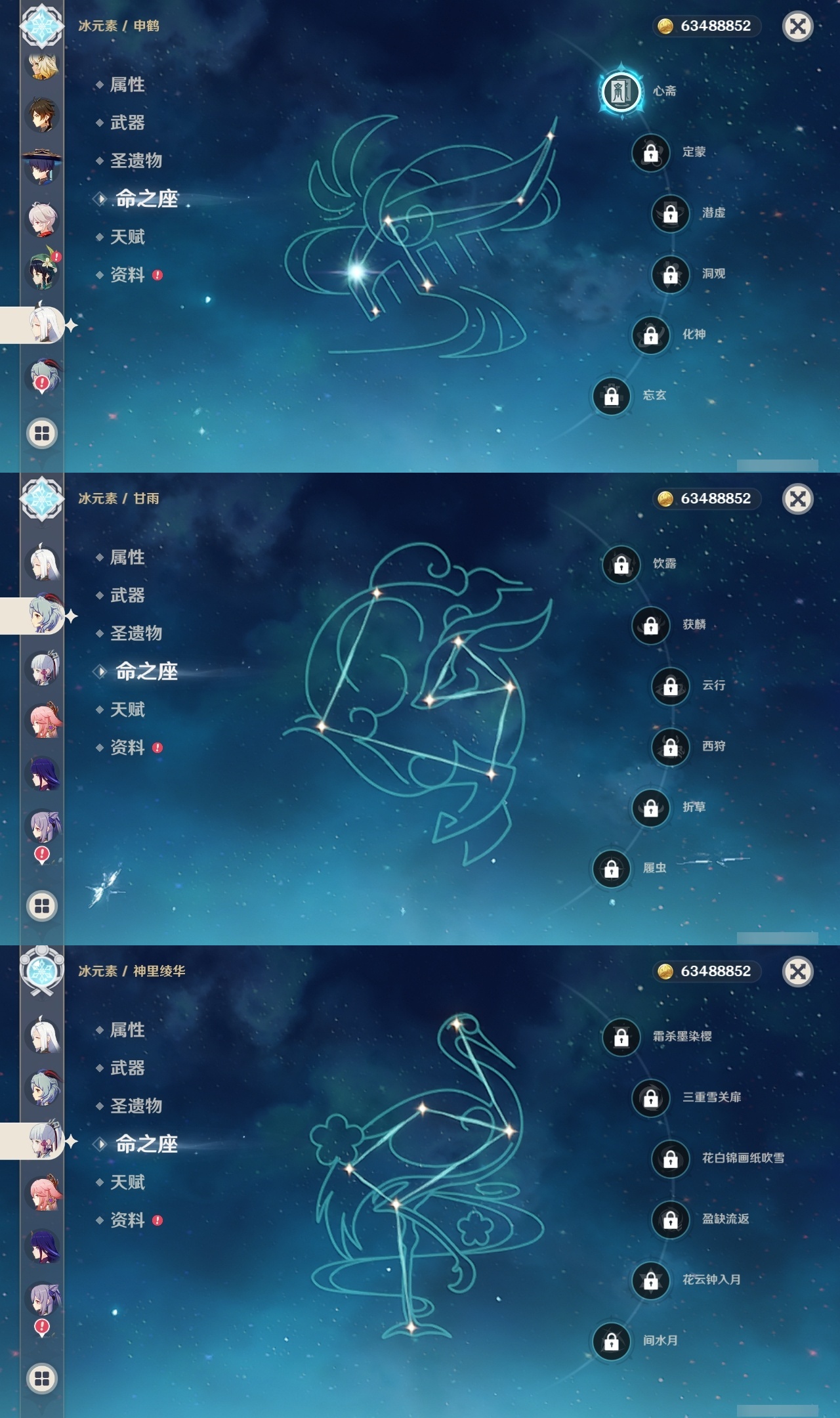 【原神】满命,冒险等级:60,五星数量:60,五星角色:迪卢克 6命莫娜 6命七七 6命夜兰 6命基尼奇 3命雷电将军 3命枫原万叶 2命琴 2命钟离 2命纳西妲 2命迪希雅 1命达达利亚 1命胡桃 1命刻晴 1命申鹤 1命珊瑚宫心海希诺宁神里绫华温迪玛薇卡宵宫优菈梦见月瑞希瓦雷莎八重神子神里绫人那维莱特芙宁娜提纳里闲云千织丝柯克妮露流浪者哥伦比娅甘雨克洛琳德__五星武器:若水 5精千夜浮梦 2精山王长牙岩峰巡歌苍耀阿莫斯之弓苍古自由之誓飞雷之弦振风鹰剑和璞鸢护摩之杖狼的末路四风原典天空之卷天空之刃天空之翼雾切之回光薙草之稻光贯虹之槊猎人之径圣显之钥__四星角色:班尼特 6命行秋 6命九条裟罗 6命香菱 6命鹿野院平藏 6命珐露珊 6命凝光 6命迪奥娜 6命砂糖 6命莱依拉 6命米卡 6命坎蒂丝 6命多莉 6命柯莱 6命芭芭拉 6命云堇 6命早柚 6命托马 6命烟绯 6命辛焱 6命诺艾尔 6命罗莎莉亚 6命雷泽 6命菲谢尔 6命北斗 6命琳妮特 6命久岐忍 5命卡维 5命五郎 5命菲米尼 5命重云 4命绮良良 3命瑶瑶 3命欧洛伦 2命夏沃蕾 2命嘉明 2命赛索斯 2命卡齐娜 1命夏洛蒂 1命伊法 1命埃洛伊奇偶·女性蓝砚伊安珊多个哥伦