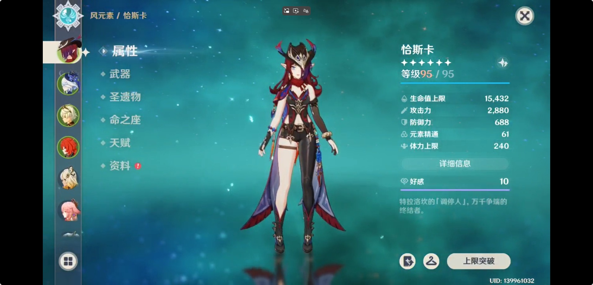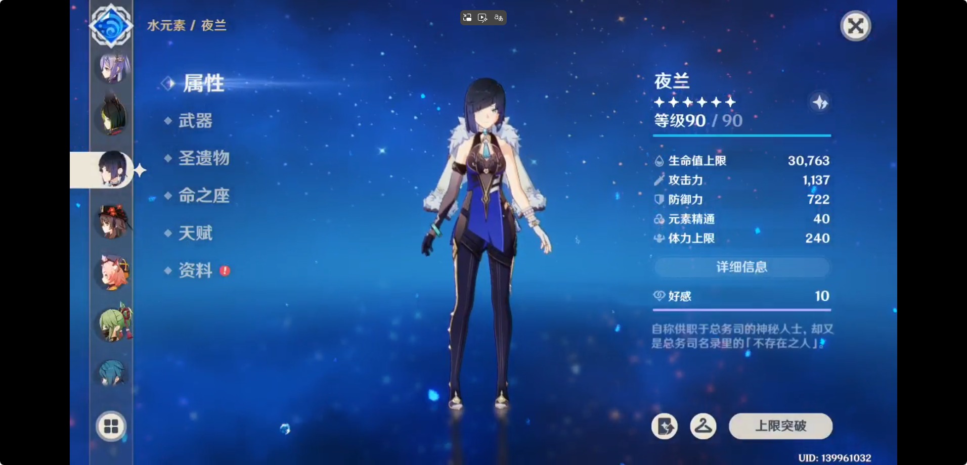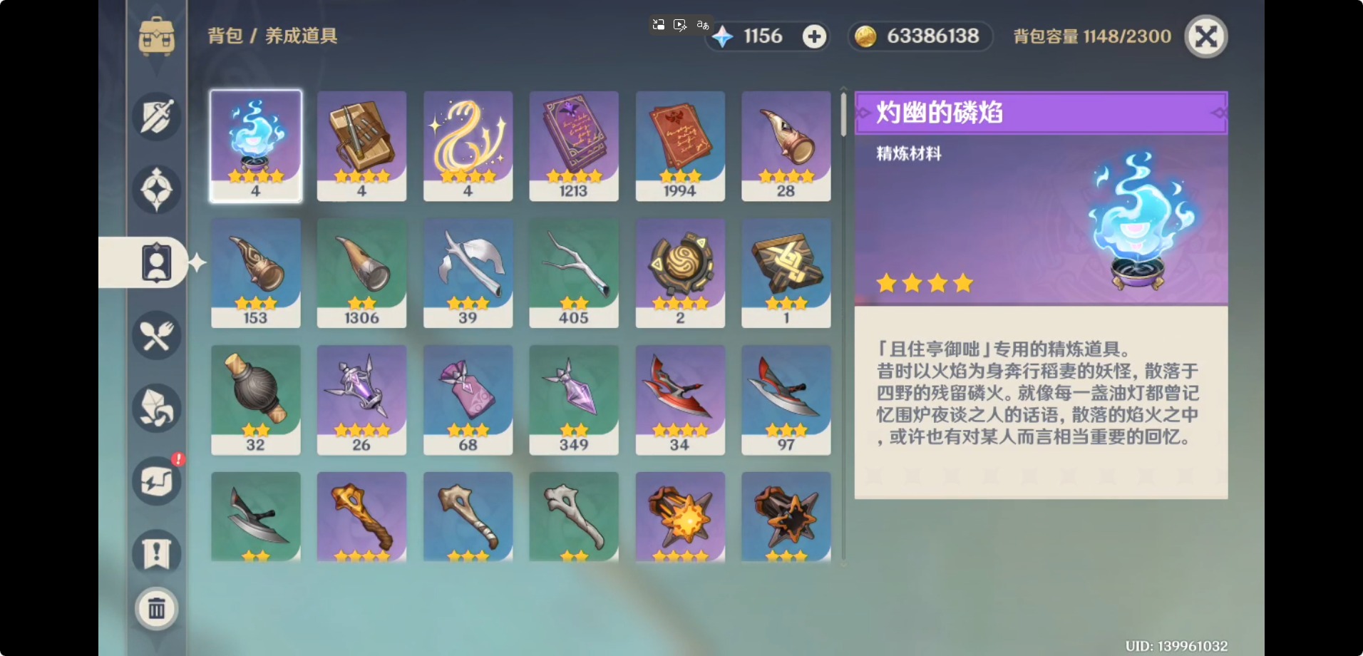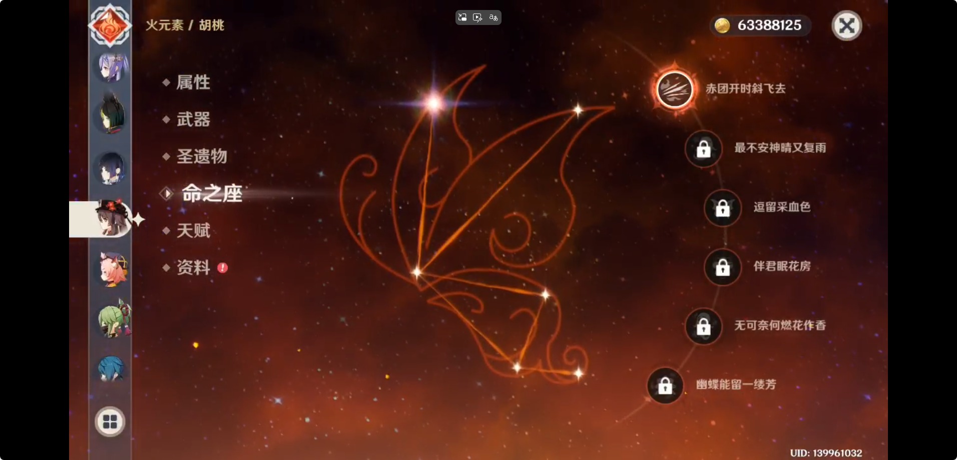 [16280595]【邮箱】不送邮/死邮 【总黄数】83 【冒险等级】60 【6命金色角色】满命恰斯卡满命芙宁娜满命纳西妲满命七七 【4命金色角色】四命八重神子四命提纳里 【3命金色角色】三命琴三命莫娜 【2命金色角色】二命希诺宁二命迪卢克 【1命金色角色】一命妮露一命枫原万叶一命胡桃一命刻晴 【0命金色角色】哥伦比娅奈芙尔夜兰雷电将军神里绫华钟离 【拥有武器】星鹫赤羽 【1精武器】真语秘匣支离轮光岩峰巡歌冲浪时光静水流涌之辉千夜浮梦神乐之真意薙草之稻光飞雷之弦振雾切之回光苍古自由之誓护摩之杖阿莫斯之弓猎人之径狼的末路风鹰剑天空之傲无工之剑天空之脊四风原典