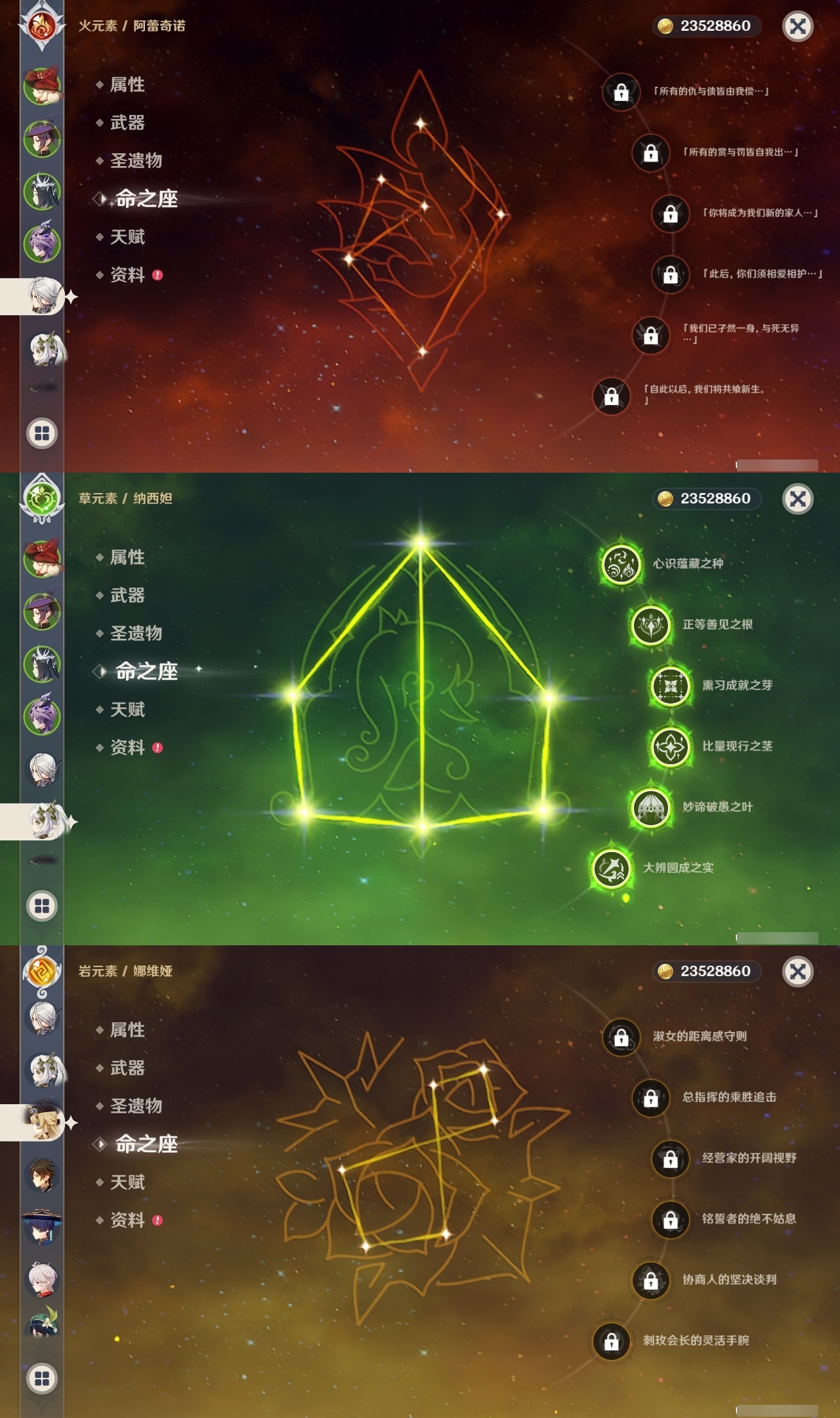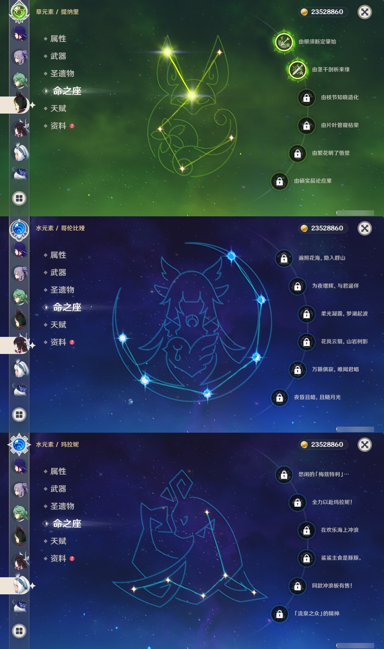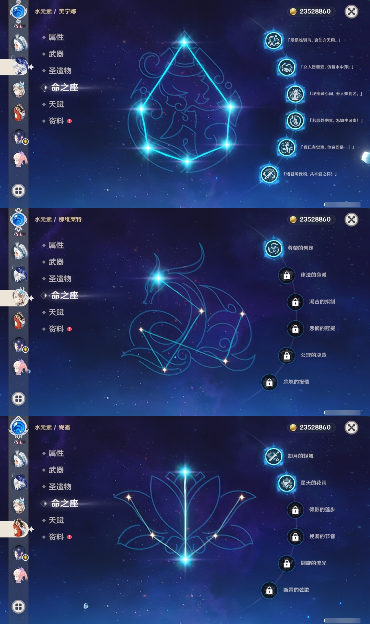 【原神】满命,冒险等级:60,五星数量:55,五星角色:芙宁娜 6命迪卢克 6命可莉 6命刻晴 6命七七 6命琴 6命八重神子 6命夜兰 6命纳西妲 6命雷电将军 4命莫娜 4命流浪者 3命枫原万叶 2命温迪 2命提纳里 2命妮露 2命迪希雅 1命那维莱特 1命钟离 1命玛拉妮珊瑚宫心海白术宵宫达达利亚娜维娅阿蕾奇诺丝柯克杜林哥伦比娅甘雨__五星武器:狼的末路 5精四风原典 5精天空之卷 3精阿莫斯之弓 2精碧落之珑静水流涌之辉支离轮光图莱杜拉的回忆不灭月华苍古自由之誓风鹰剑和璞鸢磐岩结绿天空之傲天空之脊天空之翼无工之剑薙草之稻光神乐之真意若水猎人之径圣显之钥千夜浮梦__四星角色:班尼特 6命行秋 6命九条裟罗 6命香菱 6命久岐忍 6命珐露珊 6命凝光 6命迪奥娜 6命砂糖 6命绮良良 6命瑶瑶 6命莱依拉 6命多莉 6命柯莱 6命芭芭拉 6命云堇 6命托马 6命烟绯 6命重云 6命辛焱 6命诺艾尔 6命罗莎莉亚 6命雷泽 6命菲谢尔 6命北斗 6命夏洛蒂 6命夏沃蕾 6命赛索斯 6命卡齐娜 5命鹿野院平藏 5命蓝砚 4命五郎 4命菲米尼 3命琳妮特 3命米卡 2命卡维 2命早柚 2命嘉明 2命坎蒂丝 1命欧洛伦 1命伊安珊 1命埃洛伊奇偶·女性伊法塔利雅爱诺