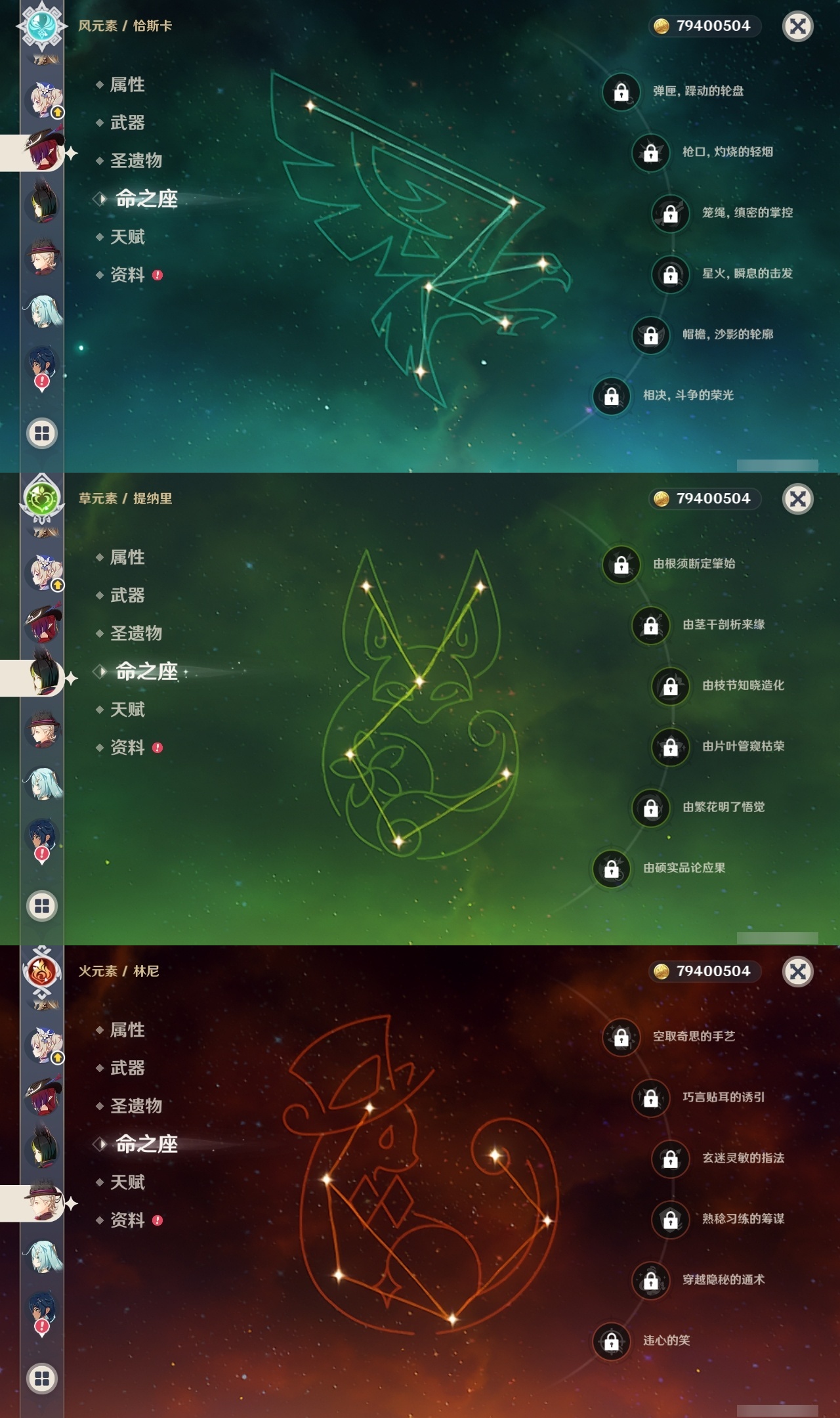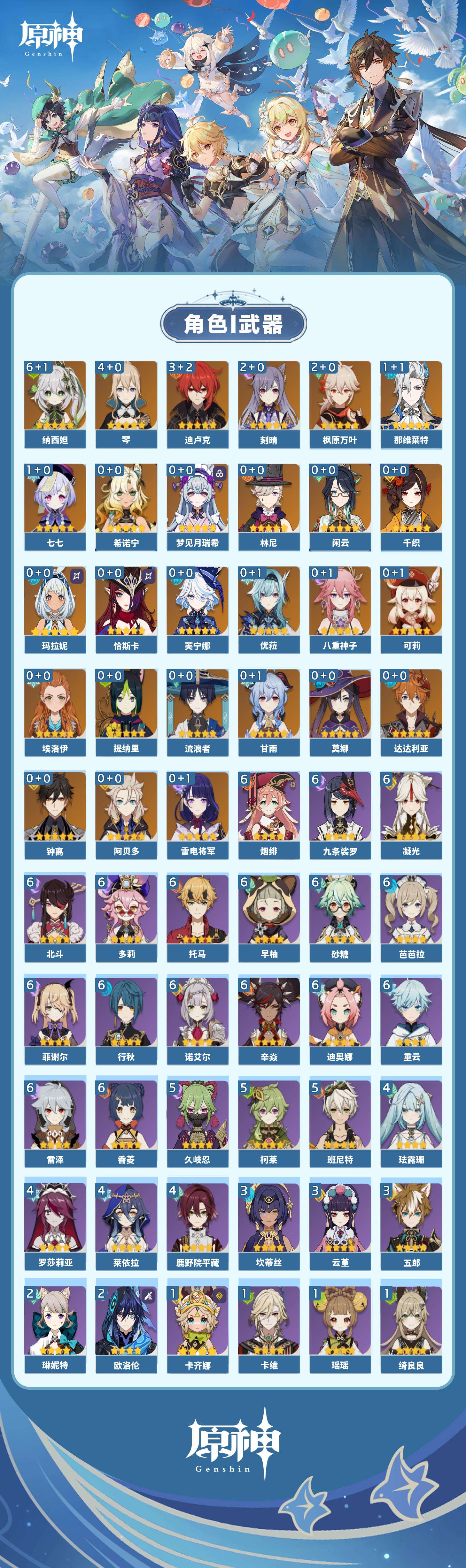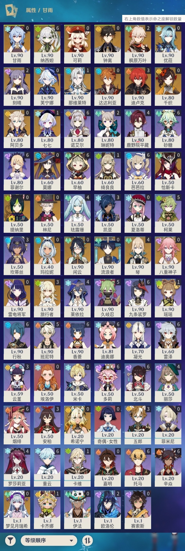 【原神】【lyys11317】冒险等级:60,五星数量:46,五星角色:纳西妲 6命琴 4命迪卢克 3命枫原万叶 2命刻晴 2命那维莱特 1命七七 1命莫娜玛拉妮希诺宁恰斯卡优菈钟离达达利亚梦见月瑞希八重神子林尼阿贝多芙宁娜提纳里闲云千织流浪者甘雨可莉雷电将军__五星武器:狼的末路 2精万世流涌大典阿莫斯之弓飞雷之弦振风鹰剑护摩之杖磐岩结绿四风原典松籁响起之时天空之傲天空之卷天空之刃天空之翼无工之剑雾切之回光薙草之稻光神乐之真意千夜浮梦__四星角色:行秋 6命九条裟罗 6命香菱 6命凝光 6命迪奥娜 6命砂糖 6命多莉 6命芭芭拉 6命早柚 6命托马 6命烟绯 6命重云 6命辛焱 6命诺艾尔 6命雷泽 6命菲谢尔 6命北斗 6命班尼特 5命久岐忍 5命柯莱 5命鹿野院平藏 4命珐露珊 4命莱依拉 4命罗莎莉亚 4命坎蒂丝 3命云堇 3命五郎 3命欧洛伦 2命琳妮特 2命卡齐娜 1命绮良良 1命瑶瑶 1命卡维 1命埃洛伊奇偶·女性米卡菲米尼夏洛蒂嘉明伊法赛索斯
