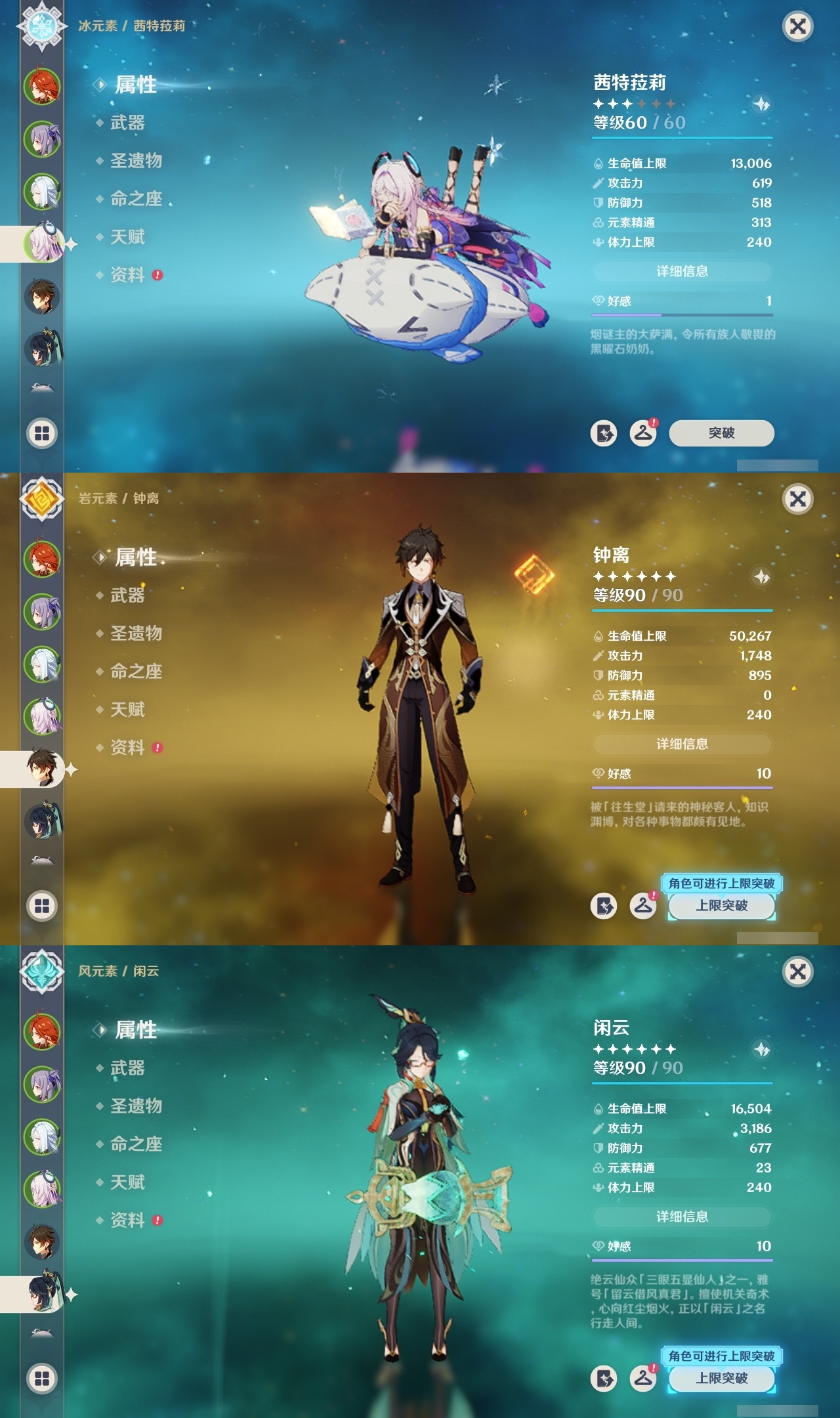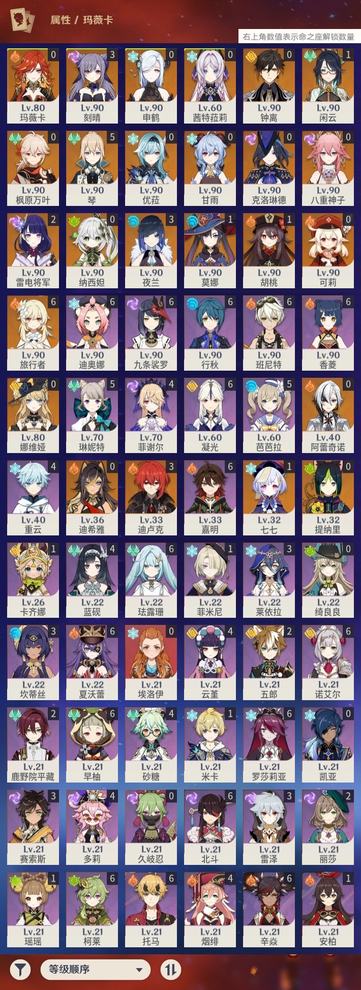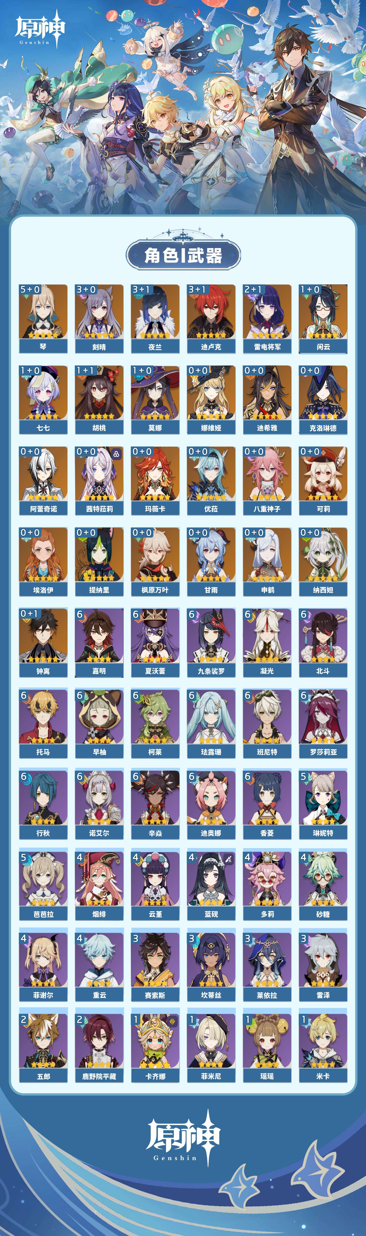 【原神】【lyys11322】冒险等级:60,五星数量:37,五星角色:琴 5命迪卢克 3命刻晴 3命夜兰 3命雷电将军 2命闲云 1命胡桃 1命莫娜 1命七七 1命玛薇卡茜特菈莉优菈迪希雅钟离申鹤八重神子娜维娅提纳里阿蕾奇诺纳西妲枫原万叶甘雨克洛琳德可莉__五星武器:飞雷之弦振和璞鸢护摩之杖狼的末路天空之脊天空之卷天空之翼无工之剑薙草之稻光贯虹之槊波乱月白经津若水__四星角色:班尼特 6命行秋 6命九条裟罗 6命香菱 6命珐露珊 6命凝光 6命迪奥娜 6命柯莱 6命早柚 6命托马 6命辛焱 6命诺艾尔 6命罗莎莉亚 6命北斗 6命夏沃蕾 6命嘉明 6命芭芭拉 5命琳妮特 5命砂糖 4命多莉 4命云堇 4命蓝砚 4命烟绯 4命重云 4命菲谢尔 4命莱依拉 3命坎蒂丝 3命雷泽 3命赛索斯 3命鹿野院平藏 2命五郎 2命卡齐娜 1命瑶瑶 1命米卡 1命菲米尼 1命埃洛伊久岐忍绮良良