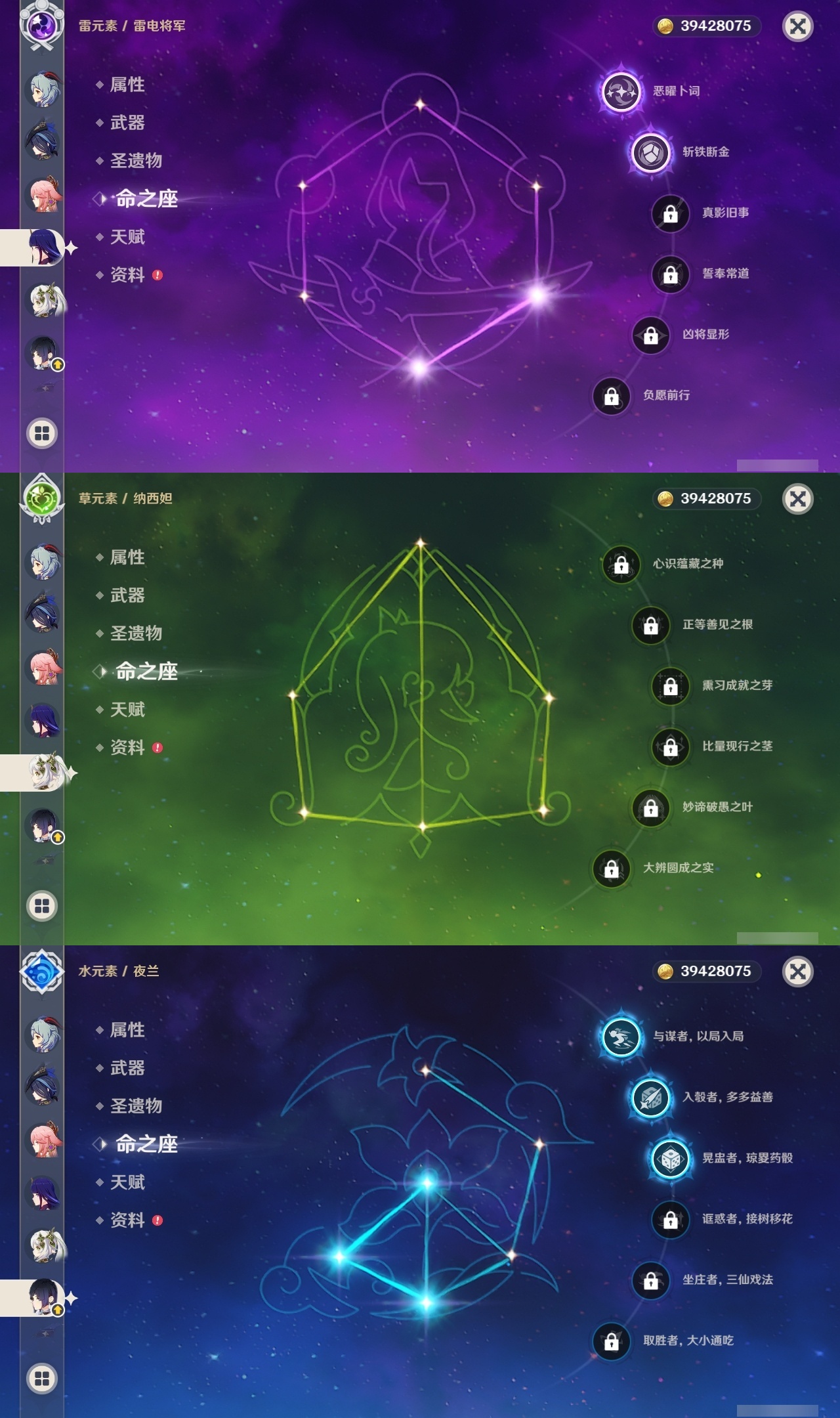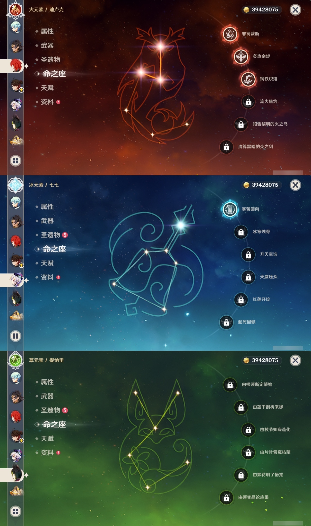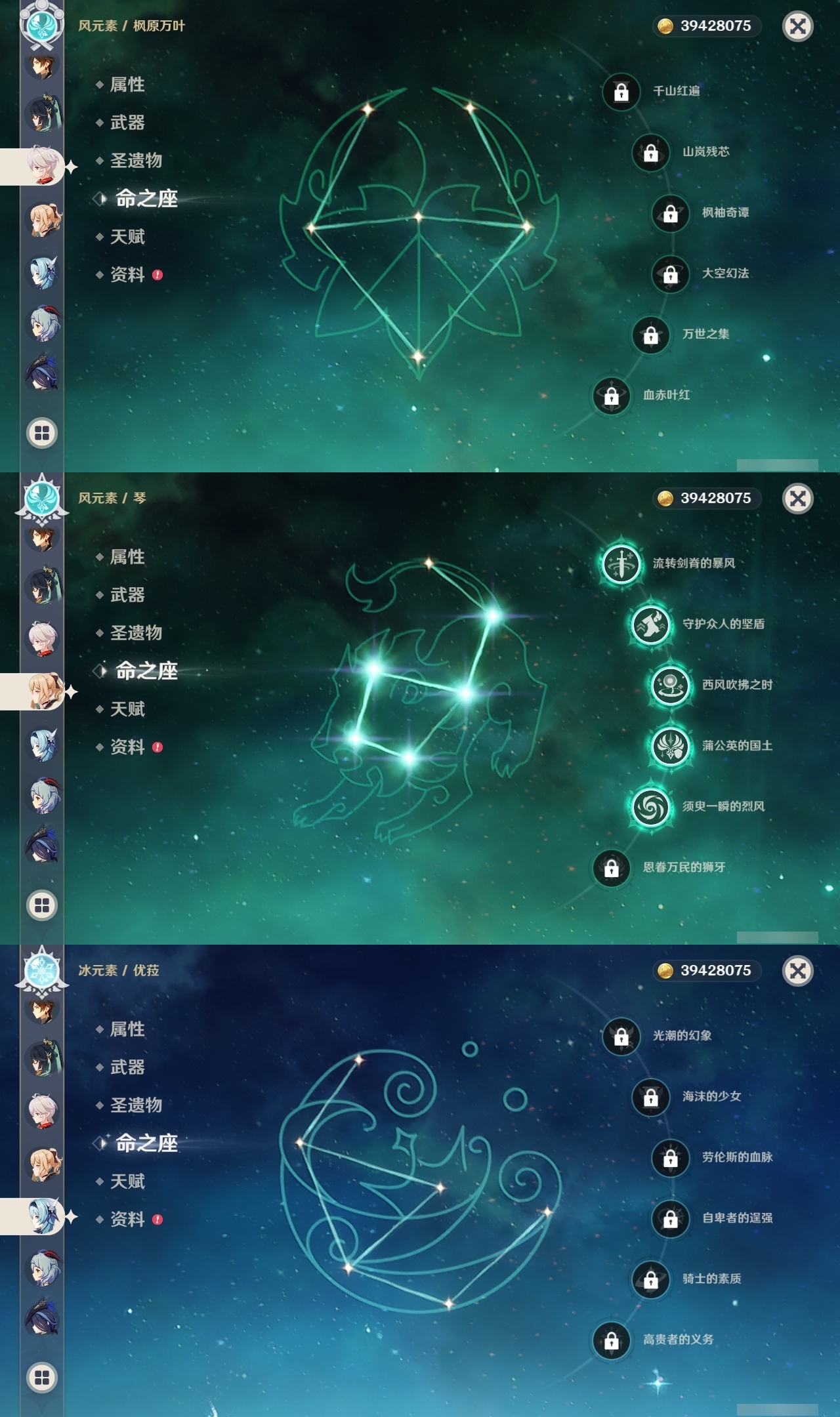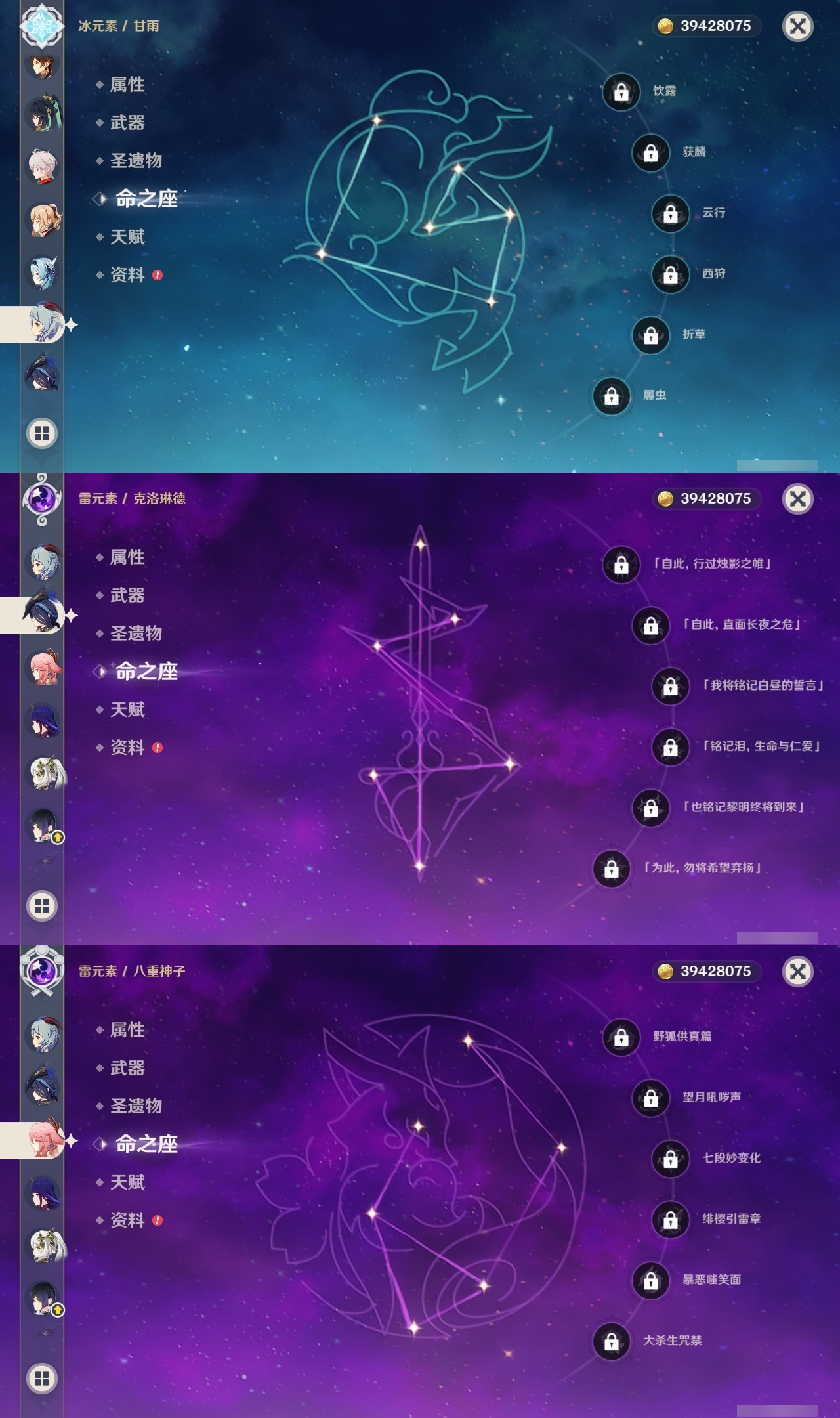 【原神】【lyys11322】冒险等级:60,五星数量:37,五星角色:琴 5命迪卢克 3命刻晴 3命夜兰 3命雷电将军 2命闲云 1命胡桃 1命莫娜 1命七七 1命玛薇卡茜特菈莉优菈迪希雅钟离申鹤八重神子娜维娅提纳里阿蕾奇诺纳西妲枫原万叶甘雨克洛琳德可莉__五星武器:飞雷之弦振和璞鸢护摩之杖狼的末路天空之脊天空之卷天空之翼无工之剑薙草之稻光贯虹之槊波乱月白经津若水__四星角色:班尼特 6命行秋 6命九条裟罗 6命香菱 6命珐露珊 6命凝光 6命迪奥娜 6命柯莱 6命早柚 6命托马 6命辛焱 6命诺艾尔 6命罗莎莉亚 6命北斗 6命夏沃蕾 6命嘉明 6命芭芭拉 5命琳妮特 5命砂糖 4命多莉 4命云堇 4命蓝砚 4命烟绯 4命重云 4命菲谢尔 4命莱依拉 3命坎蒂丝 3命雷泽 3命赛索斯 3命鹿野院平藏 2命五郎 2命卡齐娜 1命瑶瑶 1命米卡 1命菲米尼 1命埃洛伊久岐忍绮良良
