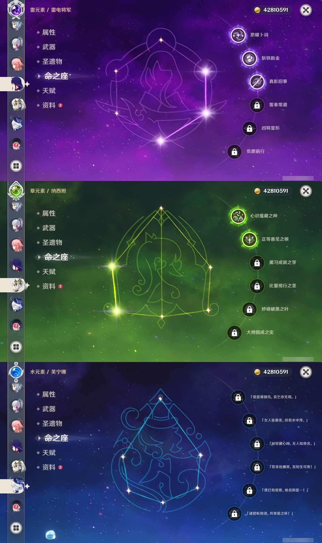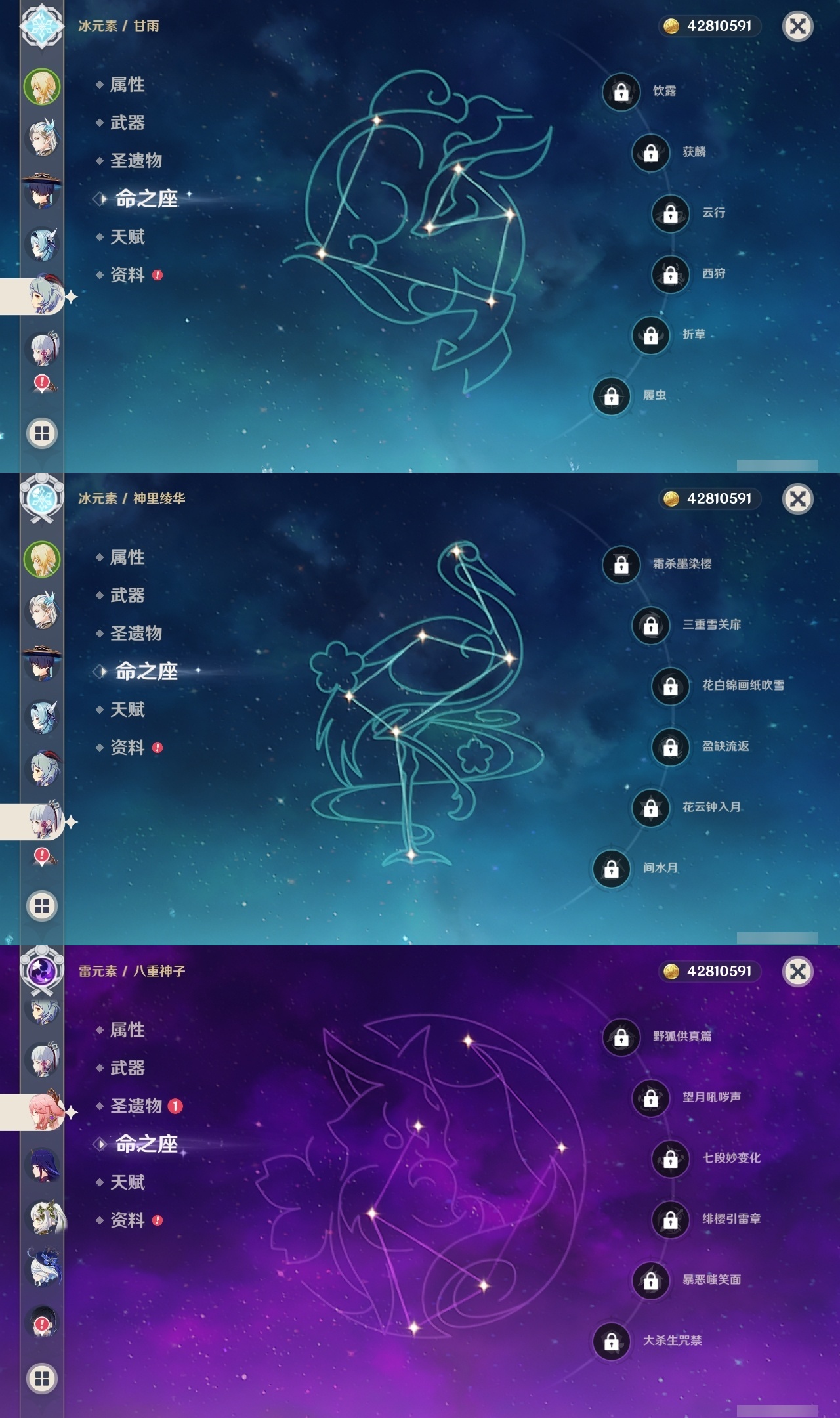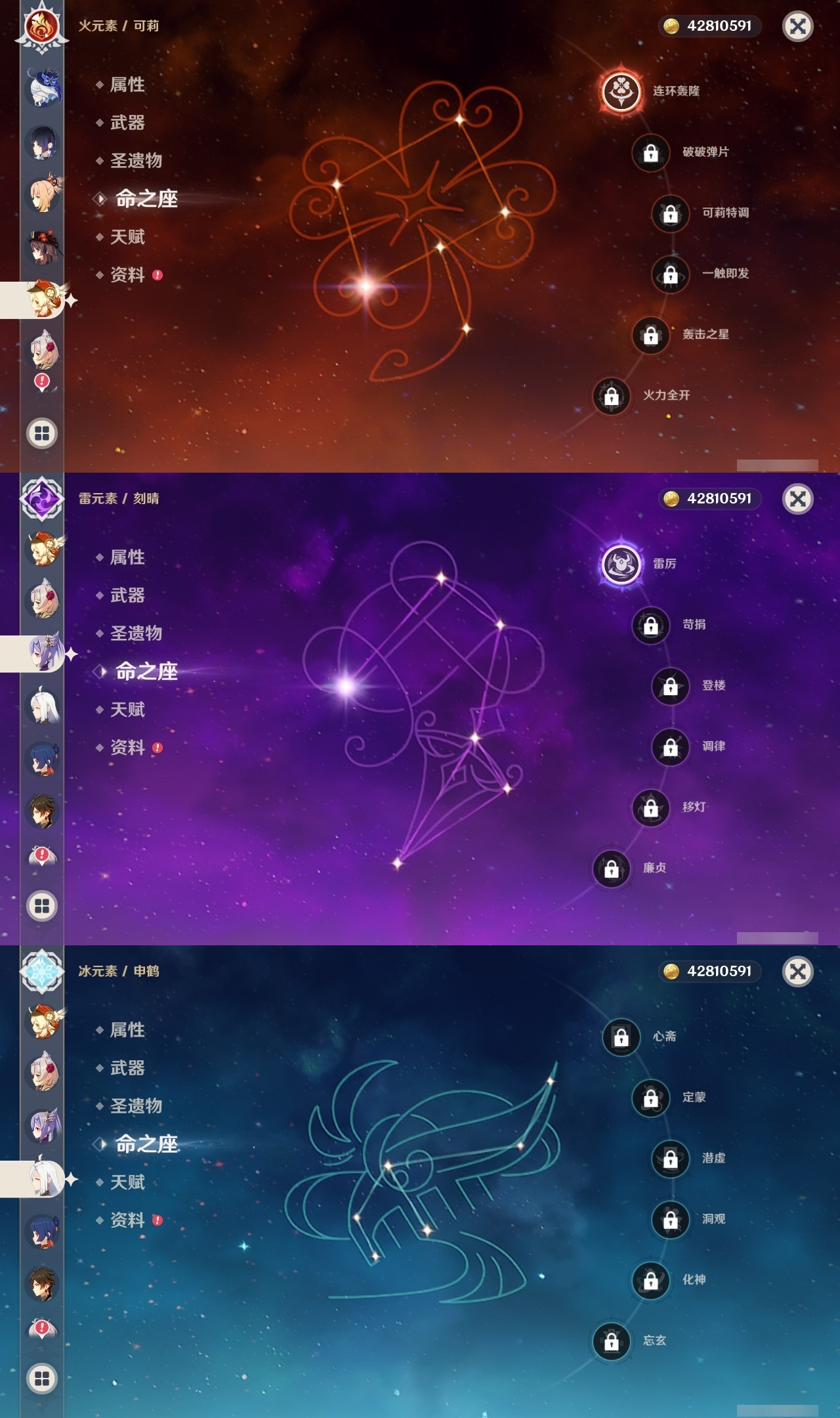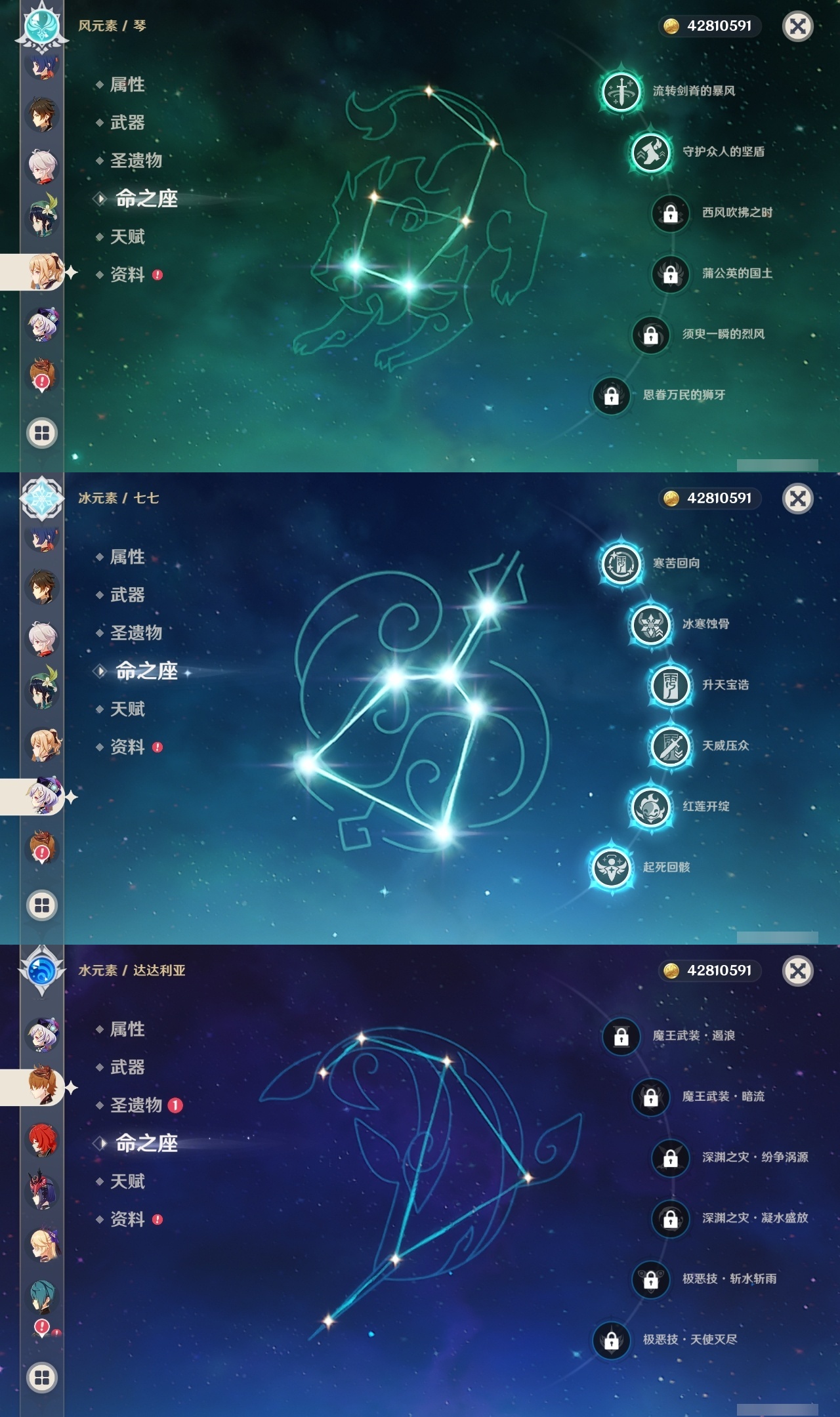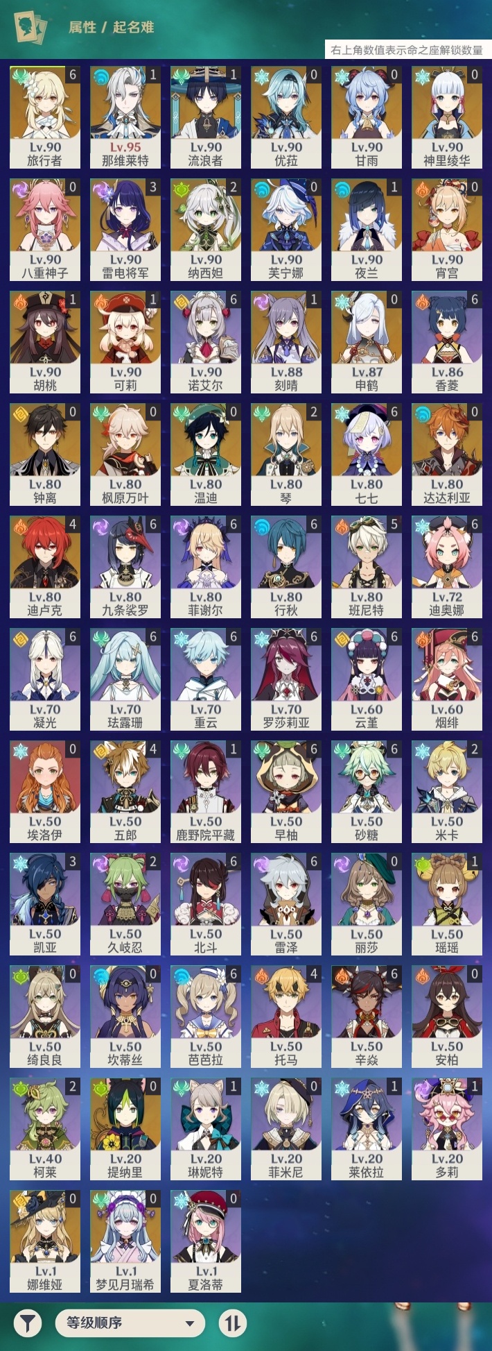 【原神】【lyys11321】冒险等级:60,五星数量:42,五星角色:七七 6命迪卢克 4命雷电将军 3命琴 2命纳西妲 2命那维莱特 1命胡桃 1命可莉 1命刻晴 1命夜兰 1命流浪者 1命神里绫华温迪宵宫优菈钟离达达利亚梦见月瑞希申鹤八重神子芙宁娜娜维娅提纳里枫原万叶甘雨__五星武器:万世流涌大典不灭月华飞雷之弦振和璞鸢护摩之杖狼的末路磐岩结绿四风原典天空之傲天空之卷天空之刃无工之剑薙草之稻光神乐之真意若水千夜浮梦__四星角色:行秋 6命九条裟罗 6命香菱 6命珐露珊 6命凝光 6命迪奥娜 6命砂糖 6命芭芭拉 6命云堇 6命早柚 6命烟绯 6命重云 6命辛焱 6命诺艾尔 6命罗莎莉亚 6命雷泽 6命菲谢尔 6命北斗 6命班尼特 5命托马 4命五郎 4命久岐忍 2命米卡 2命柯莱 2命鹿野院平藏 1命瑶瑶 1命莱依拉 1命多莉 1命琳妮特 1命埃洛伊绮良良坎蒂丝菲米尼夏洛蒂