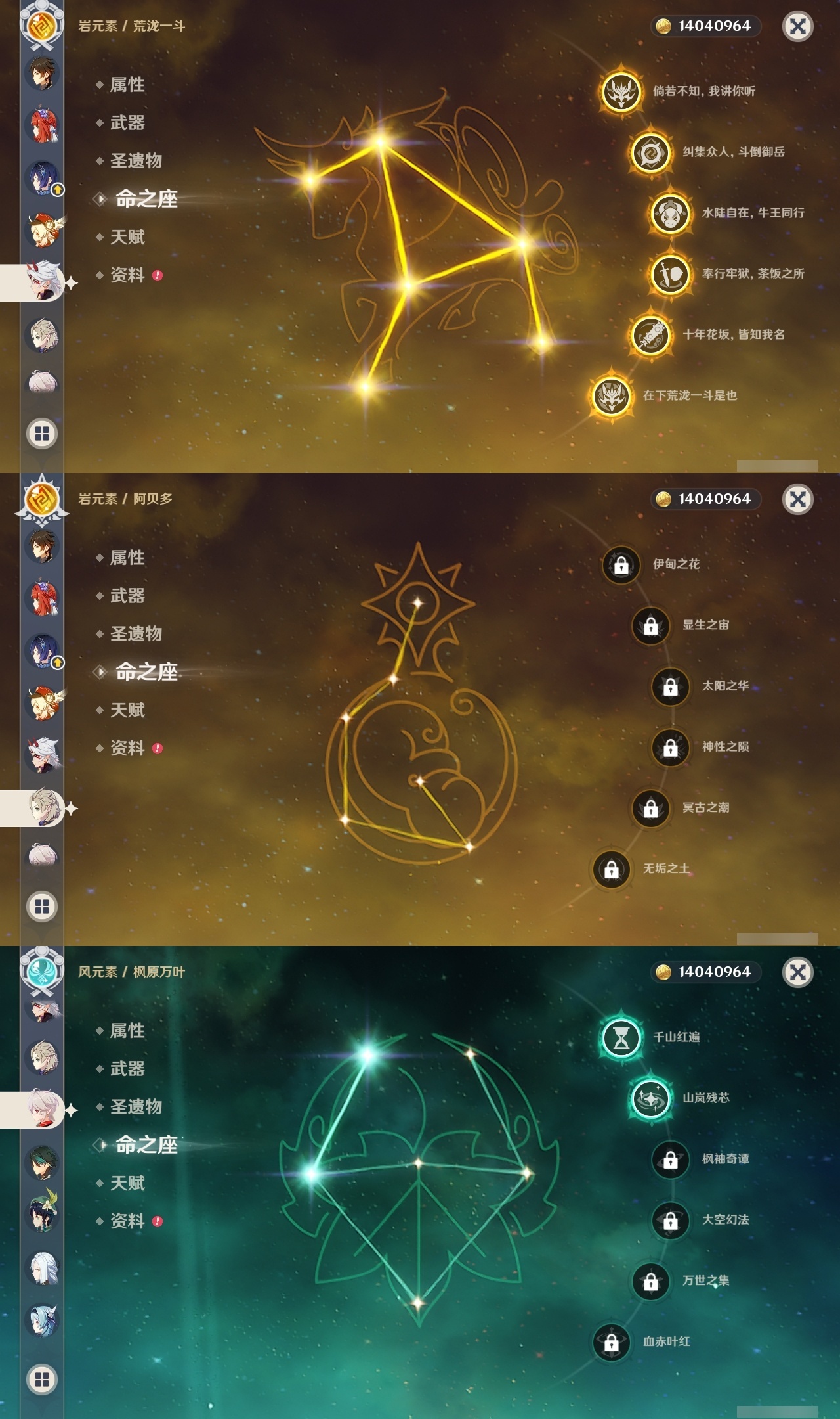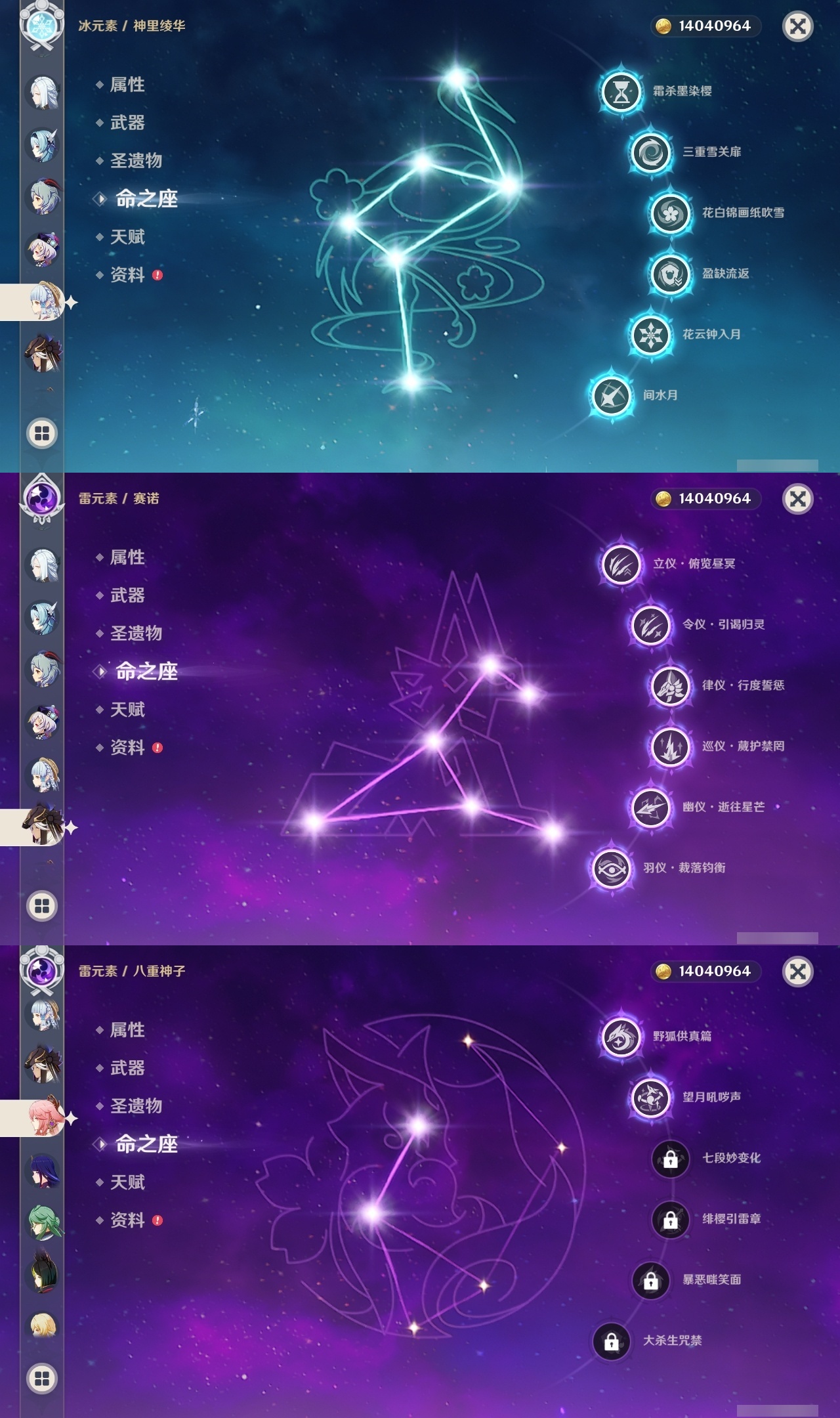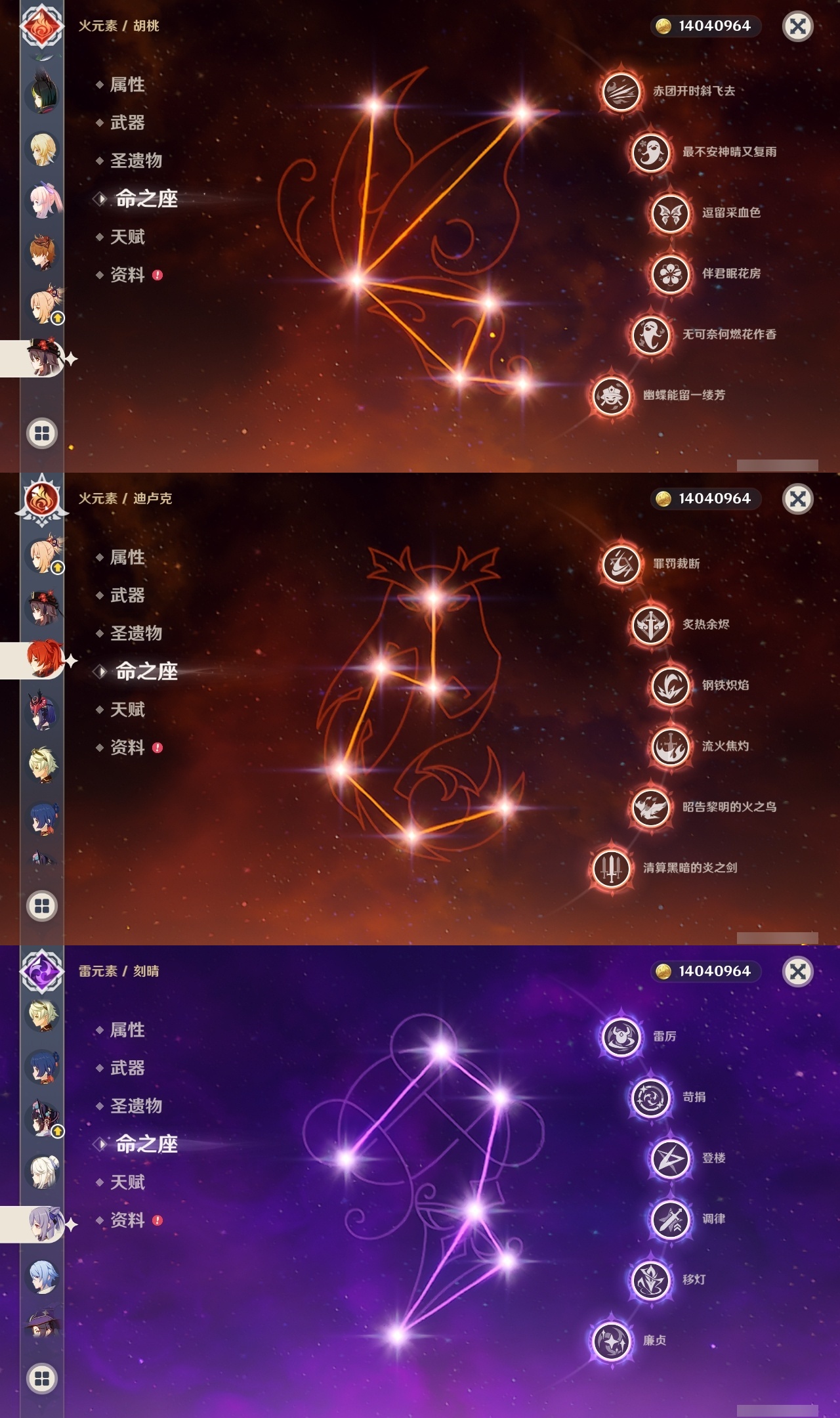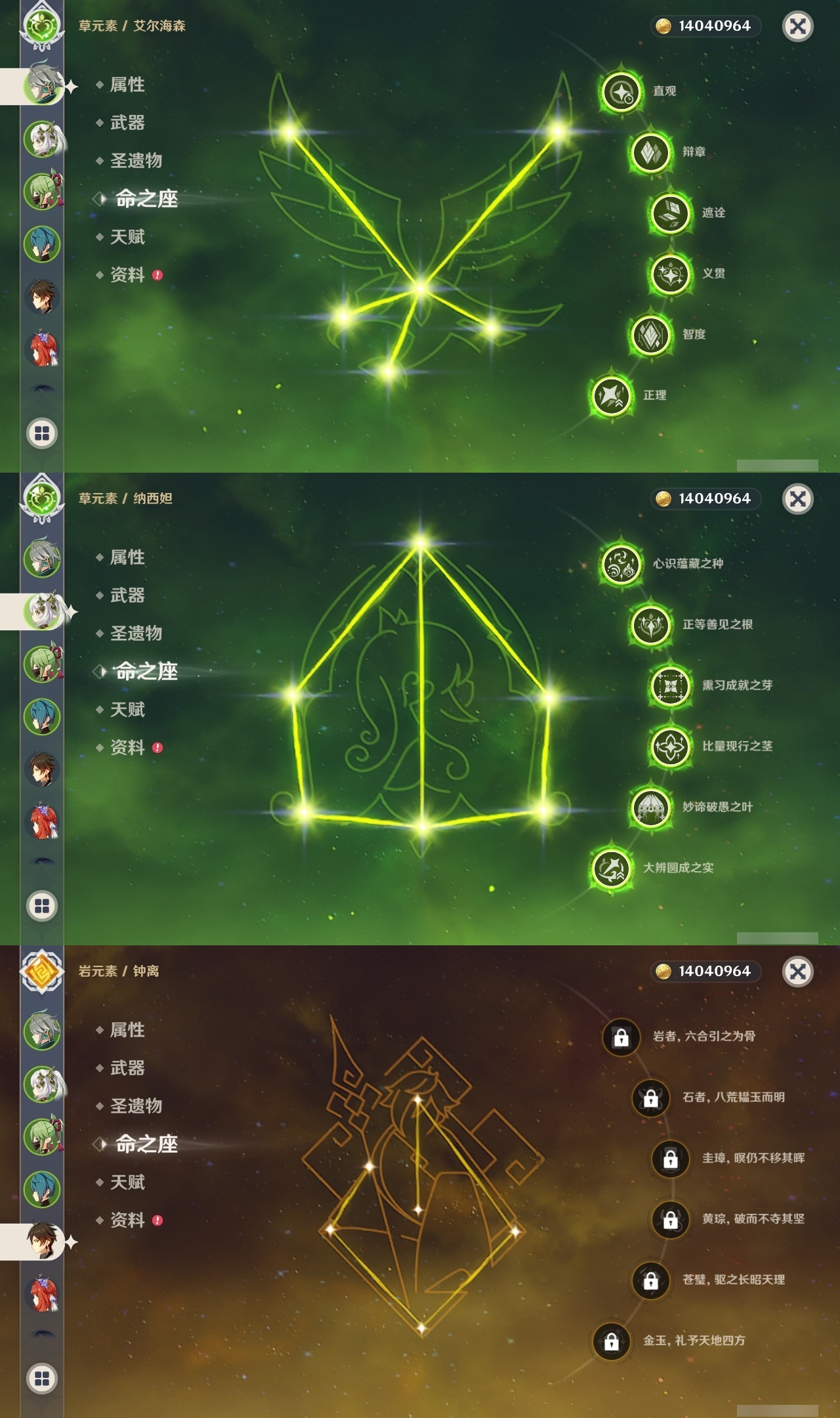 【原神】5满命,冒险等级:60,五星数量:67,五星角色:迪卢克 6命胡桃 6命刻晴 6命莫娜 6命七七 6命琴 6命神里绫华 6命荒泷一斗 6命申鹤 6命夜兰 6命提纳里 6命赛诺 6命妮露 6命纳西妲 6命艾尔海森 6命雷电将军 3命枫原万叶 2命可莉 2命八重神子 2命那维莱特 1命甘雨 1命魈 1命优菈 1命珊瑚宫心海白术温迪宵宫迪希雅钟离达达利亚神里绫人阿贝多娜维娅丝柯克流浪者__五星武器:风鹰剑 5精护摩之杖 5精天空之傲 5精天空之脊 5精雾切之回光 5精薙草之稻光 5精若水 5精赤沙之杖 5精圣显之钥 5精千夜浮梦 5精尘世之锁 4精和璞鸢 4精狼的末路 4精天空之翼 4精无工之剑 4精阿莫斯之弓 3精飞雷之弦振 3精天空之刃 3精磐岩结绿 2精四风原典 2精终末嗟叹之诗 2精赤角石溃杵 2精裁叶萃光不灭月华苍古自由之誓松籁响起之时天空之卷斫峰之刃冬极白星息灾神乐之真意__四星角色:班尼特 6命行秋 6命九条裟罗 6命香菱 6命久岐忍 6命凝光 6命迪奥娜 6命砂糖 6命瑶瑶 6命米卡 6命坎蒂丝 6命多莉 6命柯莱 6命芭芭拉 6命云堇 6命早柚 6命托马 6命五郎 6命烟绯 6命重云 6命辛焱 6命诺艾尔 6命罗莎莉亚 6命雷泽 6命菲谢尔 6命北斗 6命赛索斯 5命鹿野院平藏 4命珐露珊 3命卡维 3命爱诺 2命欧洛伦 1命蓝砚 1命夏沃蕾 1命埃洛伊绮良良琳妮特嘉明伊法伊安珊