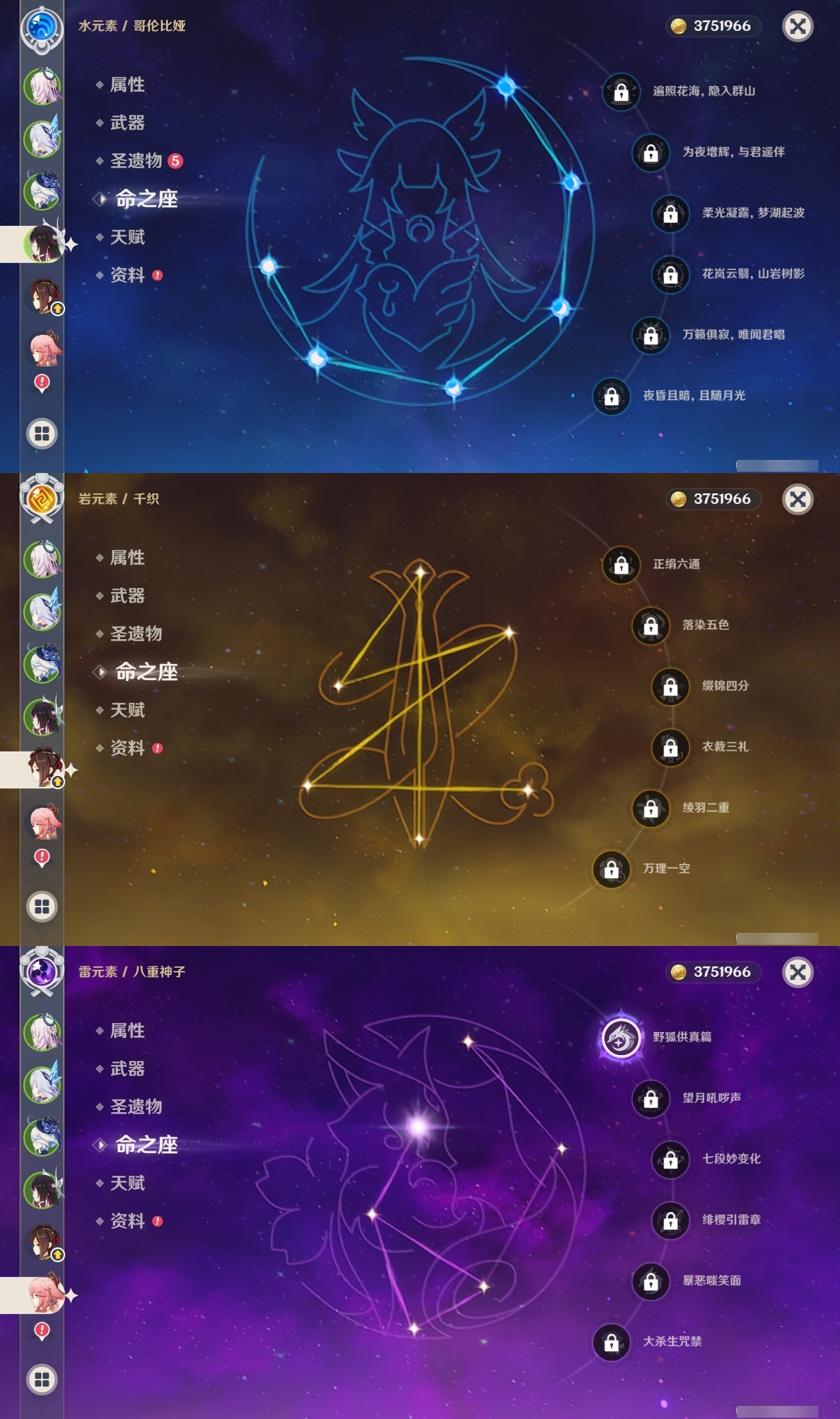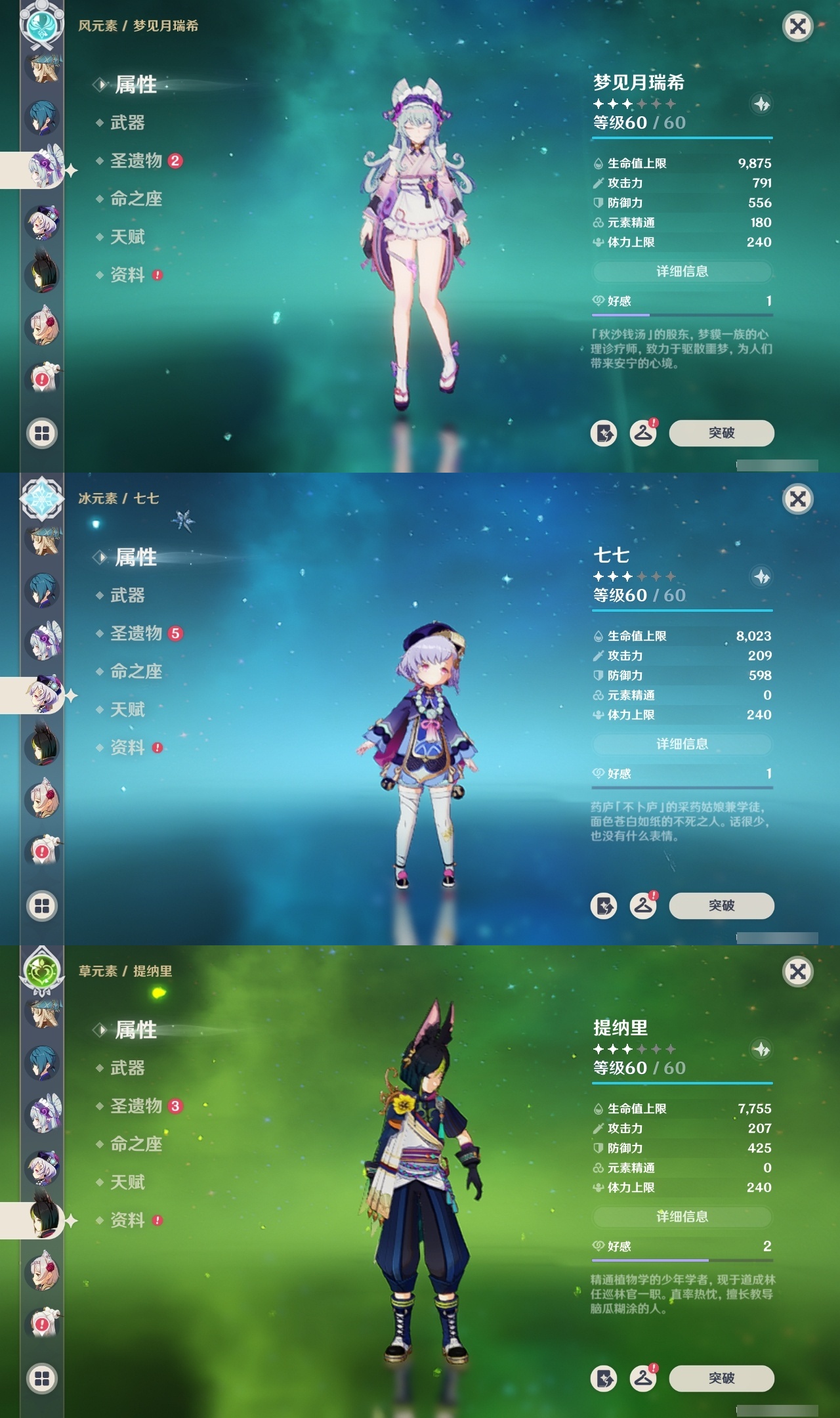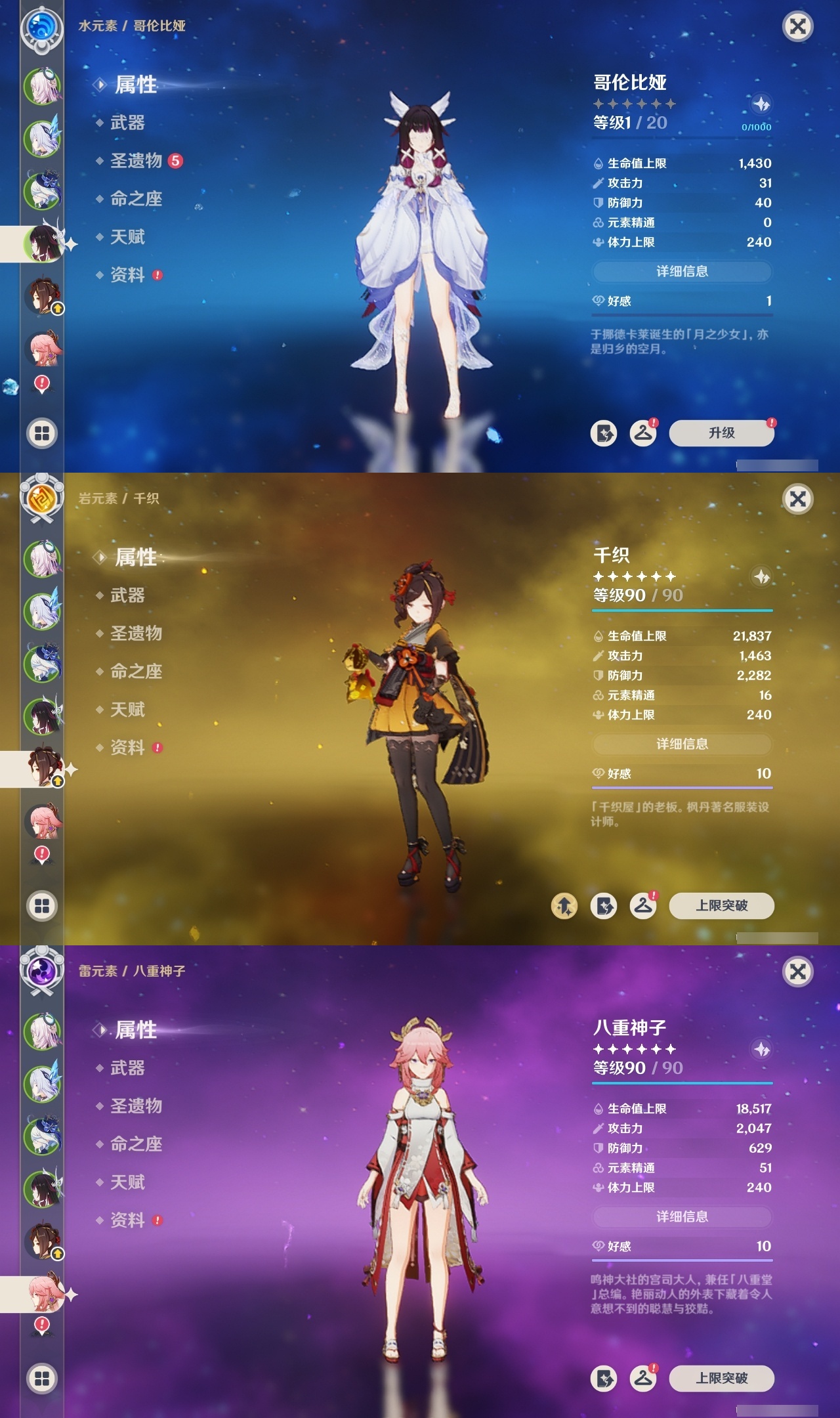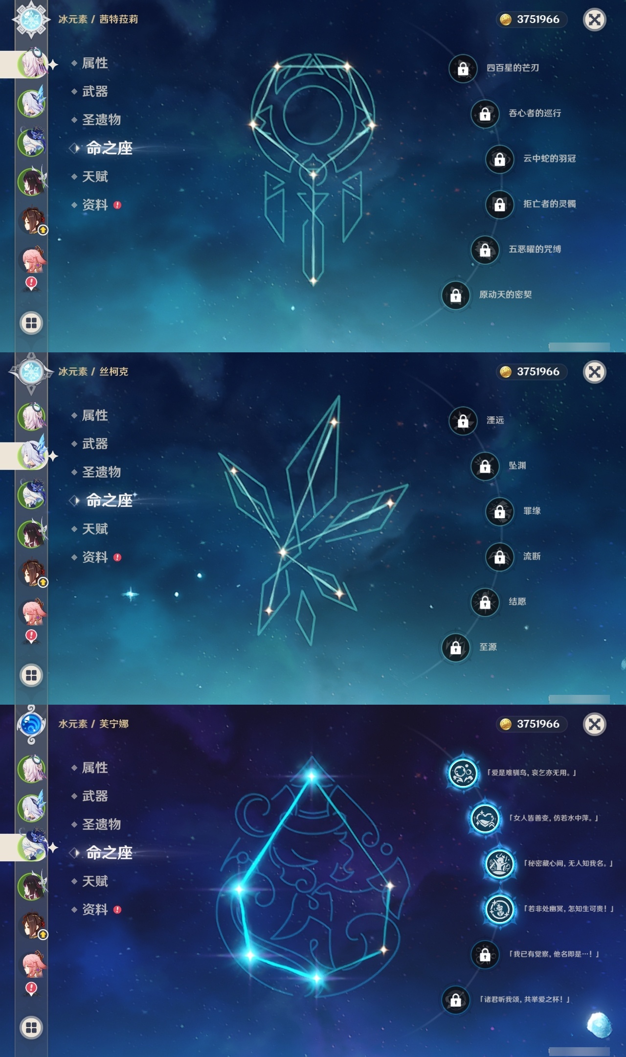 【原神】【lyys11284】冒险等级:59,五星数量:30,五星角色:芙宁娜 4命莫娜 4命七七 2命宵宫 1命八重神子 1命提纳里 1命艾梅莉埃琴基尼奇茜特菈莉迪希雅钟离梦见月瑞希闲云千织丝柯克纳西妲迪卢克哥伦比娅刻晴雷电将军__五星武器:天空之刃 2精静水流涌之辉裁叶萃光风鹰剑天空之傲天空之脊天空之卷__四星角色:班尼特 6命行秋 6命香菱 6命砂糖 6命多莉 6命诺艾尔 6命罗莎莉亚 6命嘉明 6命赛索斯 6命卡齐娜 5命柯莱 5命芭芭拉 5命托马 5命烟绯 5命菲谢尔 5命迪奥娜 4命云堇 4命五郎 4命夏沃蕾 4命伊安珊 4命九条裟罗 3命凝光 3命卡维 3命辛焱 3命塔利雅 3命绮良良 2命瑶瑶 2命莱依拉 2命坎蒂丝 2命欧洛伦 2命琳妮特 2命夏洛蒂 2命伊法 2命久岐忍 1命米卡 1命蓝砚 1命早柚 1命重云 1命北斗 1命爱诺 1命奇偶·女性奇偶·男性鹿野院平藏珐露珊雷泽菲米尼