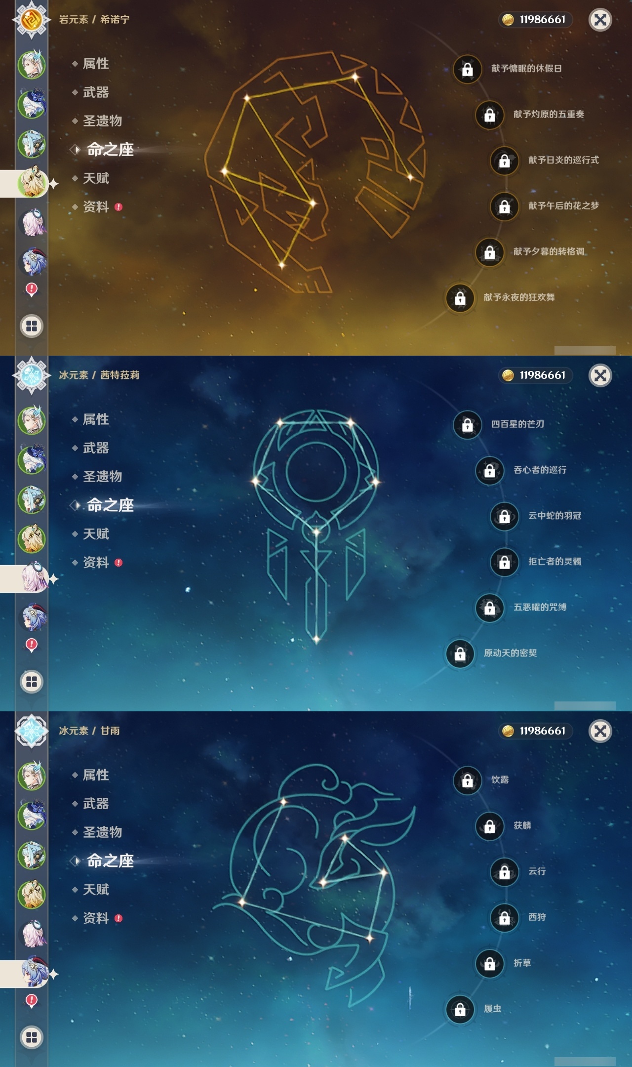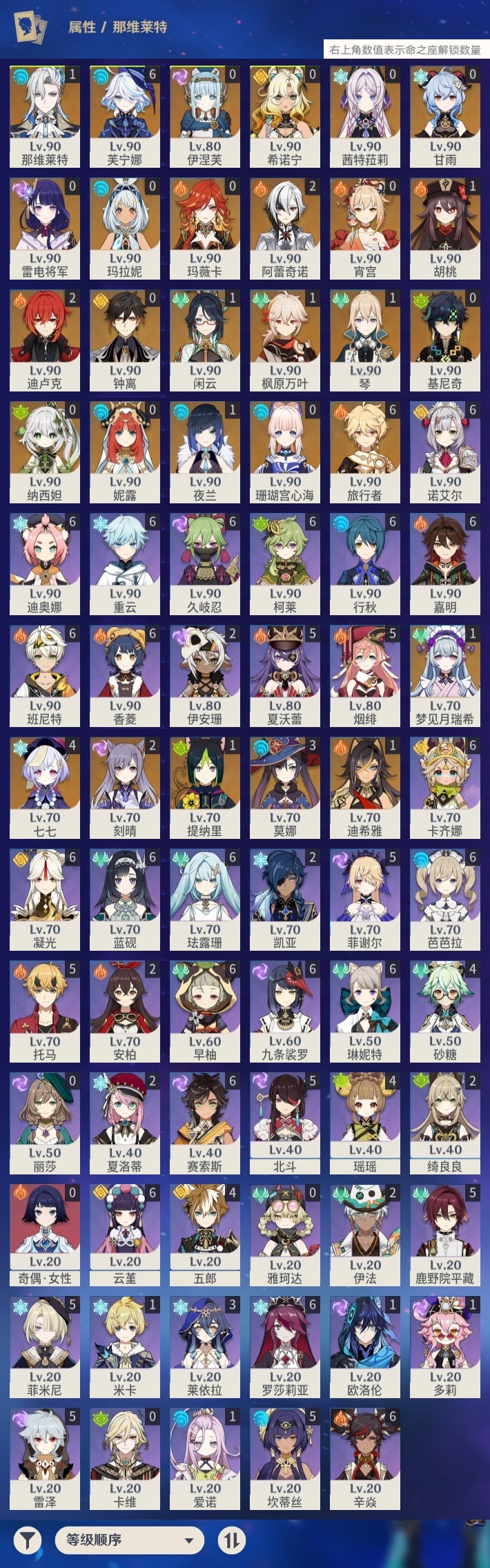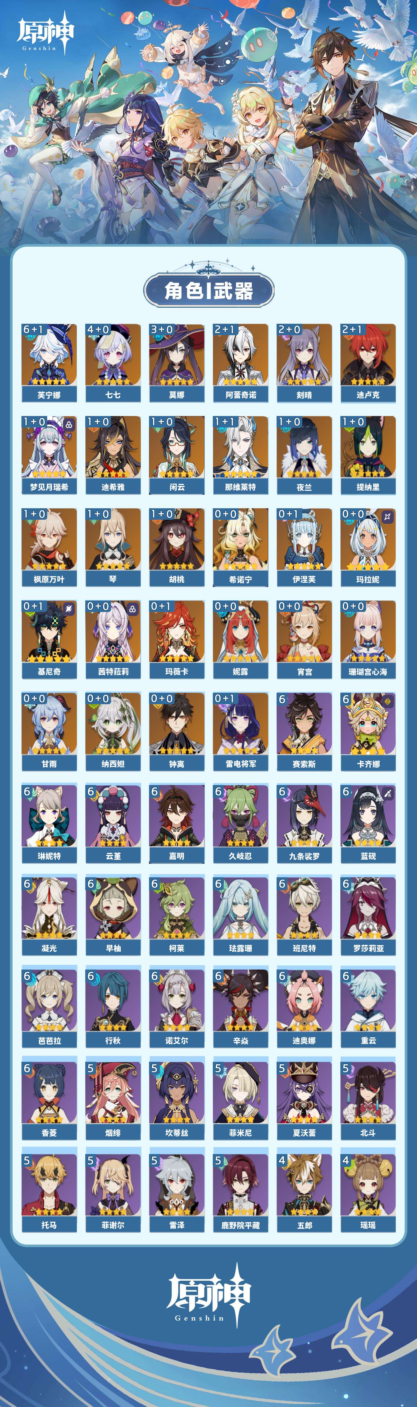【原神】【lyys11329】冒险等级:60,五星数量:40,五星角色:芙宁娜 6命七七 4命莫娜 3命阿蕾奇诺 2命迪卢克 2命刻晴 2命迪希雅 1命梦见月瑞希 1命那维莱特 1命闲云 1命枫原万叶 1命胡桃 1命琴 1命夜兰 1命提纳里 1命玛拉妮基尼奇珊瑚宫心海希诺宁玛薇卡茜特菈莉宵宫钟离妮露伊涅芙纳西妲甘雨雷电将军__五星武器:天空之卷 2精山王长牙焚曜千阳万世流涌大典静水流涌之辉赤月之形支离轮光和璞鸢狼的末路薙草之稻光神乐之真意__四星角色:卡齐娜 6命班尼特 6命行秋 6命九条裟罗 6命香菱 6命久岐忍 6命珐露珊 6命凝光 6命迪奥娜 6命柯莱 6命芭芭拉 6命云堇 6命蓝砚 6命早柚 6命重云 6命辛焱 6命诺艾尔 6命罗莎莉亚 6命琳妮特 6命嘉明 6命赛索斯 6命鹿野院平藏 5命坎蒂丝 5命托马 5命烟绯 5命雷泽 5命菲谢尔 5命北斗 5命菲米尼 5命夏沃蕾 5命砂糖 4命瑶瑶 4命五郎 4命莱依拉 3命绮良良 2命夏洛蒂 2命伊法 2命伊安珊 2命米卡 1命多莉 1命欧洛伦 1命爱诺 1命奇偶·女性卡维