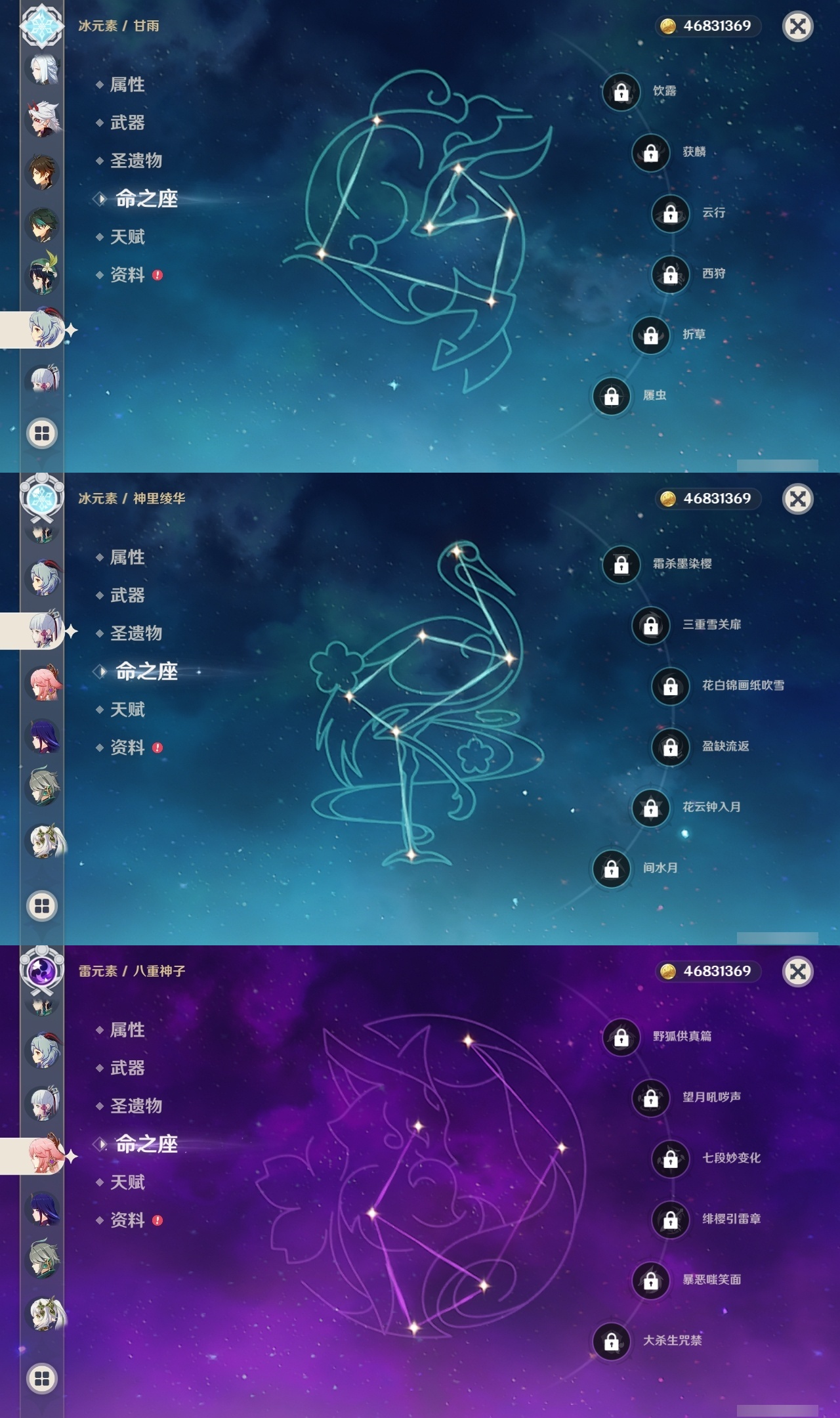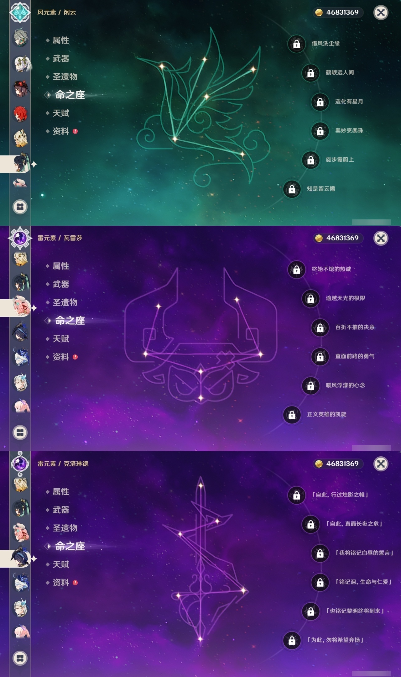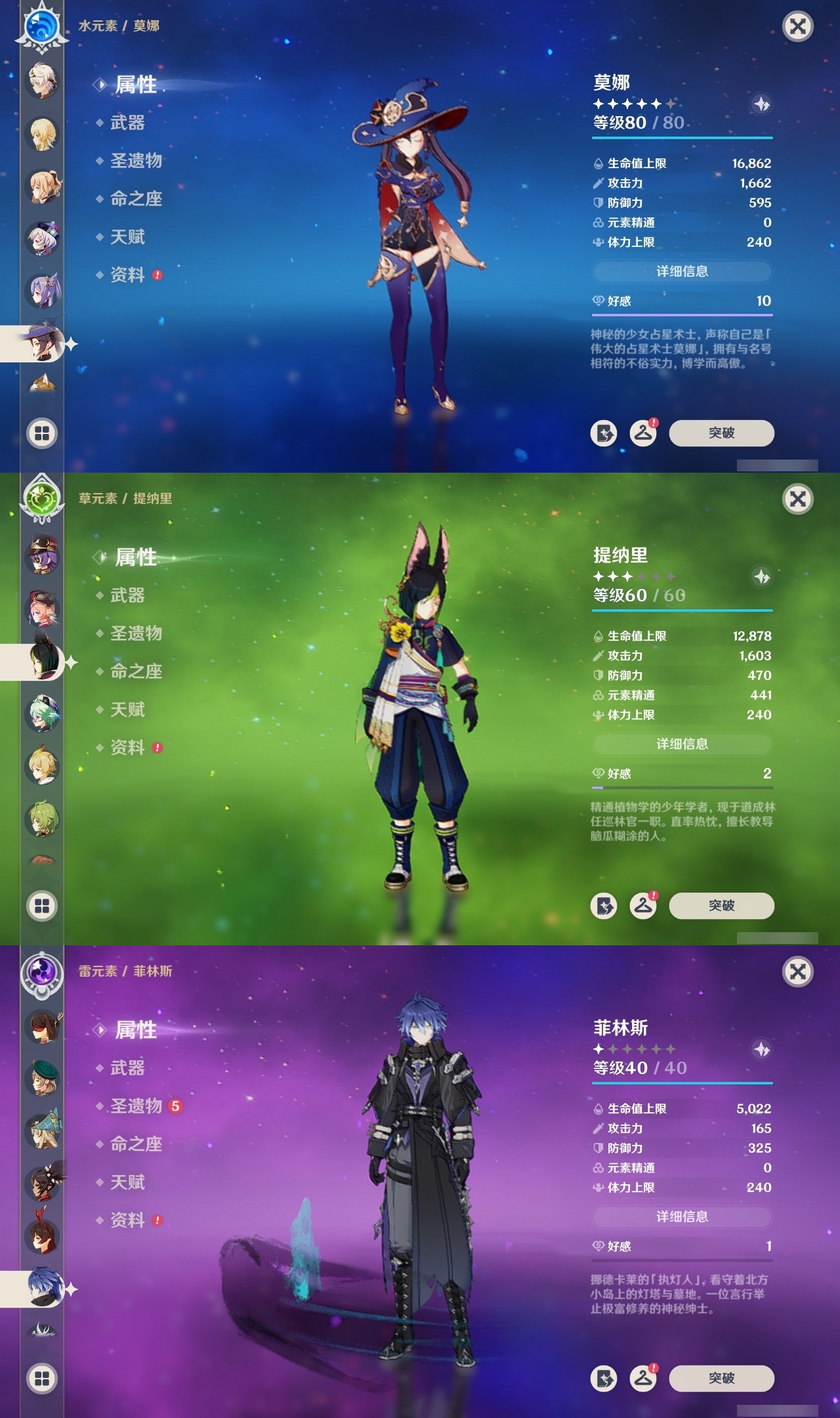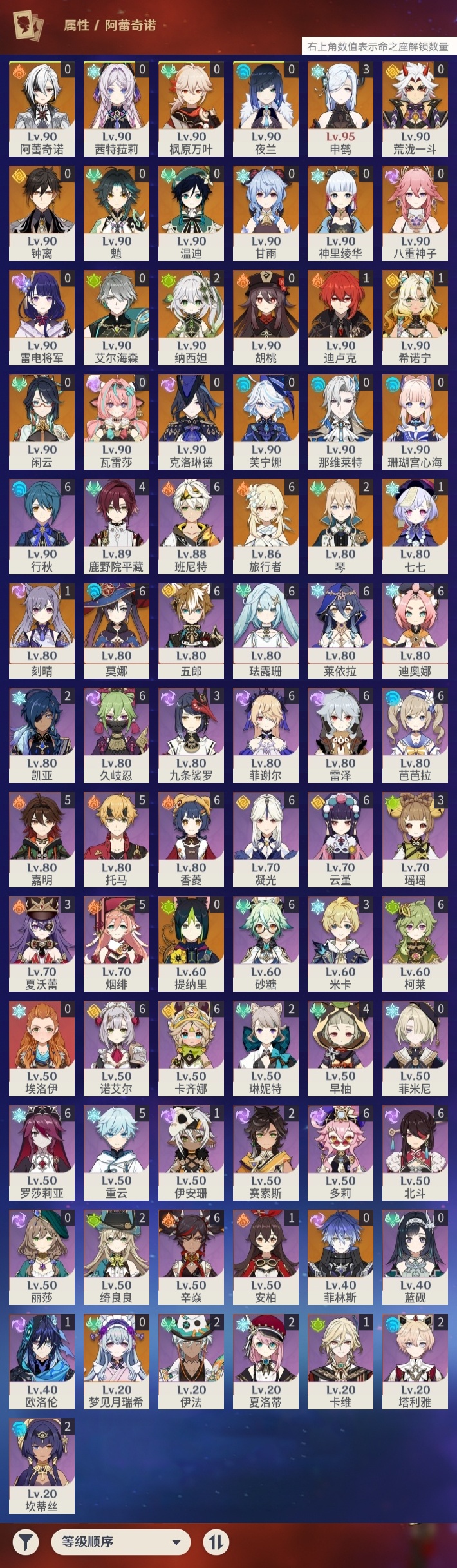 【原神】【lyys11330】冒险等级:60,五星数量:51,五星角色:莫娜 6命申鹤 3命琴 2命纳西妲 2命希诺宁 1命迪卢克 1命刻晴 1命七七 1命珊瑚宫心海神里绫华温迪茜特菈莉钟离荒泷一斗梦见月瑞希瓦雷莎八重神子那维莱特夜兰芙宁娜提纳里闲云阿蕾奇诺菲林斯艾尔海森枫原万叶甘雨魈胡桃克洛琳德雷电将军__五星武器:狼的末路 2精溢彩心念万世流涌大典金流监督鹤鸣余音裁叶萃光飞雷之弦振风鹰剑和璞鸢护摩之杖天空之傲天空之卷天空之刃天空之翼无工之剑薙草之稻光终末嗟叹之诗贯虹之槊千夜浮梦__四星角色:卡齐娜 6命班尼特 6命行秋 6命香菱 6命久岐忍 6命珐露珊 6命凝光 6命迪奥娜 6命砂糖 6命莱依拉 6命多莉 6命柯莱 6命芭芭拉 6命云堇 6命五郎 6命辛焱 6命诺艾尔 6命罗莎莉亚 6命雷泽 6命菲谢尔 6命北斗 6命托马 5命烟绯 5命重云 5命嘉明 5命鹿野院平藏 4命早柚 4命九条裟罗 3命瑶瑶 3命米卡 3命夏沃蕾 3命绮良良 2命坎蒂丝 2命琳妮特 2命夏洛蒂 2命伊法 2命塔利雅 2命赛索斯 2命卡维 1命欧洛伦 1命伊安珊 1命埃洛伊蓝砚菲米尼