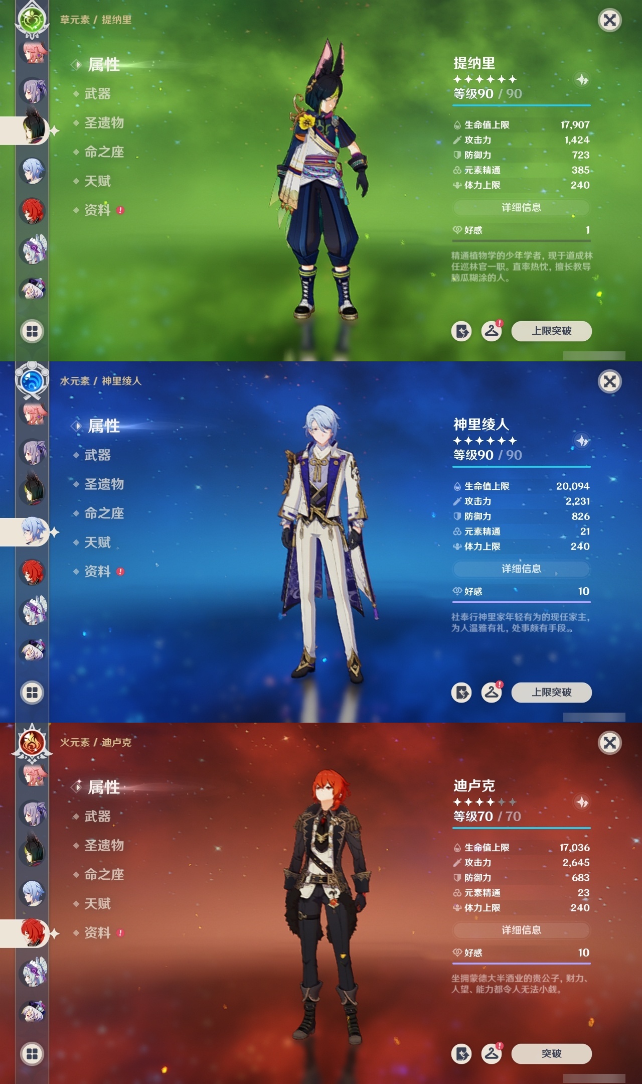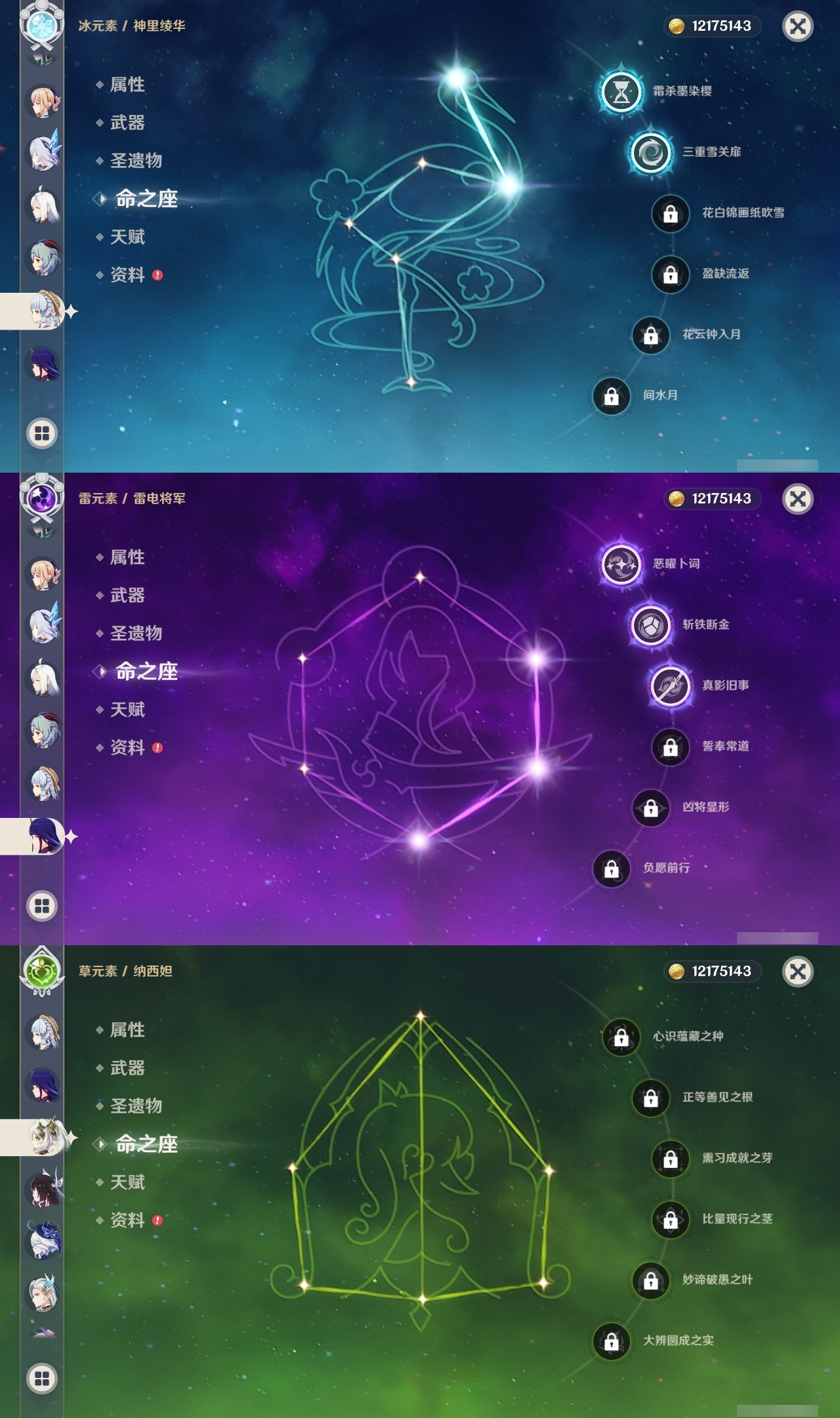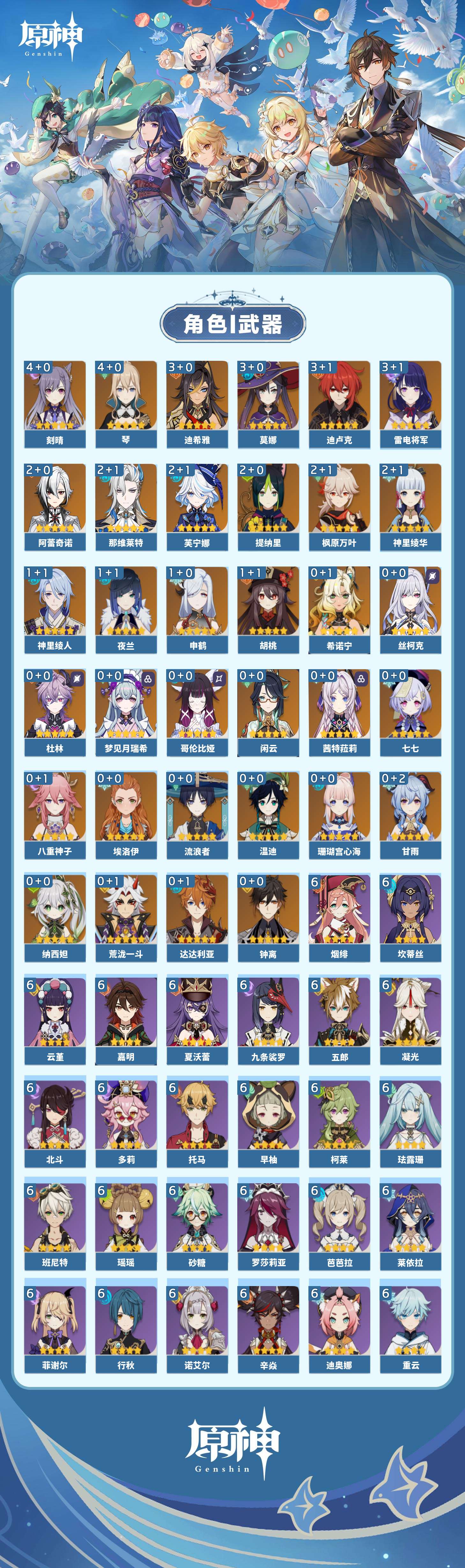 【原神】【lyys11286】冒险等级:60,五星数量:53,五星角色:刻晴 4命琴 4命迪希雅 3命迪卢克 3命雷电将军 3命莫娜 3命那维莱特 2命芙宁娜 2命阿蕾奇诺 2命枫原万叶 2命神里绫华 2命提纳里 2命胡桃 1命申鹤 1命神里绫人 1命夜兰 1命七七珊瑚宫心海希诺宁温迪茜特菈莉钟离荒泷一斗达达利亚梦见月瑞希八重神子闲云丝柯克纳西妲流浪者杜林哥伦比娅甘雨__五星武器:阿莫斯之弓 2精岩峰巡歌万世流涌大典静水流涌之辉苍古自由之誓风鹰剑和璞鸢护摩之杖狼的末路天空之卷天空之翼雾切之回光薙草之稻光赤角石溃杵冬极白星神乐之真意波乱月白经津若水__四星角色:班尼特 6命行秋 6命九条裟罗 6命香菱 6命鹿野院平藏 6命珐露珊 6命凝光 6命迪奥娜 6命砂糖 6命瑶瑶 6命莱依拉 6命坎蒂丝 6命多莉 6命柯莱 6命芭芭拉 6命云堇 6命早柚 6命托马 6命五郎 6命烟绯 6命重云 6命辛焱 6命诺艾尔 6命罗莎莉亚 6命雷泽 6命菲谢尔 6命北斗 6命夏沃蕾 6命嘉明 6命绮良良 5命琳妮特 5命赛索斯 5命久岐忍 4命卡维 2命蓝砚 2命菲米尼 2命伊法 2命伊安珊 2命塔利雅 2命爱诺 2命卡齐娜 1命米卡 1命夏洛蒂 1命埃洛伊奇偶·女性欧洛伦