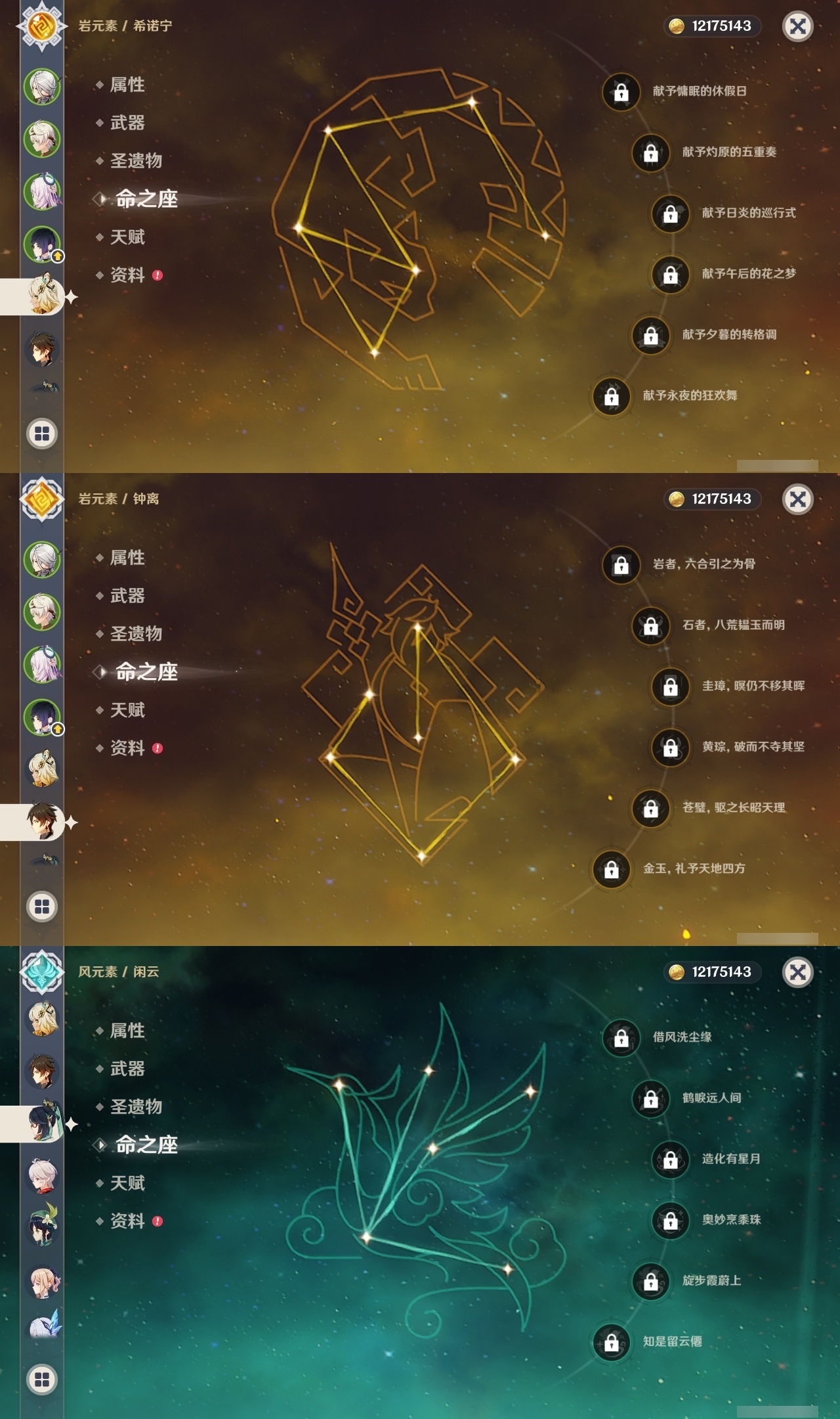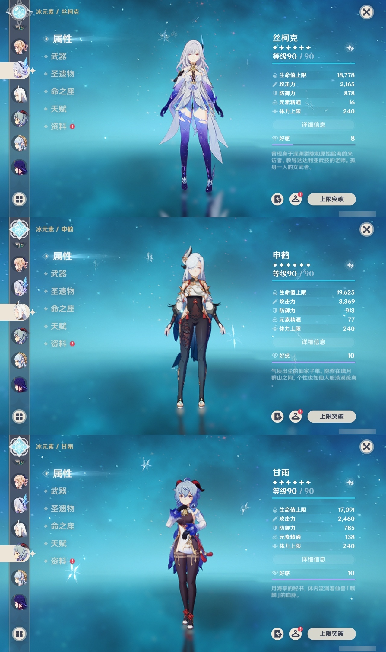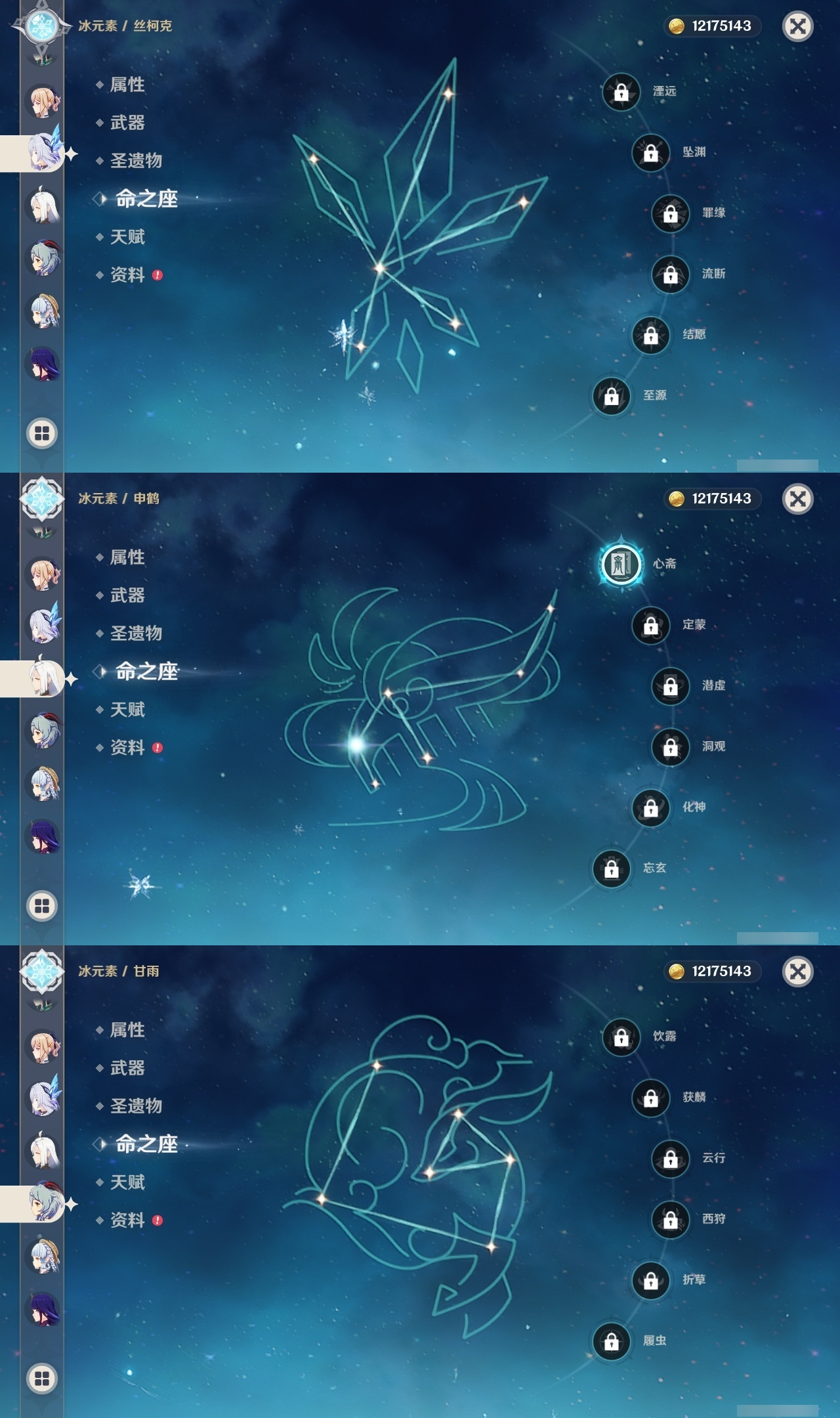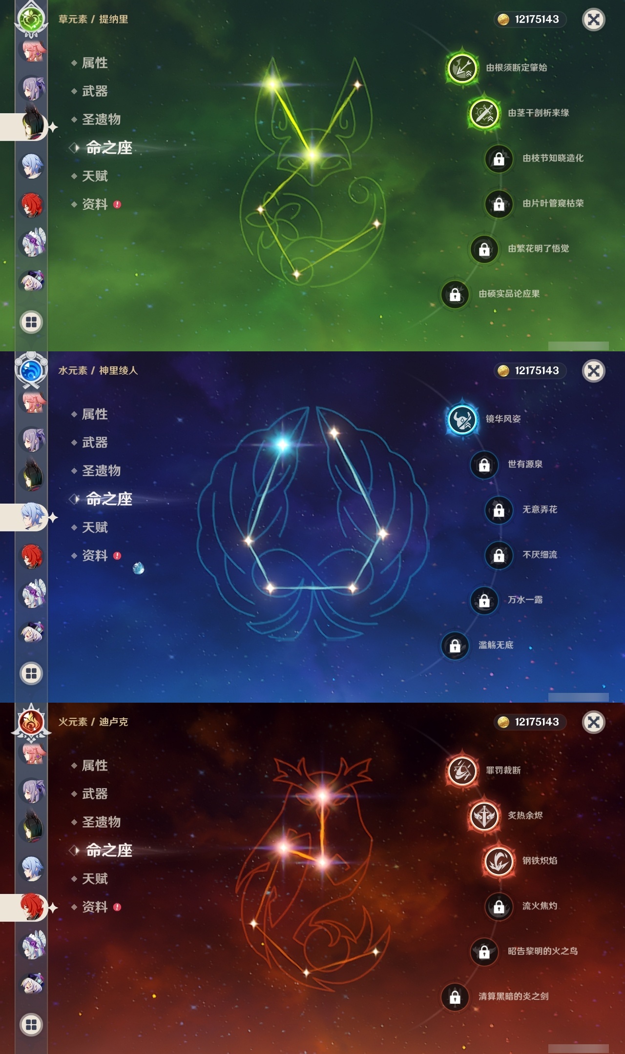 【原神】【lyys11286】冒险等级:60,五星数量:53,五星角色:刻晴 4命琴 4命迪希雅 3命迪卢克 3命雷电将军 3命莫娜 3命那维莱特 2命芙宁娜 2命阿蕾奇诺 2命枫原万叶 2命神里绫华 2命提纳里 2命胡桃 1命申鹤 1命神里绫人 1命夜兰 1命七七珊瑚宫心海希诺宁温迪茜特菈莉钟离荒泷一斗达达利亚梦见月瑞希八重神子闲云丝柯克纳西妲流浪者杜林哥伦比娅甘雨__五星武器:阿莫斯之弓 2精岩峰巡歌万世流涌大典静水流涌之辉苍古自由之誓风鹰剑和璞鸢护摩之杖狼的末路天空之卷天空之翼雾切之回光薙草之稻光赤角石溃杵冬极白星神乐之真意波乱月白经津若水__四星角色:班尼特 6命行秋 6命九条裟罗 6命香菱 6命鹿野院平藏 6命珐露珊 6命凝光 6命迪奥娜 6命砂糖 6命瑶瑶 6命莱依拉 6命坎蒂丝 6命多莉 6命柯莱 6命芭芭拉 6命云堇 6命早柚 6命托马 6命五郎 6命烟绯 6命重云 6命辛焱 6命诺艾尔 6命罗莎莉亚 6命雷泽 6命菲谢尔 6命北斗 6命夏沃蕾 6命嘉明 6命绮良良 5命琳妮特 5命赛索斯 5命久岐忍 4命卡维 2命蓝砚 2命菲米尼 2命伊法 2命伊安珊 2命塔利雅 2命爱诺 2命卡齐娜 1命米卡 1命夏洛蒂 1命埃洛伊奇偶·女性欧洛伦