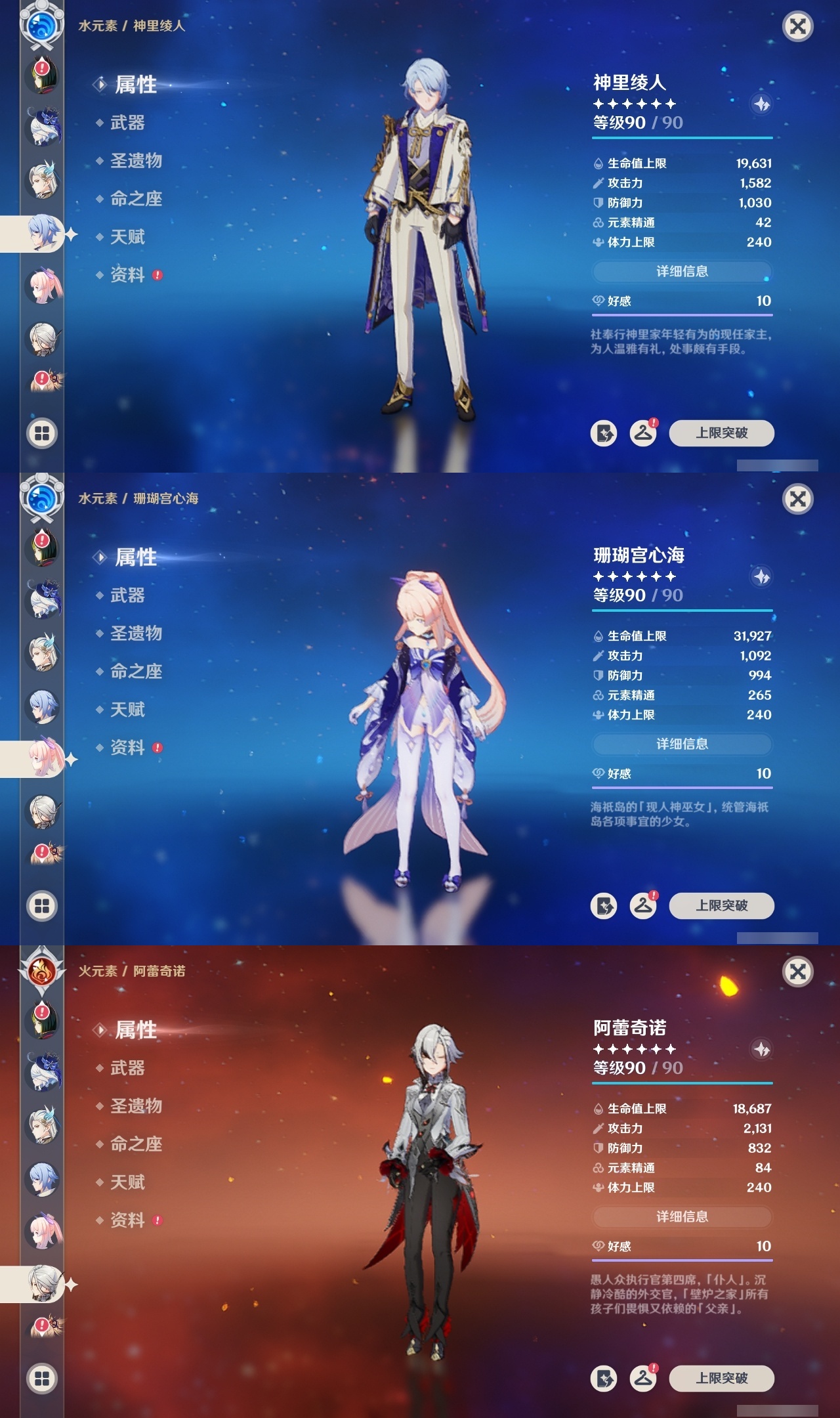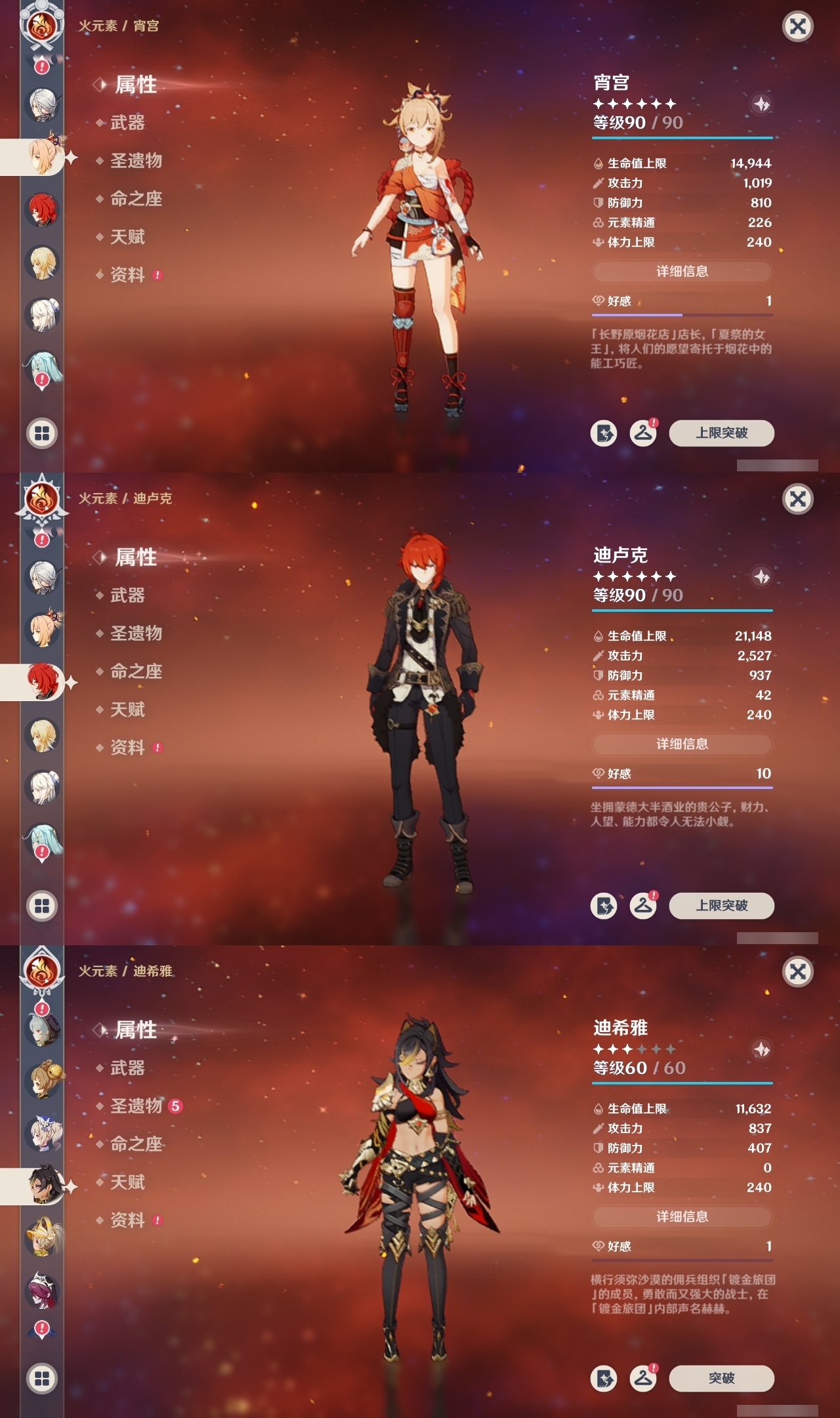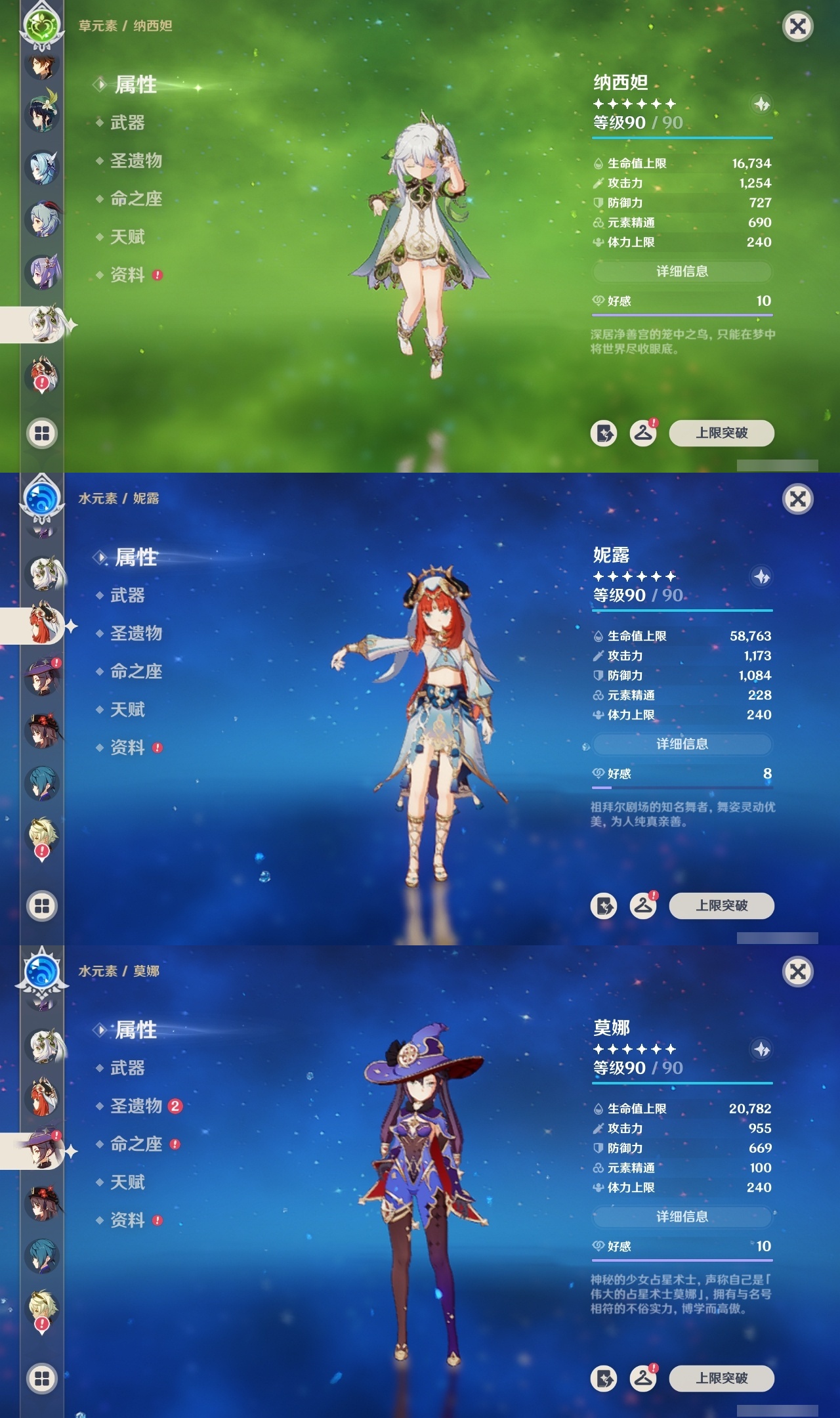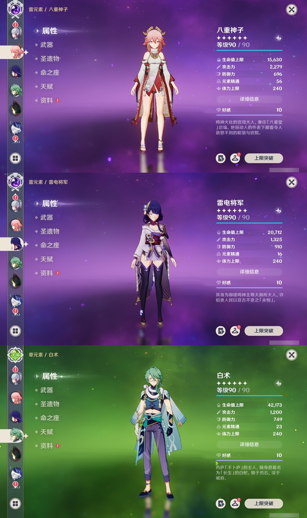 【原神】满命,冒险等级:60,五星数量:58,五星角色:琴 6命夜兰 6命提纳里 6命迪卢克 5命刻晴 4命雷电将军 3命迪希雅 2命那维莱特 2命芙宁娜 2命枫原万叶 2命七七 2命八重神子 2命纳西妲 2命阿蕾奇诺 1命莫娜 1命珊瑚宫心海希诺宁白术神里绫华温迪恰斯卡宵宫优菈钟离申鹤神里绫人妮露菲林斯流浪者甘雨胡桃__五星武器:阿莫斯之弓 5精松籁响起之时 3精和璞鸢 2精天空之傲 2精最初的大魔术万世流涌大典静水流涌之辉支离轮光血染荒城真语秘匣不灭月华苍古自由之誓飞雷之弦振风鹰剑护摩之杖狼的末路天空之刃天空之翼无工之剑雾切之回光薙草之稻光终末嗟叹之诗神乐之真意若水赤沙之杖千夜浮梦__四星角色:班尼特 6命行秋 6命九条裟罗 6命香菱 6命鹿野院平藏 6命珐露珊 6命凝光 6命迪奥娜 6命砂糖 6命瑶瑶 6命莱依拉 6命多莉 6命柯莱 6命芭芭拉 6命云堇 6命早柚 6命托马 6命重云 6命辛焱 6命诺艾尔 6命罗莎莉亚 6命雷泽 6命菲谢尔 6命北斗 6命琳妮特 6命赛索斯 6命坎蒂丝 5命五郎 5命嘉明 5命久岐忍 4命绮良良 4命烟绯 4命米卡 3命夏洛蒂 2命爱诺 2命卡齐娜 1命卡维 1命欧洛伦 1命菲米尼 1命夏沃蕾 1命伊法 1命埃洛伊