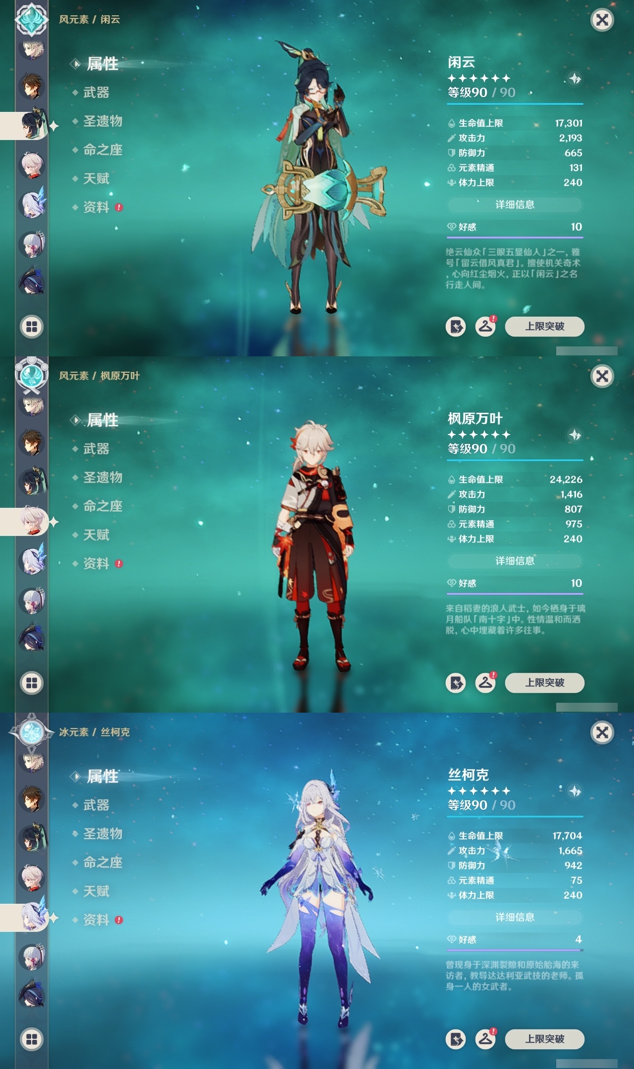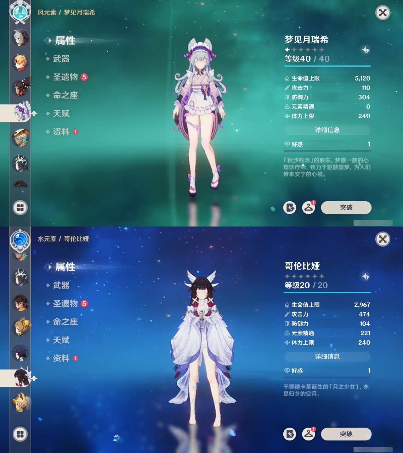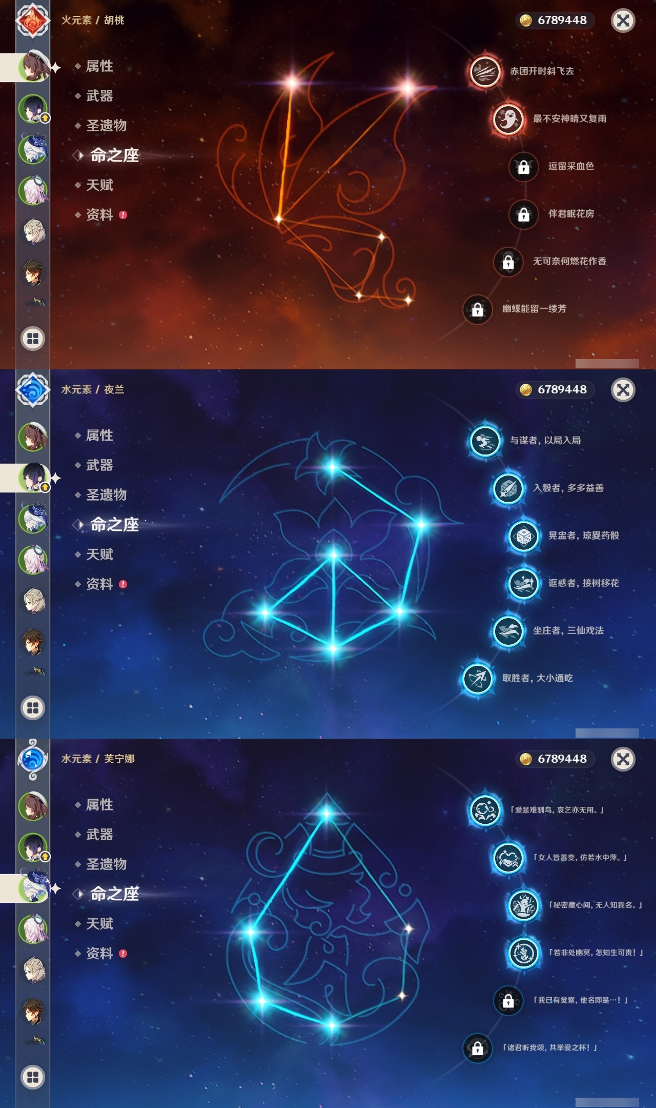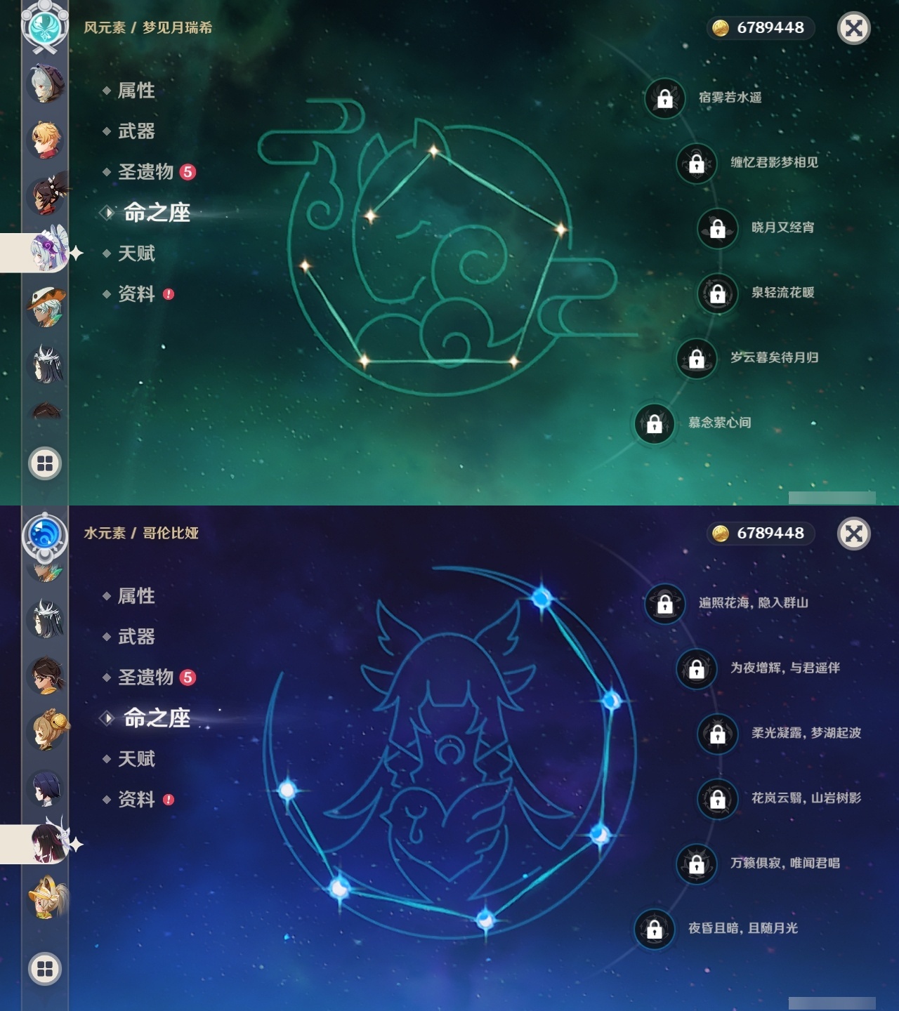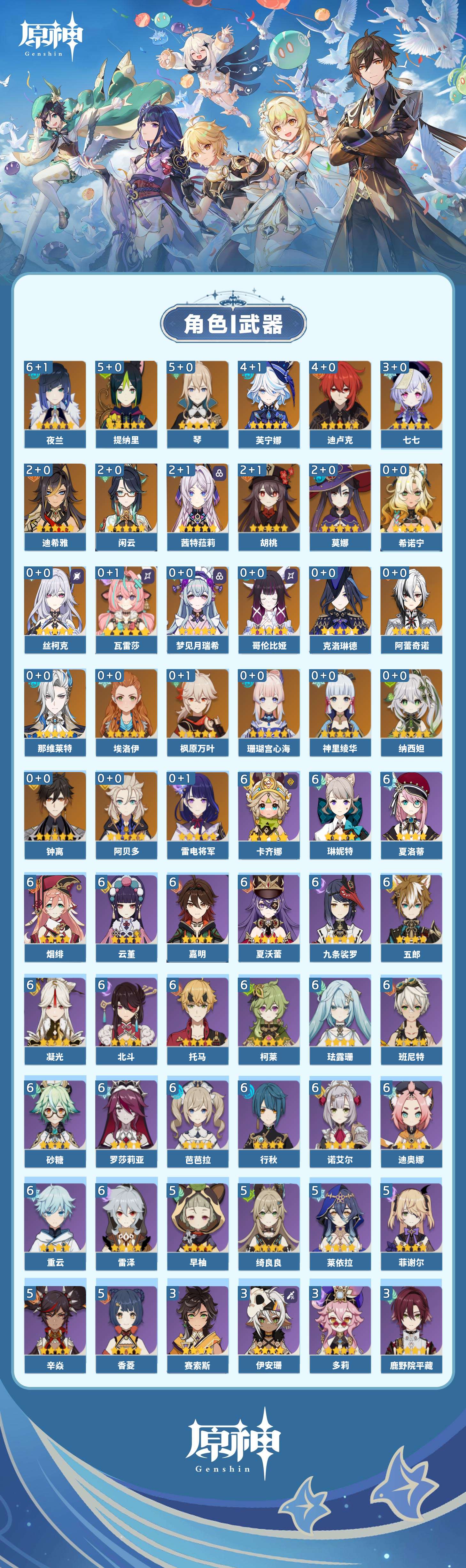 【原神】【lyys11335】冒险等级:60,五星数量:42,五星角色:夜兰 6命琴 5命提纳里 5命芙宁娜 4命迪卢克 4命七七 3命茜特菈莉 2命迪希雅 2命闲云 2命胡桃 2命莫娜 2命珊瑚宫心海希诺宁神里绫华钟离梦见月瑞希瓦雷莎阿贝多那维莱特阿蕾奇诺丝柯克纳西妲哥伦比娅枫原万叶克洛琳德雷电将军__五星武器:阿莫斯之弓 2精天空之脊 2精祭星者之望溢彩心念静水流涌之辉苍古自由之誓飞雷之弦振护摩之杖天空之傲天空之卷天空之刃薙草之稻光终末嗟叹之诗若水__四星角色:卡齐娜 6命班尼特 6命行秋 6命九条裟罗 6命珐露珊 6命凝光 6命迪奥娜 6命砂糖 6命柯莱 6命芭芭拉 6命云堇 6命托马 6命五郎 6命烟绯 6命重云 6命诺艾尔 6命罗莎莉亚 6命雷泽 6命北斗 6命琳妮特 6命夏洛蒂 6命夏沃蕾 6命嘉明 6命香菱 5命绮良良 5命莱依拉 5命早柚 5命辛焱 5命菲谢尔 5命鹿野院平藏 3命多莉 3命伊安珊 3命赛索斯 3命久岐忍 2命欧洛伦 2命菲米尼 2命米卡 1命坎蒂丝 1命卡维 1命塔利雅 1命埃洛伊奇偶·女性瑶瑶蓝砚伊法爱诺