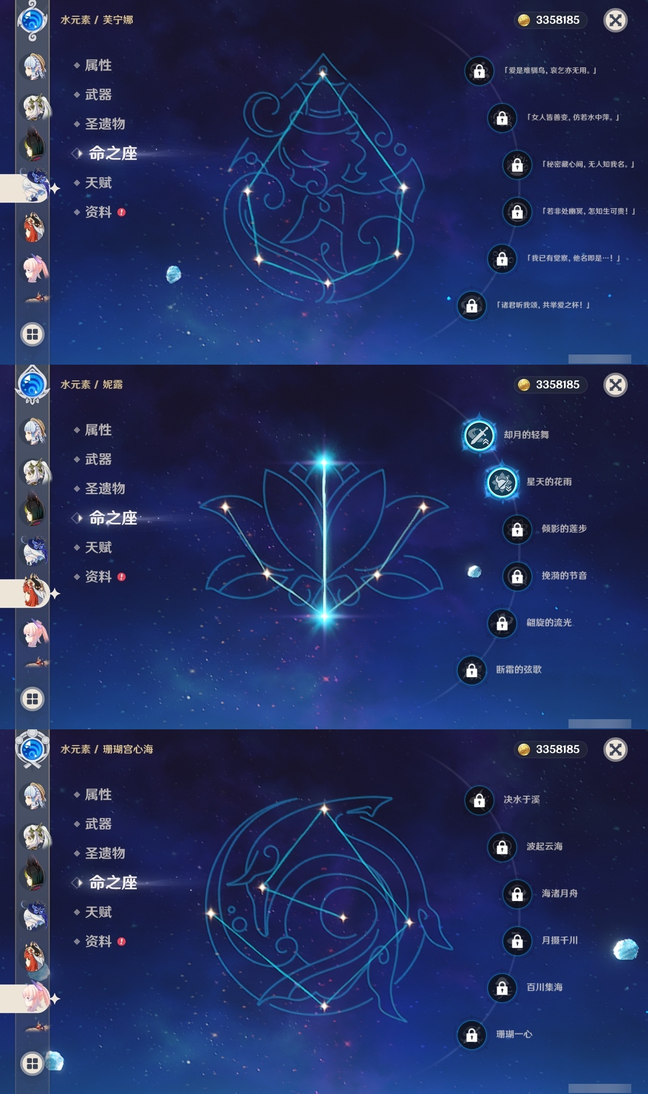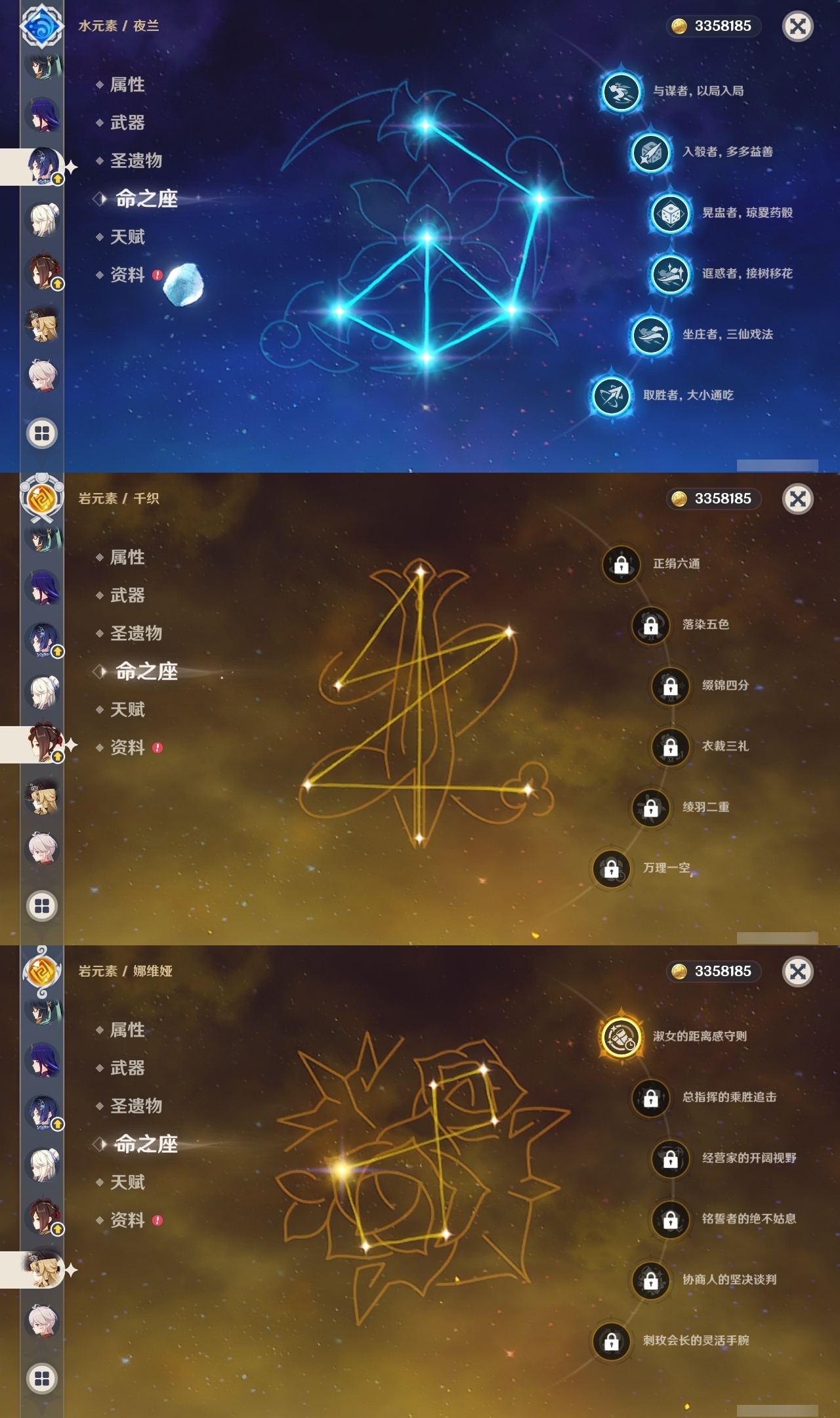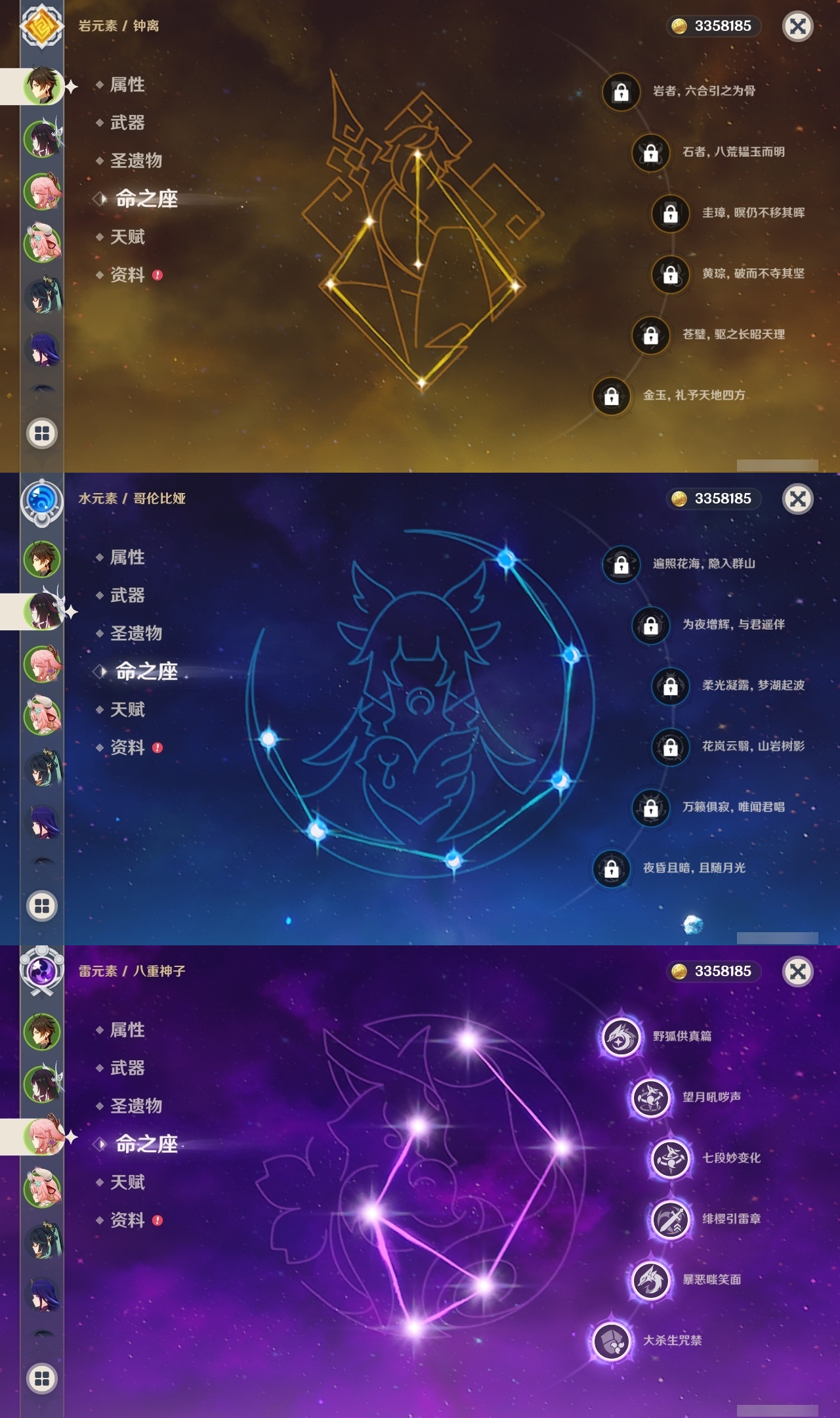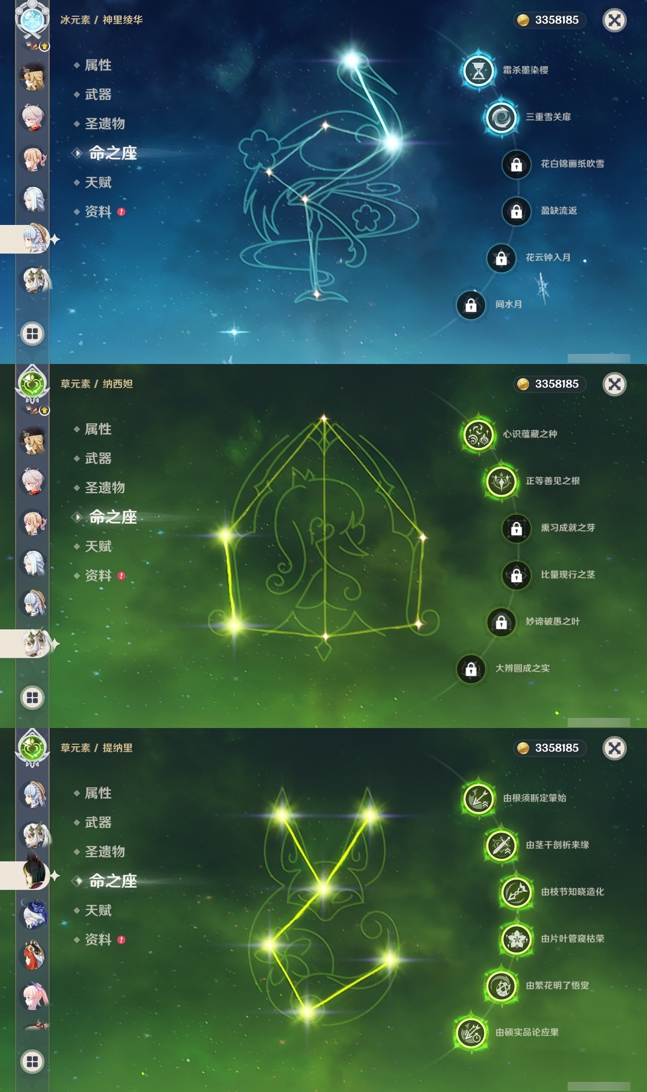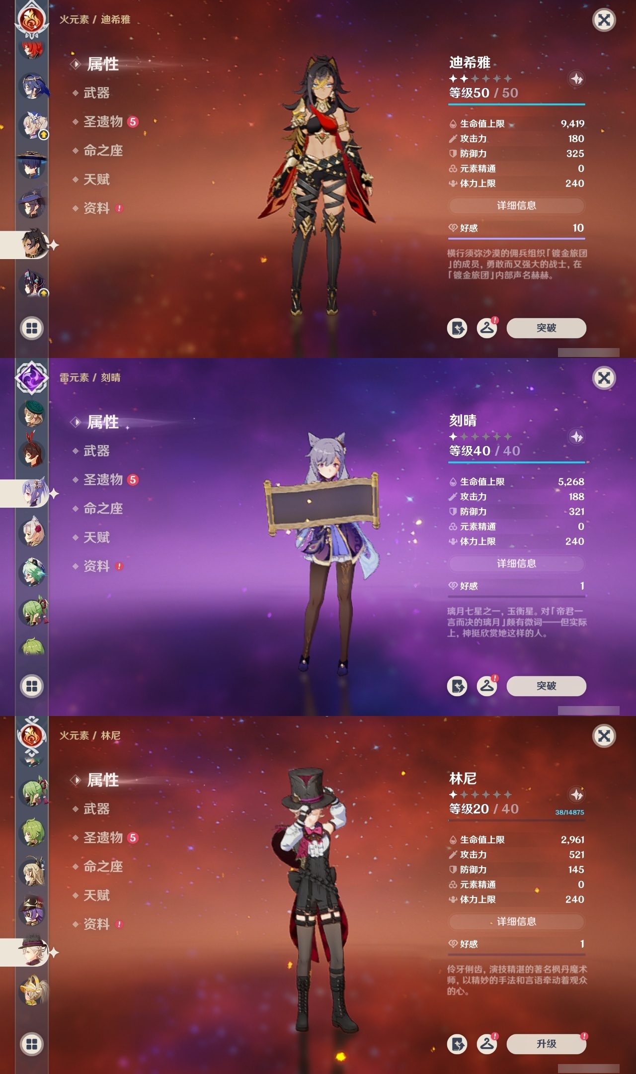 【原神】满命,冒险等级:60,五星数量:50,五星角色:闲云 6命雷电将军 6命琴 6命八重神子 6命夜兰 6命提纳里 6命迪卢克 5命莫娜 4命胡桃 3命七七 3命迪希雅 2命枫原万叶 2命神里绫华 2命宵宫 2命申鹤 2命妮露 2命纳西妲 2命娜维娅 1命珊瑚宫心海钟离瓦雷莎林尼芙宁娜千织流浪者哥伦比娅刻晴__五星武器:护摩之杖 3精若水 3精千夜浮梦 3精阿莫斯之弓 2精磐岩结绿 2精天空之傲 2精薙草之稻光 2精圣显之钥 2精溢彩心念静水流涌之辉裁断鹤鸣余音不灭月华飞雷之弦振风鹰剑天空之脊天空之卷天空之翼雾切之回光冬极白星息灾神乐之真意贯虹之槊__四星角色:班尼特 6命行秋 6命九条裟罗 6命香菱 6命久岐忍 6命鹿野院平藏 6命珐露珊 6命凝光 6命迪奥娜 6命砂糖 6命瑶瑶 6命莱依拉 6命米卡 6命坎蒂丝 6命多莉 6命柯莱 6命芭芭拉 6命云堇 6命早柚 6命托马 6命烟绯 6命重云 6命辛焱 6命诺艾尔 6命罗莎莉亚 6命雷泽 6命菲谢尔 6命北斗 6命琳妮特 6命嘉明 6命夏沃蕾 4命绮良良 3命卡维 3命菲米尼 2命伊法 2命赛索斯 2命卡齐娜 1命五郎 1命伊安珊 1命爱诺