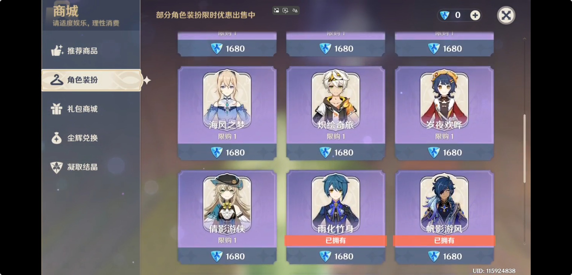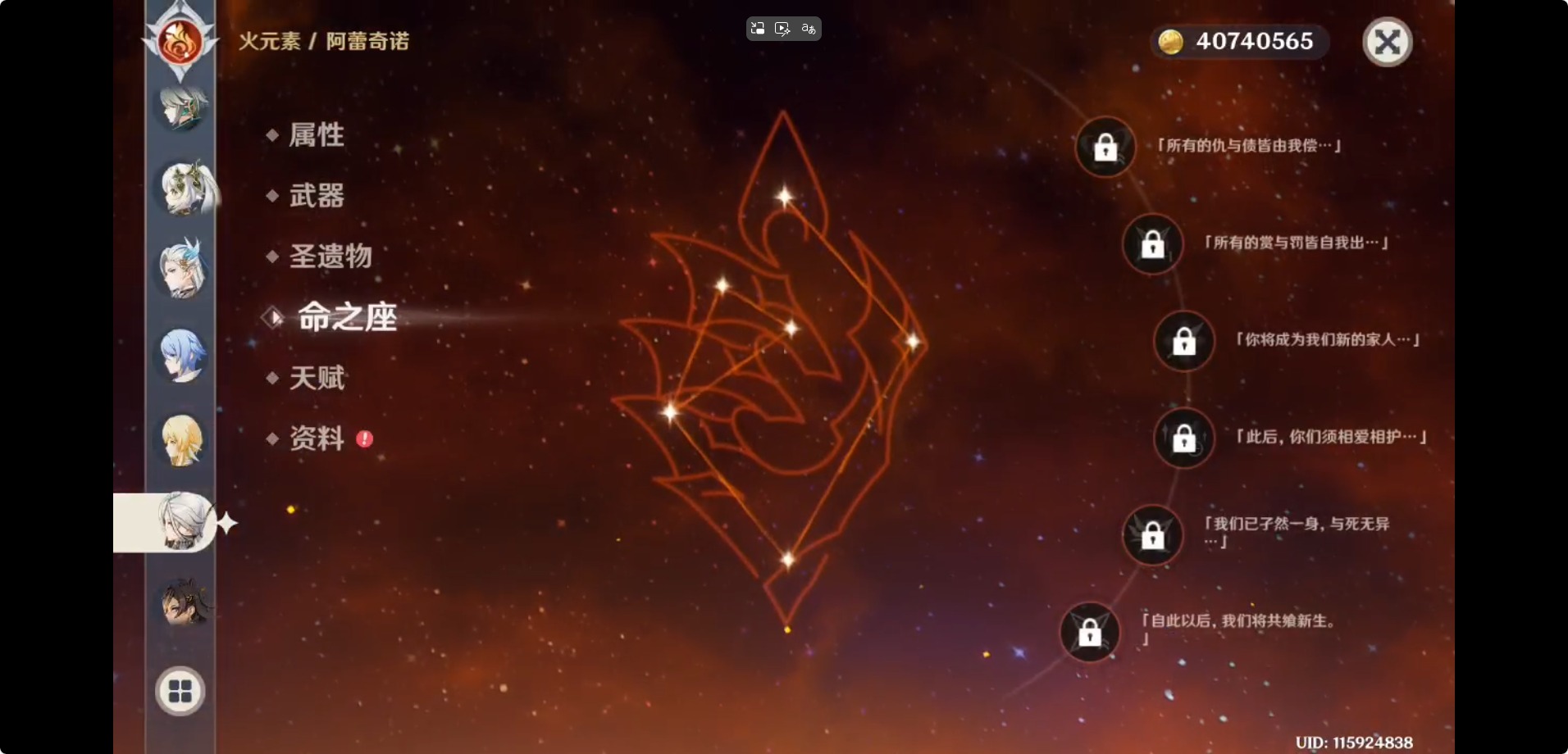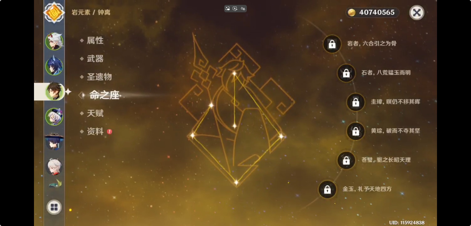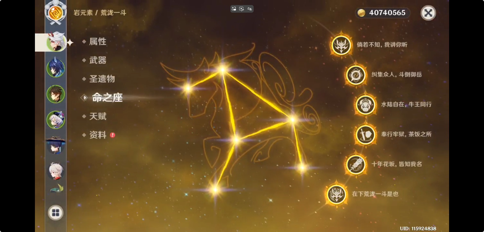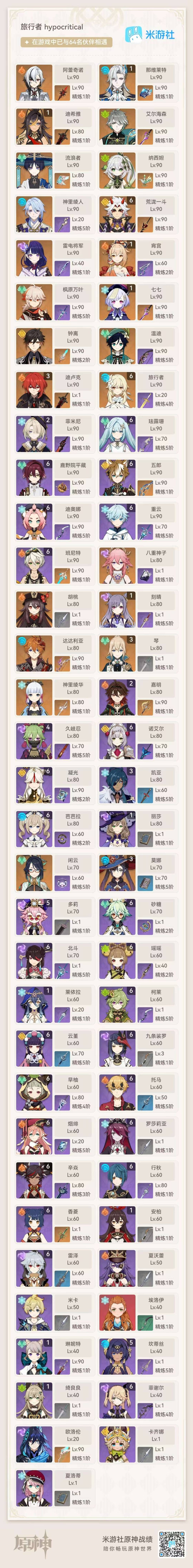 [16317088]【邮箱】不送邮/死邮 【总黄数】65 【冒险等级】60 【6命金色角色】满命荒泷一斗 【3命金色角色】三命迪卢克三命琴三命莫娜 【1命金色角色】一命那维莱特一命宵宫一命迪希雅一命刻晴一命七七 【0命金色角色】阿蕾奇诺闲云艾尔海森流浪者纳西妲神里绫人八重神子雷电将军神里绫华枫原万叶胡桃钟离达达利亚温迪 【2精武器】天空之脊 【1精武器】赤月之形有乐御簾切裁断万世流涌大典千夜浮梦赤角石溃杵飞雷之弦振雾切之回光护摩之杖和璞鸢阿莫斯之弓终末嗟叹之诗狼的末路风鹰剑天空之卷天空之翼天空之刃