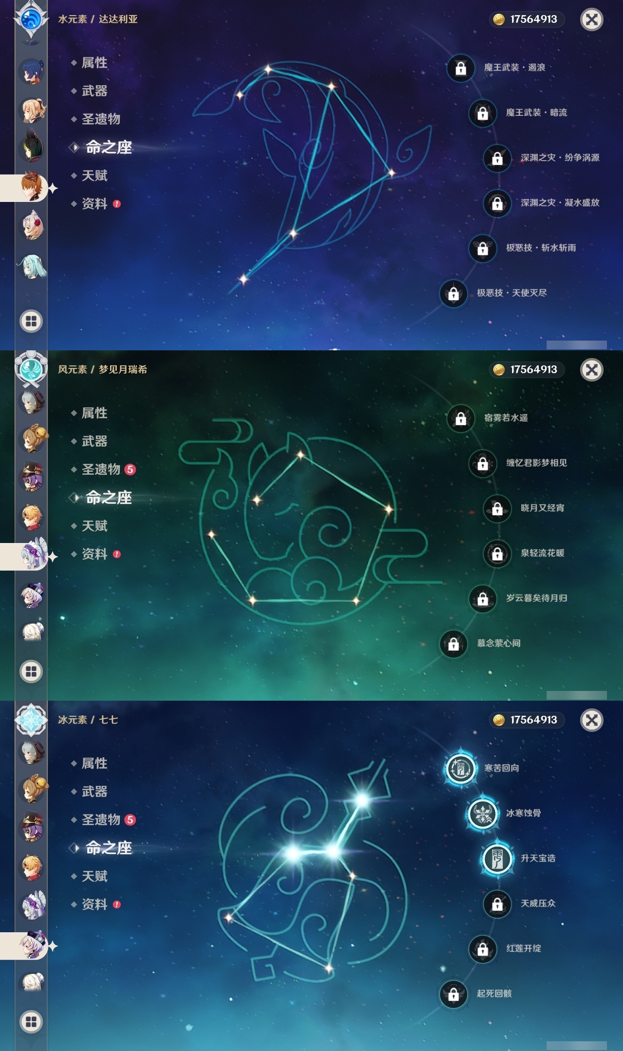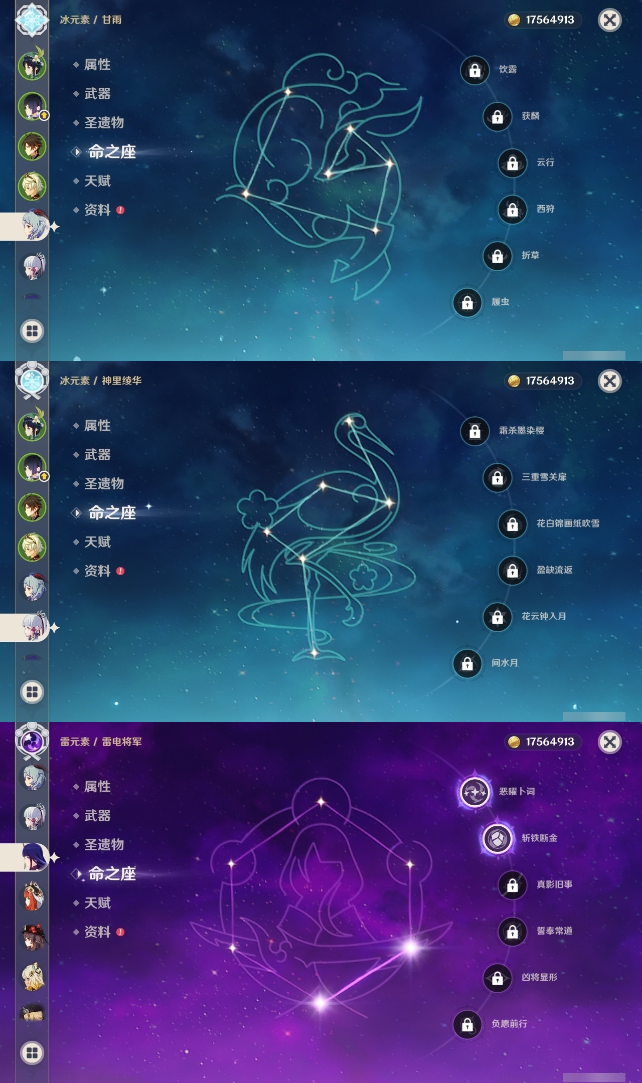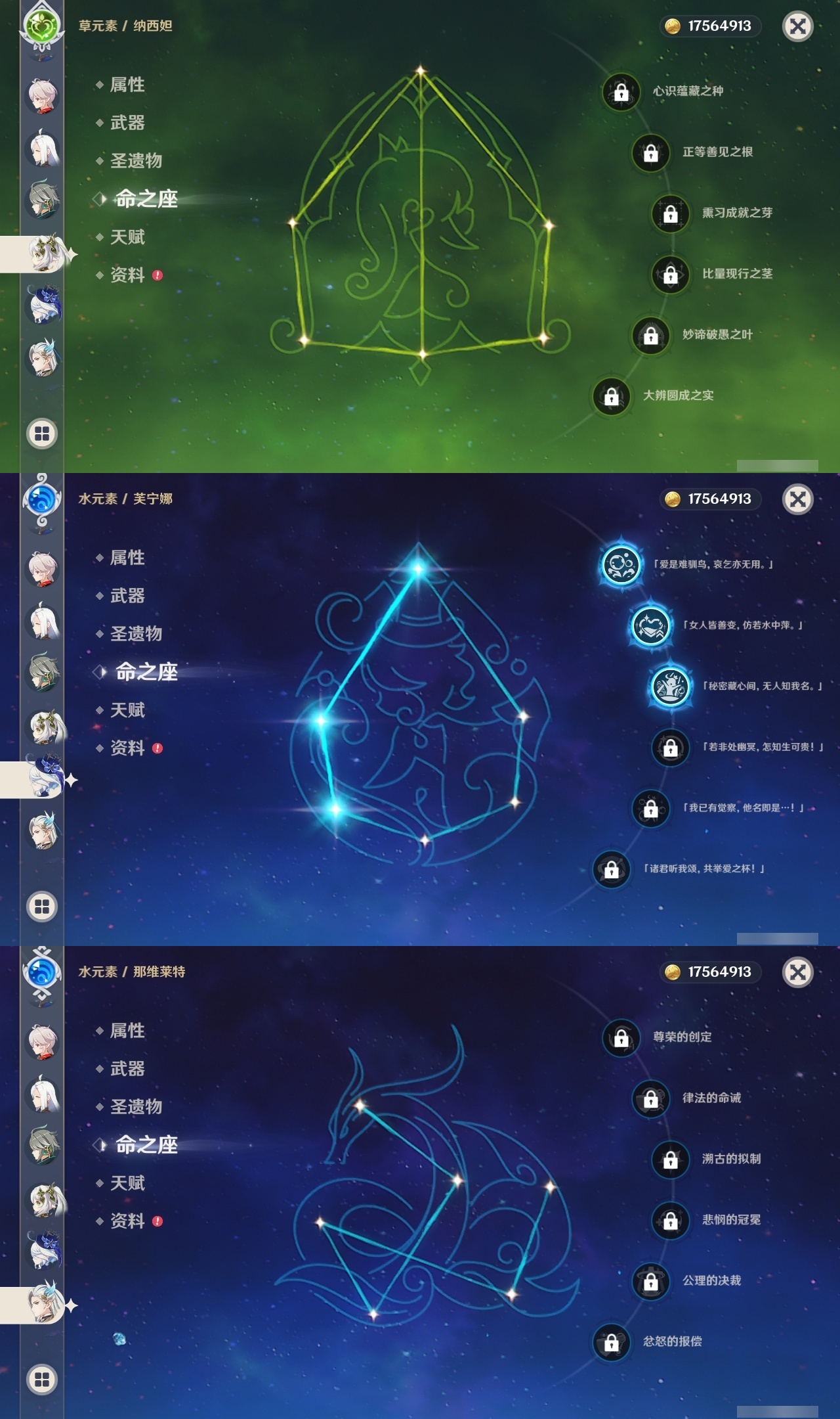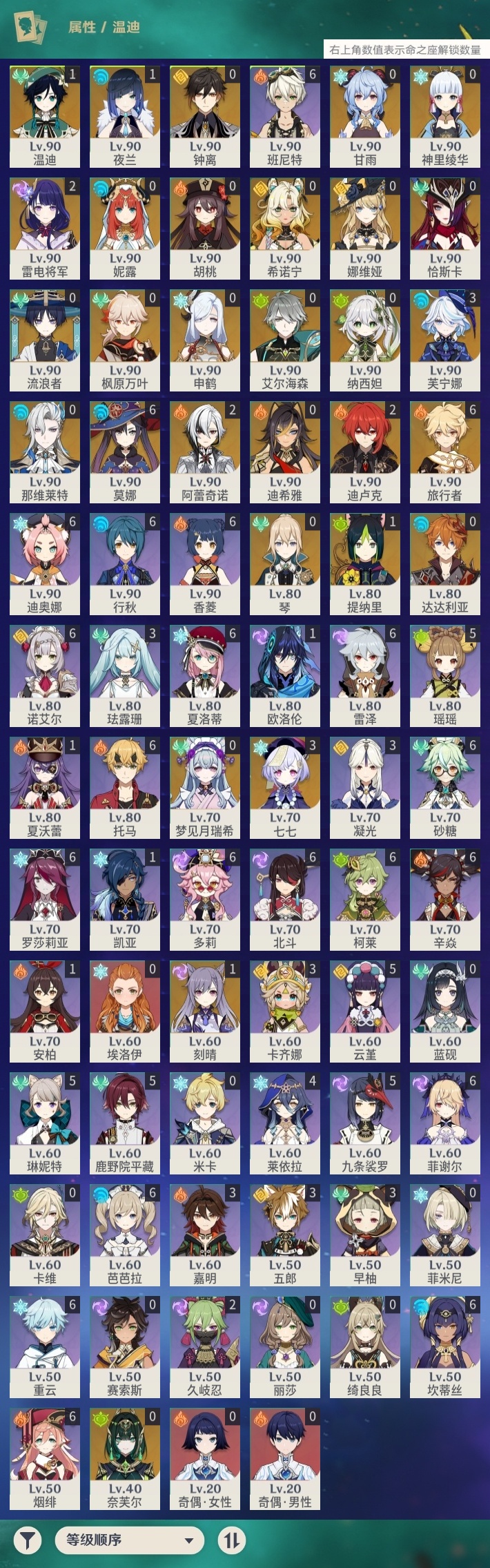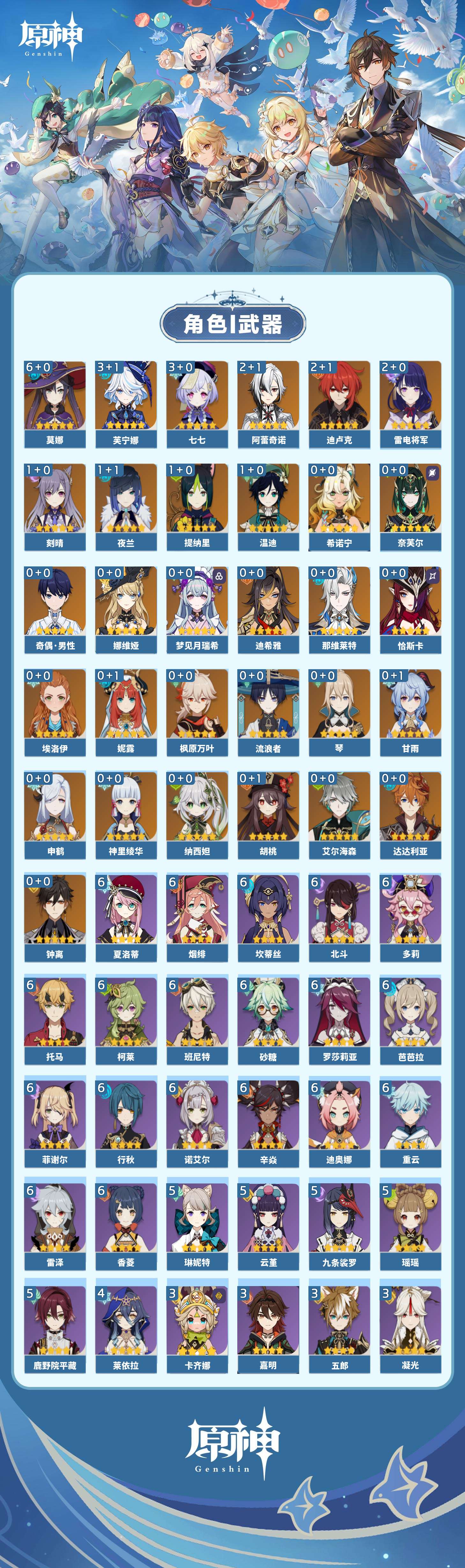【原神】【lyys11354】冒险等级:60,五星数量:48,五星角色:莫娜 6命芙宁娜 3命七七 3命阿蕾奇诺 2命迪卢克 2命雷电将军 2命刻晴 1命温迪 1命夜兰 1命提纳里 1命琴希诺宁神里绫华恰斯卡迪希雅钟离达达利亚梦见月瑞希申鹤那维莱特娜维娅妮露纳西妲艾尔海森奈芙尔流浪者枫原万叶甘雨胡桃__五星武器:和璞鸢 2精最初的大魔术静水流涌之辉赤月之形阿莫斯之弓尘世之锁风鹰剑护摩之杖狼的末路四风原典天空之脊天空之卷天空之刃天空之翼若水圣显之钥__四星角色:班尼特 6命行秋 6命香菱 6命迪奥娜 6命砂糖 6命坎蒂丝 6命多莉 6命柯莱 6命芭芭拉 6命托马 6命烟绯 6命重云 6命辛焱 6命诺艾尔 6命罗莎莉亚 6命雷泽 6命菲谢尔 6命北斗 6命夏洛蒂 6命九条裟罗 5命鹿野院平藏 5命瑶瑶 5命云堇 5命琳妮特 5命莱依拉 4命卡齐娜 3命珐露珊 3命凝光 3命早柚 3命五郎 3命嘉明 3命久岐忍 2命欧洛伦 1命夏沃蕾 1命埃洛伊奇偶·女性奇偶·男性绮良良米卡卡维蓝砚菲米尼赛索斯