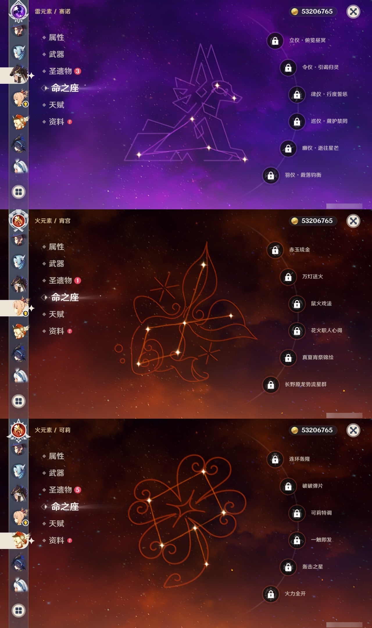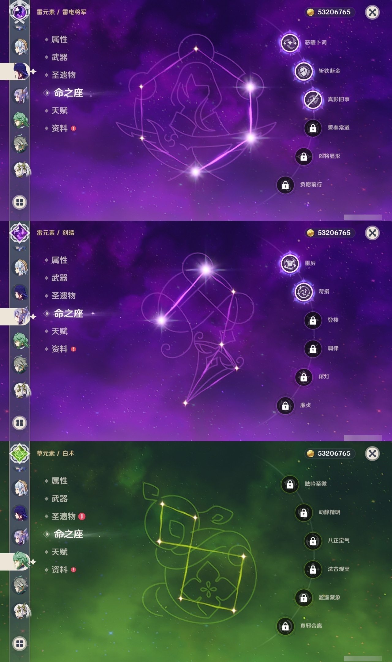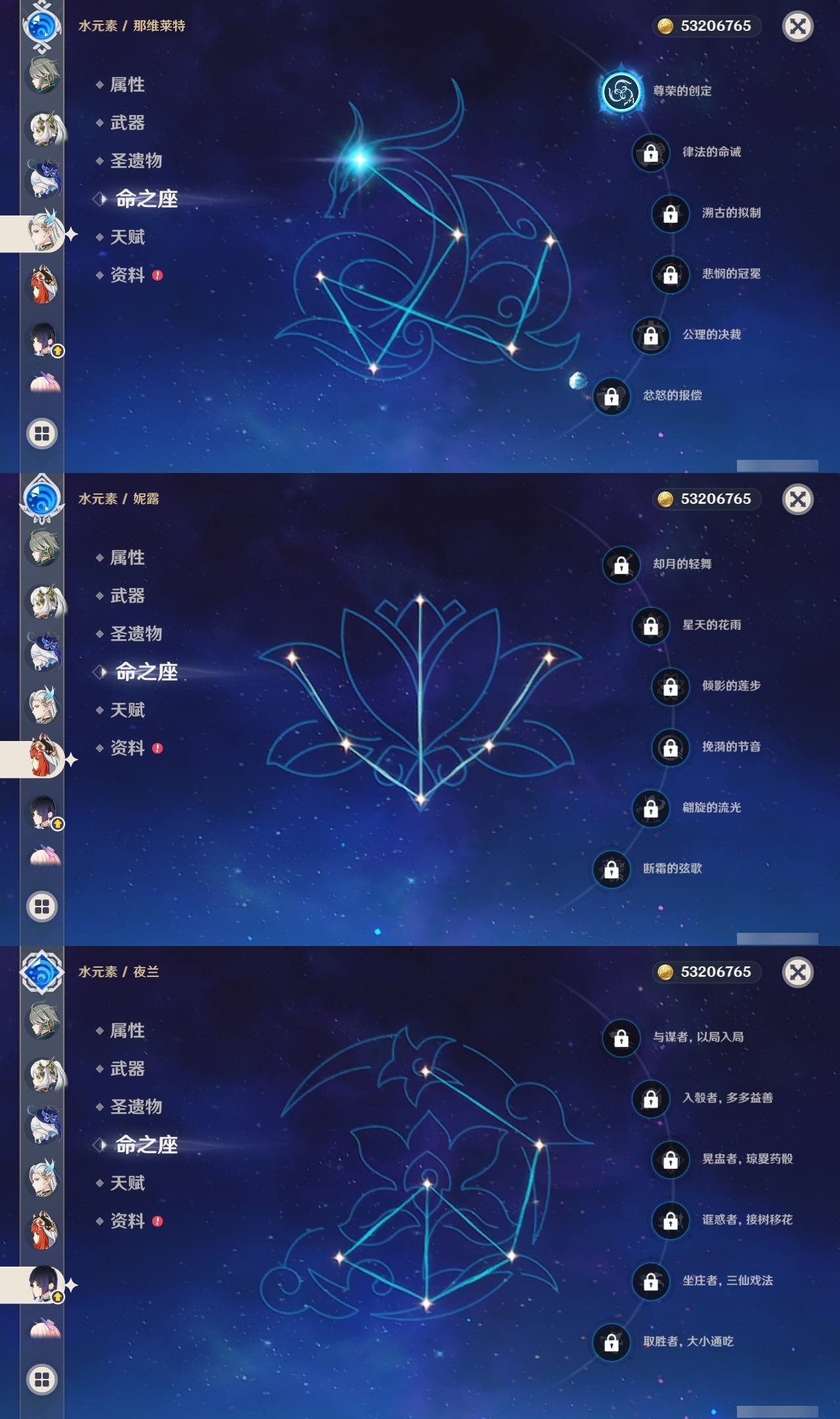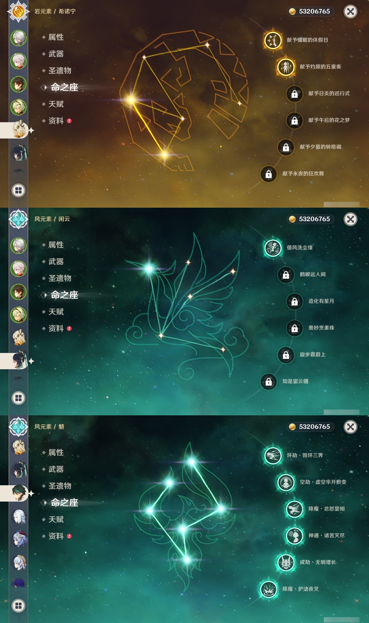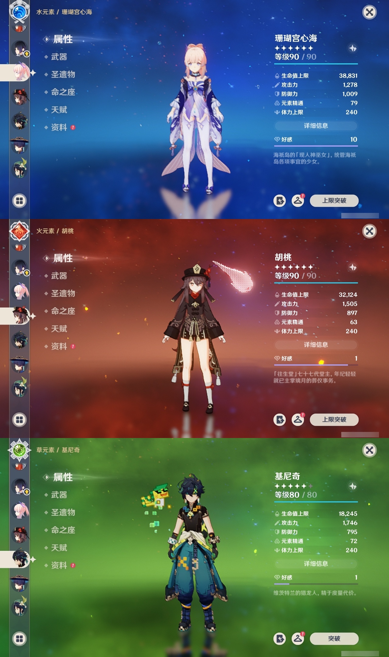 【原神】满命,冒险等级:60,五星数量:71,五星角色:魈 6命莫娜 6命七七 6命迪希雅 4命基尼奇 3命阿蕾奇诺 3命迪卢克 3命雷电将军 3命琴 3命钟离 3命希诺宁 2命芙宁娜 2命枫原万叶 2命刻晴 2命神里绫华 2命提纳里 2命纳西妲 2命那维莱特 1命闲云 1命胡桃 1命流浪者 1命玛拉妮珊瑚宫心海白术温迪宵宫优菈梦见月瑞希申鹤林尼夜兰千织赛诺爱可菲丝柯克妮露艾尔海森甘雨克洛琳德可莉__五星武器:和璞鸢 4精风鹰剑 3精天空之卷 3精飞雷之弦振 2精天空之傲 2精千夜浮梦 2精山王长牙岩峰巡歌碧落之珑最初的大魔术万世流涌大典静水流涌之辉裁断鹤鸣余音有乐御簾切赤月之形裁叶萃光图莱杜拉的回忆不灭月华苍古自由之誓护摩之杖天空之刃天空之翼雾切之回光薙草之稻光赤角石溃杵息灾若水赤沙之杖圣显之钥__四星角色:班尼特 6命行秋 6命九条裟罗 6命香菱 6命久岐忍 6命鹿野院平藏 6命珐露珊 6命凝光 6命迪奥娜 6命砂糖 6命瑶瑶 6命坎蒂丝 6命多莉 6命柯莱 6命芭芭拉 6命云堇 6命早柚 6命托马 6命五郎 6命烟绯 6命重云 6命辛焱 6命诺艾尔 6命罗莎莉亚 6命雷泽 6命菲谢尔 6命北斗 6命菲米尼 6命琳妮特 6命夏洛蒂 6命夏沃蕾 6命嘉明 6命莱依拉 4命卡齐娜 3命绮良良 3命赛索斯 3命米卡 2命卡维 2命欧洛伦 2命塔利雅 2命埃洛伊蓝砚伊法爱诺