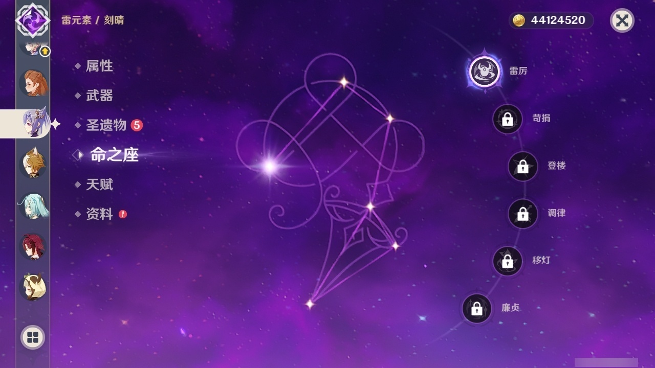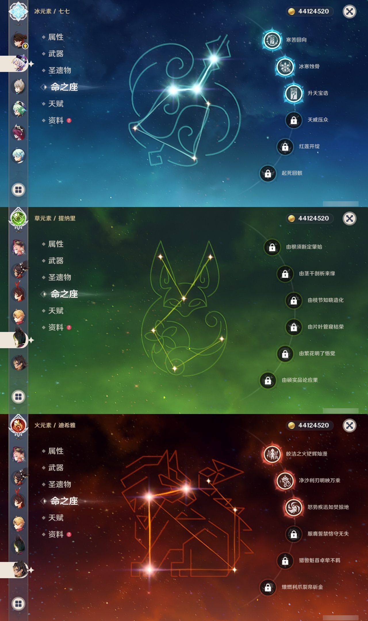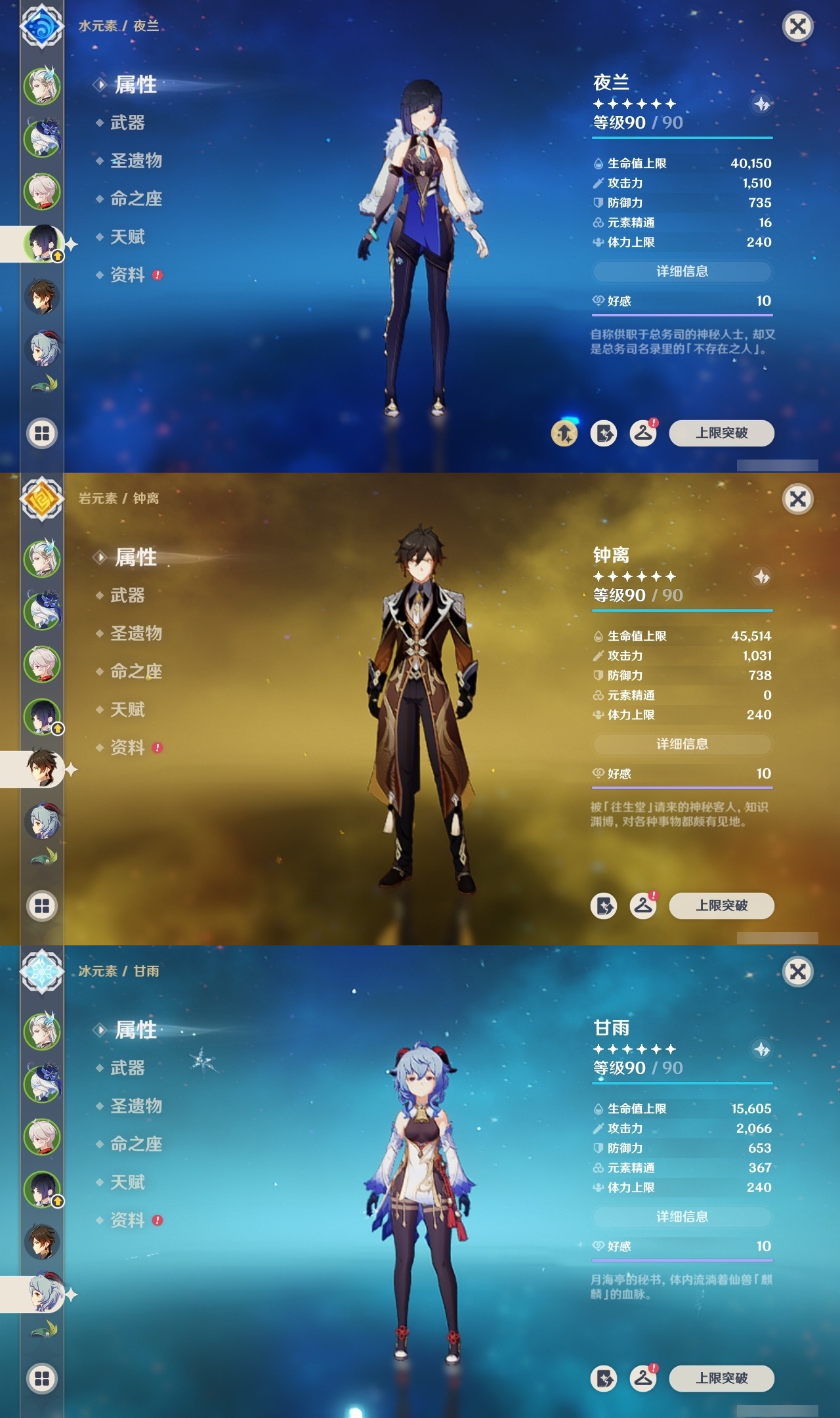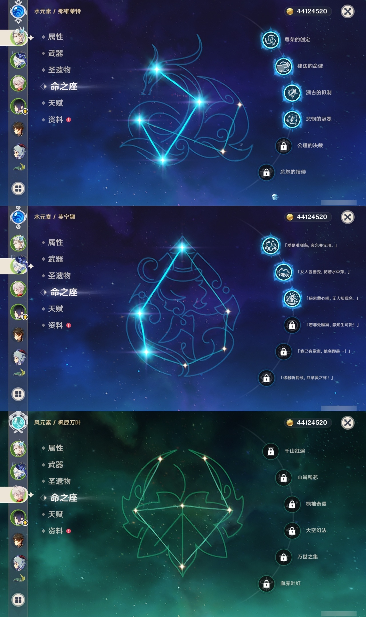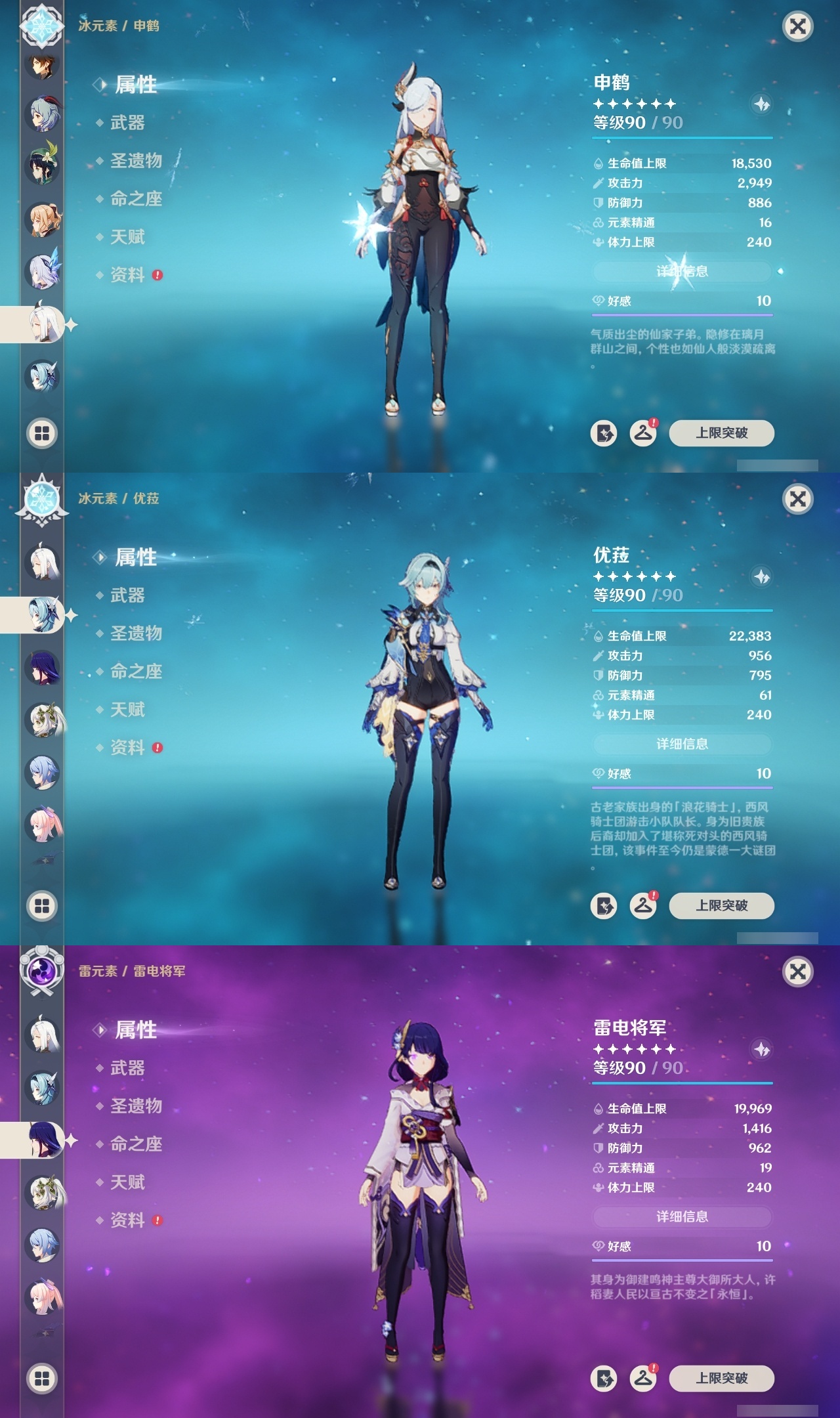 【原神】【lyys11358】冒险等级:60,五星数量:38,五星角色:夜兰 6命那维莱特 4命迪卢克 4命莫娜 4命迪希雅 3命芙宁娜 3命七七 3命琴 3命刻晴 1命珊瑚宫心海温迪玛薇卡宵宫优菈钟离申鹤神里绫人提纳里丝柯克纳西妲枫原万叶甘雨胡桃可莉雷电将军__五星武器:阿莫斯之弓 2精万世流涌大典苍古自由之誓飞雷之弦振护摩之杖狼的末路四风原典天空之傲天空之卷波乱月白经津若水__四星角色:班尼特 6命行秋 6命香菱 6命鹿野院平藏 6命凝光 6命迪奥娜 6命砂糖 6命瑶瑶 6命柯莱 6命芭芭拉 6命云堇 6命早柚 6命托马 6命烟绯 6命辛焱 6命诺艾尔 6命罗莎莉亚 6命雷泽 6命菲谢尔 6命北斗 6命琳妮特 6命夏洛蒂 6命九条裟罗 4命多莉 4命重云 4命珐露珊 2命卡齐娜 1命莱依拉 1命坎蒂丝 1命蓝砚 1命夏沃蕾 1命嘉明 1命埃洛伊奇偶·女性久岐忍绮良良米卡卡维五郎菲米尼塔利雅赛索斯