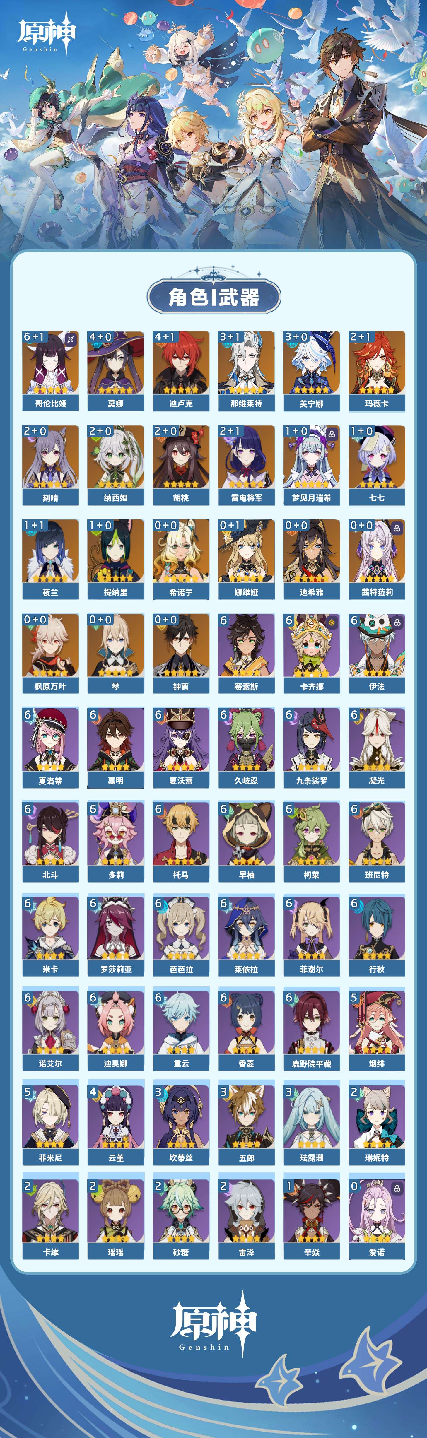 【原神】【lyys11360】冒险等级:60,五星数量:35,五星角色:哥伦比娅 6命迪卢克 4命莫娜 4命那维莱特 3命芙宁娜 3命玛薇卡 2命胡桃 2命刻晴 2命雷电将军 2命纳西妲 2命梦见月瑞希 1命七七 1命夜兰 1命提纳里 1命琴希诺宁茜特菈莉迪希雅钟离娜维娅枫原万叶__五星武器:焚曜千阳万世流涌大典裁断支离轮光阿莫斯之弓帷间夜曲和璞鸢狼的末路天空之傲天空之卷天空之翼薙草之稻光若水__四星角色:卡齐娜 6命班尼特 6命行秋 6命九条裟罗 6命香菱 6命久岐忍 6命鹿野院平藏 6命凝光 6命迪奥娜 6命莱依拉 6命米卡 6命多莉 6命柯莱 6命芭芭拉 6命早柚 6命托马 6命重云 6命诺艾尔 6命罗莎莉亚 6命菲谢尔 6命北斗 6命夏洛蒂 6命夏沃蕾 6命嘉明 6命伊法 6命赛索斯 6命烟绯 5命菲米尼 5命云堇 4命珐露珊 3命坎蒂丝 3命五郎 3命砂糖 2命瑶瑶 2命卡维 2命雷泽 2命琳妮特 2命辛焱 1命奇偶·女性绮良良欧洛伦爱诺