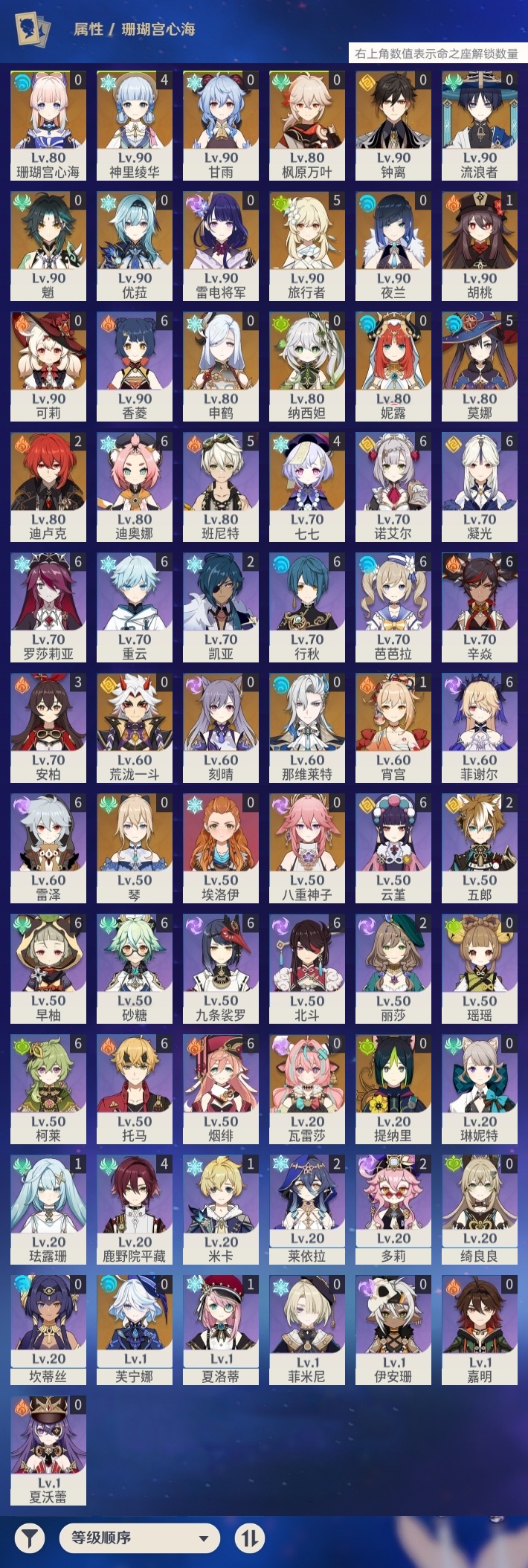 【原神】【lyys10300】冒险等级:60,五星数量:43,五星角色:莫娜 5命七七 4命神里绫华 4命迪卢克 2命胡桃 1命宵宫 1命琴珊瑚宫心海优菈钟离荒泷一斗申鹤瓦雷莎八重神子那维莱特夜兰芙宁娜提纳里妮露纳西妲流浪者枫原万叶甘雨魈可莉刻晴雷电将军__五星武器:岩峰巡歌苇海信标溢彩心念阿莫斯之弓风鹰剑和璞鸢护摩之杖狼的末路四风原典天空之脊天空之卷雾切之回光薙草之稻光终末嗟叹之诗息灾__四星角色:行秋 6命九条裟罗 6命香菱 6命凝光 6命迪奥娜 6命砂糖 6命柯莱 6命芭芭拉 6命云堇 6命早柚 6命托马 6命烟绯 6命重云 6命辛焱 6命诺艾尔 6命罗莎莉亚 6命雷泽 6命菲谢尔 6命北斗 6命班尼特 5命鹿野院平藏 4命莱依拉 2命多莉 2命五郎 2命珐露珊 1命米卡 1命夏洛蒂 1命埃洛伊绮良良瑶瑶坎蒂丝菲米尼琳妮特夏沃蕾嘉明伊安珊