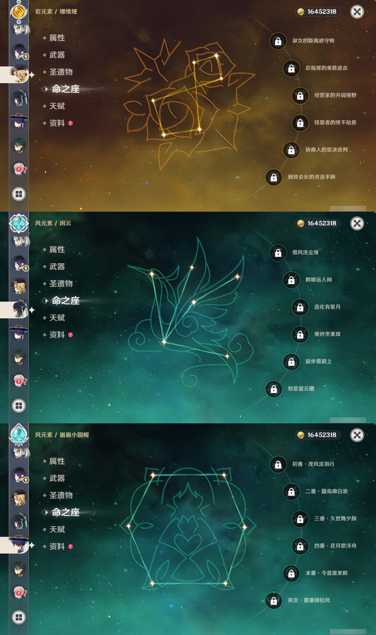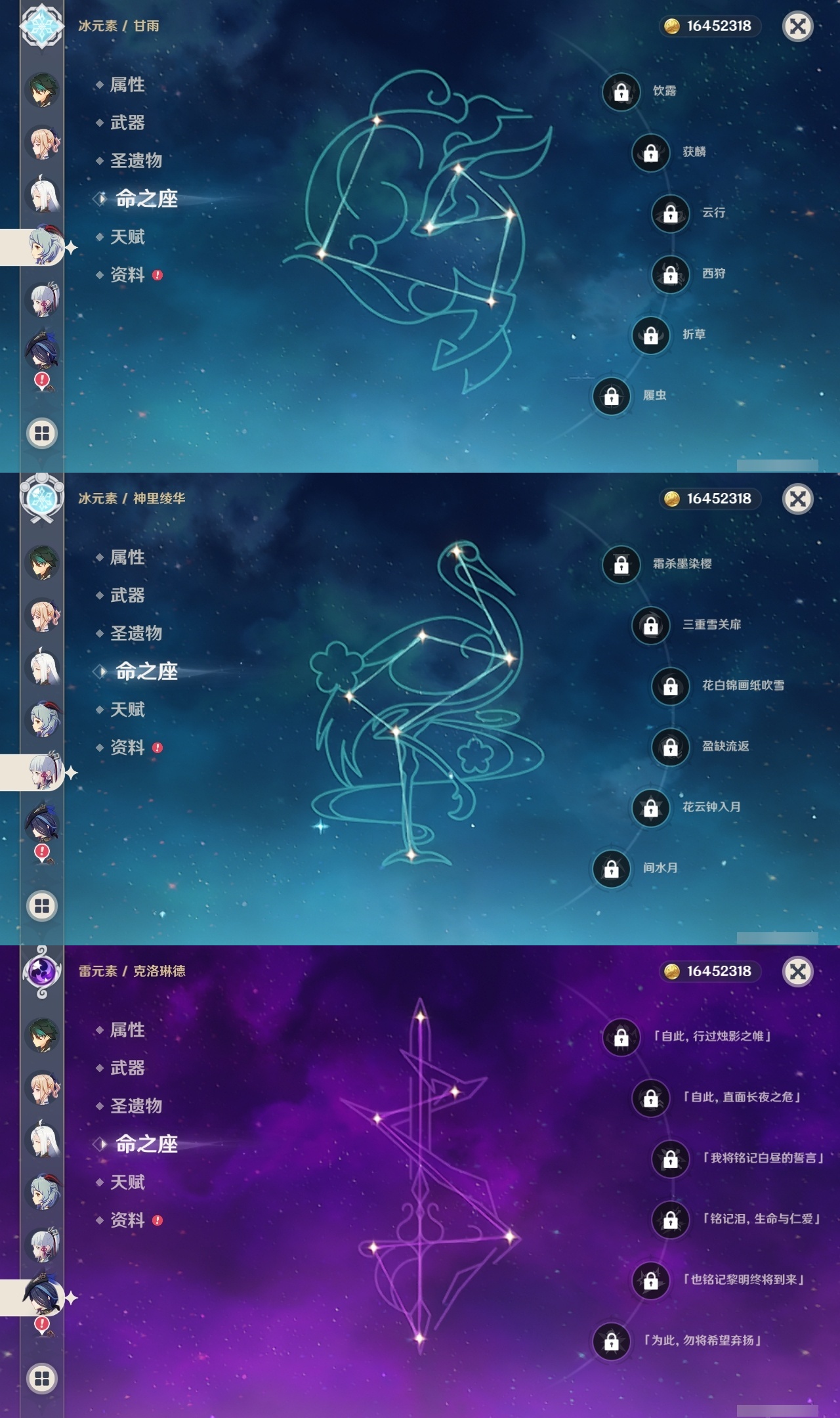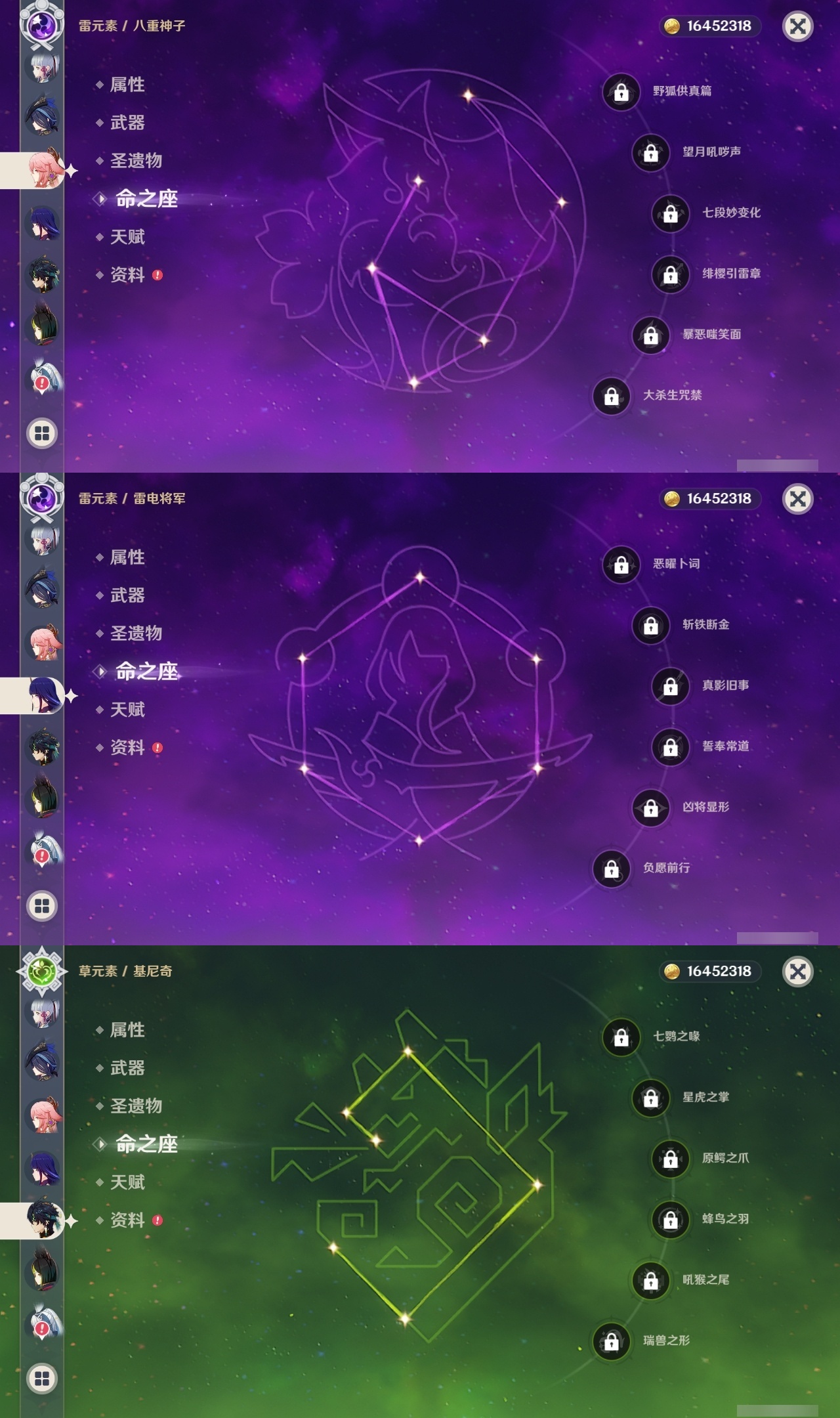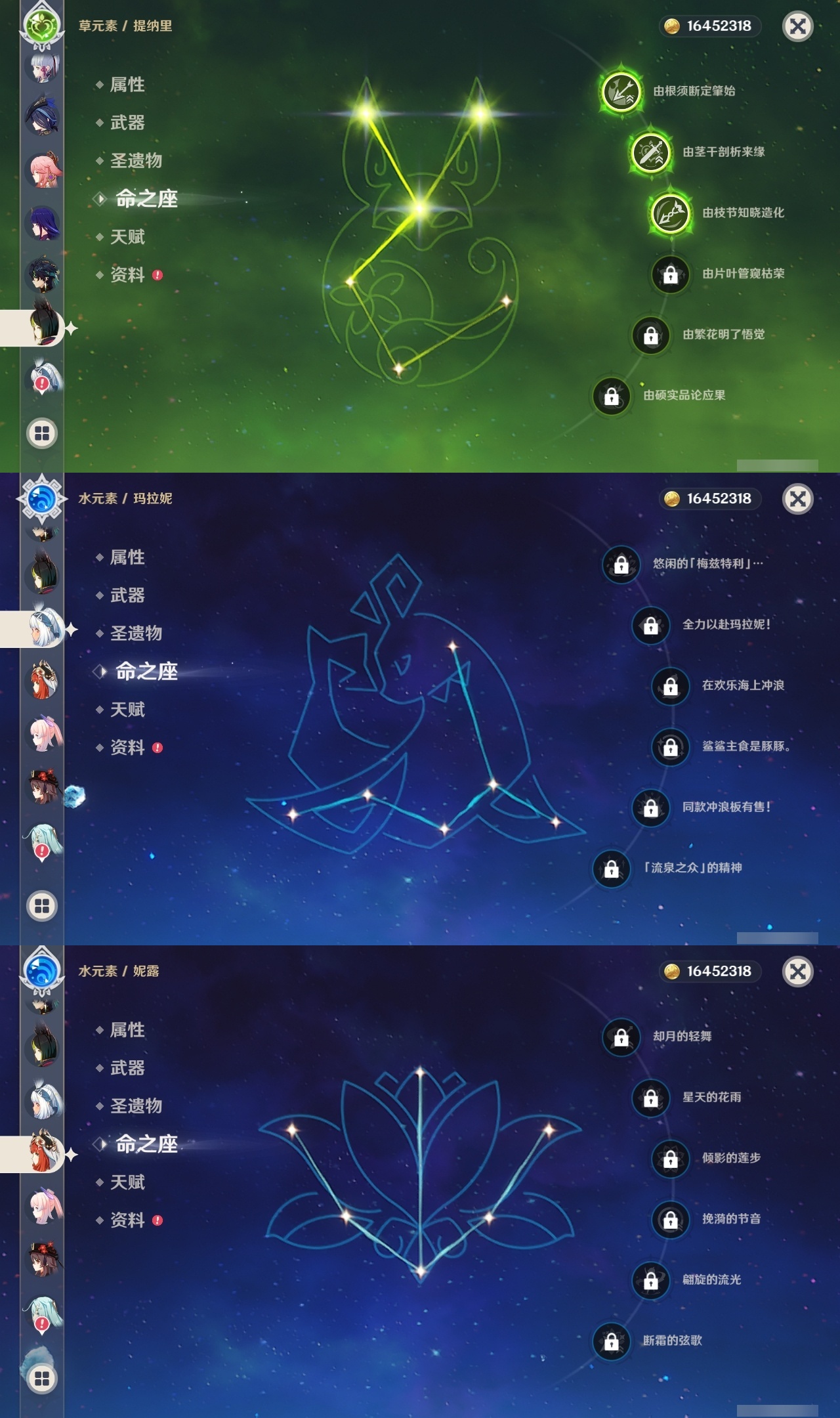 【原神】【lyys11368】冒险等级:60,五星数量:43,五星角色:莫娜 4命迪卢克 3命琴 3命提纳里 3命纳西妲 3命刻晴 2命那维莱特 1命夜兰 1命七七玛拉妮基尼奇珊瑚宫心海神里绫华恰斯卡钟离申鹤八重神子芙宁娜娜维娅闲云妮露流浪者枫原万叶甘雨魈胡桃克洛琳德雷电将军__五星武器:和璞鸢 3精最初的大魔术万世流涌大典裁断苍古自由之誓风鹰剑护摩之杖狼的末路四风原典天空之傲天空之翼无工之剑雾切之回光薙草之稻光若水__四星角色:行秋 6命香菱 6命久岐忍 6命凝光 6命迪奥娜 6命砂糖 6命莱依拉 6命多莉 6命柯莱 6命芭芭拉 6命云堇 6命早柚 6命托马 6命五郎 6命烟绯 6命重云 6命辛焱 6命诺艾尔 6命罗莎莉亚 6命雷泽 6命北斗 6命嘉明 6命班尼特 5命九条裟罗 5命珐露珊 5命鹿野院平藏 4命坎蒂丝 4命菲谢尔 4命夏沃蕾 4命琳妮特 3命瑶瑶 2命米卡 2命卡维 2命卡齐娜 1命欧洛伦 1命赛索斯 1命绮良良菲米尼