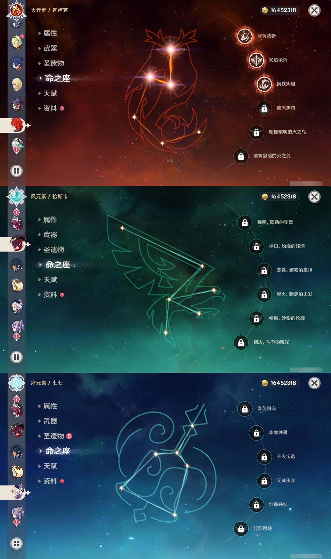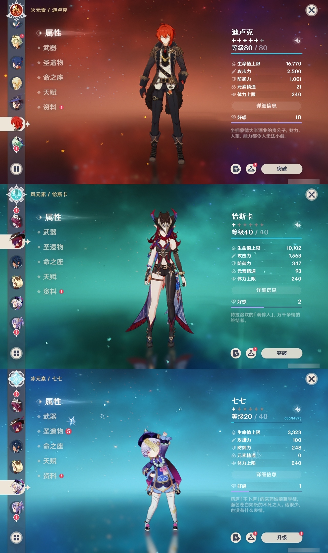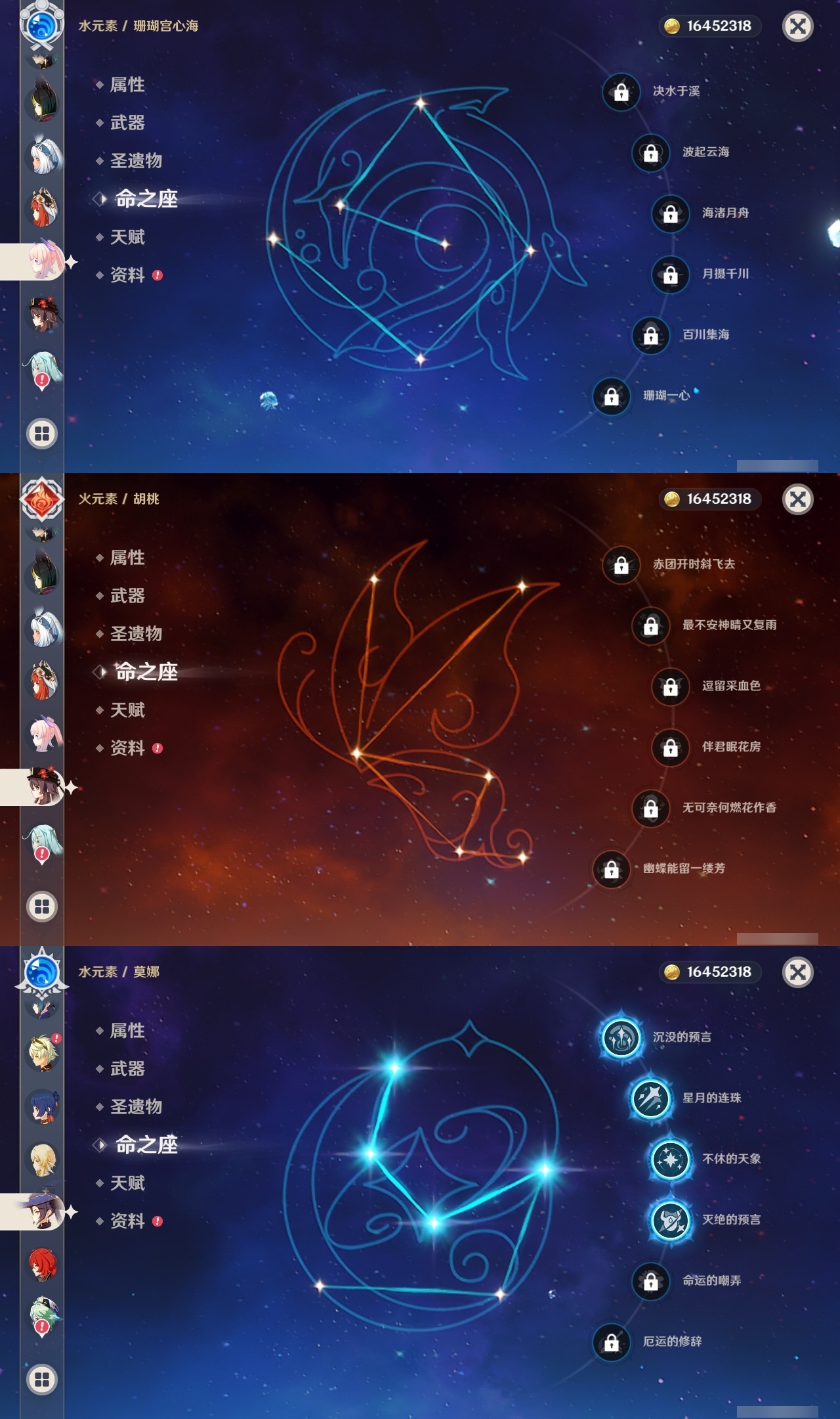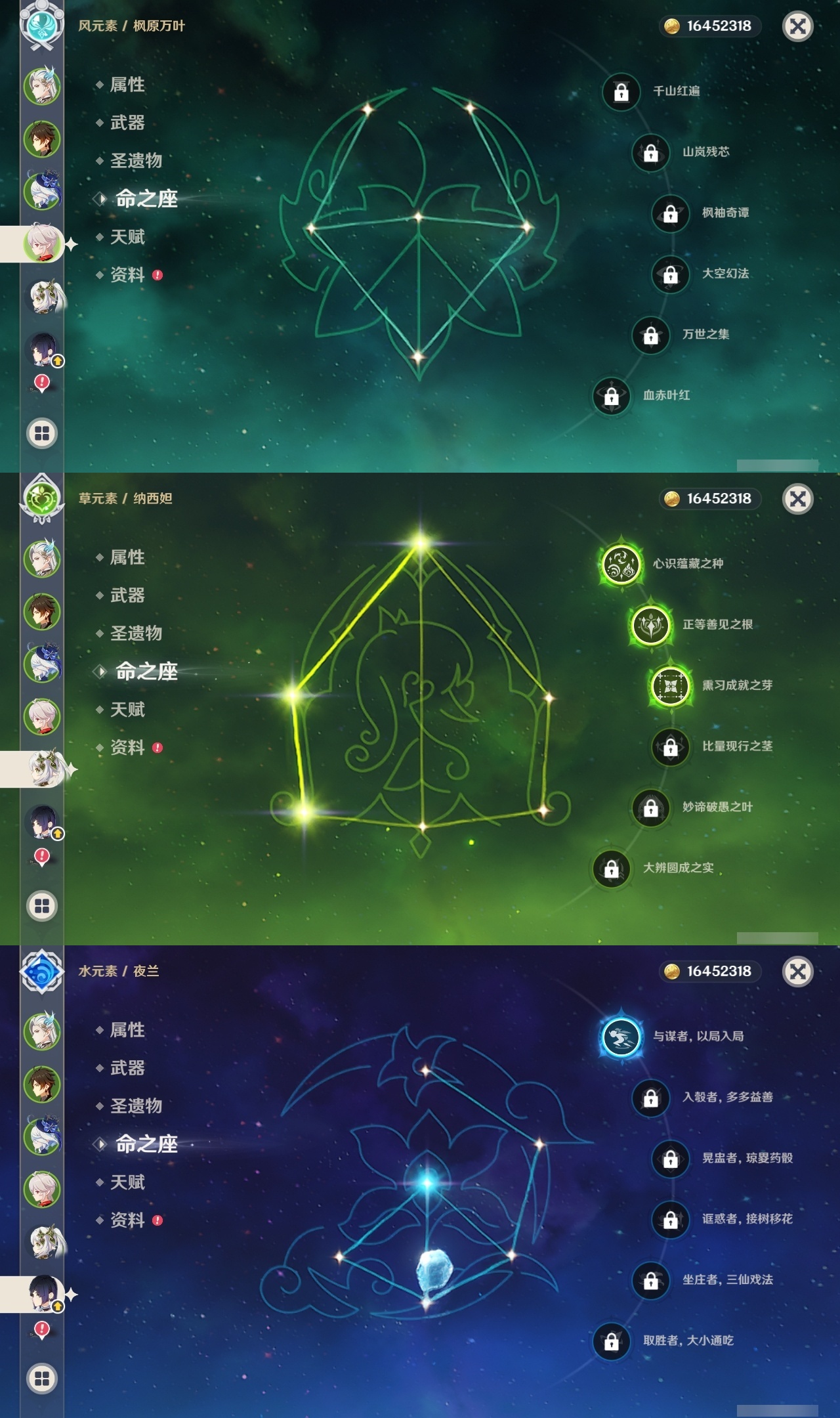【原神】【lyys11368】冒险等级:60,五星数量:43,五星角色:莫娜 4命迪卢克 3命琴 3命提纳里 3命纳西妲 3命刻晴 2命那维莱特 1命夜兰 1命七七玛拉妮基尼奇珊瑚宫心海神里绫华恰斯卡钟离申鹤八重神子芙宁娜娜维娅闲云妮露流浪者枫原万叶甘雨魈胡桃克洛琳德雷电将军__五星武器:和璞鸢 3精最初的大魔术万世流涌大典裁断苍古自由之誓风鹰剑护摩之杖狼的末路四风原典天空之傲天空之翼无工之剑雾切之回光薙草之稻光若水__四星角色:行秋 6命香菱 6命久岐忍 6命凝光 6命迪奥娜 6命砂糖 6命莱依拉 6命多莉 6命柯莱 6命芭芭拉 6命云堇 6命早柚 6命托马 6命五郎 6命烟绯 6命重云 6命辛焱 6命诺艾尔 6命罗莎莉亚 6命雷泽 6命北斗 6命嘉明 6命班尼特 5命九条裟罗 5命珐露珊 5命鹿野院平藏 4命坎蒂丝 4命菲谢尔 4命夏沃蕾 4命琳妮特 3命瑶瑶 2命米卡 2命卡维 2命卡齐娜 1命欧洛伦 1命赛索斯 1命绮良良菲米尼