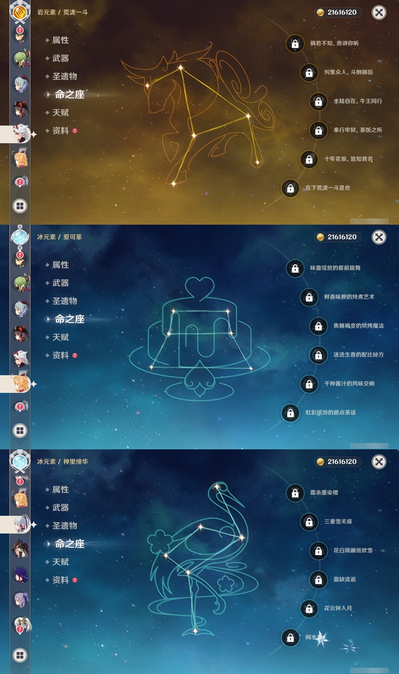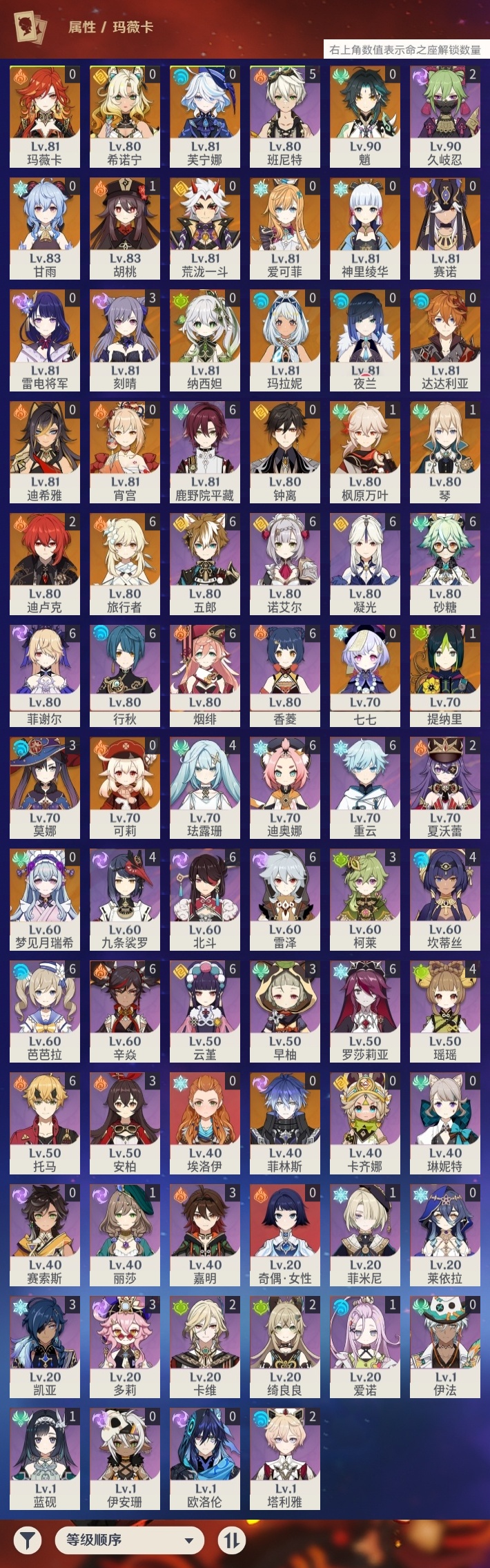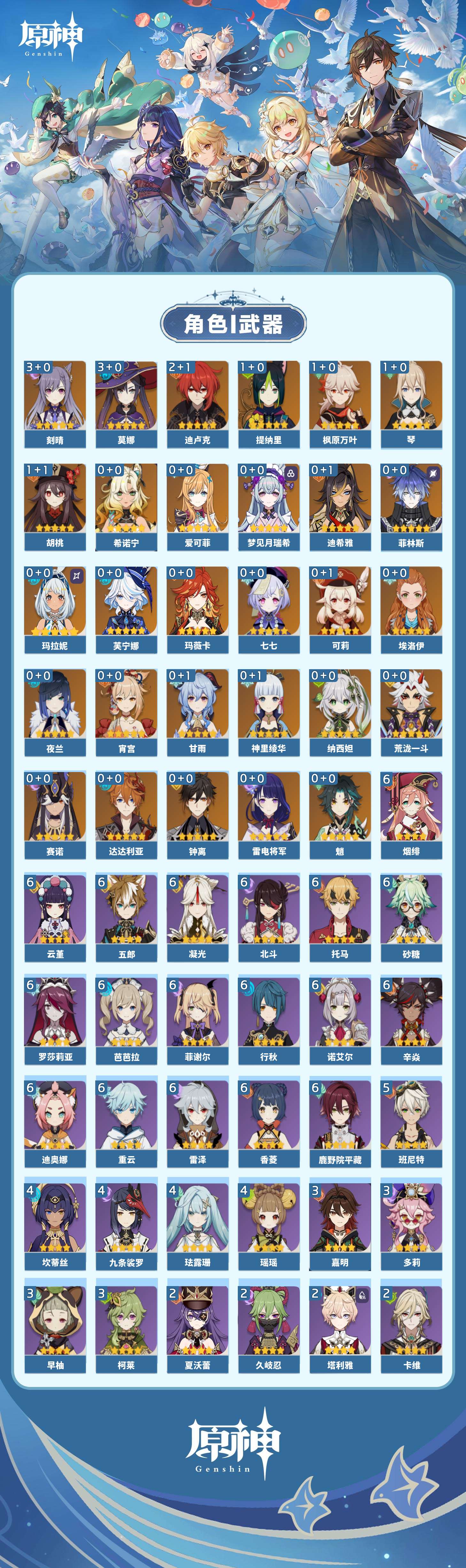 【原神】【lyys11377】冒险等级:60,五星数量:40,五星角色:刻晴 3命莫娜 3命迪卢克 2命枫原万叶 1命胡桃 1命琴 1命提纳里 1命七七玛拉妮希诺宁神里绫华玛薇卡宵宫迪希雅钟离荒泷一斗达达利亚梦见月瑞希夜兰芙宁娜赛诺爱可菲纳西妲菲林斯甘雨魈可莉雷电将军__五星武器:苇海信标阿莫斯之弓尘世之锁护摩之杖狼的末路四风原典天空之傲天空之刃天空之翼雾切之回光__四星角色:行秋 6命香菱 6命鹿野院平藏 6命凝光 6命迪奥娜 6命砂糖 6命芭芭拉 6命云堇 6命托马 6命五郎 6命烟绯 6命重云 6命辛焱 6命诺艾尔 6命罗莎莉亚 6命雷泽 6命菲谢尔 6命北斗 6命班尼特 5命九条裟罗 4命珐露珊 4命瑶瑶 4命坎蒂丝 4命多莉 3命柯莱 3命早柚 3命嘉明 3命久岐忍 2命绮良良 2命卡维 2命夏沃蕾 2命塔利雅 2命蓝砚 1命菲米尼 1命爱诺 1命埃洛伊奇偶·女性卡齐娜莱依拉欧洛伦琳妮特伊法伊安珊赛索斯