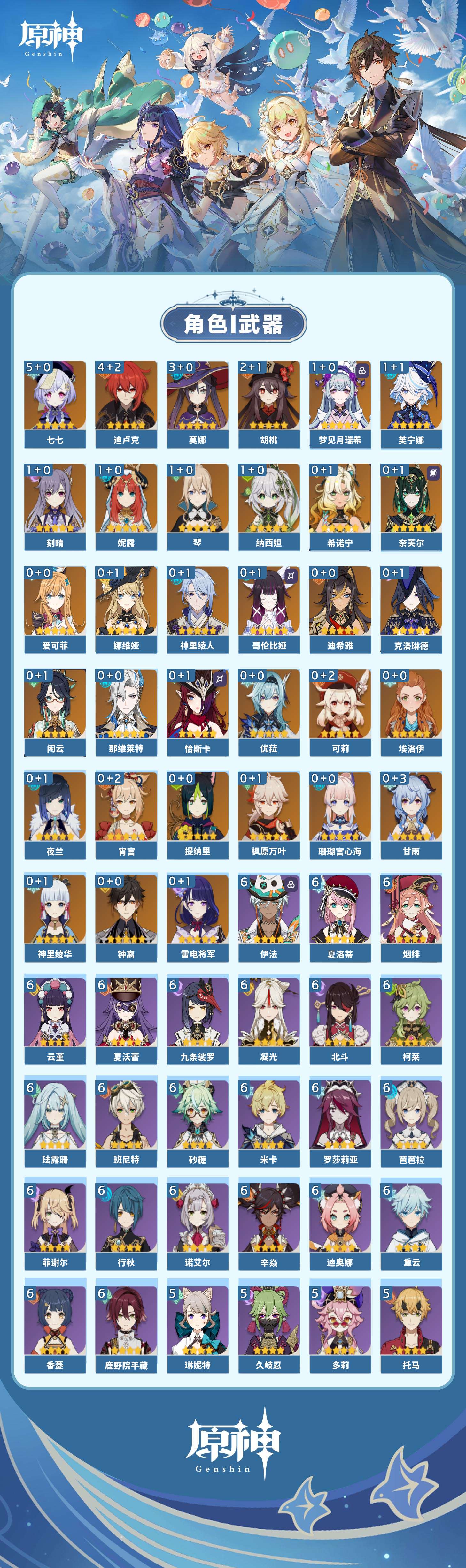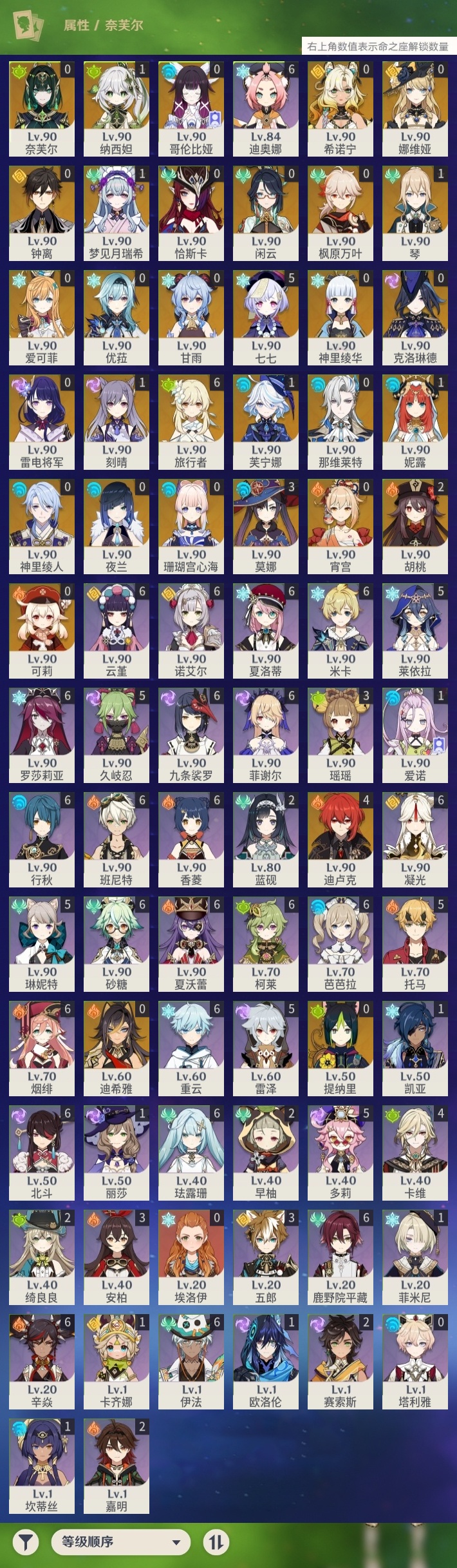 【原神】【lyys11379】冒险等级:60,五星数量:62,五星角色:七七 5命迪卢克 4命莫娜 3命胡桃 2命梦见月瑞希 1命芙宁娜 1命刻晴 1命琴 1命妮露 1命纳西妲 1命珊瑚宫心海希诺宁神里绫华恰斯卡宵宫优菈迪希雅钟离神里绫人那维莱特夜兰娜维娅提纳里闲云爱可菲奈芙尔哥伦比娅枫原万叶甘雨克洛琳德可莉雷电将军__五星武器:天空之脊 4精阿莫斯之弓 3精最初的大魔术 2精飞雷之弦振 2精狼的末路 2精四风原典 2精天空之刃 2精岩峰巡歌碧落之珑星鹫赤羽静水流涌之辉裁断鹤鸣余音支离轮光真语秘匣裁叶萃光帷间夜曲苍古自由之誓和璞鸢护摩之杖磐岩结绿天空之傲无工之剑雾切之回光薙草之稻光终末嗟叹之诗波乱月白经津若水赦罪__四星角色:班尼特 6命行秋 6命九条裟罗 6命香菱 6命鹿野院平藏 6命珐露珊 6命凝光 6命迪奥娜 6命砂糖 6命米卡 6命柯莱 6命芭芭拉 6命云堇 6命烟绯 6命重云 6命辛焱 6命诺艾尔 6命罗莎莉亚 6命菲谢尔 6命北斗 6命夏洛蒂 6命夏沃蕾 6命伊法 6命久岐忍 5命莱依拉 5命多莉 5命托马 5命雷泽 5命琳妮特 5命卡维 4命瑶瑶 3命五郎 3命绮良良 2命蓝砚 2命早柚 2命嘉明 2命赛索斯 2命卡齐娜 1命坎蒂丝 1命欧洛伦 1命菲米尼 1命爱诺 1命埃洛伊塔利雅