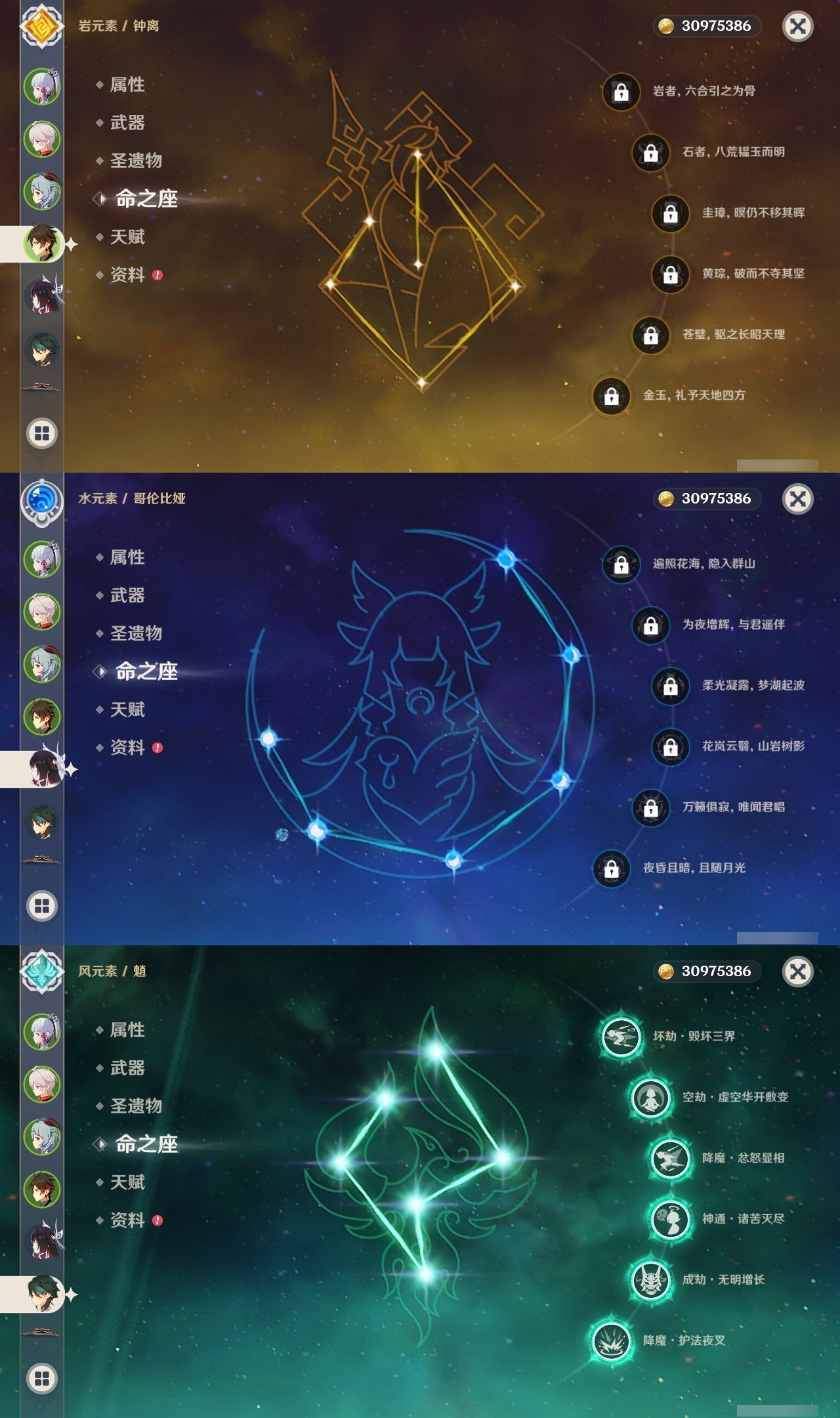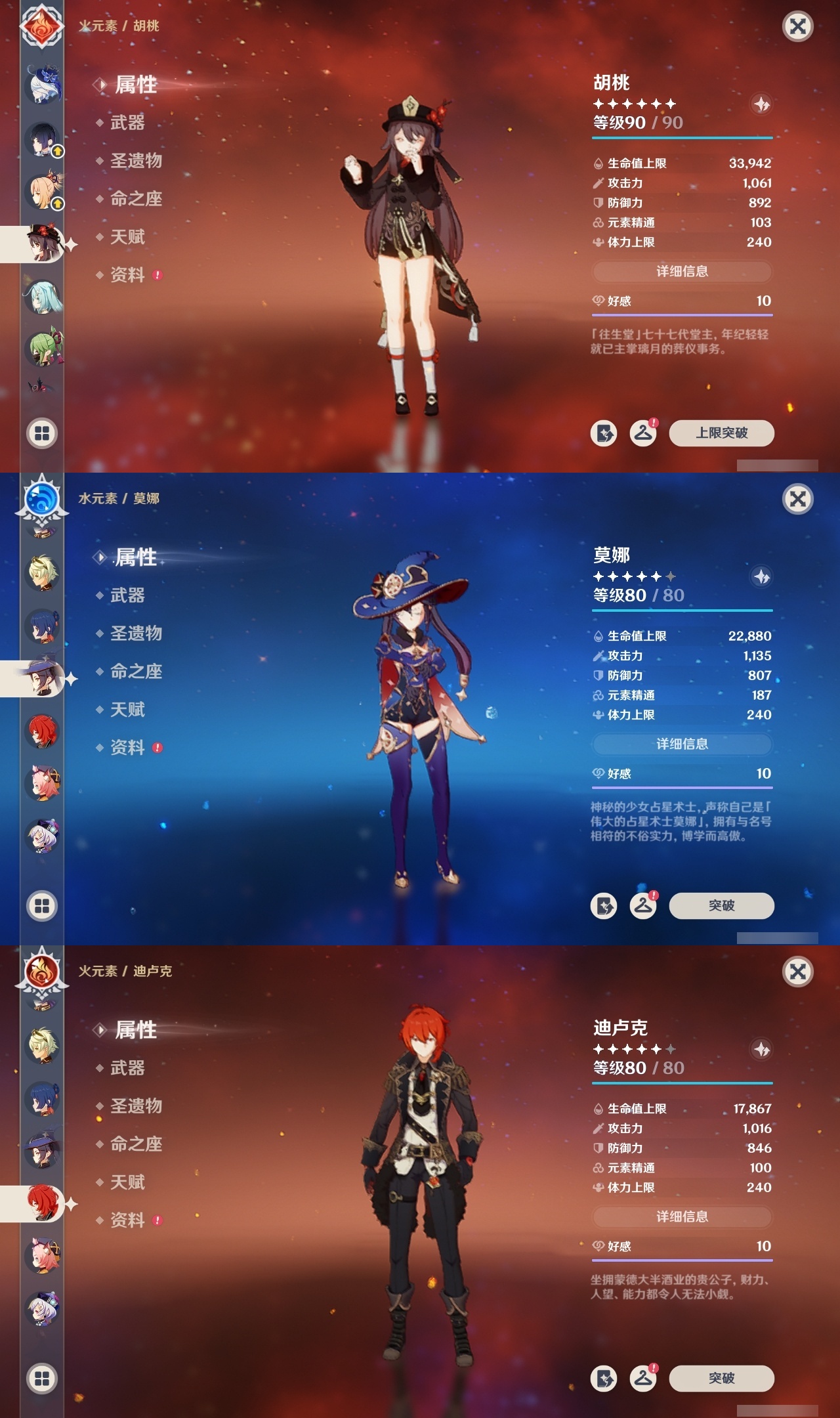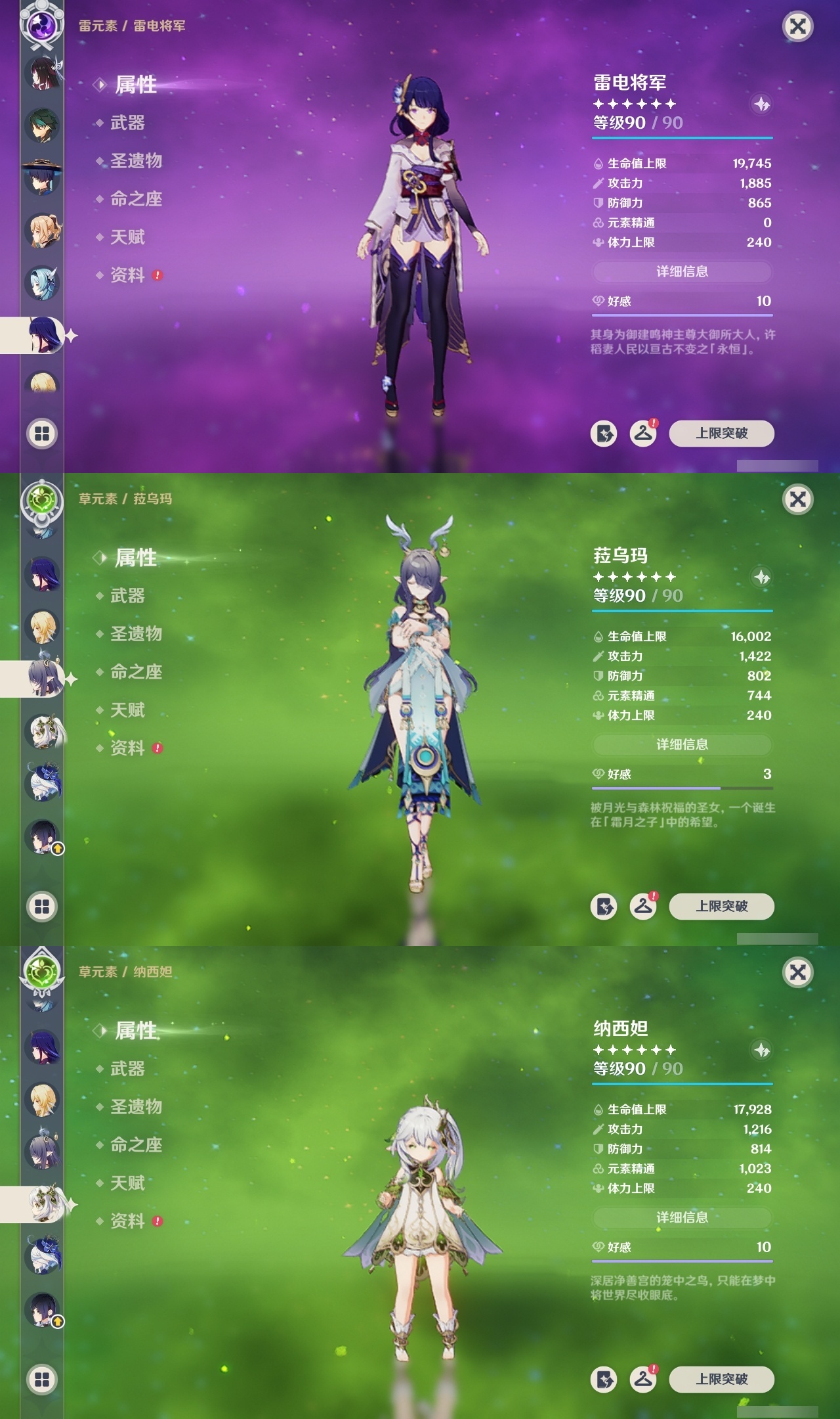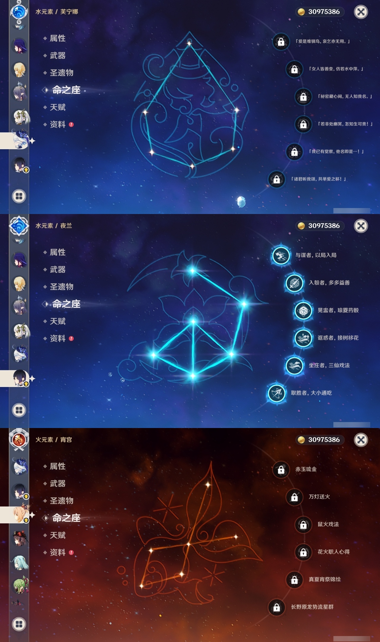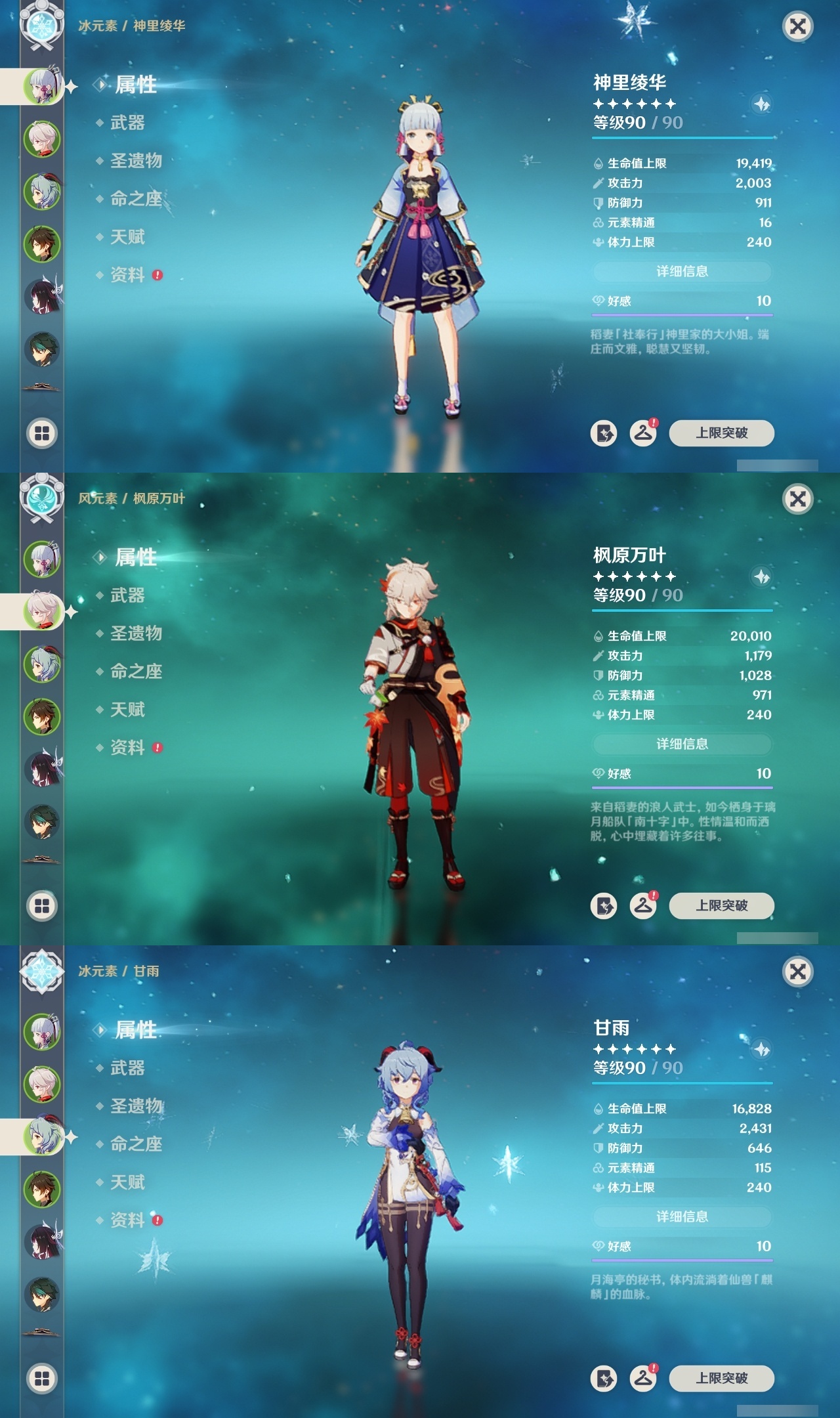 【原神】满命,冒险等级:60,五星数量:46,五星角色:迪卢克 6命魈 6命雷电将军 6命七七 6命夜兰 6命流浪者 5命琴 4命莫娜 3命提纳里 3命枫原万叶 2命纳西妲 2命甘雨 1命胡桃 1命刻晴 1命优菈 1命神里绫华宵宫迪希雅钟离荒泷一斗芙宁娜菈乌玛哥伦比娅可莉__五星武器:阿莫斯之弓 3精静水流涌之辉血染荒城裁叶萃光风鹰剑护摩之杖狼的末路松籁响起之时天空之傲天空之脊天空之卷天空之刃无工之剑雾切之回光薙草之稻光终末嗟叹之诗息灾神乐之真意若水千夜浮梦__四星角色:班尼特 6命行秋 6命九条裟罗 6命香菱 6命鹿野院平藏 6命珐露珊 6命凝光 6命迪奥娜 6命砂糖 6命瑶瑶 6命莱依拉 6命多莉 6命卡维 6命芭芭拉 6命云堇 6命烟绯 6命辛焱 6命诺艾尔 6命罗莎莉亚 6命雷泽 6命菲谢尔 6命北斗 6命夏沃蕾 6命嘉明 6命伊法 6命柯莱 5命早柚 5命五郎 5命重云 5命爱诺 5命米卡 4命琳妮特 3命久岐忍 2命绮良良 2命托马 2命欧洛伦 1命夏洛蒂 1命赛索斯 1命埃洛伊奇偶·女性卡齐娜坎蒂丝菲米尼