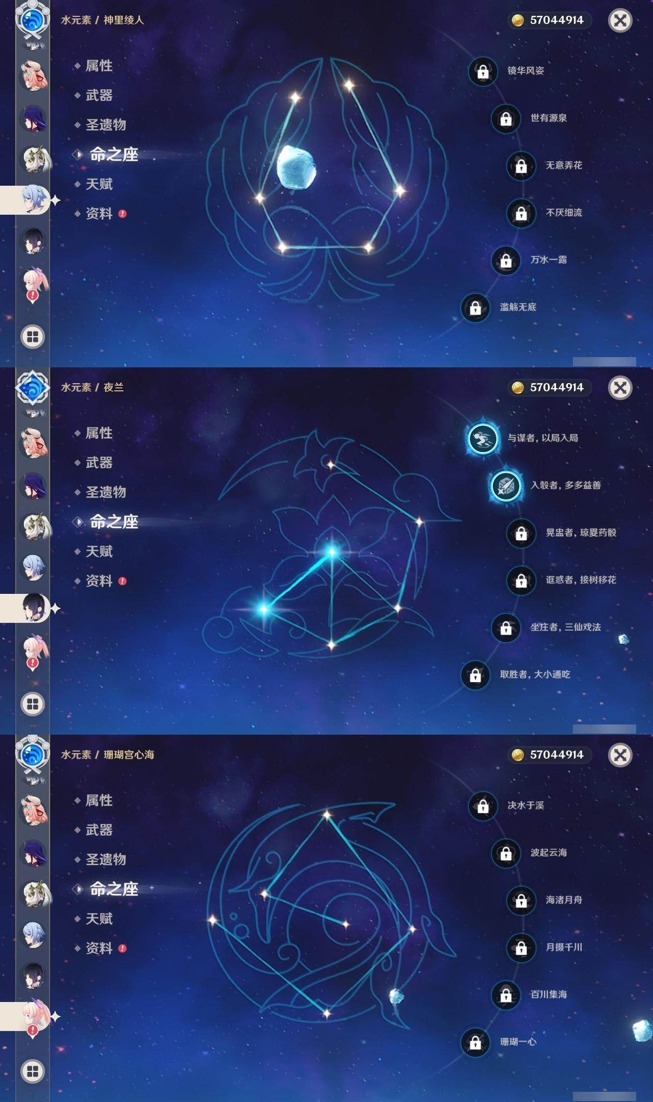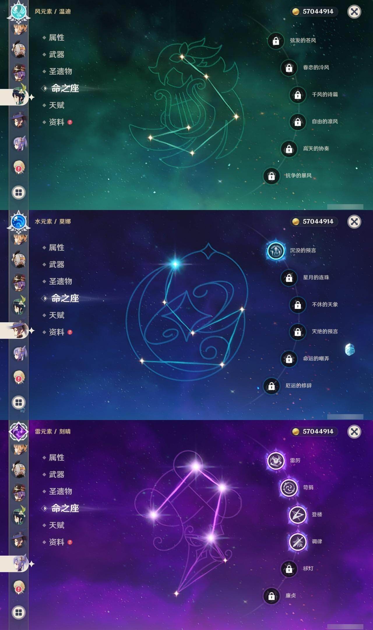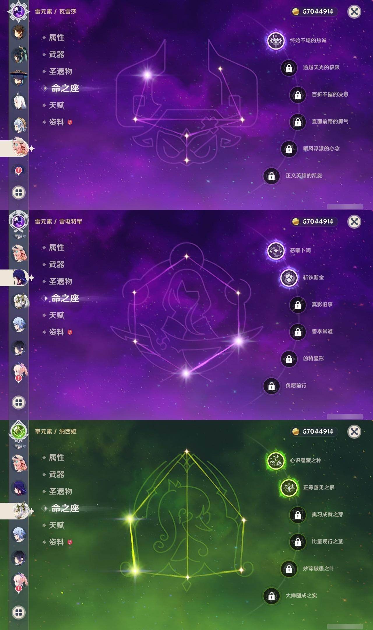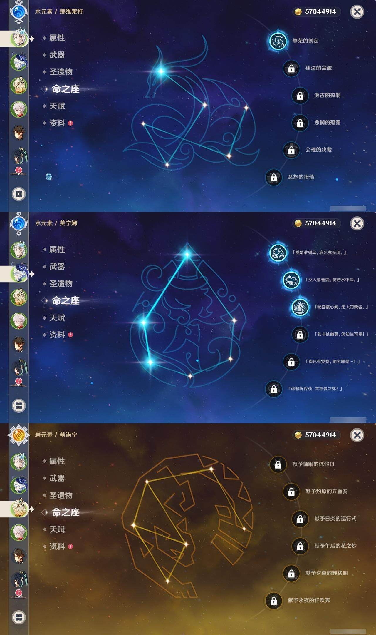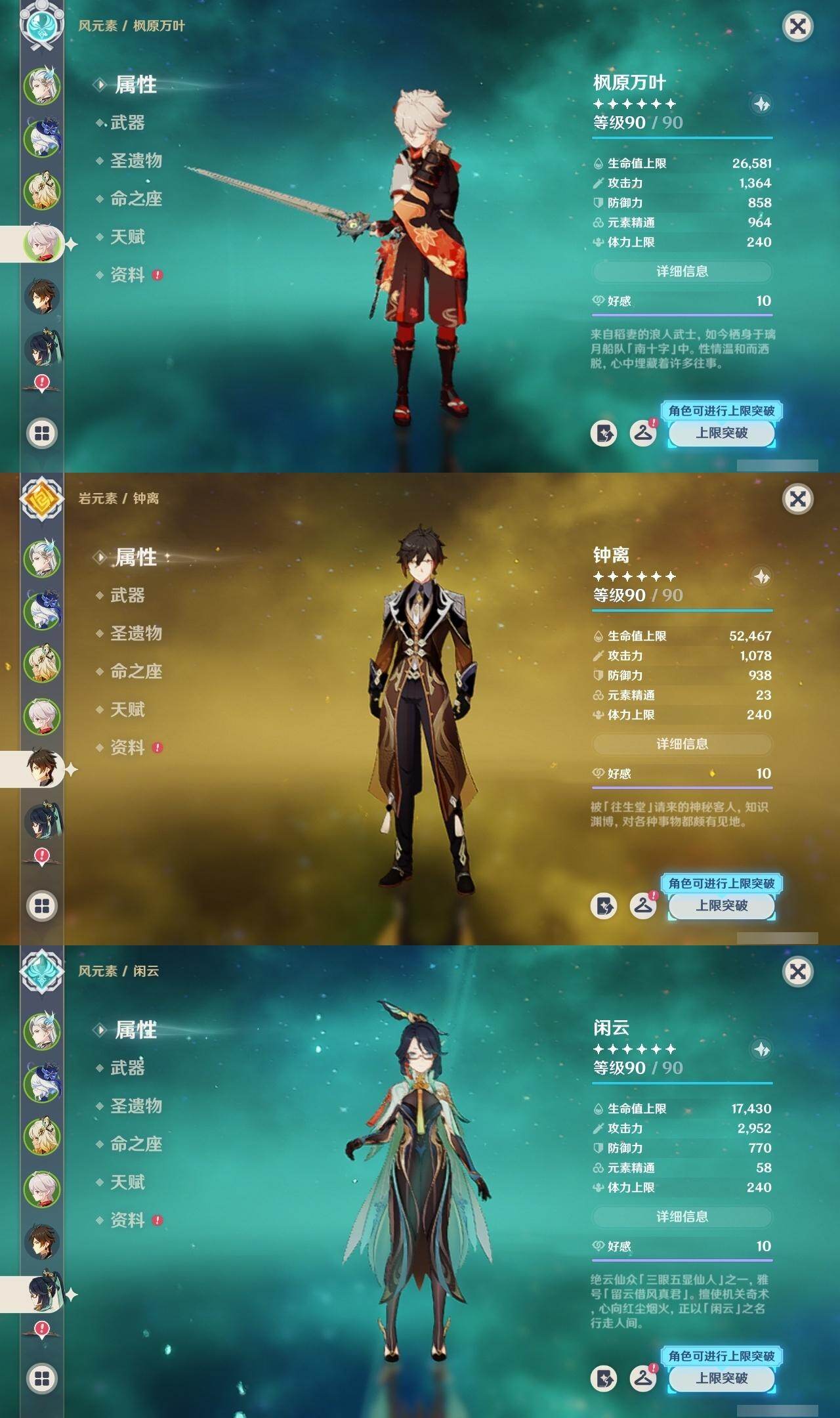 [14792876]60级/71黄/女主/23个五星角色/20个五星武器 0命闲云3命芙宁娜1命那维莱特0命迪希雅0命流浪者2命纳西妲2命夜兰0命神里绫人0命申鹤2命雷电将军0命枫原万叶0命神里绫华0命钟离1命胡桃0命温迪0命珊瑚宫心海4命刻晴满命琴1命莫娜5命迪卢克0命希诺宁0命玛薇卡1命瓦雷莎精1白雨心弦精1静水流涌之辉精1千夜浮梦精1若水精1息灾精1终末嗟叹之诗精1飞雷之弦振精1雾切之回光精1护摩之杖精1四风原典精1和璞鸢精1天空之脊精1天空之翼精1天空之刃精1风鹰剑精1狼的末路精1天空之傲