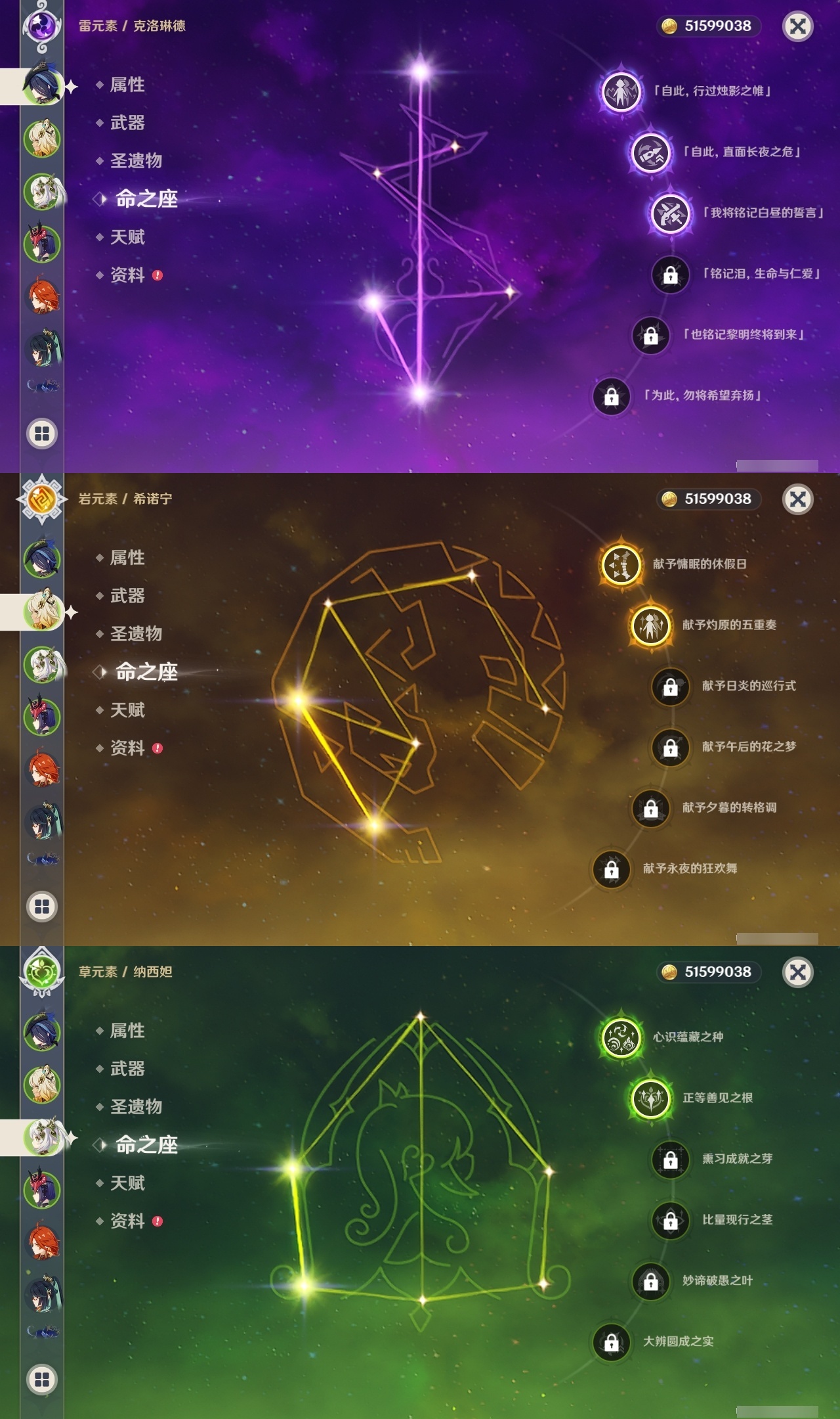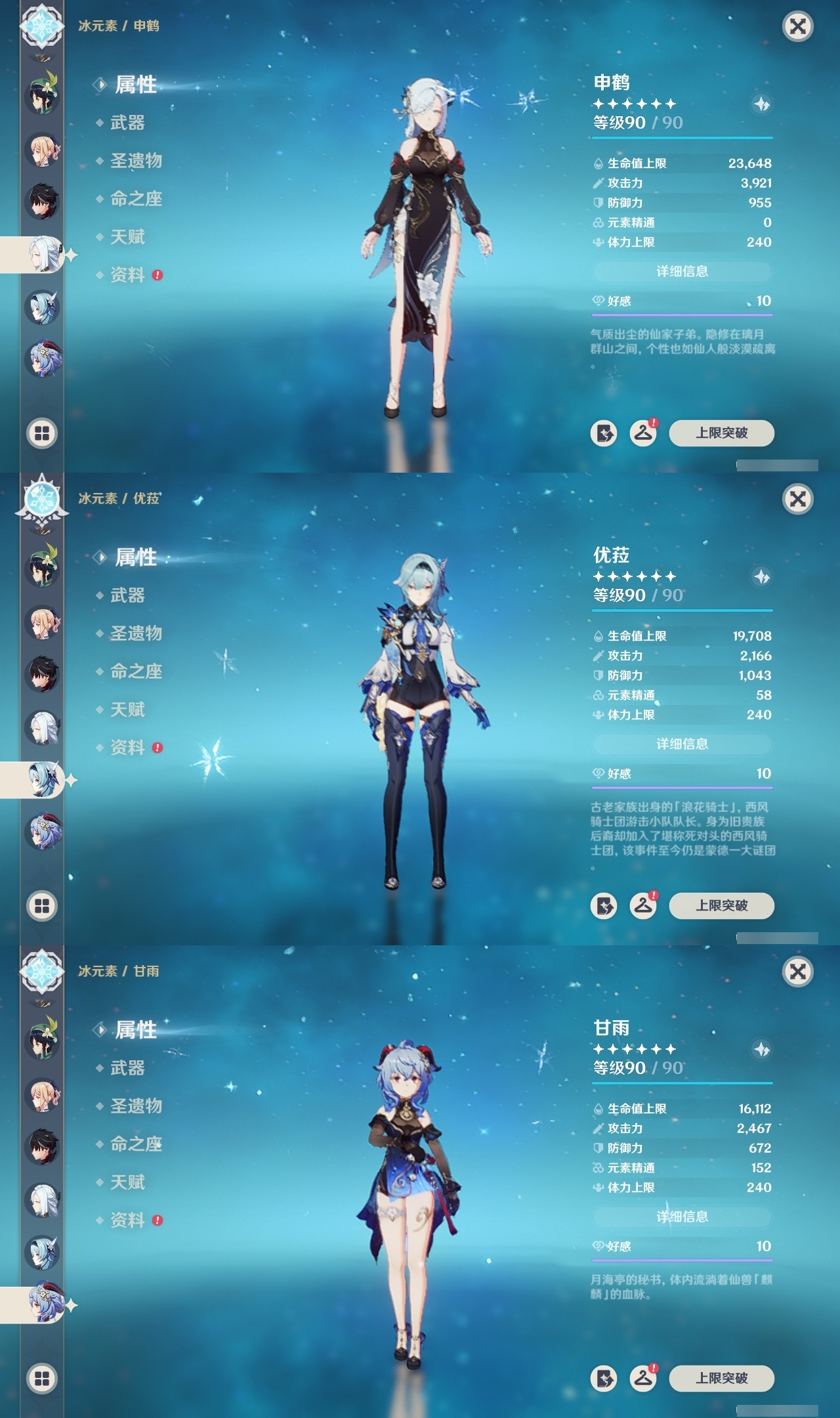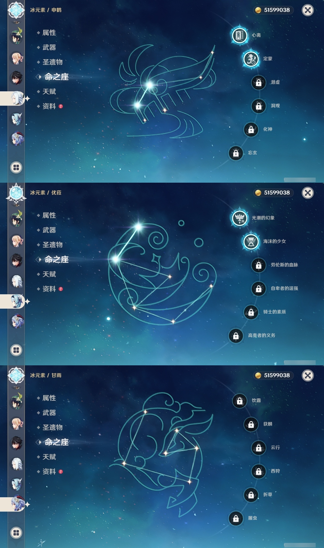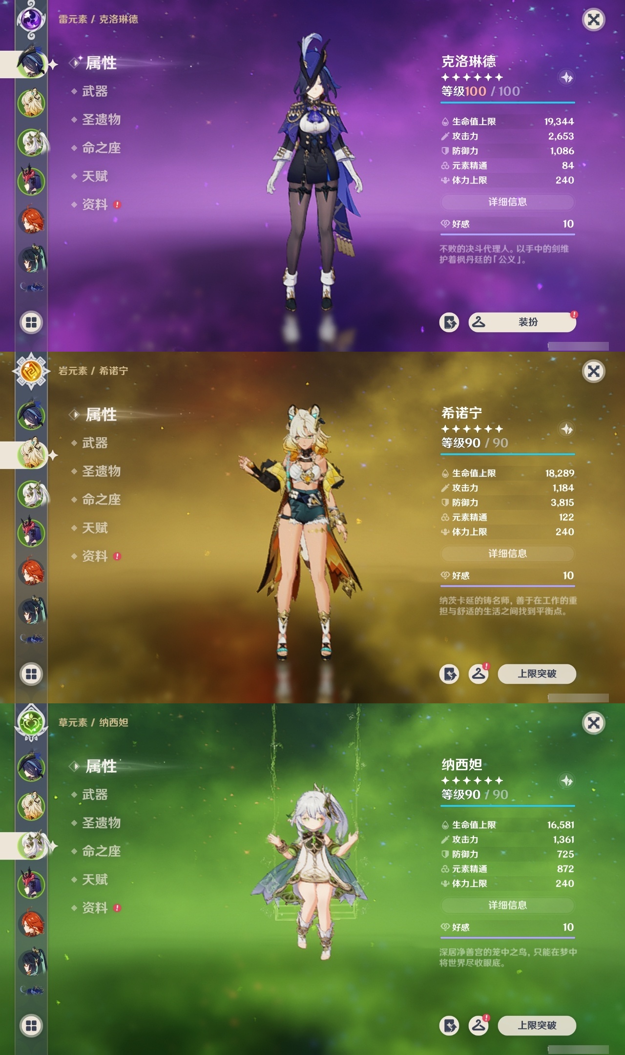 【原神】0满命,冒险等级:60,五星数量:73,五星角色:芙宁娜 6命闲云 6命阿蕾奇诺 6命刻晴 6命莫娜 6命七七 6命琴 6命神里绫华 6命八重神子 6命夜兰 6命迪卢克 4命那维莱特 3命雷电将军 3命克洛琳德 3命艾梅莉埃 2命希诺宁 2命玛薇卡 2命莱欧斯利 2命枫原万叶 2命优菈 2命申鹤 2命纳西妲 2命迪希雅 1命达达利亚 1命哥伦比娅 1命胡桃 1命提纳里 1命白术温迪宵宫钟离阿贝多妮露艾尔海森甘雨魈可莉__五星武器:四风原典 5精阿莫斯之弓 4精天空之傲 3精若水 3精和璞鸢 2精狼的末路 2精天空之脊 2精柔灯挽歌岩峰巡歌焚曜千阳万世流涌大典金流监督静水流涌之辉鹤鸣余音有乐御簾切赤月之形支离轮光苍古自由之誓飞雷之弦振护摩之杖松籁响起之时天空之卷天空之刃天空之翼雾切之回光薙草之稻光冬极白星息灾神乐之真意猎人之径圣显之钥千夜浮梦赦罪__四星角色:卡齐娜 6命班尼特 6命行秋 6命九条裟罗 6命香菱 6命鹿野院平藏 6命珐露珊 6命凝光 6命迪奥娜 6命砂糖 6命坎蒂丝 6命多莉 6命柯莱 6命芭芭拉 6命云堇 6命早柚 6命托马 6命烟绯 6命重云 6命辛焱 6命诺艾尔 6命罗莎莉亚 6命雷泽 6命菲谢尔 6命北斗 6命菲米尼 6命琳妮特 6命夏洛蒂 6命嘉明 6命伊法 6命赛索斯 6命瑶瑶 4命卡维 4命夏沃蕾 4命莱依拉 3命五郎 3命久岐忍 2命绮良良 2命米卡 1命欧洛伦 1命蓝砚 1命埃洛伊奇偶·女性奇偶·男性塔利雅爱诺