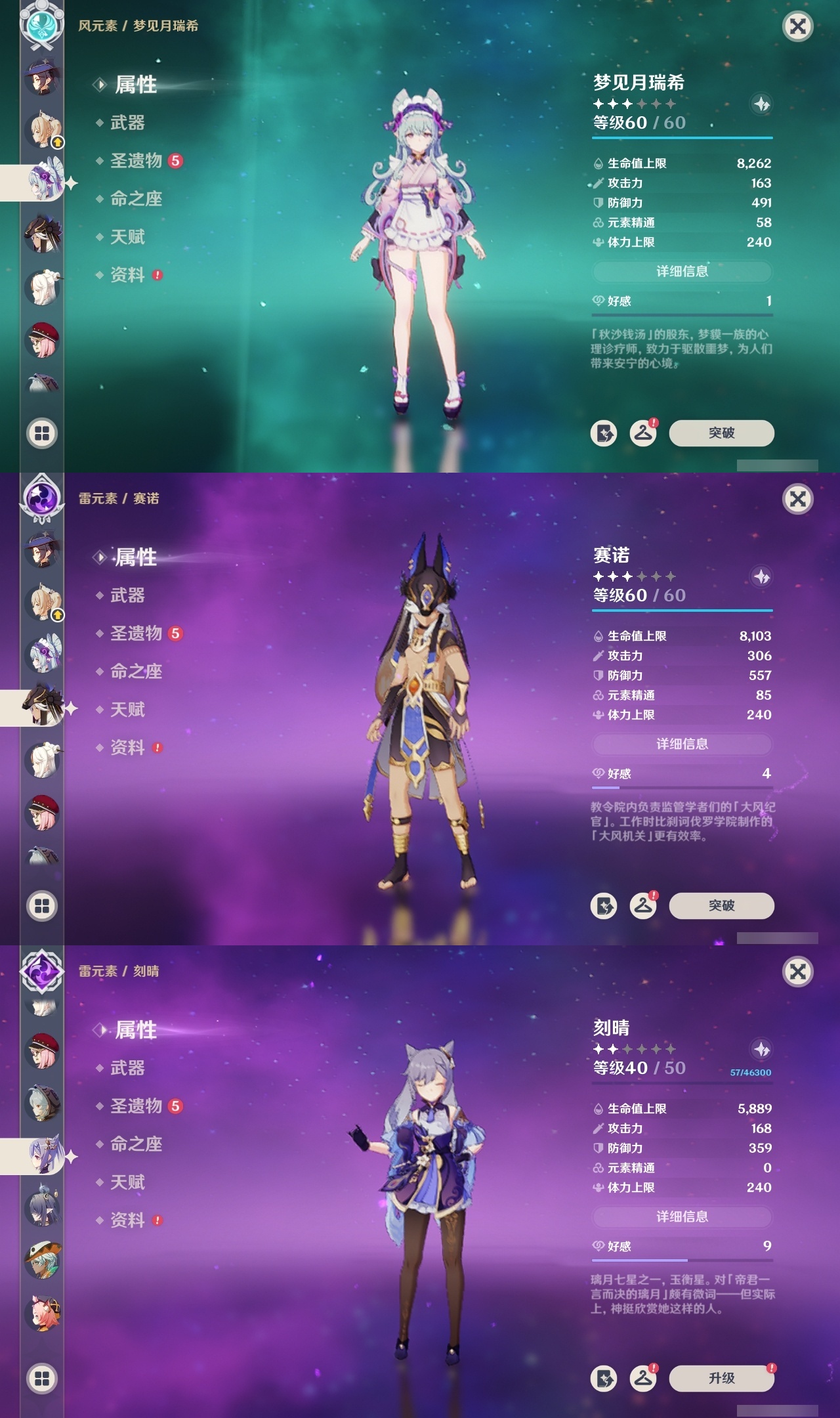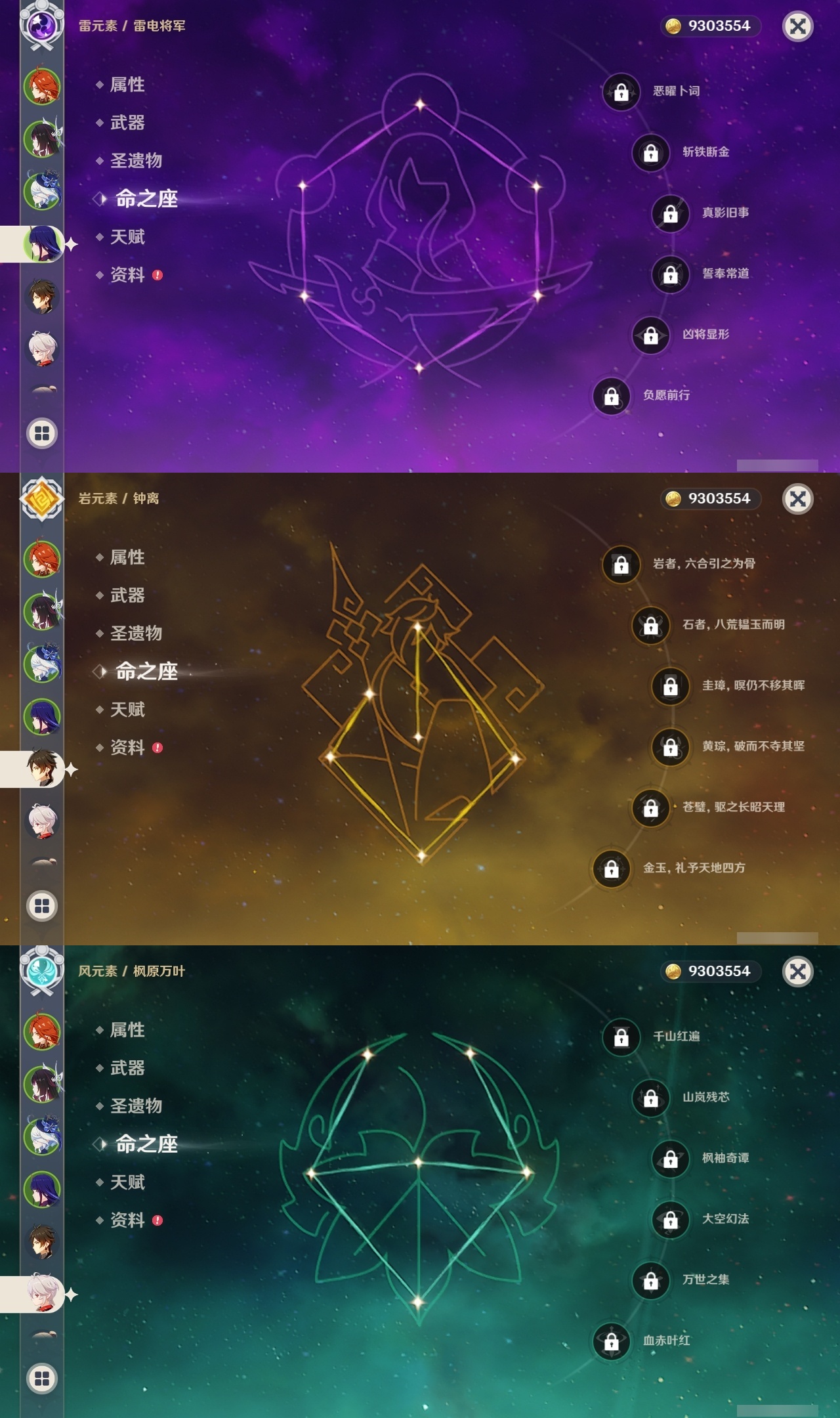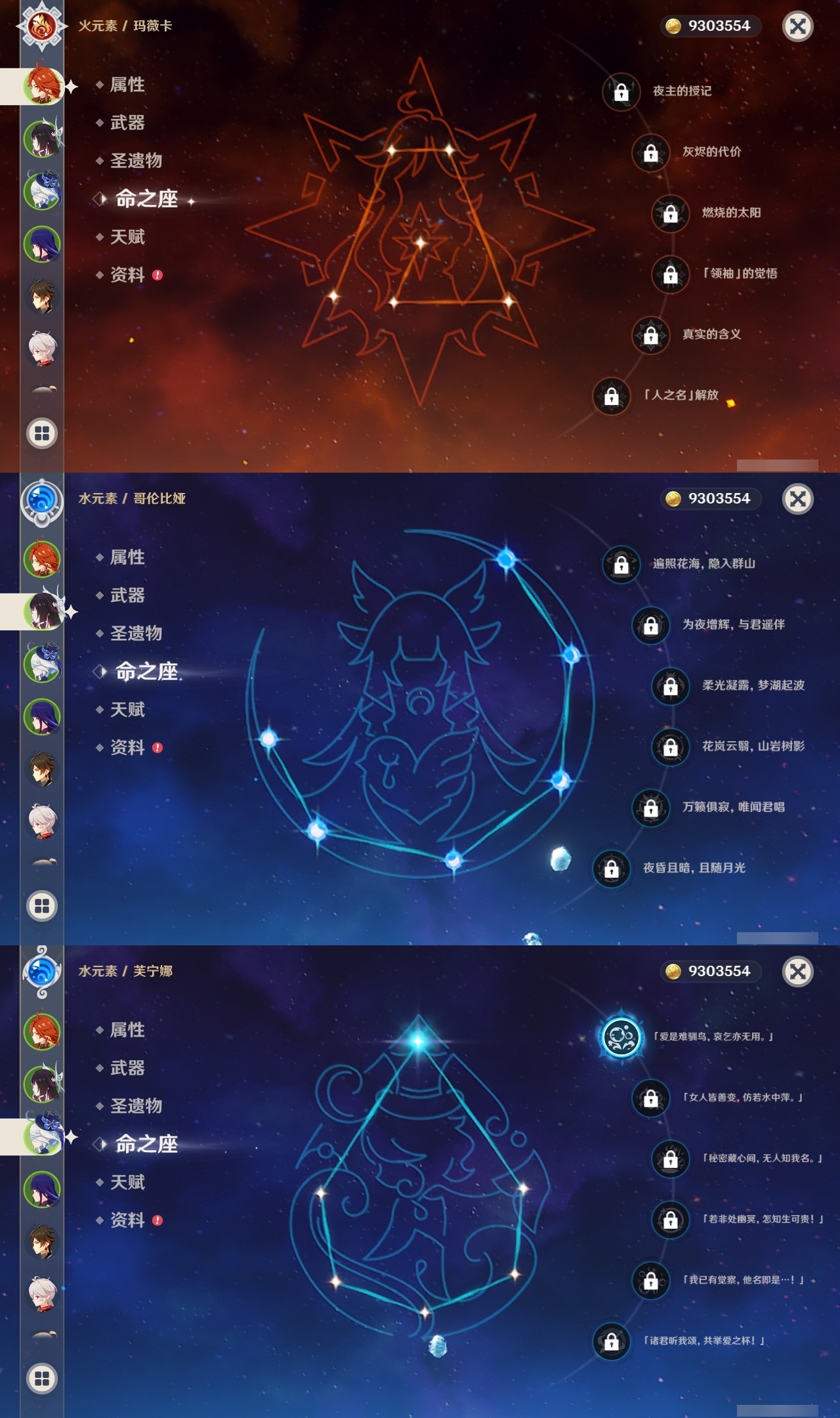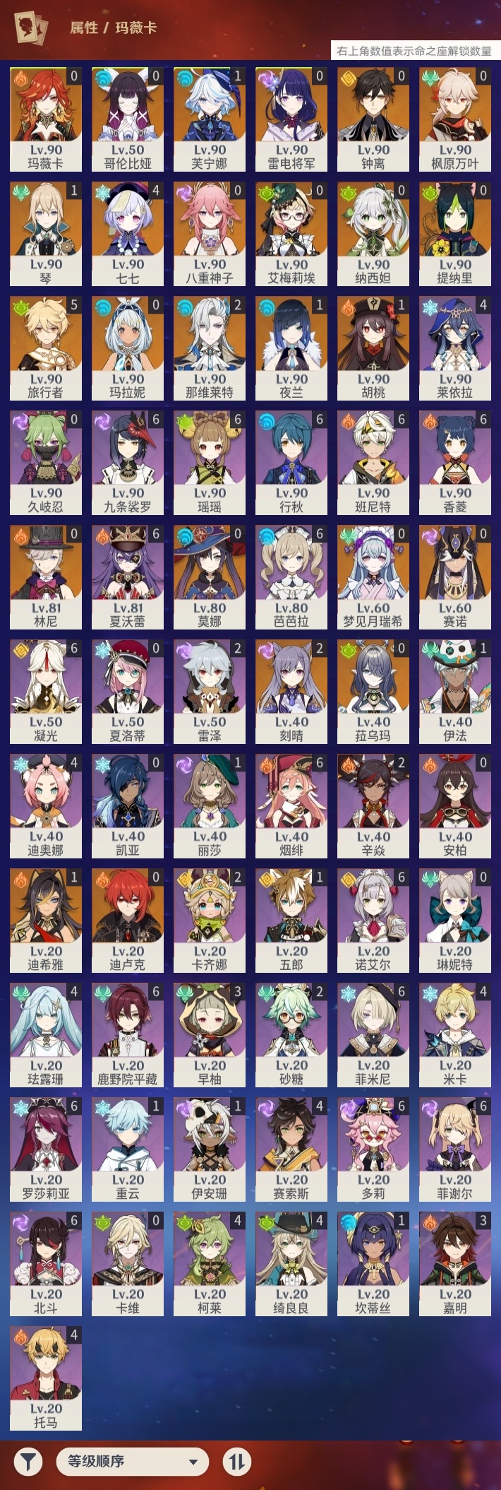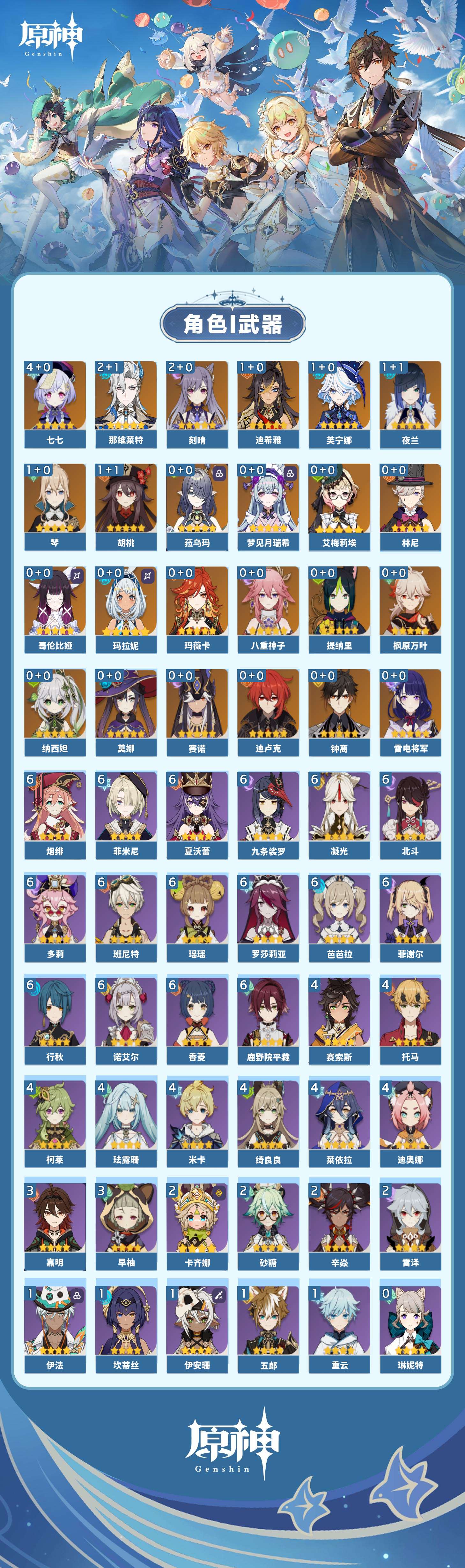 【原神】【lyys11412】冒险等级:60,五星数量:30,五星角色:七七 4命那维莱特 2命刻晴 2命迪希雅 1命芙宁娜 1命胡桃 1命琴 1命夜兰 1命莫娜艾梅莉埃玛拉妮玛薇卡钟离梦见月瑞希八重神子林尼提纳里赛诺纳西妲菈乌玛迪卢克哥伦比娅枫原万叶雷电将军__五星武器:万世流涌大典阿莫斯之弓和璞鸢护摩之杖天空之刃若水__四星角色:班尼特 6命行秋 6命九条裟罗 6命香菱 6命鹿野院平藏 6命凝光 6命瑶瑶 6命多莉 6命芭芭拉 6命烟绯 6命诺艾尔 6命罗莎莉亚 6命菲谢尔 6命北斗 6命菲米尼 6命夏沃蕾 6命珐露珊 4命迪奥娜 4命绮良良 4命莱依拉 4命米卡 4命柯莱 4命托马 4命赛索斯 4命早柚 3命嘉明 3命卡齐娜 2命砂糖 2命辛焱 2命雷泽 2命坎蒂丝 1命五郎 1命重云 1命伊法 1命伊安珊 1命久岐忍卡维琳妮特夏洛蒂