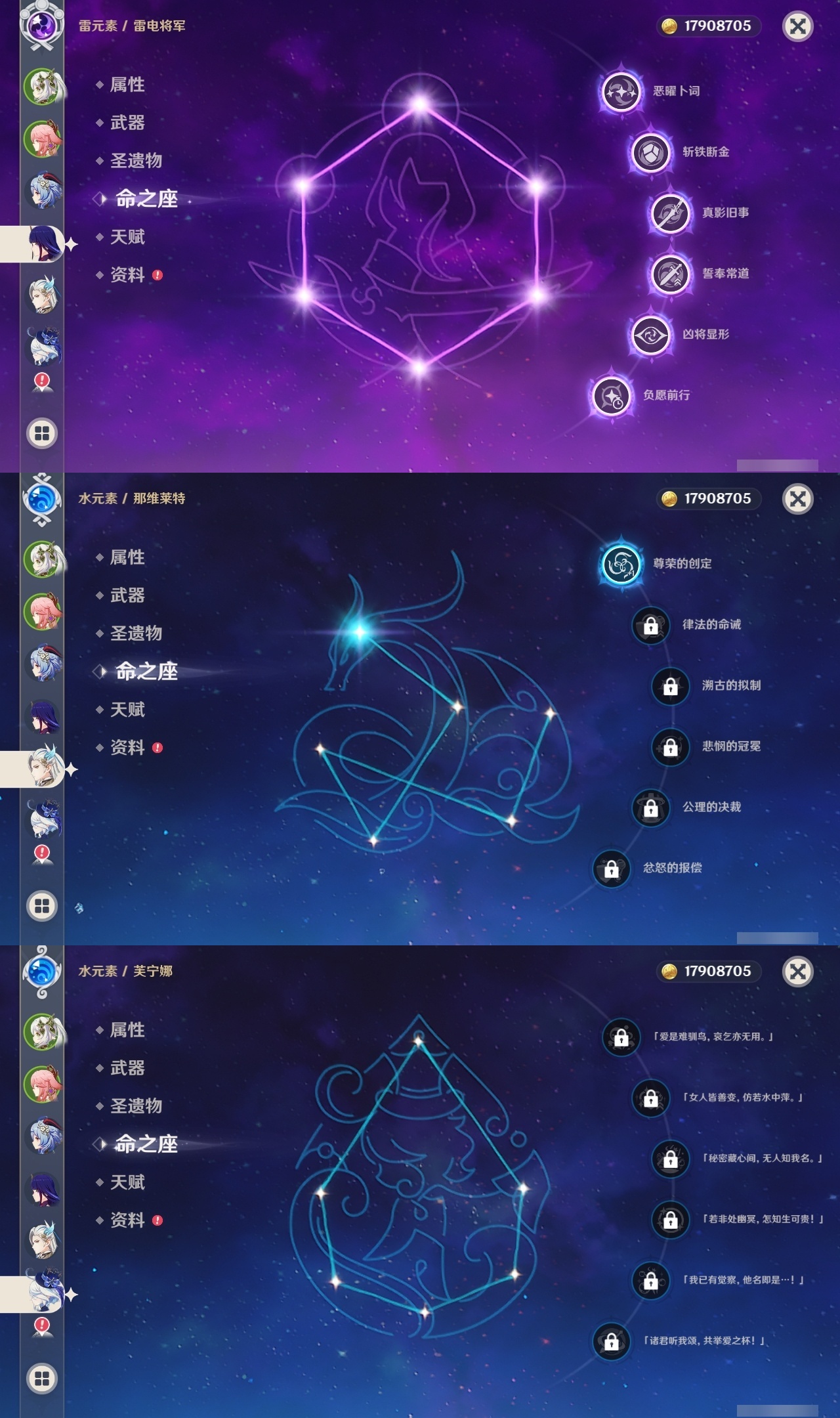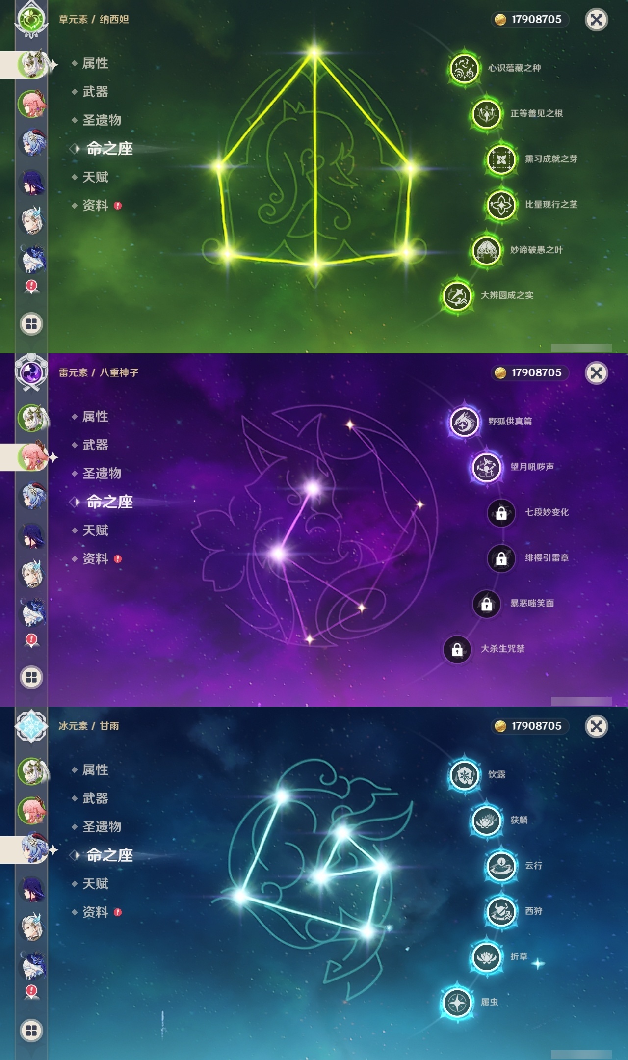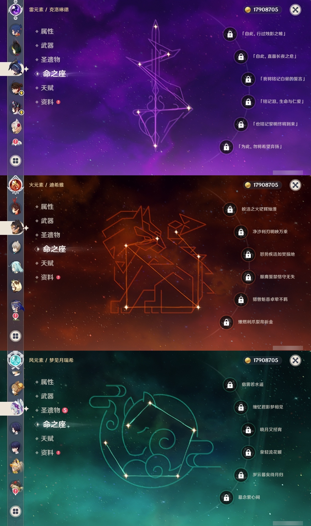 【原神】满命,冒险等级:60,五星数量:70,五星角色:迪卢克 6命甘雨 6命刻晴 6命雷电将军 6命莫娜 6命七七 6命琴 6命钟离 6命纳西妲 6命达达利亚 4命可莉 2命温迪 2命优菈 2命八重神子 2命妮露 2命那维莱特 1命胡桃 1命申鹤 1命夜兰 1命提纳里 1命珊瑚宫心海希诺宁神里绫华宵宫迪希雅梦见月瑞希神里绫人芙宁娜娜维娅闲云阿蕾奇诺艾尔海森流浪者杜林枫原万叶克洛琳德__五星武器:风鹰剑 5精天空之翼 5精薙草之稻光 5精天空之脊 4精阿莫斯之弓 3精和璞鸢 3精狼的末路 3精磐岩结绿 3精天空之傲 3精无工之剑 3精万世流涌大典黎明破晓之史裁叶萃光苍古自由之誓尘世之锁飞雷之弦振护摩之杖四风原典松籁响起之时天空之卷天空之刃雾切之回光终末嗟叹之诗赤角石溃杵冬极白星息灾神乐之真意贯虹之槊波乱月白经津千夜浮梦白雨心弦__四星角色:班尼特 6命行秋 6命九条裟罗 6命香菱 6命珐露珊 6命凝光 6命迪奥娜 6命砂糖 6命瑶瑶 6命米卡 6命柯莱 6命芭芭拉 6命云堇 6命早柚 6命托马 6命烟绯 6命重云 6命辛焱 6命诺艾尔 6命罗莎莉亚 6命雷泽 6命菲谢尔 6命北斗 6命嘉明 6命夏洛蒂 5命久岐忍 4命多莉 4命伊安珊 4命夏沃蕾 3命鹿野院平藏 2命绮良良 2命菲米尼 2命琳妮特 2命坎蒂丝 1命五郎 1命赛索斯 1命埃洛伊奇偶·女性奇偶·男性卡齐娜莱依拉卡维伊法塔利雅爱诺
