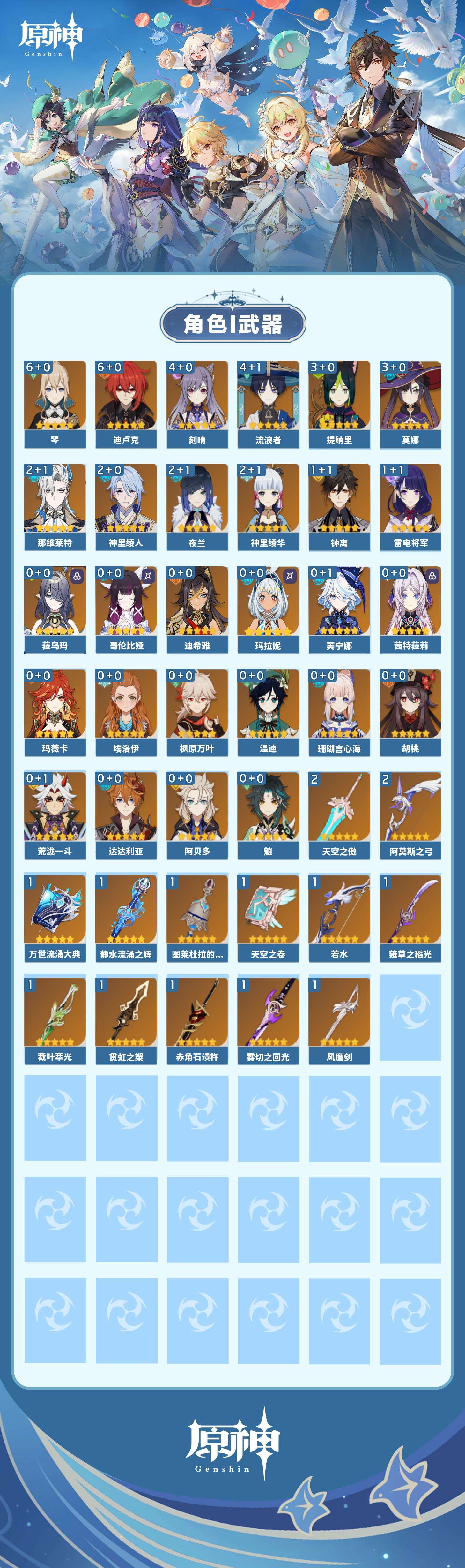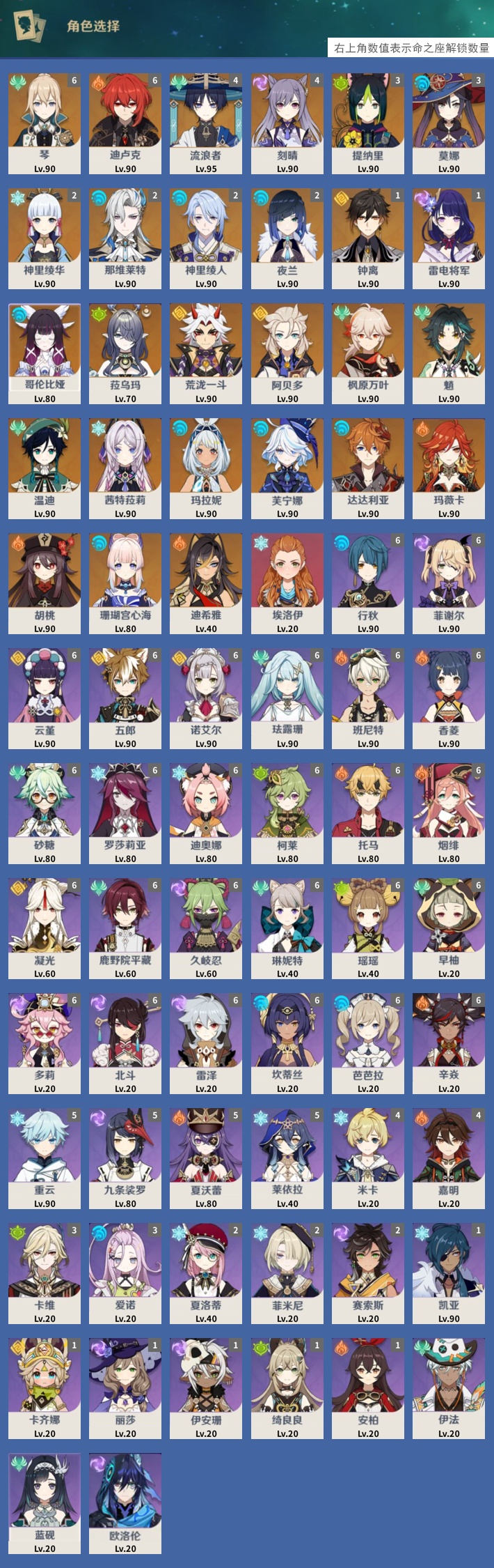 【原神】【lyys11352】冒险等级:60,女主,五星数量:41,绑定情况:邮箱__五星角色:琴 6命|迪卢克 6命|流浪者 4命|刻晴 4命|提纳里 3命|莫娜 3命|神里绫华 2命|那维莱特 2命|神里绫人 2命|夜兰 2命|钟离 1命|雷电将军 1命|哥伦比娅|菈乌玛|荒泷一斗|阿贝多|枫原万叶|魈|温迪|茜特菈莉|玛拉妮|芙宁娜|达达利亚|玛薇卡|胡桃|珊瑚宫心海|迪希雅|埃洛伊__五星武器:阿莫斯之弓 2精|天空之傲 2精|若水|静水流涌之辉|裁叶萃光|万世流涌大典|雾切之回光|图莱杜拉的回忆|风鹰剑|薙草之稻光|贯虹之槊|赤角石溃杵|天空之卷,【邮箱已实名】