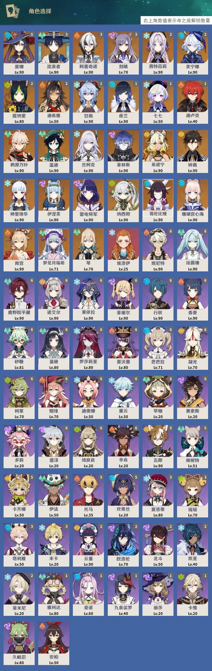 【原神】【lyys11363】冒险等级:60,女主,五星数量:49,绑定情况:邮箱__五星角色:莫娜 5命|流浪者 3命|阿蕾奇诺 3命|刻晴 3命|茜特菈莉 2命|芙宁娜 2命|提纳里 2命|迪希雅 2命|甘雨 1命|夜兰 1命|七七 1命|迪卢克 1命|枫原万叶|温迪|丝柯克|菲林斯|希诺宁|钟离|神里绫华|伊涅芙|雷电将军|纳西妲|哥伦比娅|珊瑚宫心海|宵宫|梦见月瑞希|琴|埃洛伊__五星武器:最初的大魔术|千夜浮梦|苍耀|终末嗟叹之诗|碧落之珑|赦罪|四风原典|静水流涌之辉|阿莫斯之弓|血染荒城|雾切之回光|天空之翼|赤月之形|苍古自由之誓|祭星者之望|薙草之稻光|天空之刃|图莱杜拉的回忆|息灾|风鹰剑|帷间夜曲,【邮箱已实名】